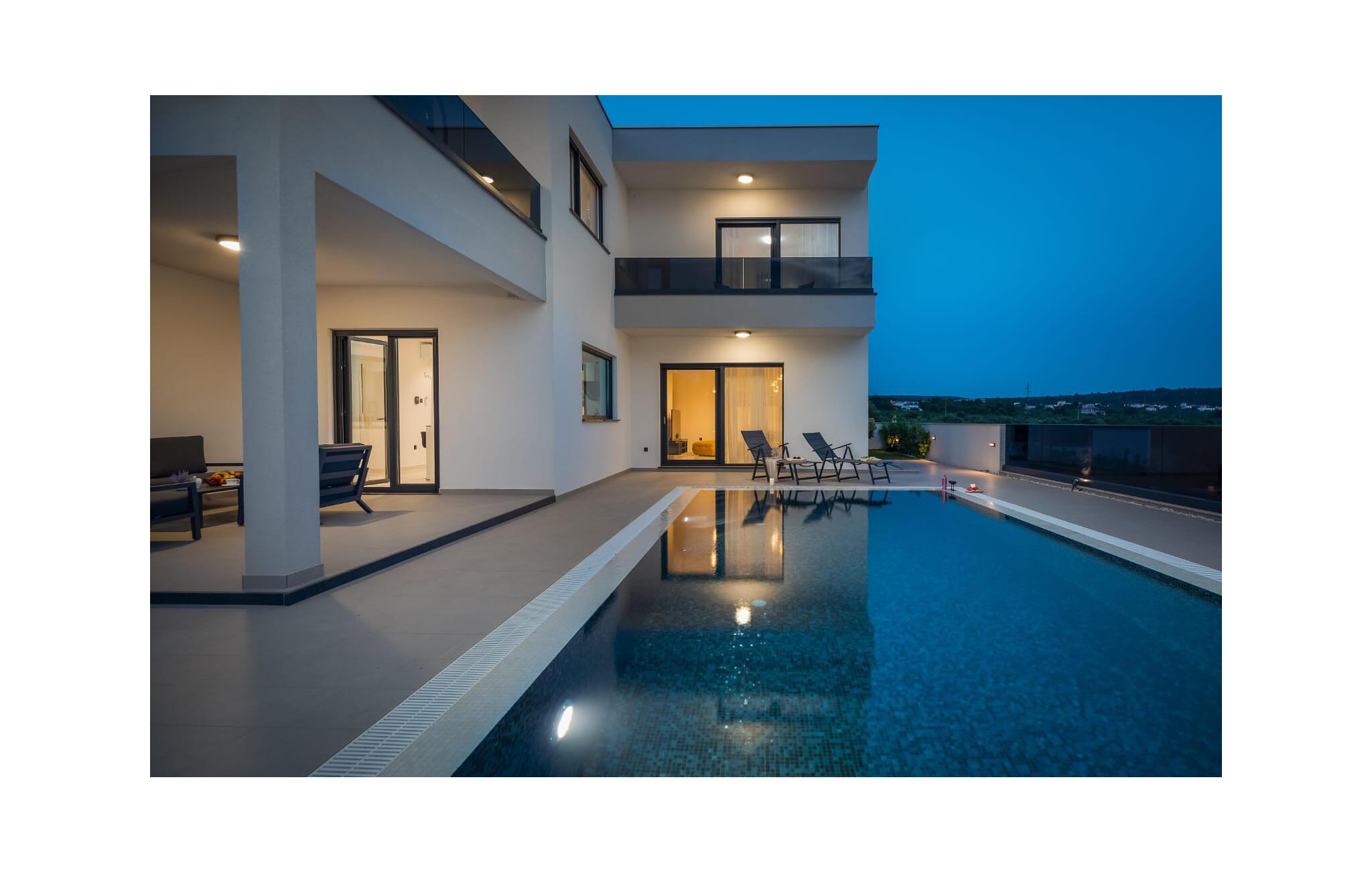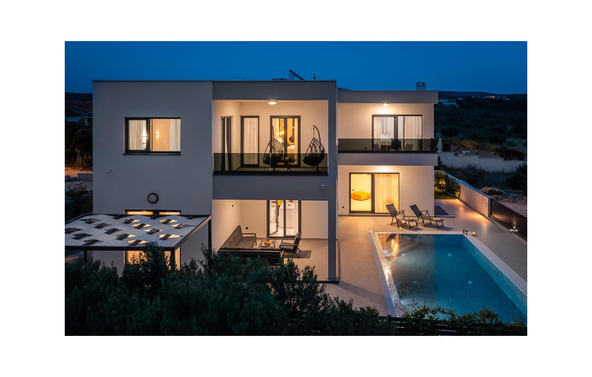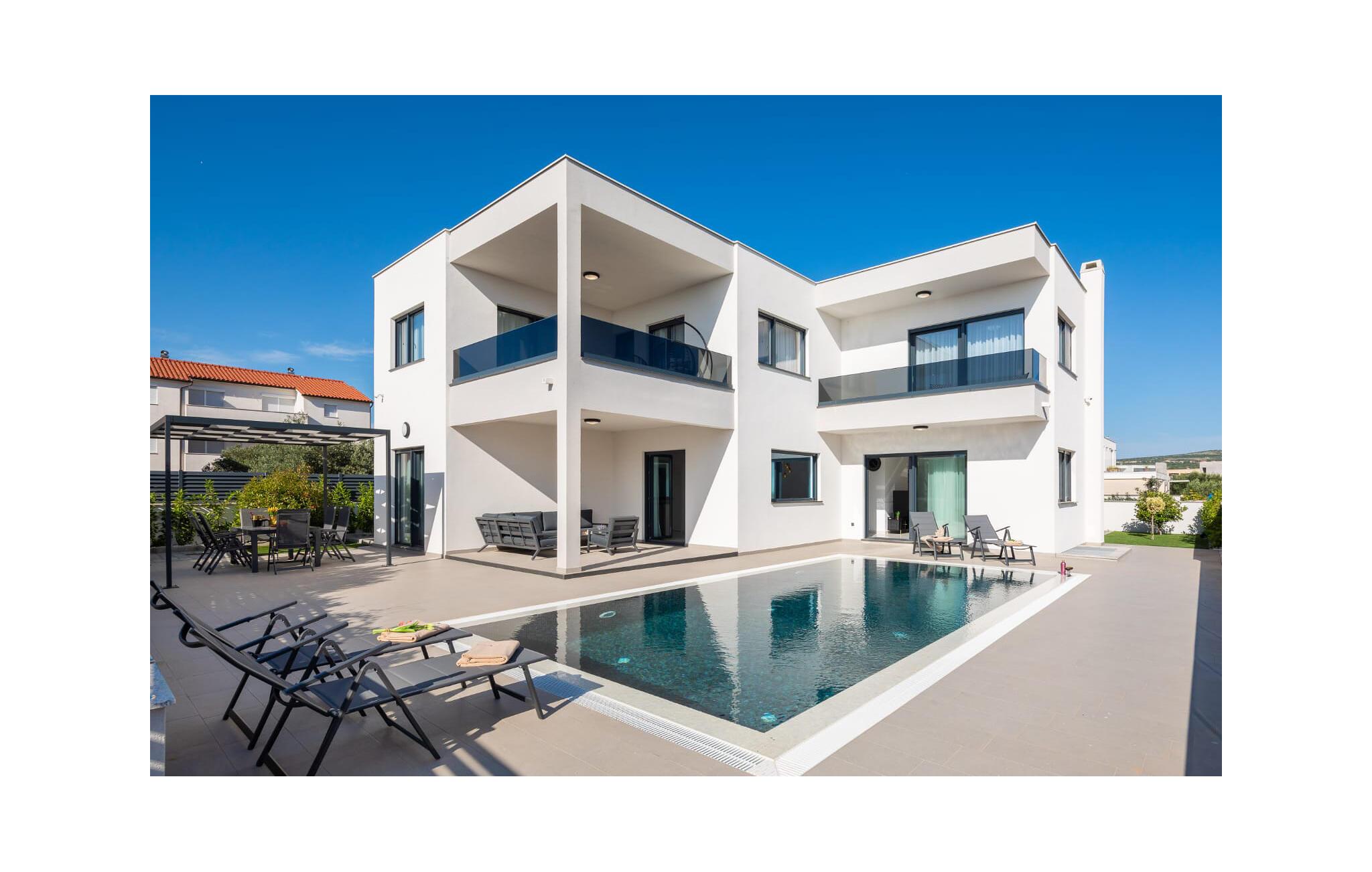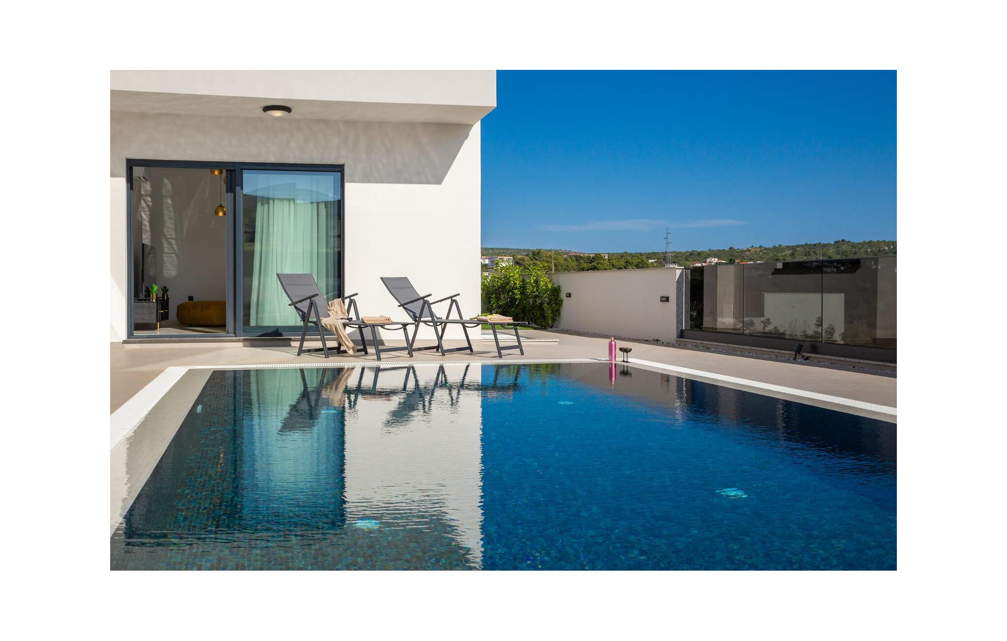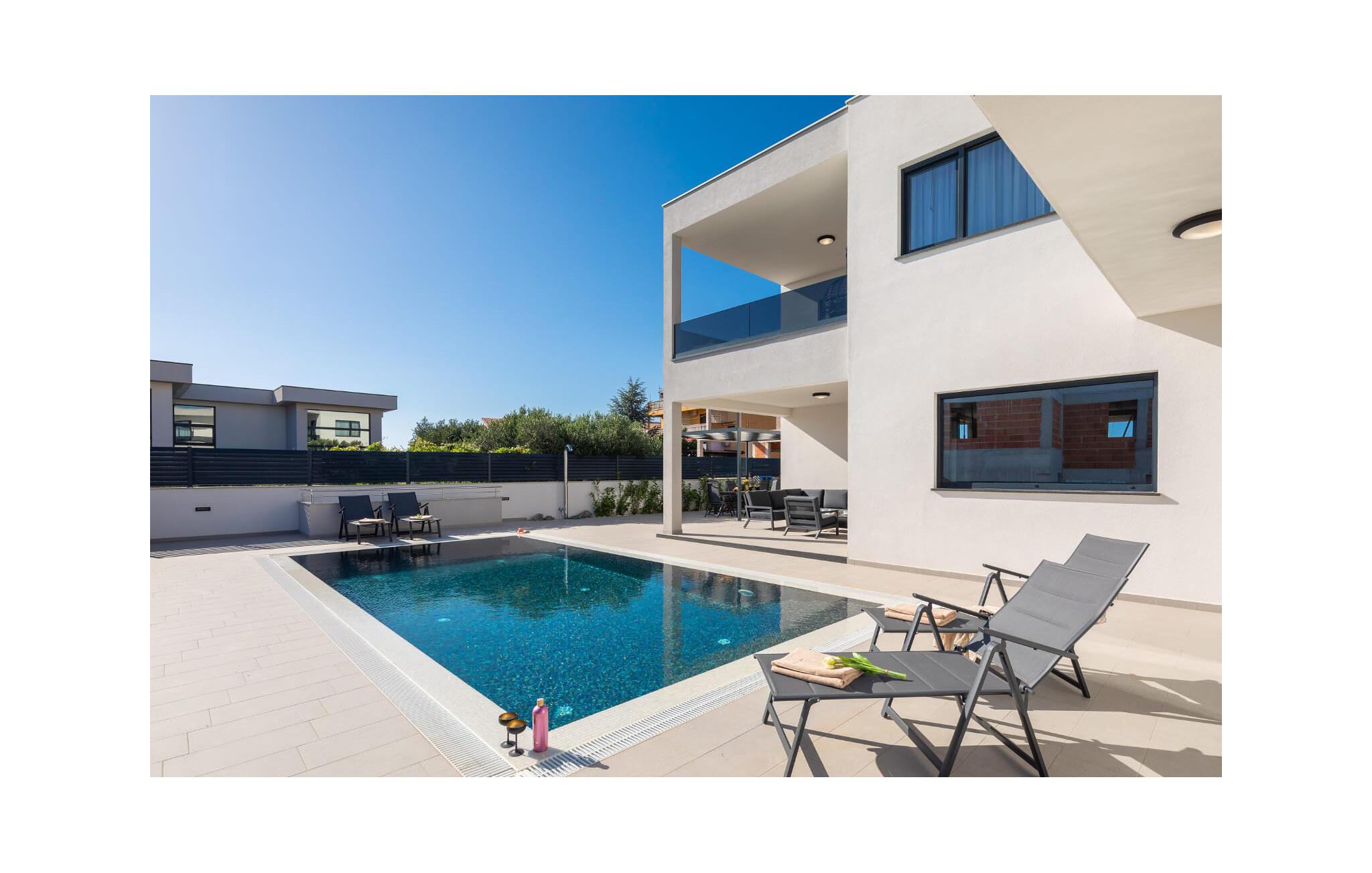 Forkæl jer selv med en luksuriøs drømmeferie i dette moderne feriehus med pool og havudsigt.