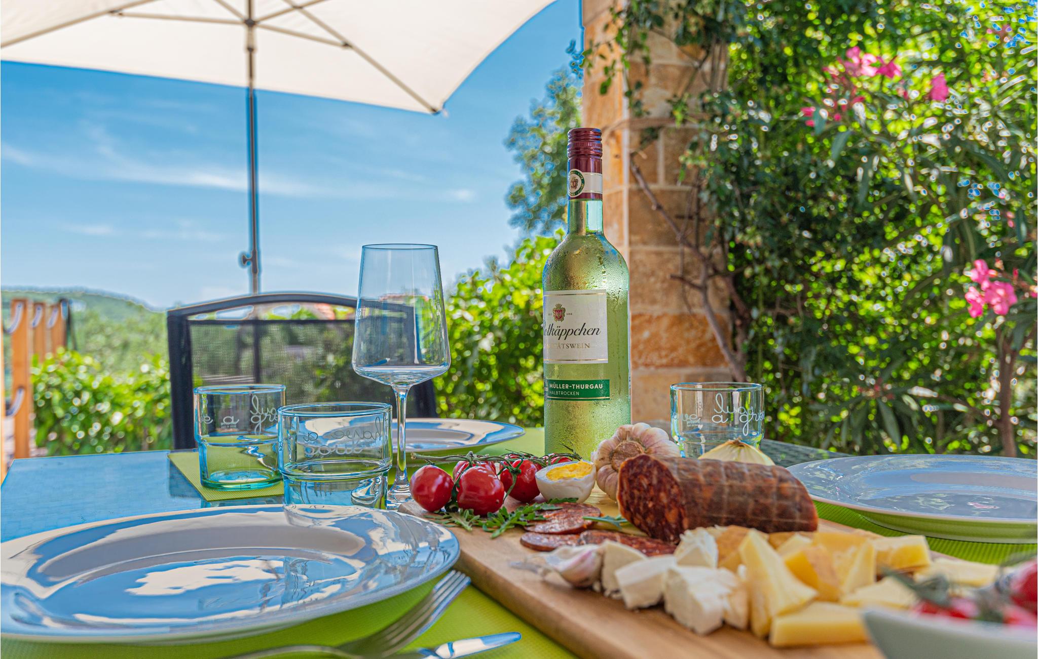 Velkommen til dette lyse feriehus, der tilbyder jer og familien en smuk kombination af murstenssandvægge og moderne bygningselementer. På to etager kan I opleve de rummelige værelser og slappe af. Nyd pejsen, det smukke køkken i moderne landstil eller den store altan på øverste etage. Alle husets bekvemmeligheder lover jer komfort og afslapning fra en hektisk hverdag. I stueetagen er der også en stor, delvist overdækket terrasse, hvor I kan hygge jer sammen og spise jeres grillede, lokale delikatesser om aftenen og så bruge aftentimerne på at lege og hygge med en fantastisk udsigt.