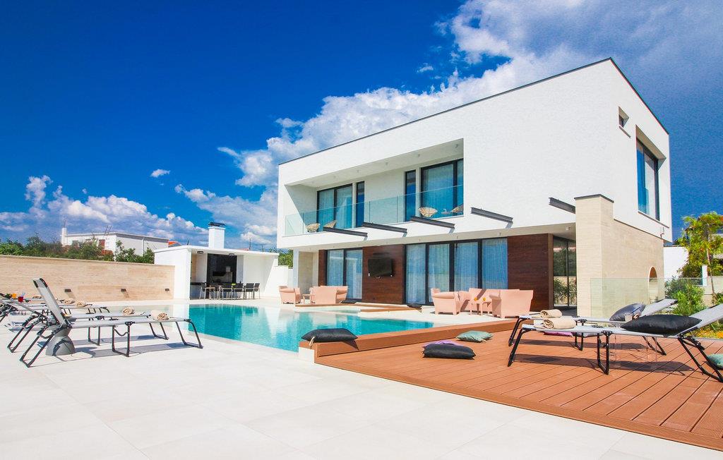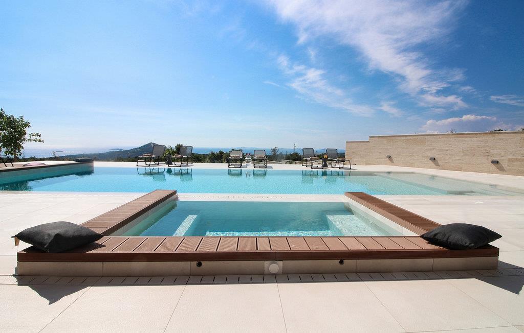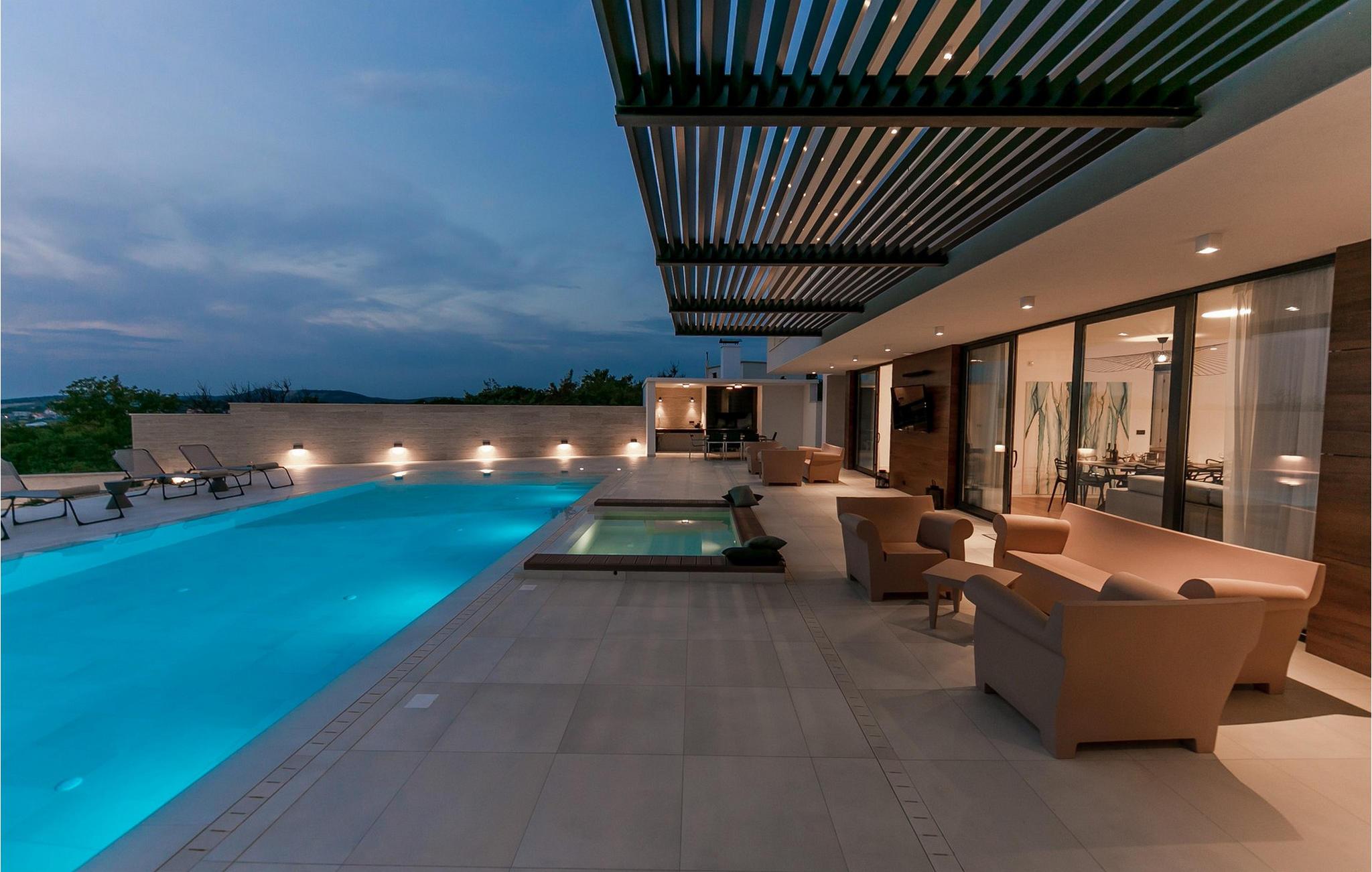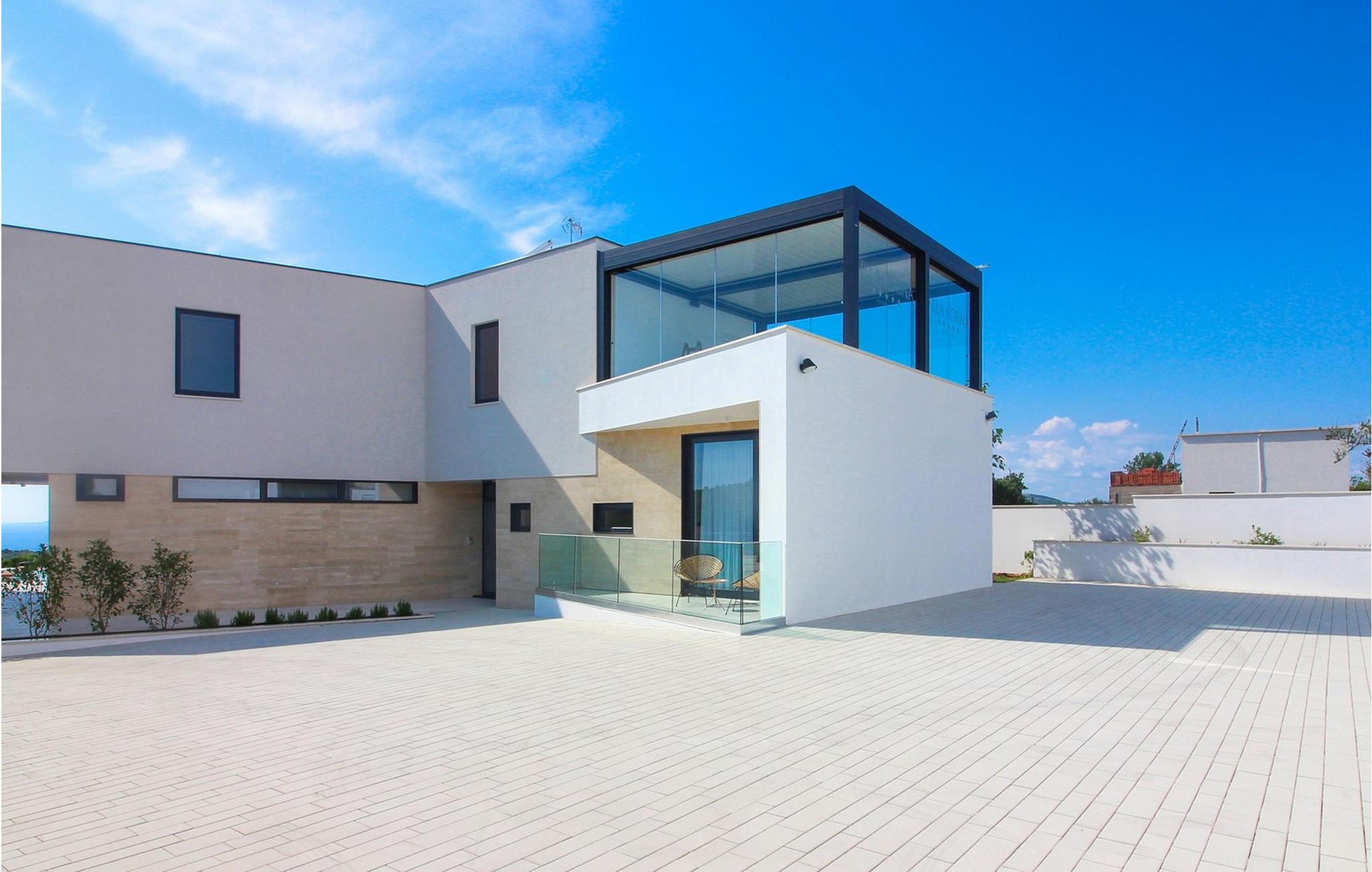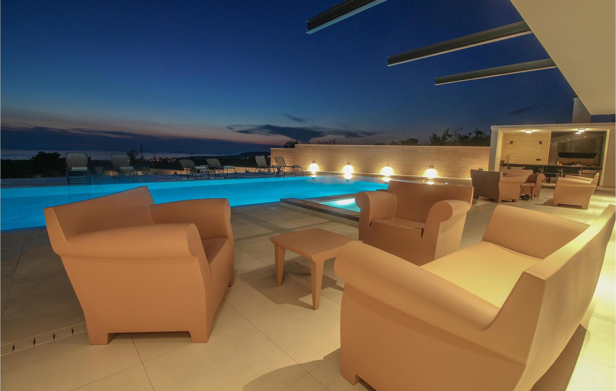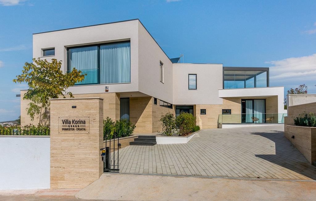 Nyd luksuriøs privatliv i denne moderne villa, beliggende i Primoštens maleriske omgivelser. Med sit elegante design og møbler af høj kvalitet tilbyder Villa Korina en perfekt ferieoplevelse. Den stilfuldt møblerede stue flyder problemfrit over i den rummelige spisestue, mens det fuldt udstyrede køkken med ismaskine og vinkøler lægger op til hyggestunder. Nyd den ypperste komfort i de komfortable soveværelser med eget badeværelse. Nyd de rene linjer i den moderne arkitektur, som er fordelt over to etager og har kærligt designet og farverigt tiltalende interiør. Den store udendørs pool med tilstødende spabad og komfortable liggestole samt et overdækket grillområde lover jer afslappende timer under den dalmatiske sol. Glæd jer til afslapning og socialt samvær med storslået panoramaudsigt helt til havet. Et have-tv lover endda udendørs filmaftener. Omgivelserne omkring Primošten byder på en række fritidsaktiviteter. Gå en tur gennem den charmerende gamle bydel med dens smalle gader og nyd udsigten over det krystalklare hav. Smukke stenstrande lægger op til at solbade og svømme. Tag dagsture til Šibenik eller Split, som vil glæde jer med deres historiske seværdigheder og middelhavsstil. For naturelskere byder den nærliggende Krka Nationalpark på imponerende vandfald og vandrestier. Oplev Dalmatiens skønhed og lad jer forkæle af den varme gæstfrihed. Bemærk venligst: Ejendommen accepterer ikke ungdomsgrupper under 30 år eller polterabender. Bookinger fra sådanne grupper vil blive afvist, selv ved ankomst eller under opholdet, uden refusion.