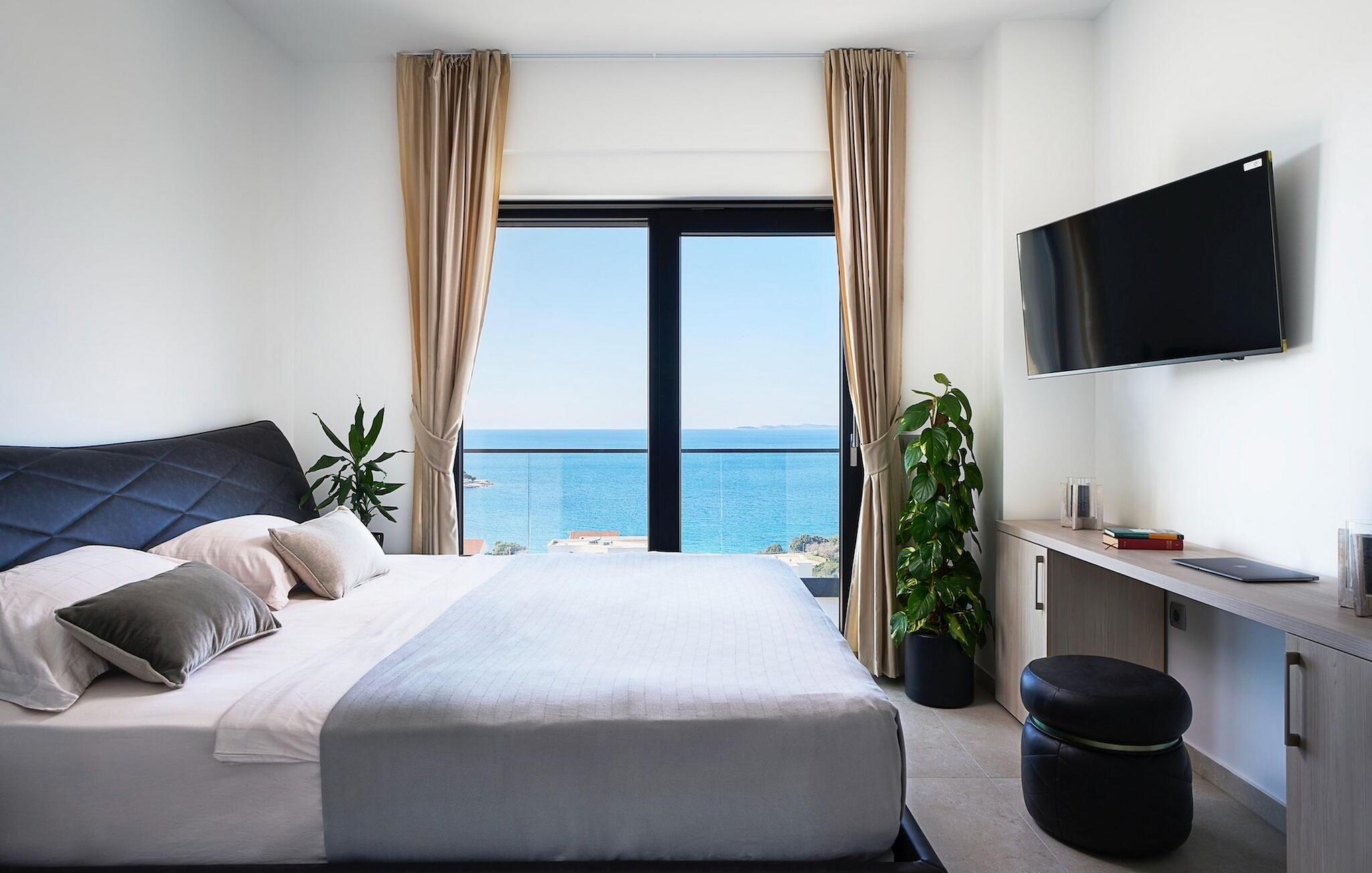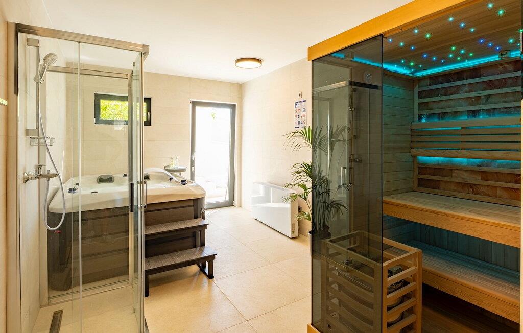 Andre faciliteter, du kan forvente, omfatter en sauna med spabad, et billardrum med bar og tv samt et privat fitnessområde. Et af de komfortable, elegant designede dobbeltværelser ligger i stueetagen, de 3 andre er på øverste etage. Her finder du en stor altan, hvor du kan nyde din morgenkaffe med udsigt til det glitrende hav.