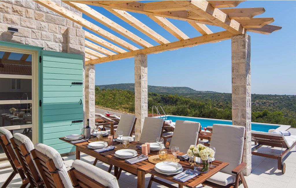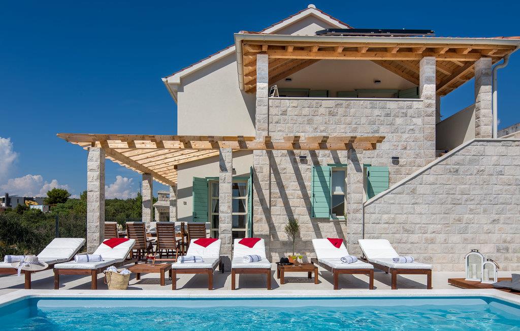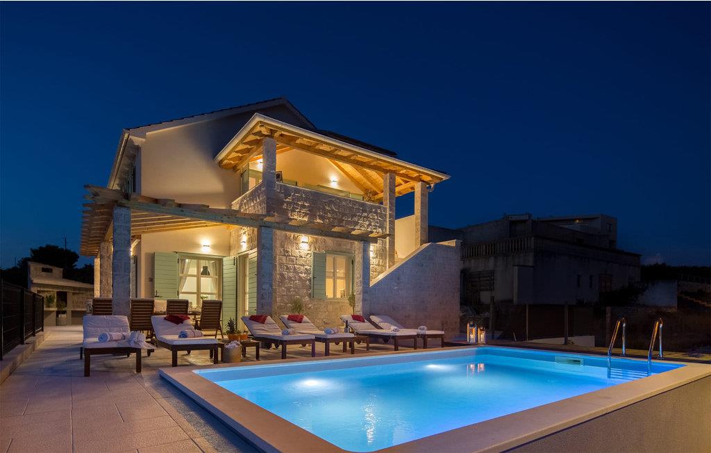 Dette moderne hus ligger i en traditionel dalmatisk feriedestination, og her er I garanteret en fremragende ferie. Der er lagt op til selvforkælelse og en pause fra hverdagen med et vennepar eller jeres udvidede familie i dette smagfuldt og kærligt indrettede hus, hvor I kan glæde jer til både hygge og komfort. Med bløde farver og møbler af høj kvalitet kan I simpelthen ikke undgå at slappe af her og nyde godt af privatliv såvel som social samvær.