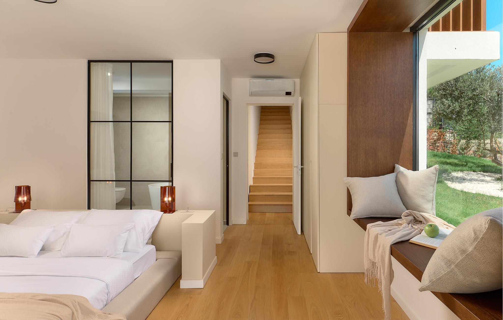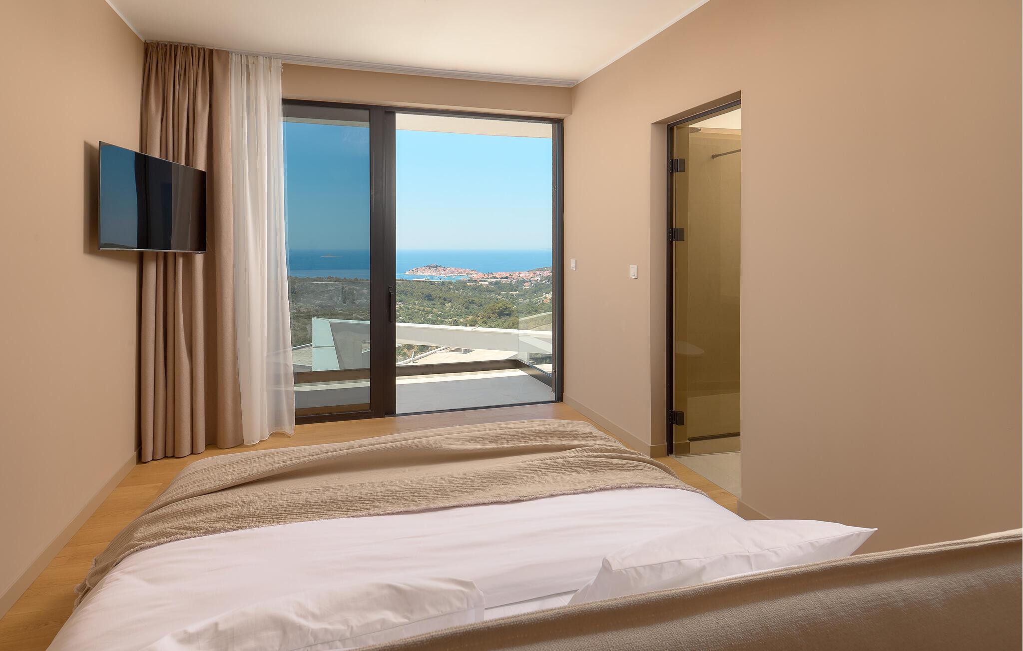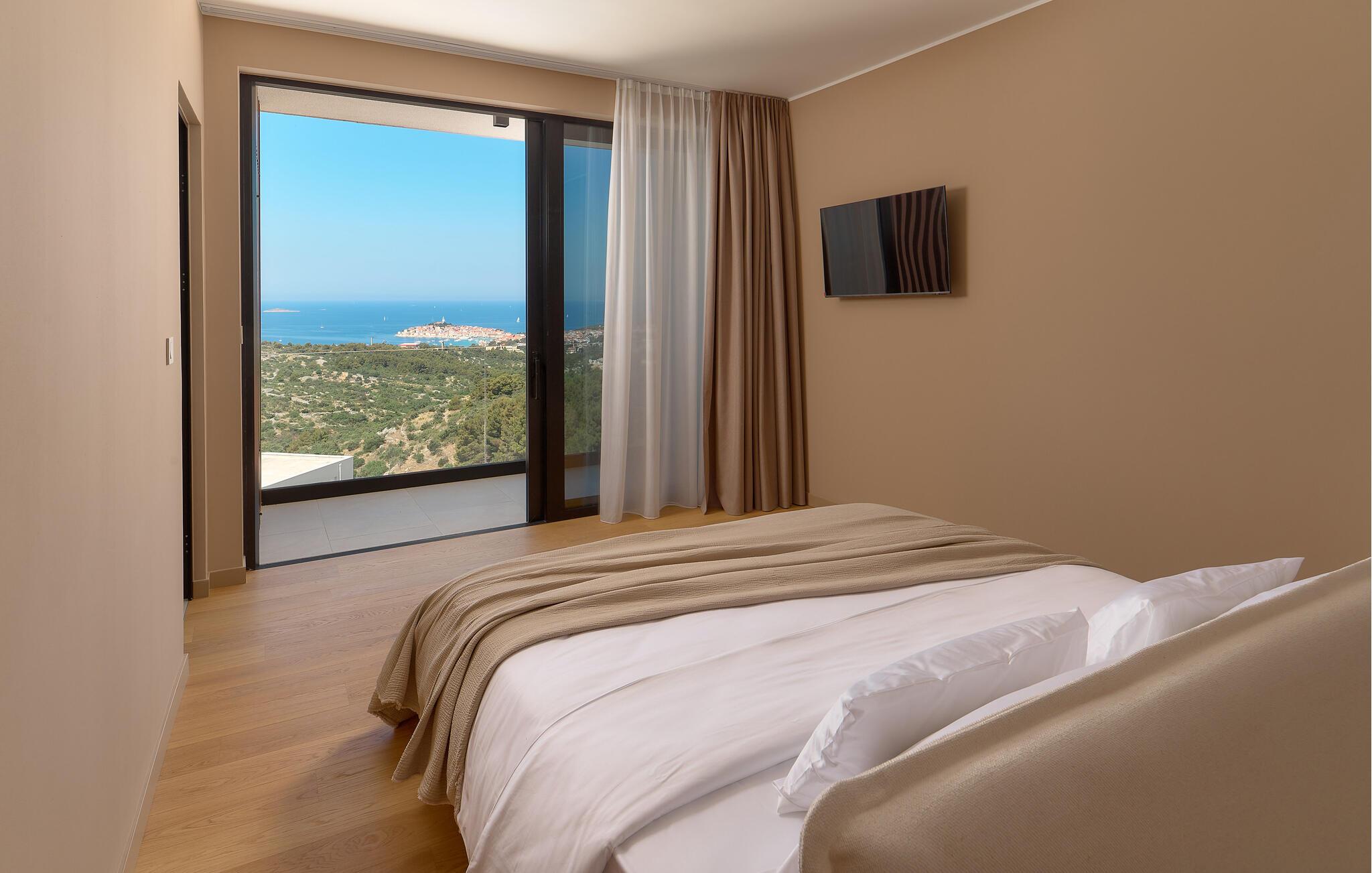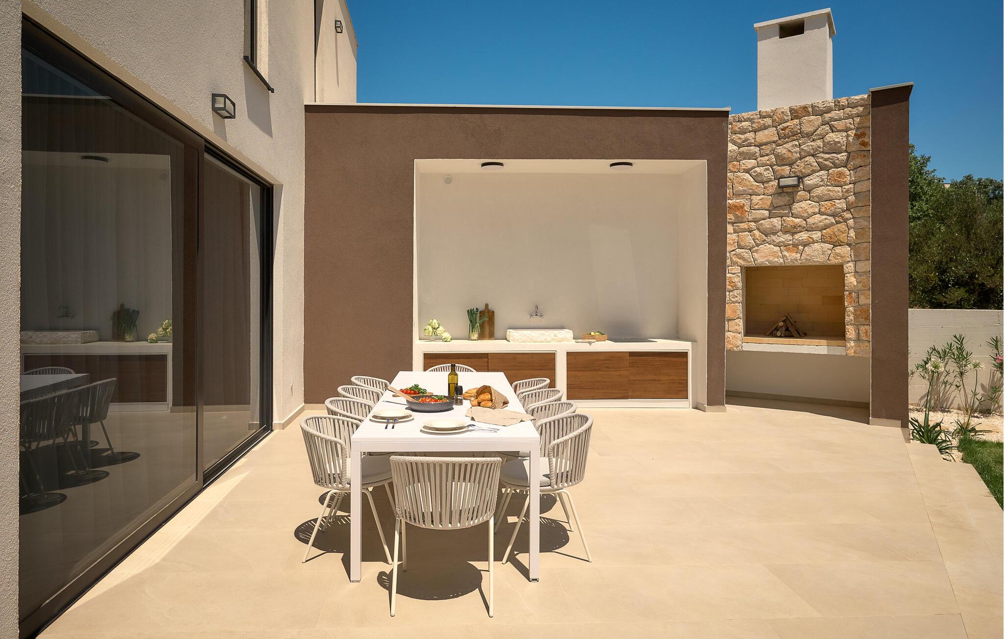 Udenfor kan I nyde panoramaudsigten over Adriaterhavet. Dyk ned i infinity-poolen, der tilsyneladende smelter sammen med horisonten eller slap af på en af ??de stilfulde liggestole på solterrassen. Den velholdte have tilbyder afslapning med moderne siddepladser, mens sommerkøkkenet med grill lægger op til at nyde måltider sammen under stjernerne. Om aftenen skaber den diskrete belysning en behagelig atmosfære, mens I tilbringer hyggelige timer i spabadet.