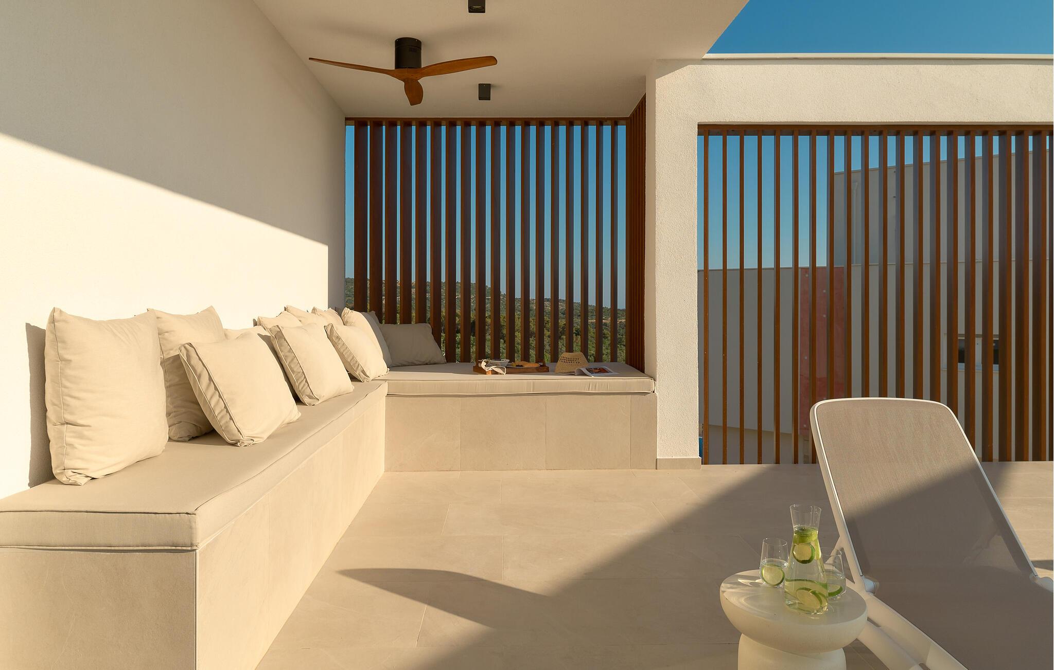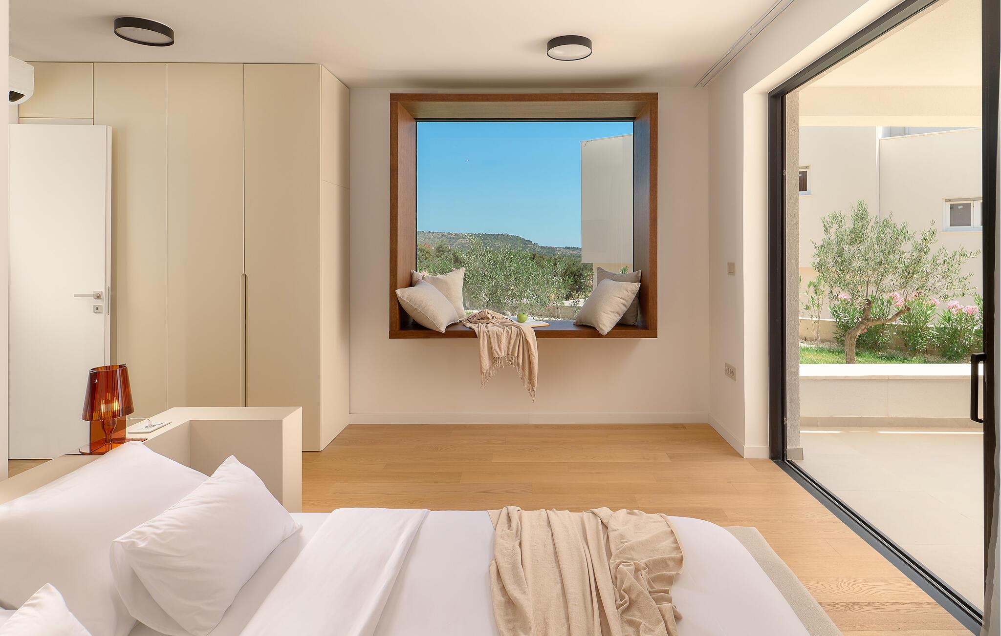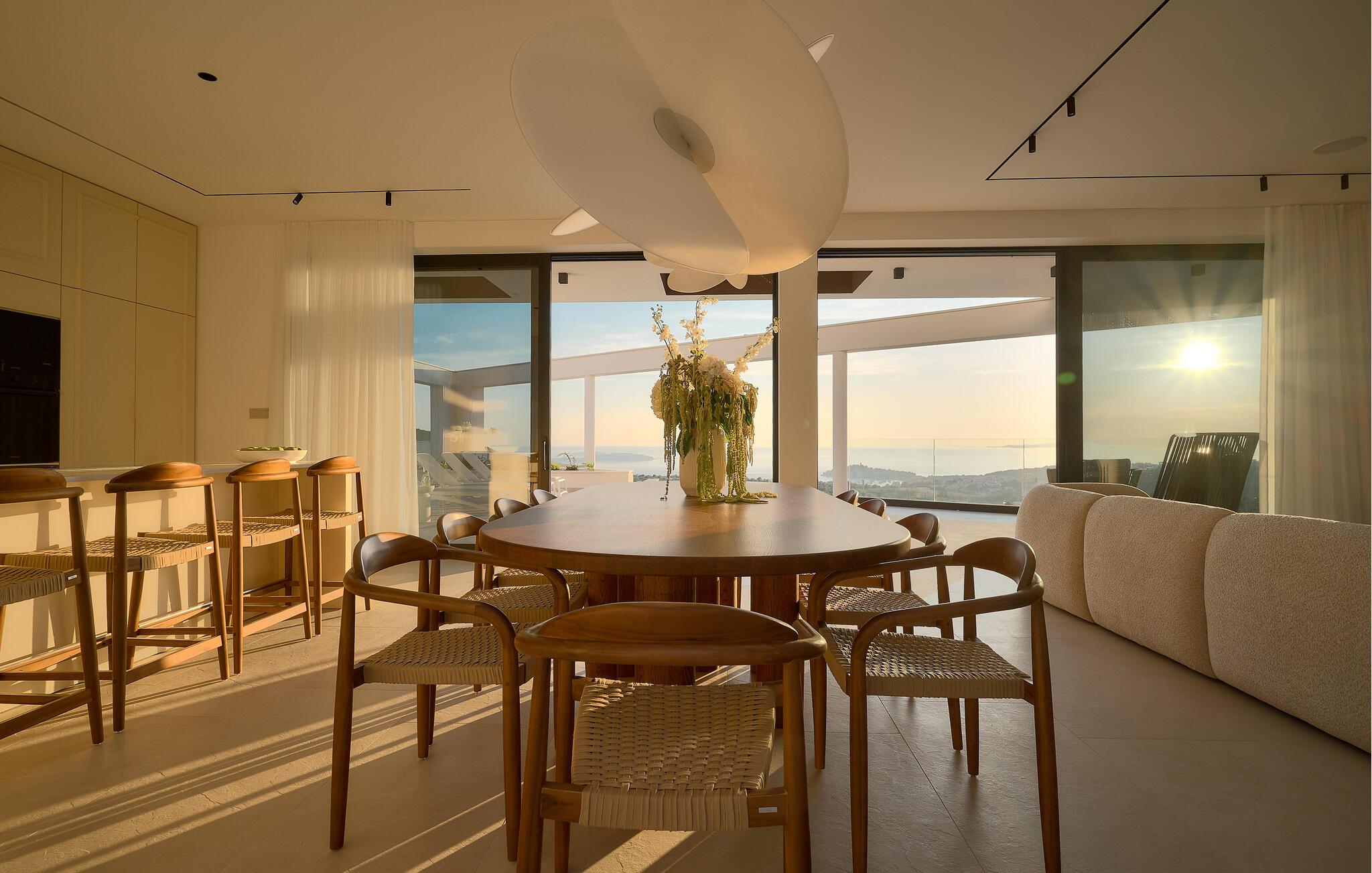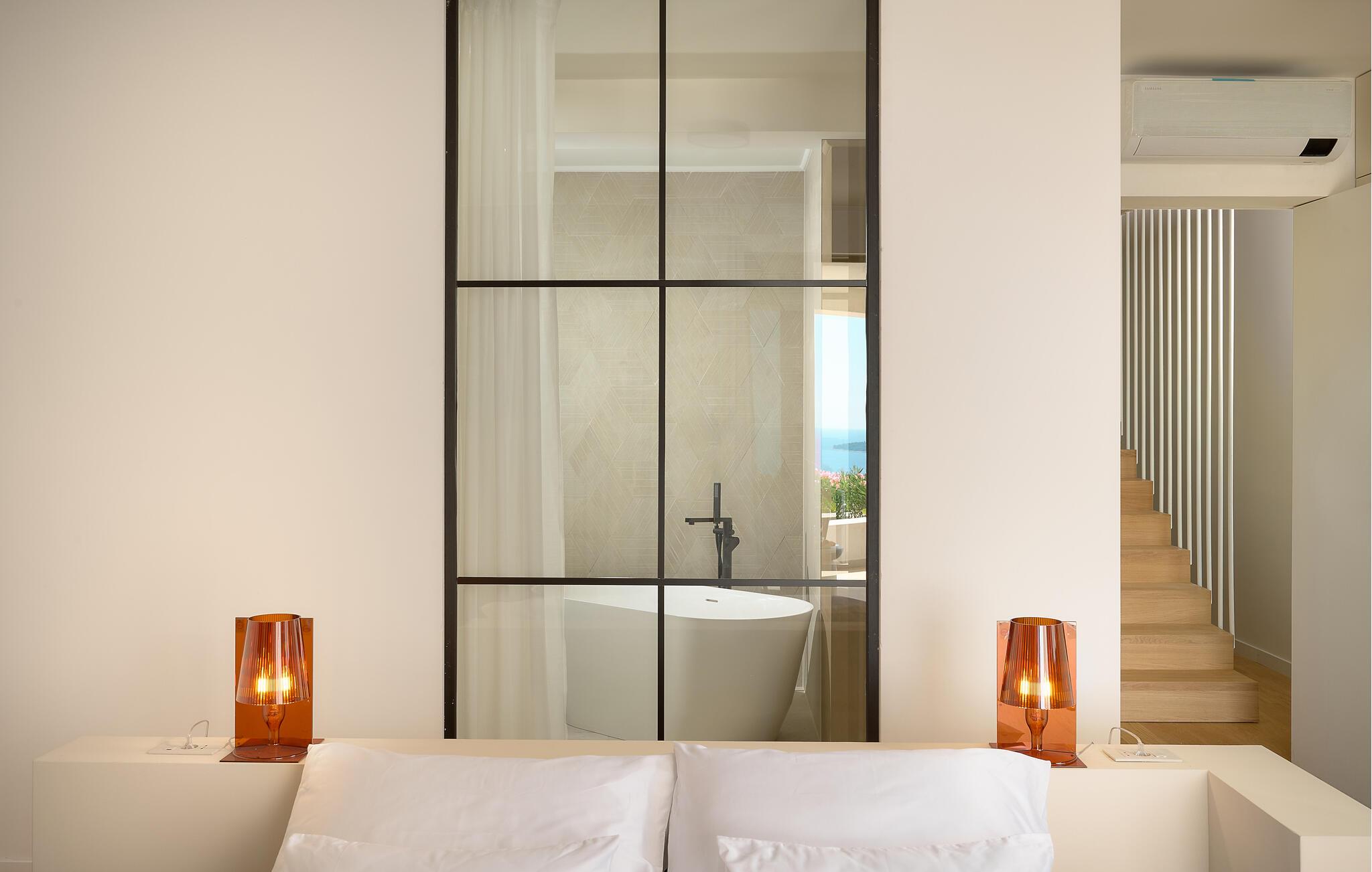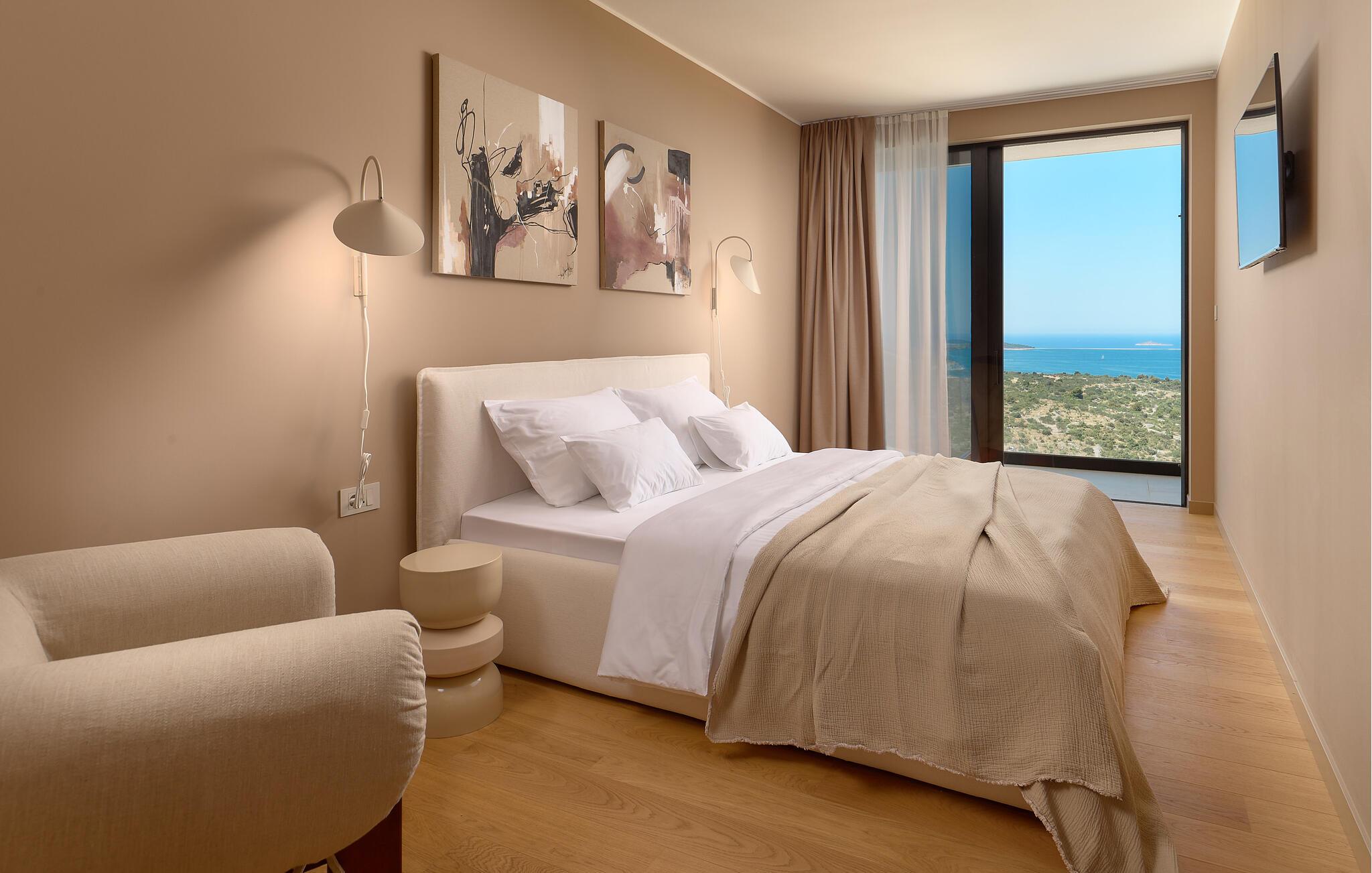 Udenfor kan I nyde panoramaudsigten over Adriaterhavet. Dyk ned i infinity-poolen, der tilsyneladende smelter sammen med horisonten eller slap af på en af ??de stilfulde liggestole på solterrassen. Den velholdte have tilbyder afslapning med moderne siddepladser, mens sommerkøkkenet med grill lægger op til at nyde måltider sammen under stjernerne. Om aftenen skaber den diskrete belysning en behagelig atmosfære, mens I tilbringer hyggelige timer i spabadet.