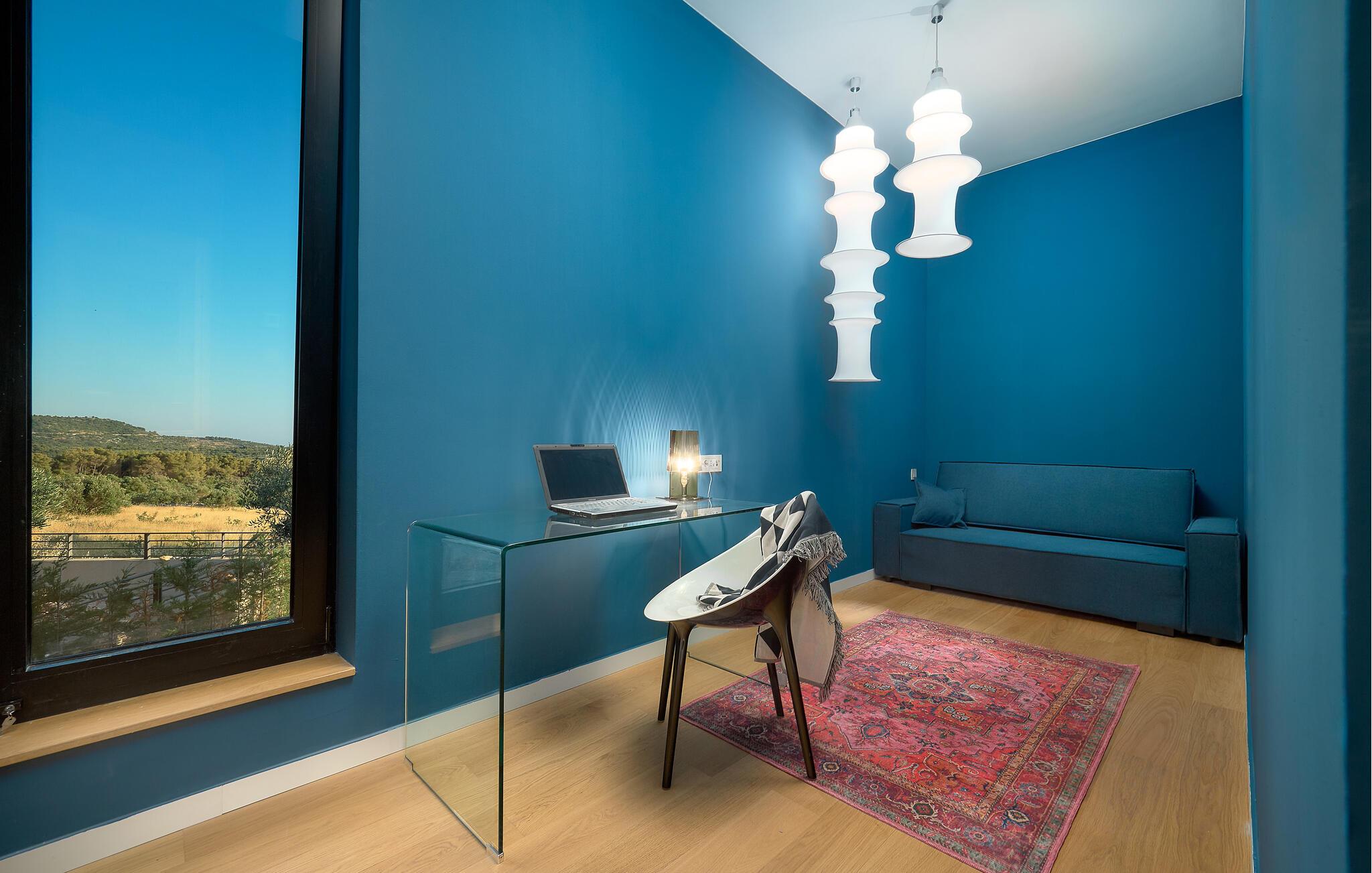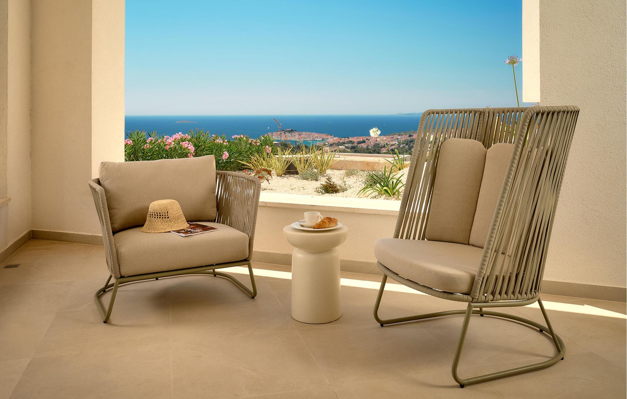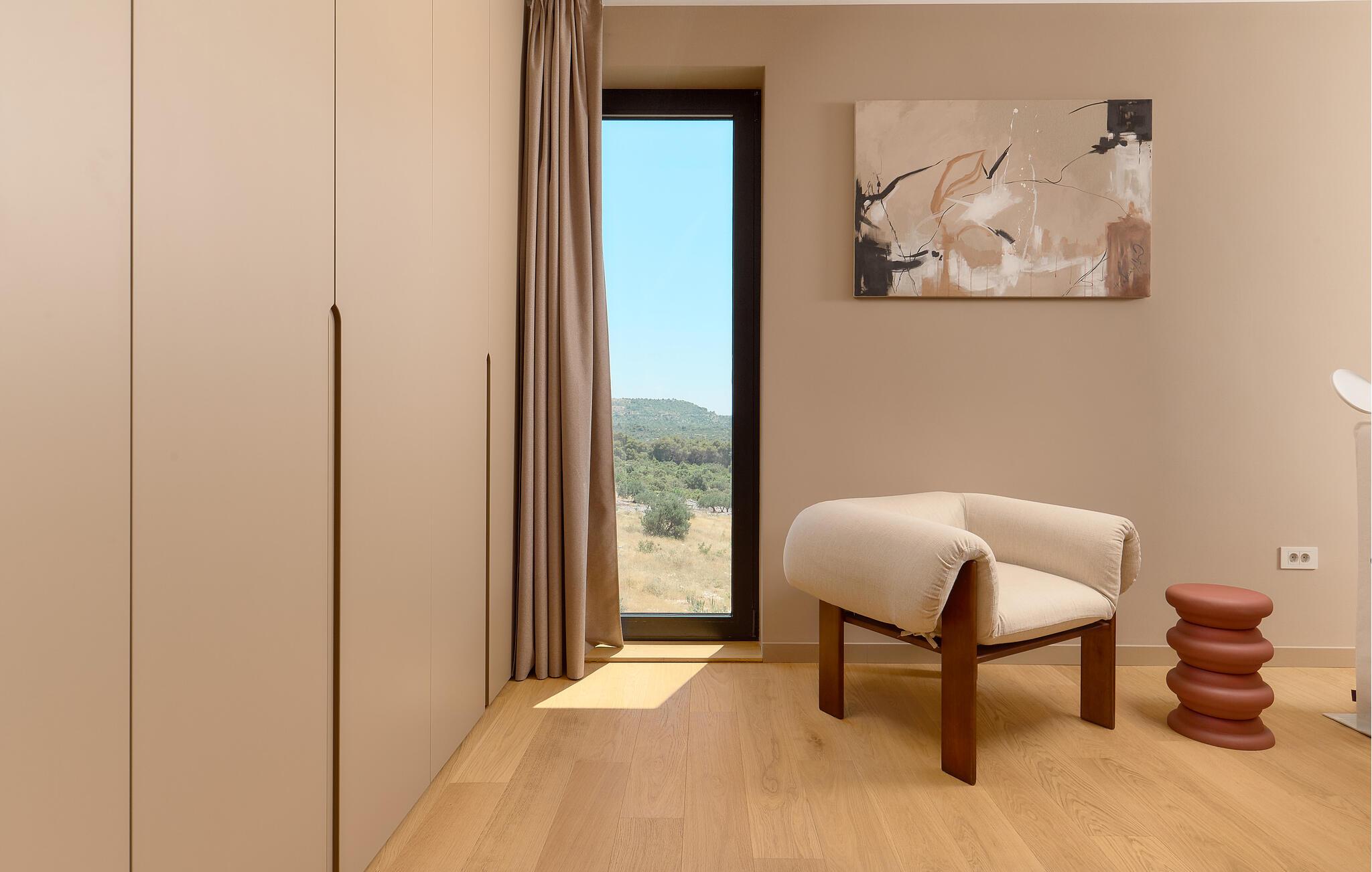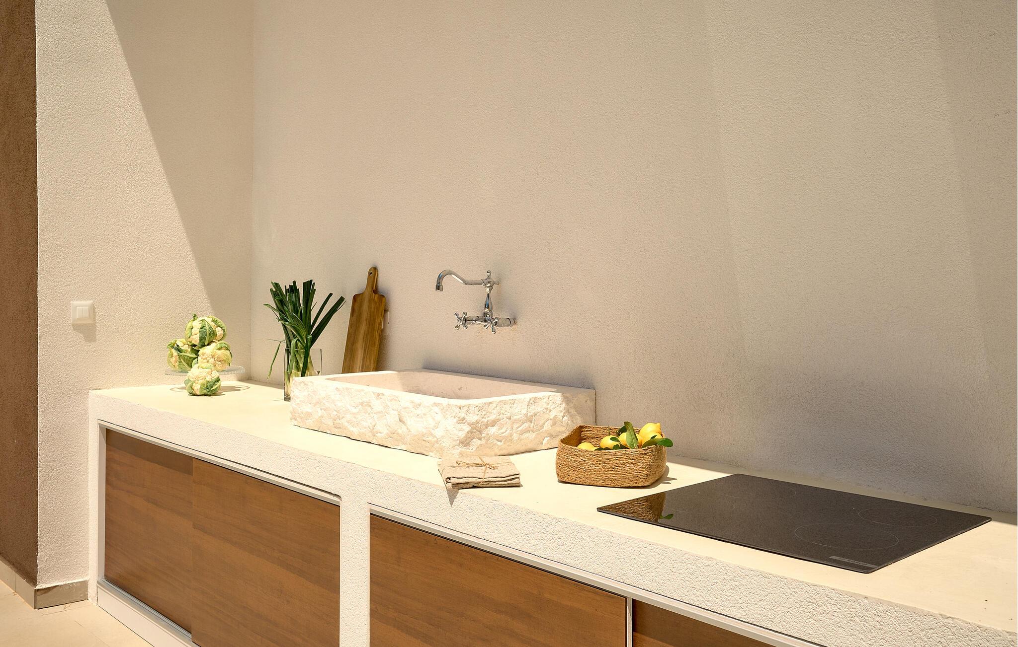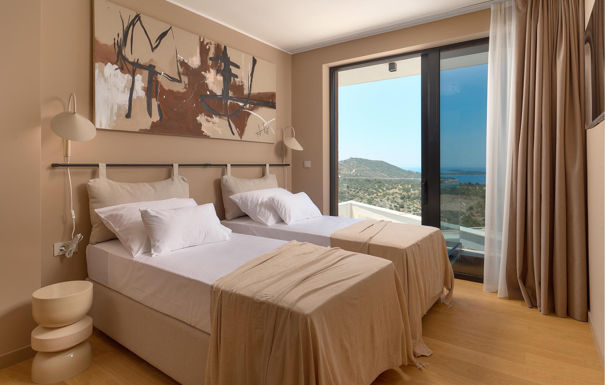 Udenfor kan I nyde panoramaudsigten over Adriaterhavet. Dyk ned i infinity-poolen, der tilsyneladende smelter sammen med horisonten eller slap af på en af ??de stilfulde liggestole på solterrassen. Den velholdte have tilbyder afslapning med moderne siddepladser, mens sommerkøkkenet med grill lægger op til at nyde måltider sammen under stjernerne. Om aftenen skaber den diskrete belysning en behagelig atmosfære, mens I tilbringer hyggelige timer i spabadet.