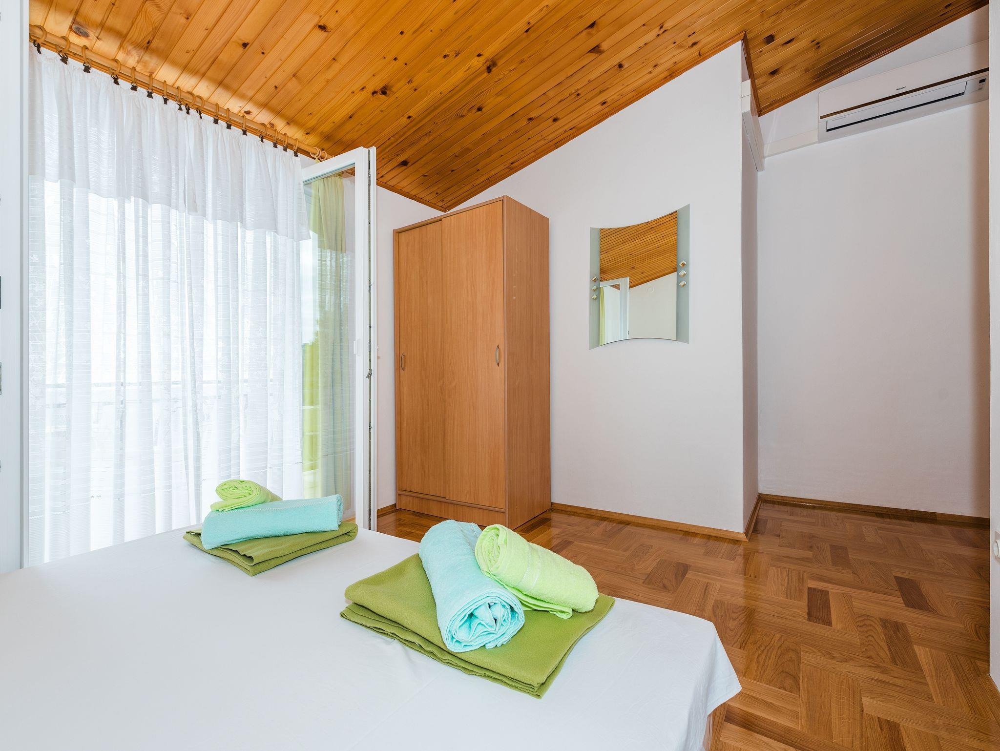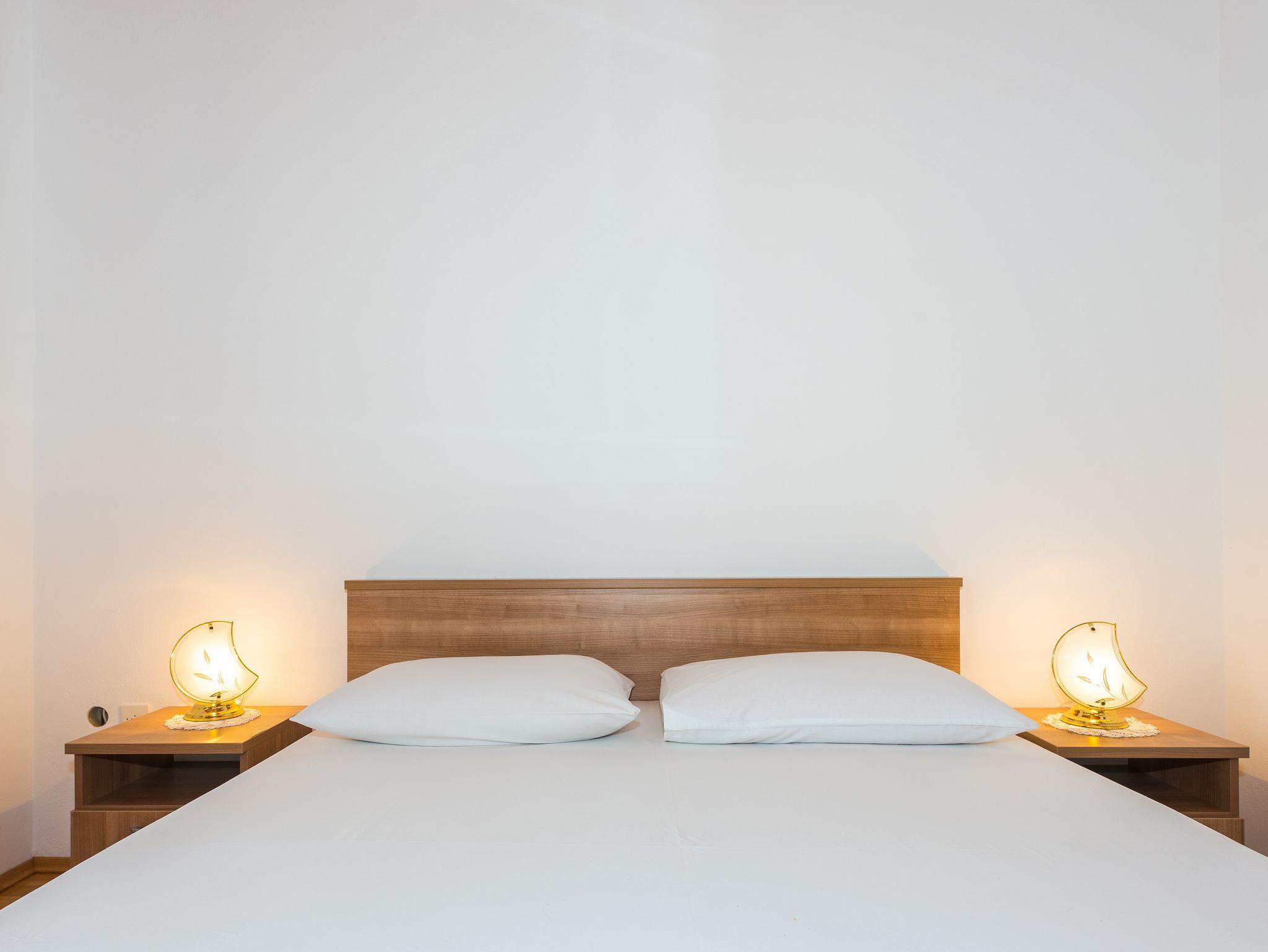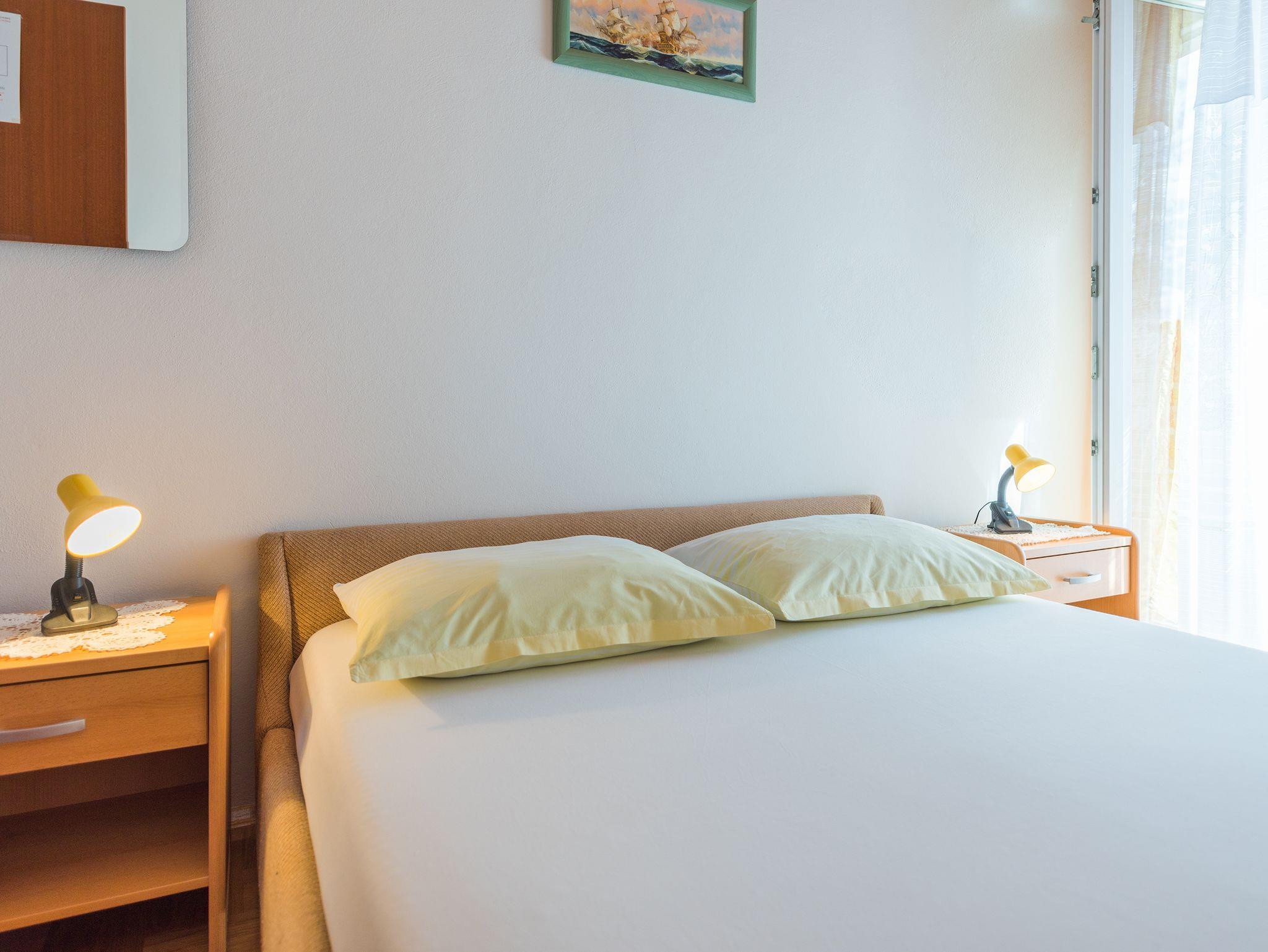 Ferienwohnung bietet Platz für 10 Gäste. Die Betten sind in Schlafzimmern, die es 4 gibt, innerhalb einer Gesamtfläche von 74m2, angeordnet. Die Gäste haben eine eigene Terrasse zur Verfügung, auf der sie in warmen Sommernächten genießen können. Das Apartment bietet Meerblick. Es ist erlaubt, Speisen auf dem Gemeinschafts-Grill vorzubereiten. IM PREIS INBEGRIFFEN: Kurtaxe, Endreinigung, Klimatisierung, Parkplatz, Internet, Bootsanlegeplatz, Bügeleisen, Föhn. VERBINDLICHE ZUSÄTZLICHE KOSTEN: Aufzahlung für Kurzaufenthalte (prozentualer Zuschlag pro Nächtigungsanzahl: 30% - 1, 20% - 2, 10% - 3). UNVERBINDLICHE ZUSÄTZLICHE KOSTEN: Zusatzbett (20,00 € pro Nacht). Die Verfügbarkeit zusätzlicher Dienstleistungen in Ihrem reservierten Termin und die Preise derselben (falls nicht aufgeführt) müssen im Voraus überprüft werden. Zusätzliche Dienstleistungen die in der Zahlungsaufforderung nicht aufgeführt sind werden direkt beim Vermieter bezahlt, angenommen der Gast nutzt auch diese. Ermäßigung auf den Grundpreis: Gratistag 14=13 (bei einem Aufenthalt von 14 Tagen oder mehr erhalten Sie einen Gratistag für den Aufenthalt bis 31.12.26).