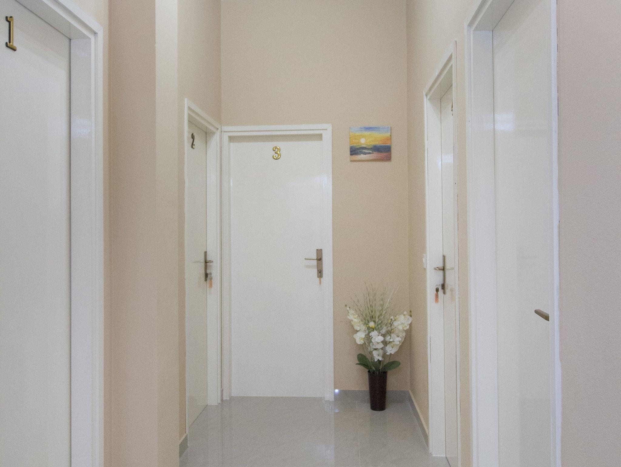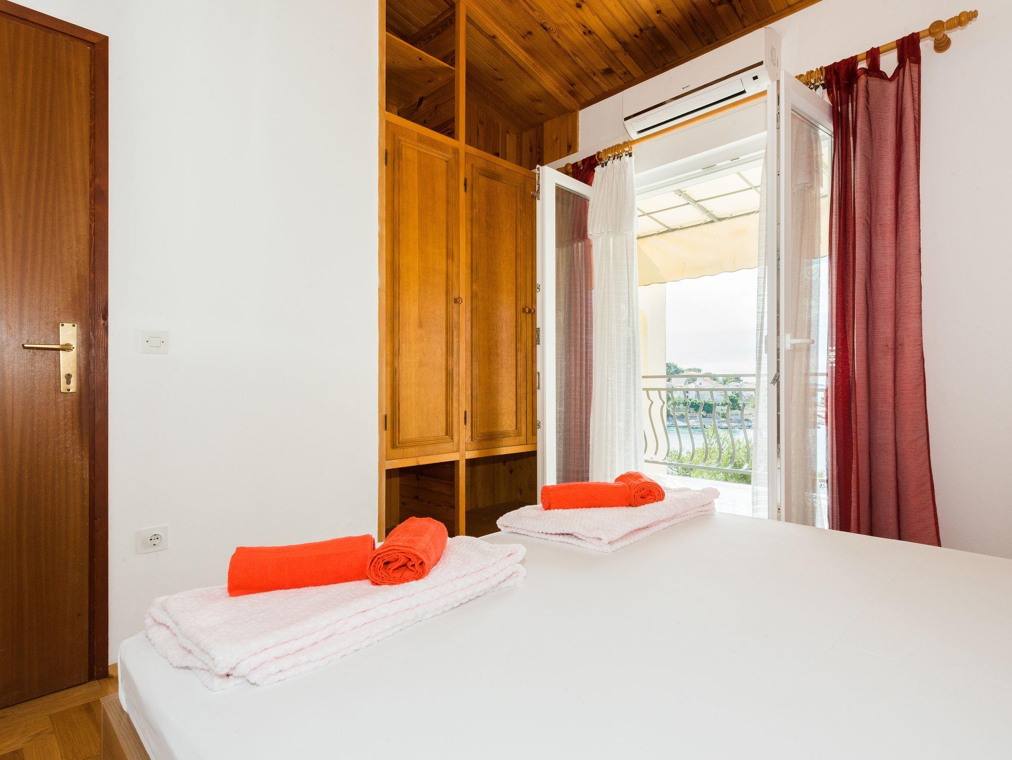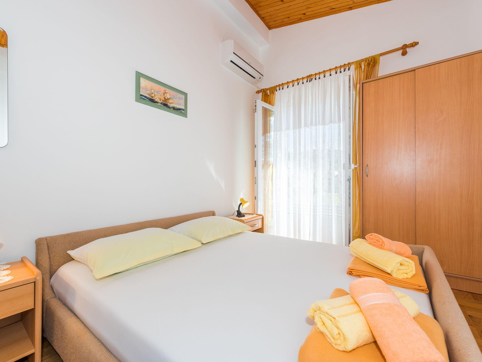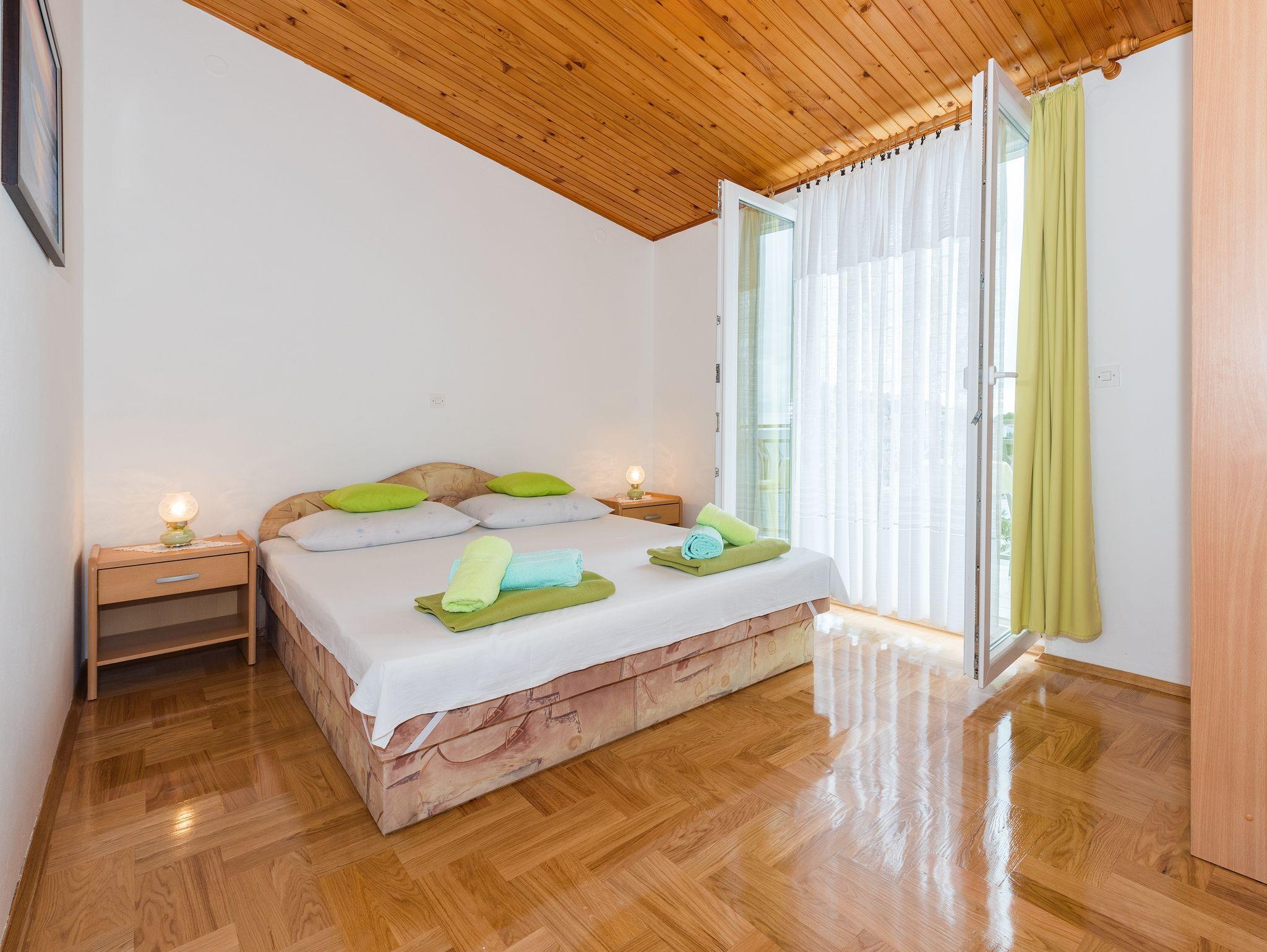Ferienwohnung bietet Platz für 10 Gäste. Die Betten sind in Schlafzimmern, die es 4 gibt, innerhalb einer Gesamtfläche von 74m2, angeordnet. Die Gäste haben eine eigene Terrasse zur Verfügung, auf der sie in warmen Sommernächten genießen können. Das Apartment bietet Meerblick. Es ist erlaubt, Speisen auf dem Gemeinschafts-Grill vorzubereiten. IM PREIS INBEGRIFFEN: Kurtaxe, Endreinigung, Klimatisierung, Parkplatz, Internet, Bootsanlegeplatz, Bügeleisen, Föhn. VERBINDLICHE ZUSÄTZLICHE KOSTEN: Aufzahlung für Kurzaufenthalte (prozentualer Zuschlag pro Nächtigungsanzahl: 30% - 1, 20% - 2, 10% - 3). UNVERBINDLICHE ZUSÄTZLICHE KOSTEN: Zusatzbett (20,00 € pro Nacht). Die Verfügbarkeit zusätzlicher Dienstleistungen in Ihrem reservierten Termin und die Preise derselben (falls nicht aufgeführt) müssen im Voraus überprüft werden. Zusätzliche Dienstleistungen die in der Zahlungsaufforderung nicht aufgeführt sind werden direkt beim Vermieter bezahlt, angenommen der Gast nutzt auch diese. Ermäßigung auf den Grundpreis: Gratistag 14=13 (bei einem Aufenthalt von 14 Tagen oder mehr erhalten Sie einen Gratistag für den Aufenthalt bis 31.12.26).
