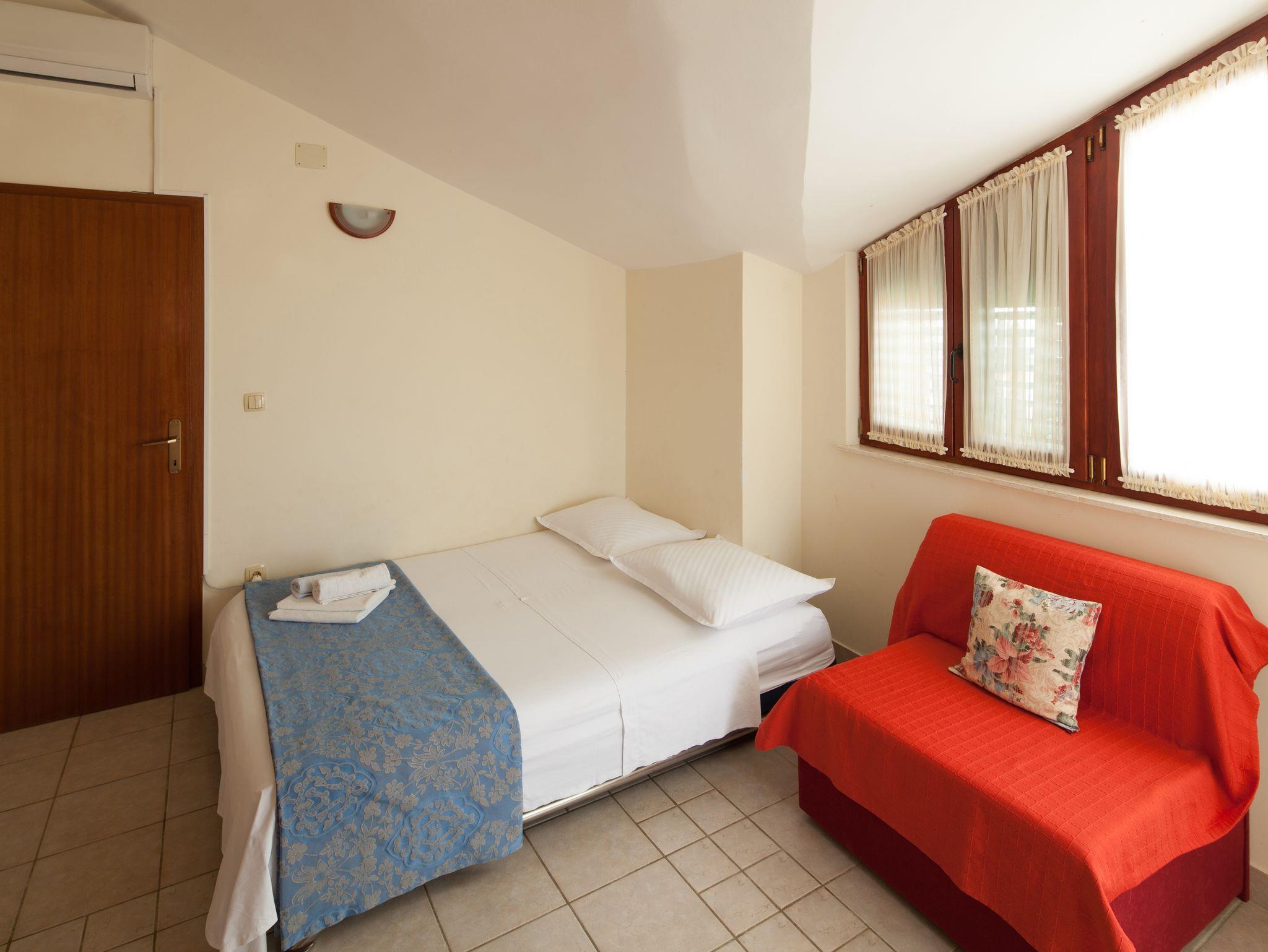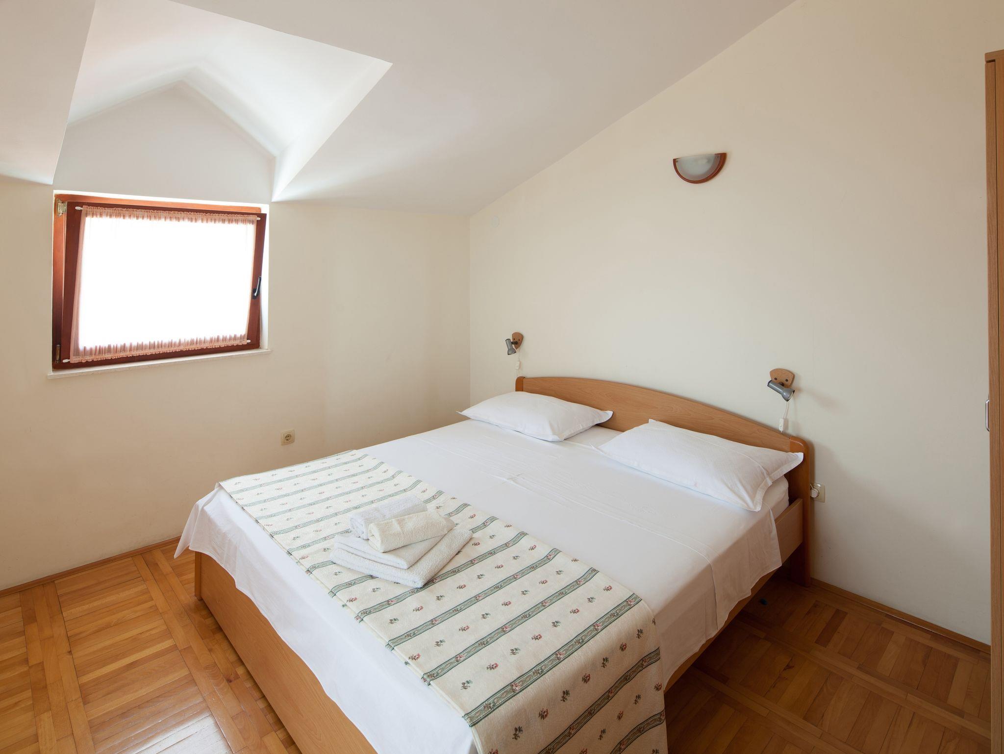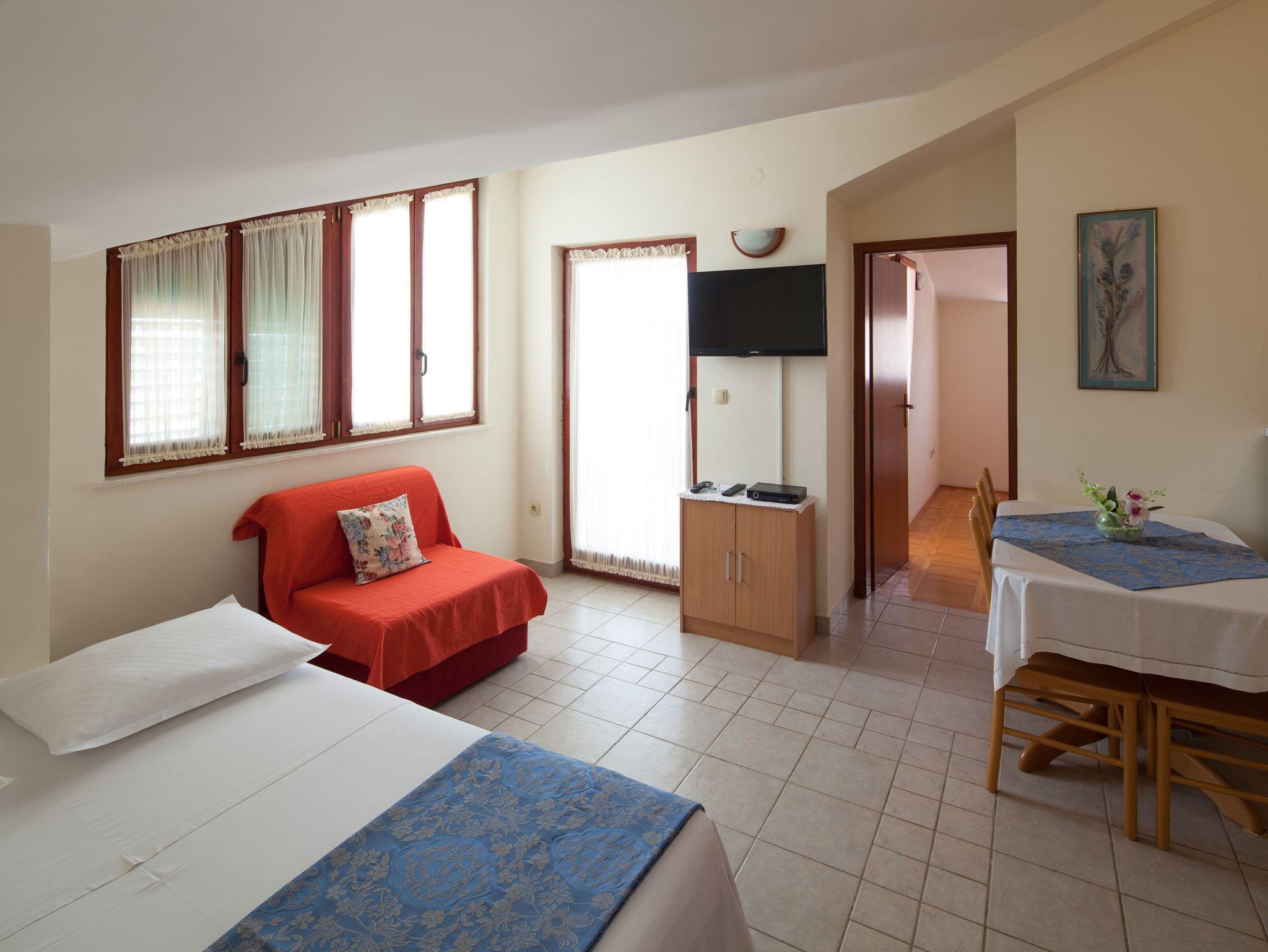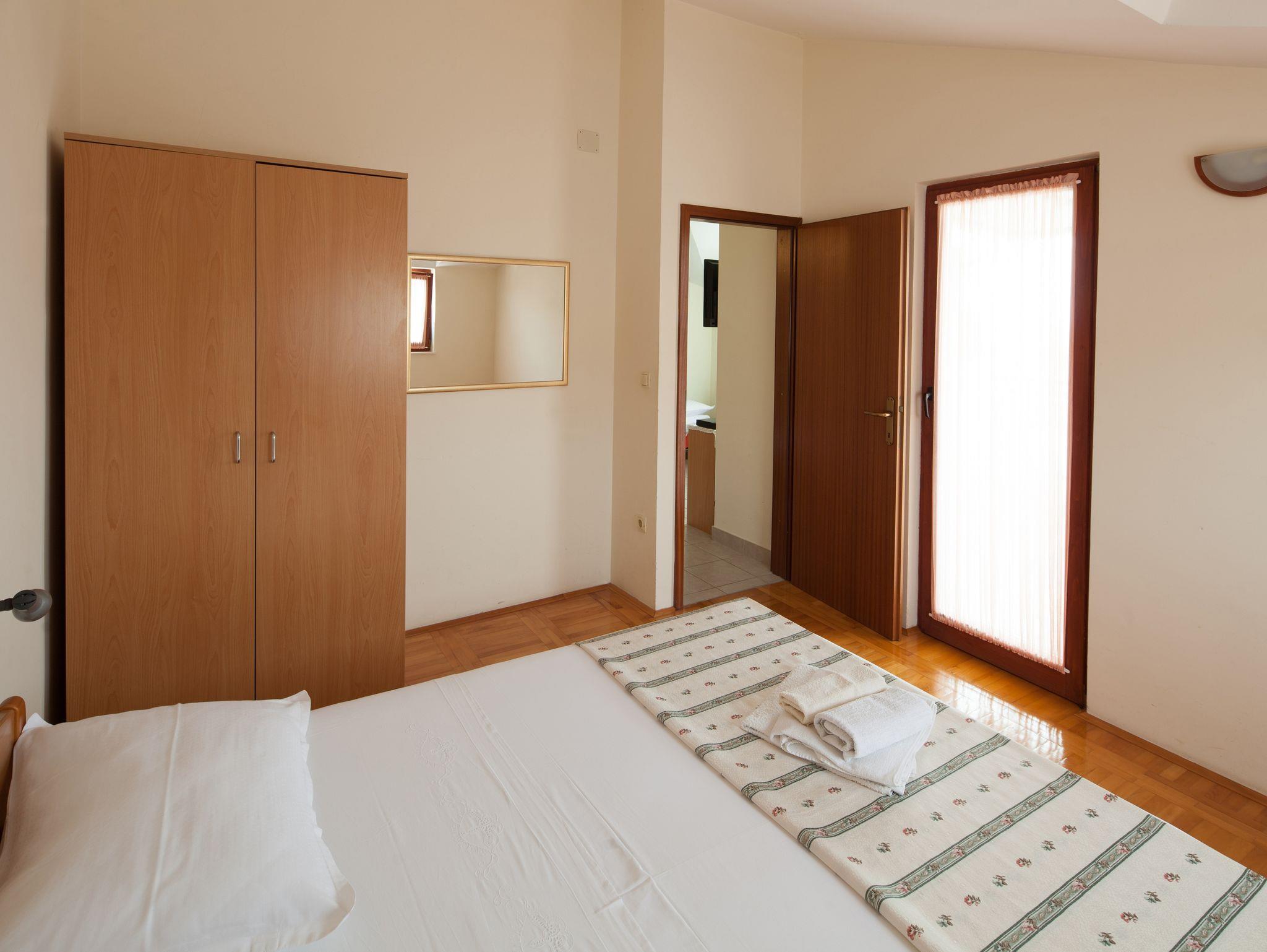 Ferienwohnung bietet Platz für 4 Gäste. Die Betten sind in Schlafzimmern, die es 1 gibt, und in Wohnzimmer, innerhalb einer Gesamtfläche von 31m2, angeordnet. Die Gäste haben eine eigene Terrasse zur Verfügung, auf der sie in warmen Sommernächten genießen können. Das Apartment bietet Meerblick. Es ist erlaubt, Speisen auf dem Gemeinschafts-Grill vorzubereiten. In der Unterkunftseinheit besteht die Möglichkeit des Mitbringens von Haustieren gegen Aufpreis. IM PREIS INBEGRIFFEN: Kurtaxe, Endreinigung, Parkplatz, Garage, Internet, Kinderbett, Bügeleisen, Bügelbrett, Föhn, Liegestühle. VERBINDLICHE ZUSÄTZLICHE KOSTEN: Aufzahlung für Kurzaufenthalte (prozentualer Zuschlag pro Nächtigungsanzahl: 30% - 1, 20% - 2, 10% - 3). UNVERBINDLICHE ZUSÄTZLICHE KOSTEN: Frühstück (10,00 €, 50% Nachlass für Kinder zwischen 4 und 12 Jahren, Kinder bis 4 Jahre sind frei.), Klimatisierung (7,00 € pro Nacht), Wäschewaschen (5,00 € Waschen), Haustiere (7,00 € pro Nacht). Die Verfügbarkeit zusätzlicher Dienstleistungen in Ihrem reservierten Termin und die Preise derselben (falls nicht aufgeführt) müssen im Voraus überprüft werden. Zusätzliche Dienstleistungen die in der Zahlungsaufforderung nicht aufgeführt sind werden direkt beim Vermieter bezahlt, angenommen der Gast nutzt auch diese.
