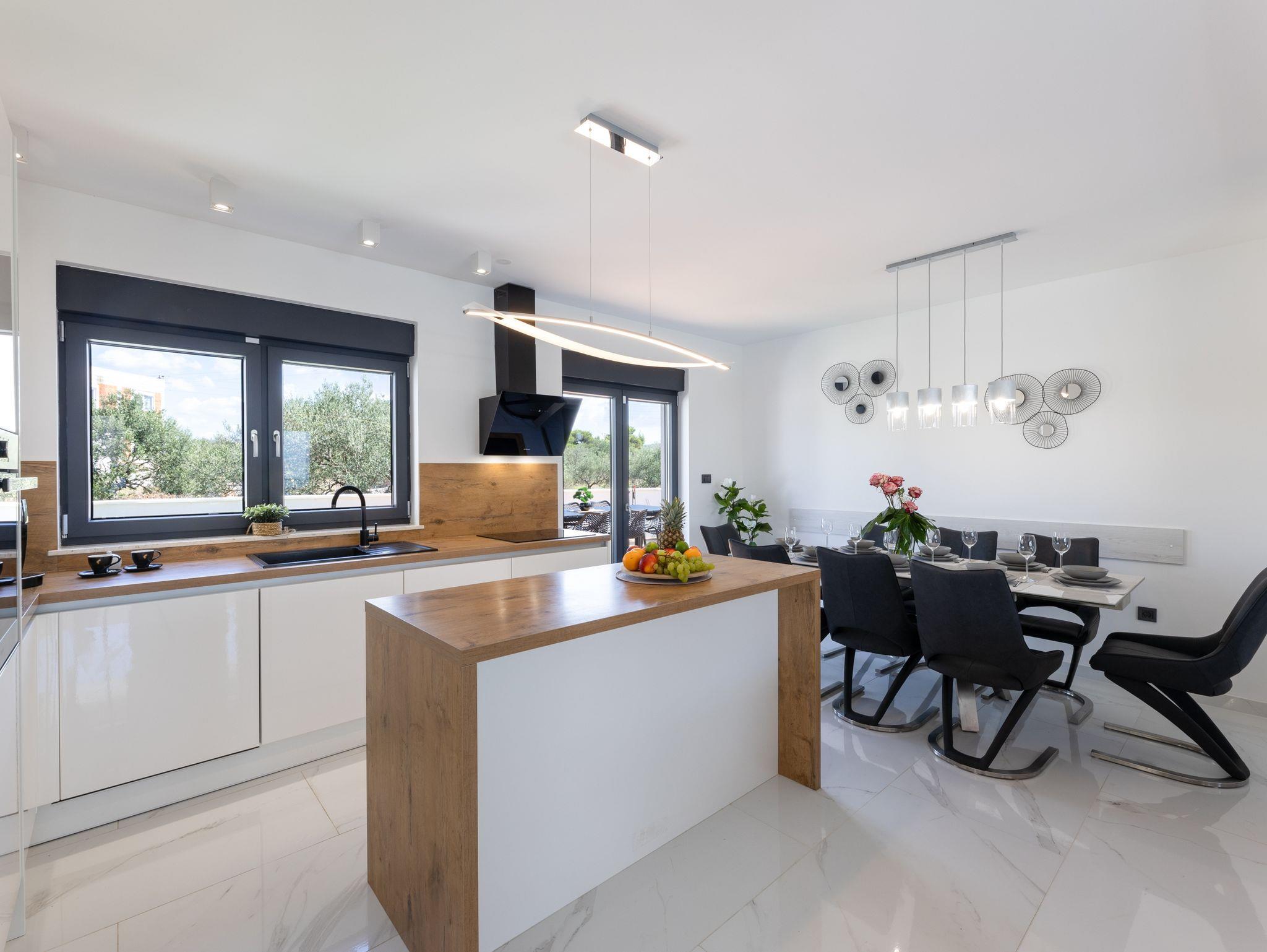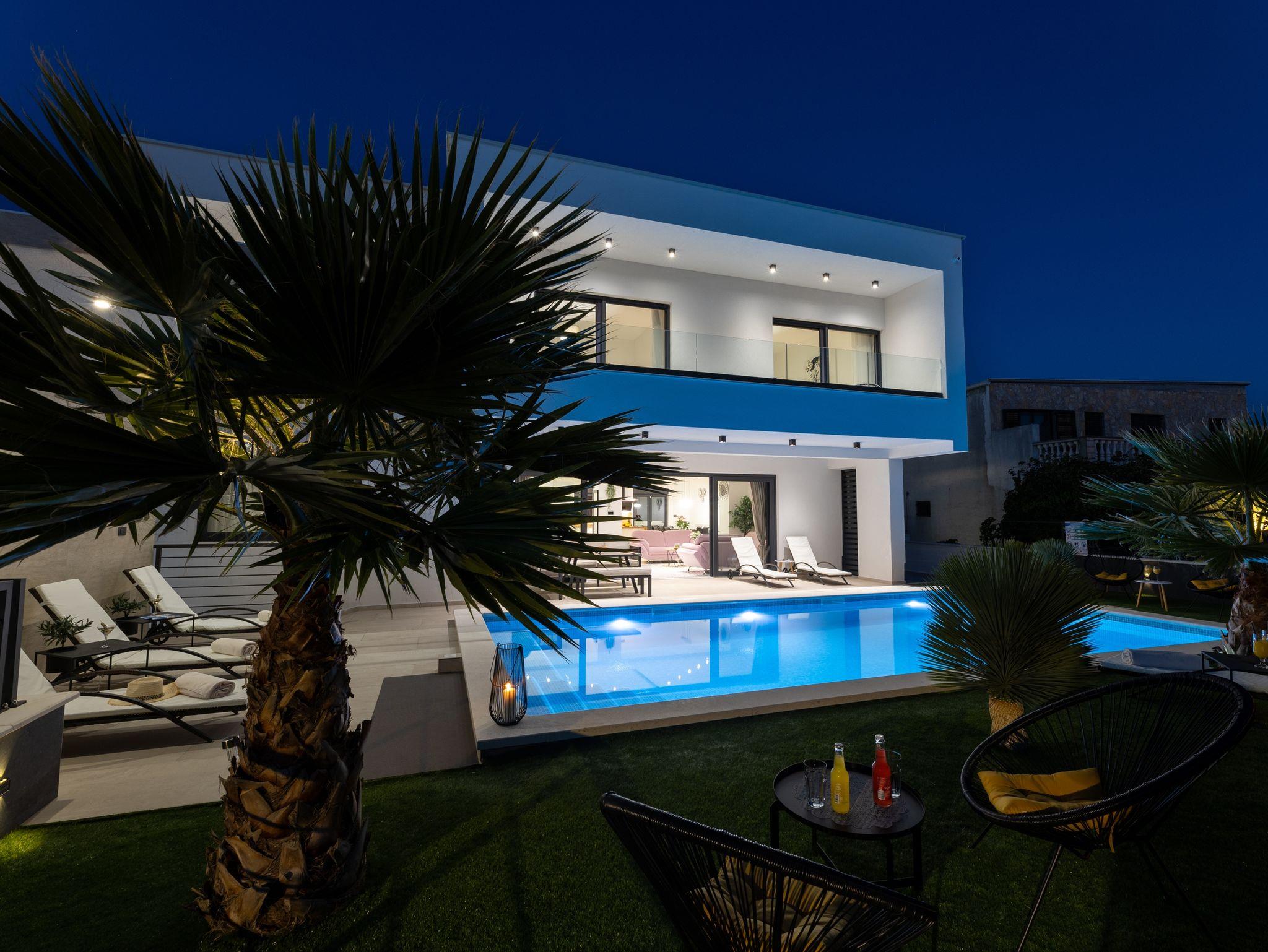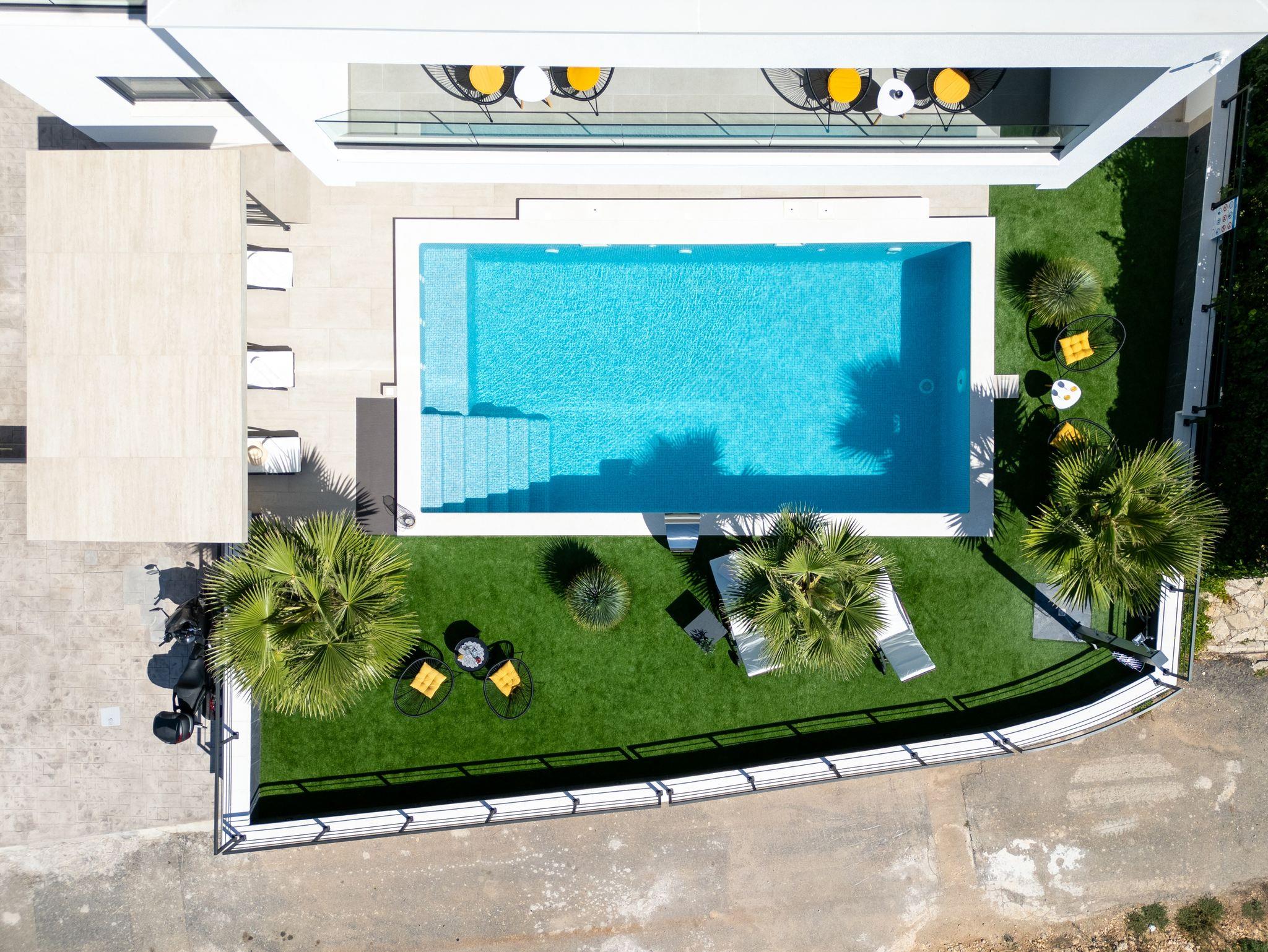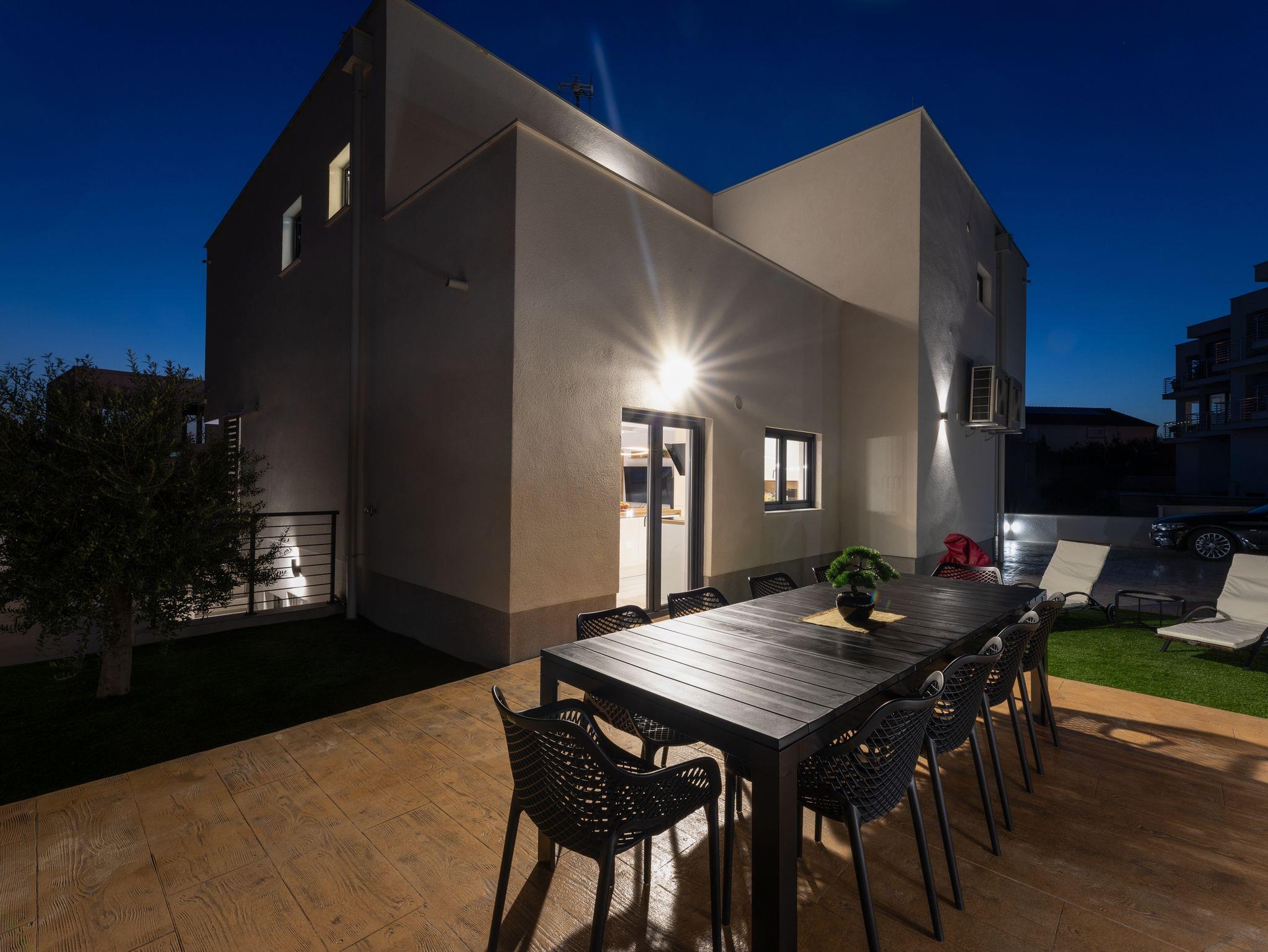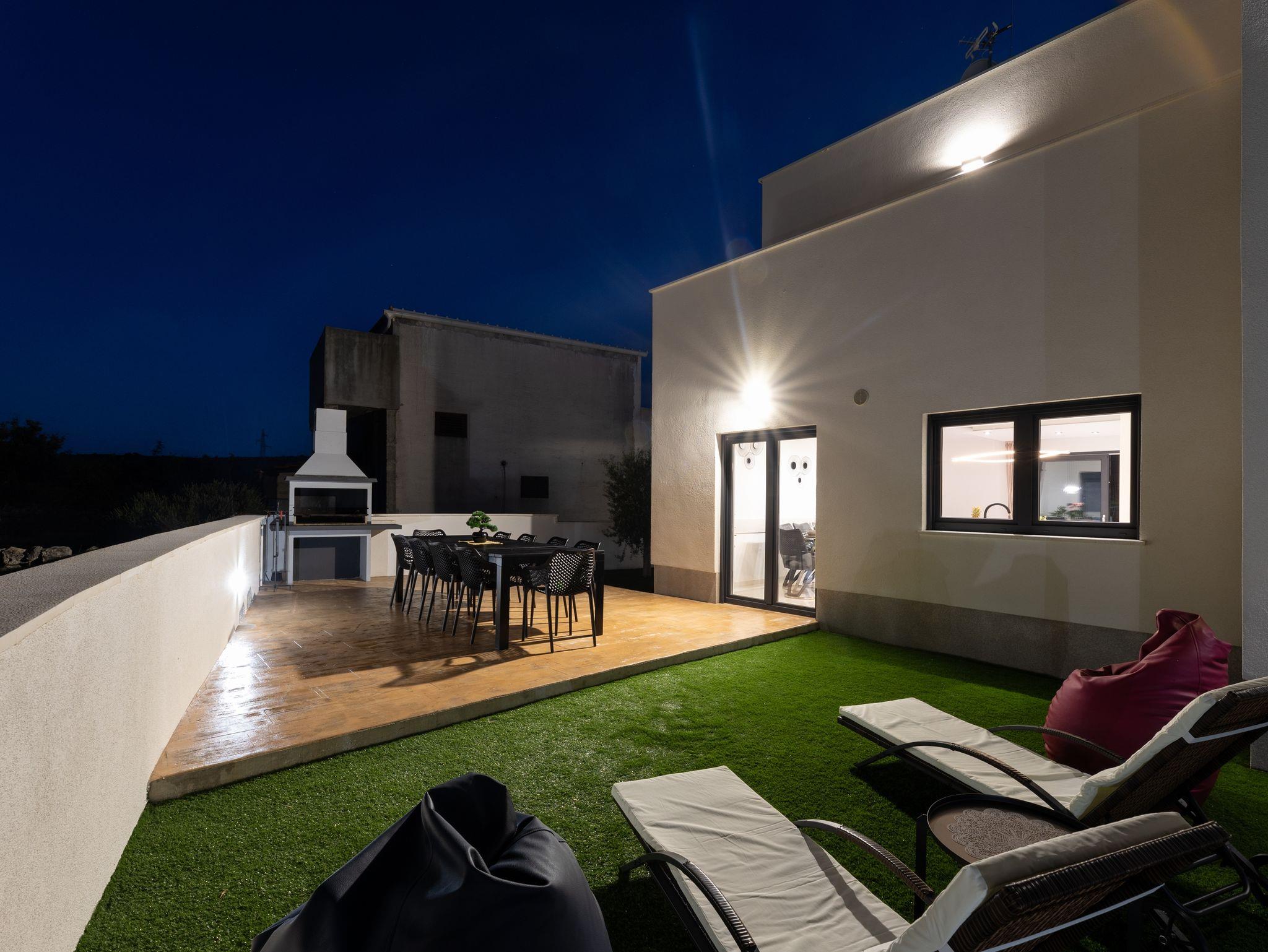 Haus bietet Platz für 10 Gäste. Die Betten sind in Schlafzimmern, die es 5 gibt, innerhalb einer Gesamtfläche von 181m2, angeordnet. Die Gäste haben eine eigene Terrasse zur Verfügung, auf der sie in warmen Sommernächten genießen können. Das Haus bietet Meerblick. Für vollen Genuss und Entspannung gibt es einen privaten Grill für Gäste dieser Unterkunft. Während ihres Aufenthalts können sich Gäste im privaten Schwimmbad entspannen. In der Unterkunftseinheit besteht die Möglichkeit des Mitbringens von Haustieren gegen Aufpreis. IM PREIS INBEGRIFFEN: Kurtaxe, Endreinigung, Klimatisierung, Pool, Parkplatz, Internet, Kinderbett, Zusatzbett, Bügeleisen, Bügelbrett, Föhn, Liegestühle. UNVERBINDLICHE ZUSÄTZLICHE KOSTEN: Haustiere (15,00 € pro Nacht). Die Verfügbarkeit zusätzlicher Dienstleistungen in Ihrem reservierten Termin und die Preise derselben (falls nicht aufgeführt) müssen im Voraus überprüft werden. Zusätzliche Dienstleistungen die in der Zahlungsaufforderung nicht aufgeführt sind werden direkt beim Vermieter bezahlt, angenommen der Gast nutzt auch diese. Ermäßigung auf den Grundpreis: Gratistag 28=25 (bei einem Aufenthalt von 28 oder mehr Tagen erhalten Sie 3 kostenlose Tage für den Aufenthalt bis 31.12.26).