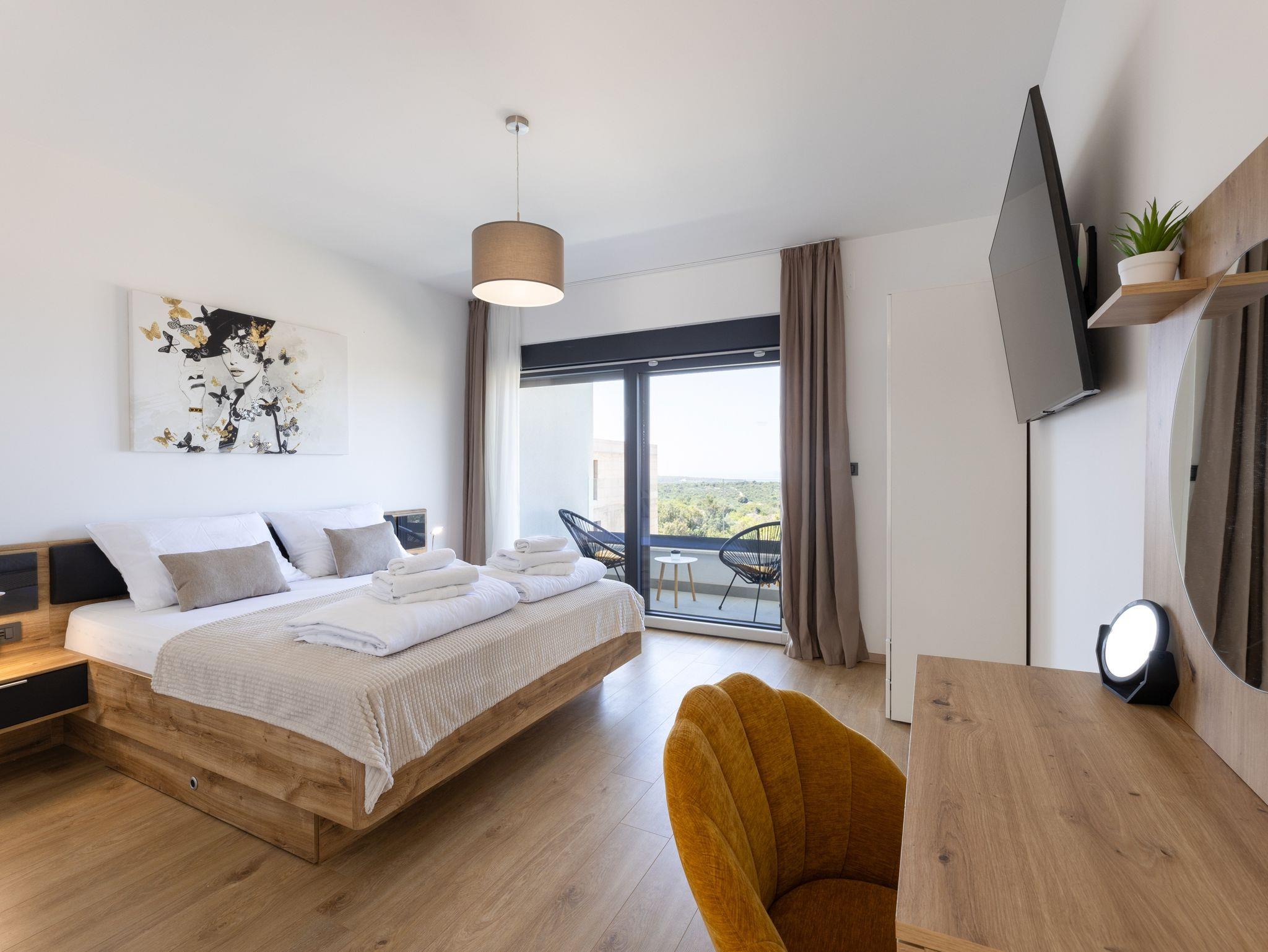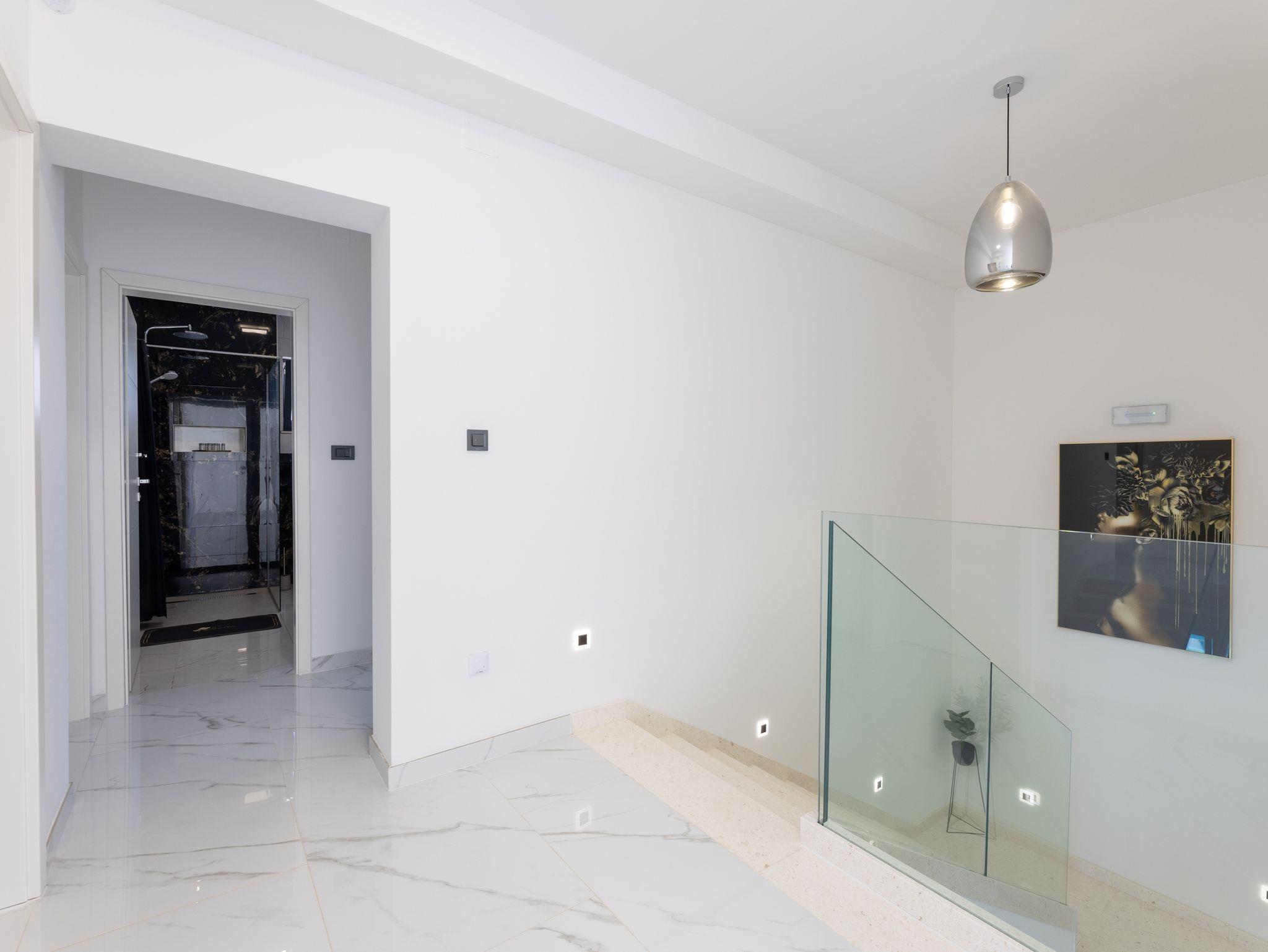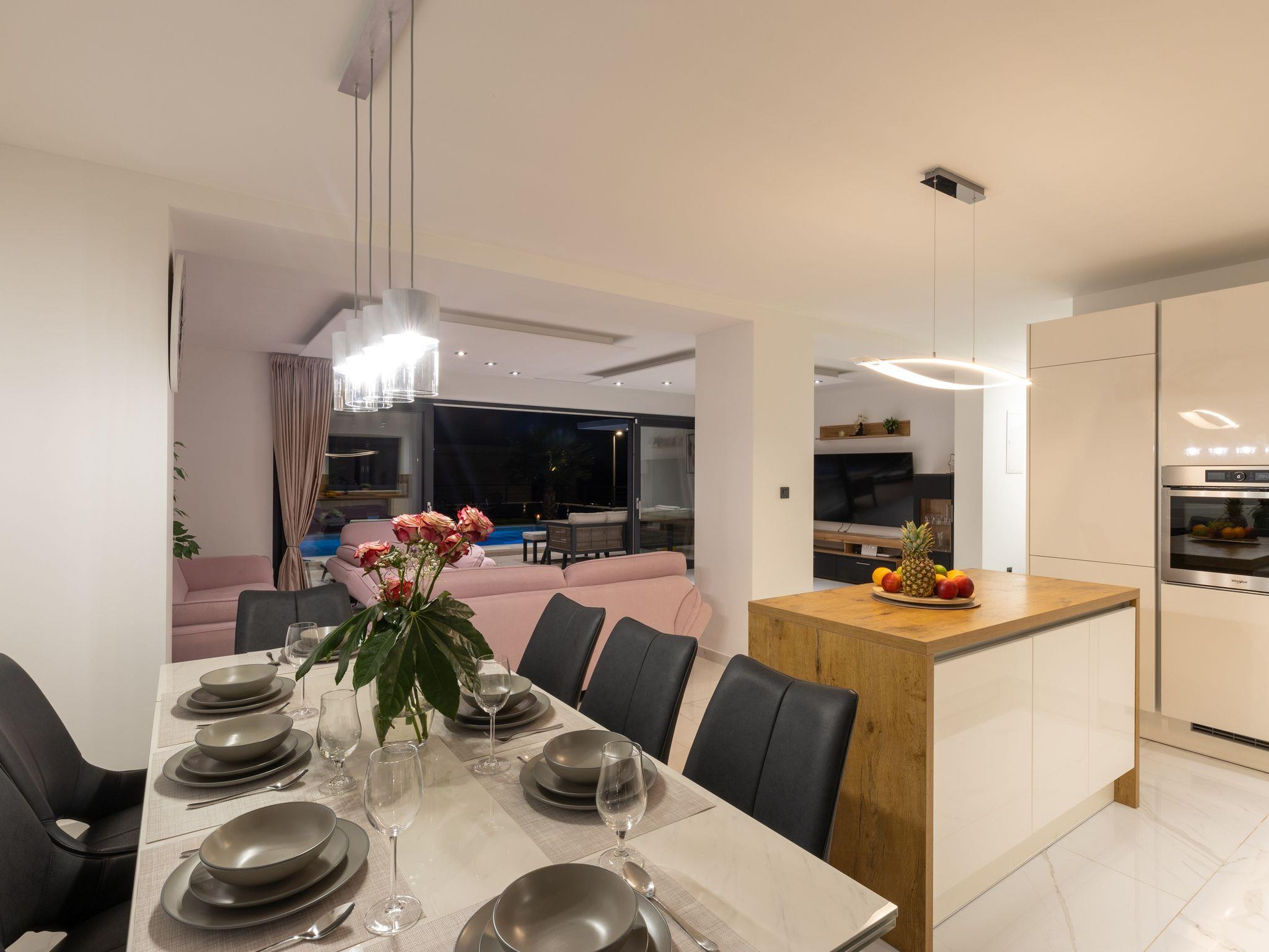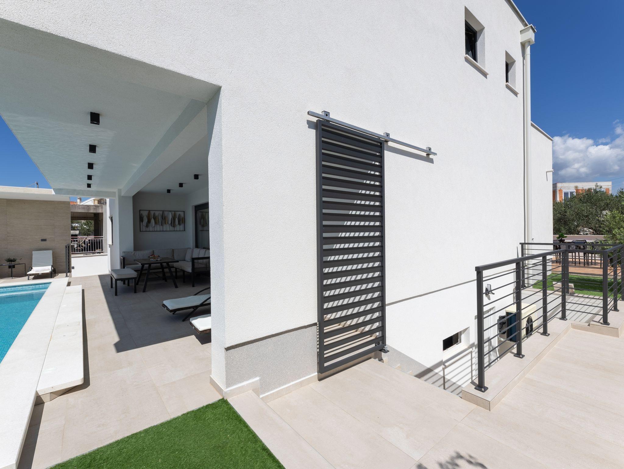Haus bietet Platz für 10 Gäste. Die Betten sind in Schlafzimmern, die es 5 gibt, innerhalb einer Gesamtfläche von 181m2, angeordnet. Die Gäste haben eine eigene Terrasse zur Verfügung, auf der sie in warmen Sommernächten genießen können. Das Haus bietet Meerblick. Für vollen Genuss und Entspannung gibt es einen privaten Grill für Gäste dieser Unterkunft. Während ihres Aufenthalts können sich Gäste im privaten Schwimmbad entspannen. In der Unterkunftseinheit besteht die Möglichkeit des Mitbringens von Haustieren gegen Aufpreis. IM PREIS INBEGRIFFEN: Kurtaxe, Endreinigung, Klimatisierung, Pool, Parkplatz, Internet, Kinderbett, Zusatzbett, Bügeleisen, Bügelbrett, Föhn, Liegestühle. UNVERBINDLICHE ZUSÄTZLICHE KOSTEN: Haustiere (15,00 € pro Nacht). Die Verfügbarkeit zusätzlicher Dienstleistungen in Ihrem reservierten Termin und die Preise derselben (falls nicht aufgeführt) müssen im Voraus überprüft werden. Zusätzliche Dienstleistungen die in der Zahlungsaufforderung nicht aufgeführt sind werden direkt beim Vermieter bezahlt, angenommen der Gast nutzt auch diese. Ermäßigung auf den Grundpreis: Gratistag 28=25 (bei einem Aufenthalt von 28 oder mehr Tagen erhalten Sie 3 kostenlose Tage für den Aufenthalt bis 31.12.26).