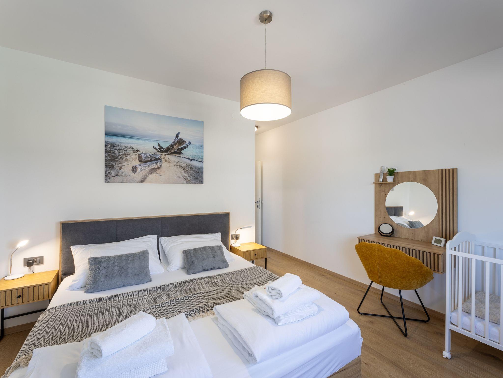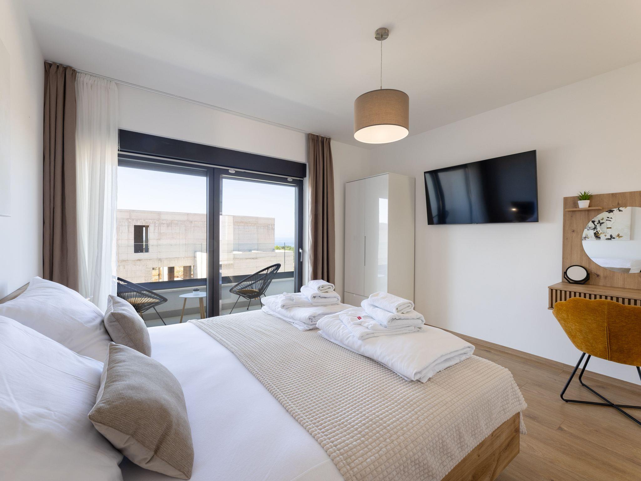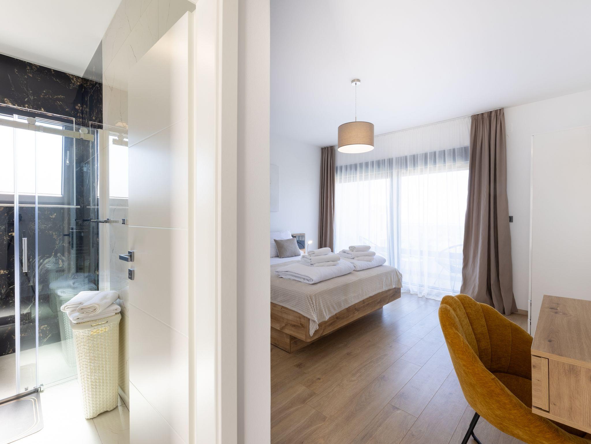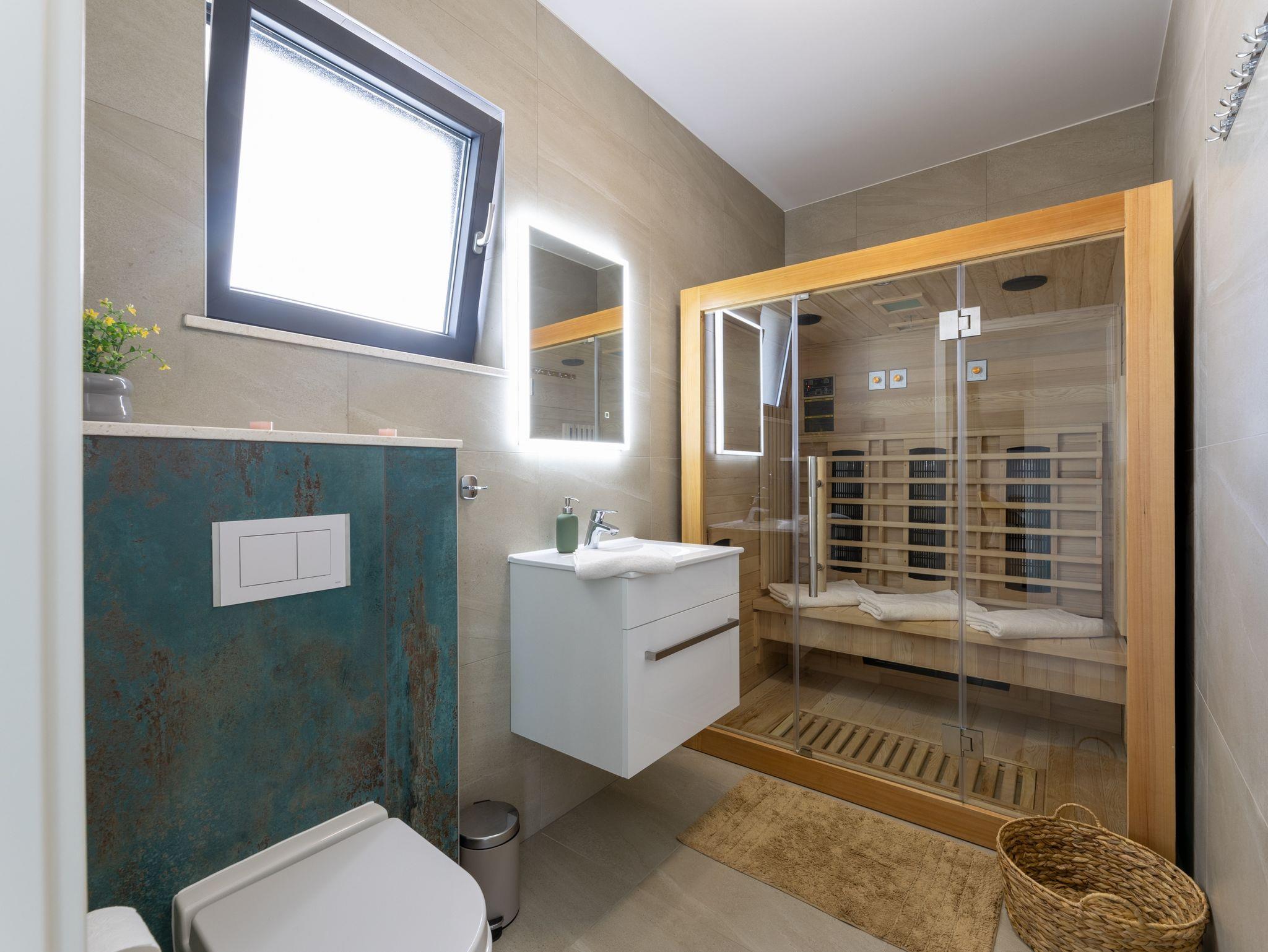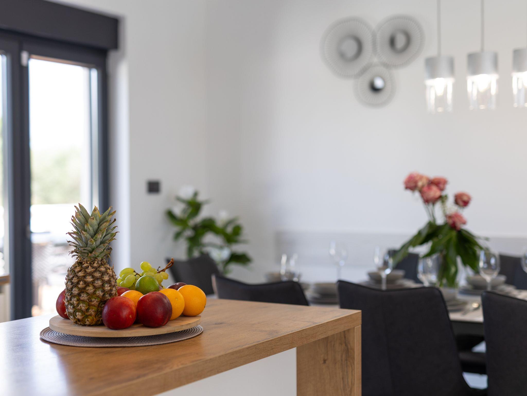 Haus bietet Platz für 10 Gäste. Die Betten sind in Schlafzimmern, die es 5 gibt, innerhalb einer Gesamtfläche von 181m2, angeordnet. Die Gäste haben eine eigene Terrasse zur Verfügung, auf der sie in warmen Sommernächten genießen können. Das Haus bietet Meerblick. Für vollen Genuss und Entspannung gibt es einen privaten Grill für Gäste dieser Unterkunft. Während ihres Aufenthalts können sich Gäste im privaten Schwimmbad entspannen. In der Unterkunftseinheit besteht die Möglichkeit des Mitbringens von Haustieren gegen Aufpreis. IM PREIS INBEGRIFFEN: Kurtaxe, Endreinigung, Klimatisierung, Pool, Parkplatz, Internet, Kinderbett, Zusatzbett, Bügeleisen, Bügelbrett, Föhn, Liegestühle. UNVERBINDLICHE ZUSÄTZLICHE KOSTEN: Haustiere (15,00 € pro Nacht). Die Verfügbarkeit zusätzlicher Dienstleistungen in Ihrem reservierten Termin und die Preise derselben (falls nicht aufgeführt) müssen im Voraus überprüft werden. Zusätzliche Dienstleistungen die in der Zahlungsaufforderung nicht aufgeführt sind werden direkt beim Vermieter bezahlt, angenommen der Gast nutzt auch diese. Ermäßigung auf den Grundpreis: Gratistag 28=25 (bei einem Aufenthalt von 28 oder mehr Tagen erhalten Sie 3 kostenlose Tage für den Aufenthalt bis 31.12.26).