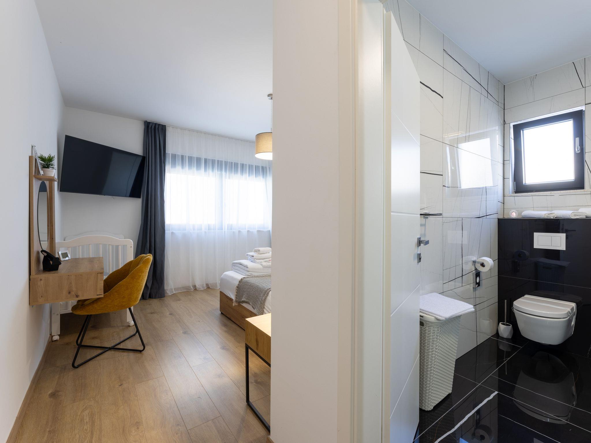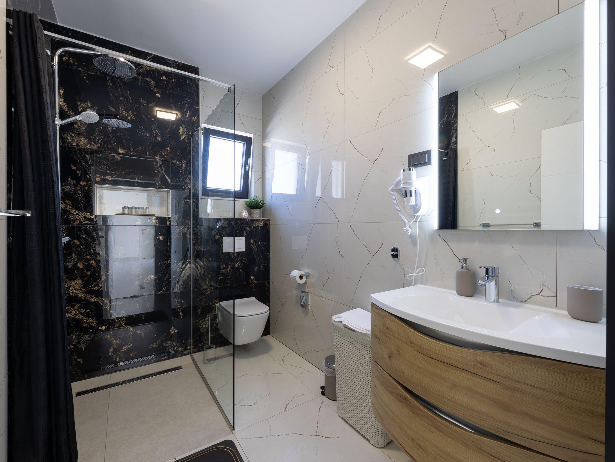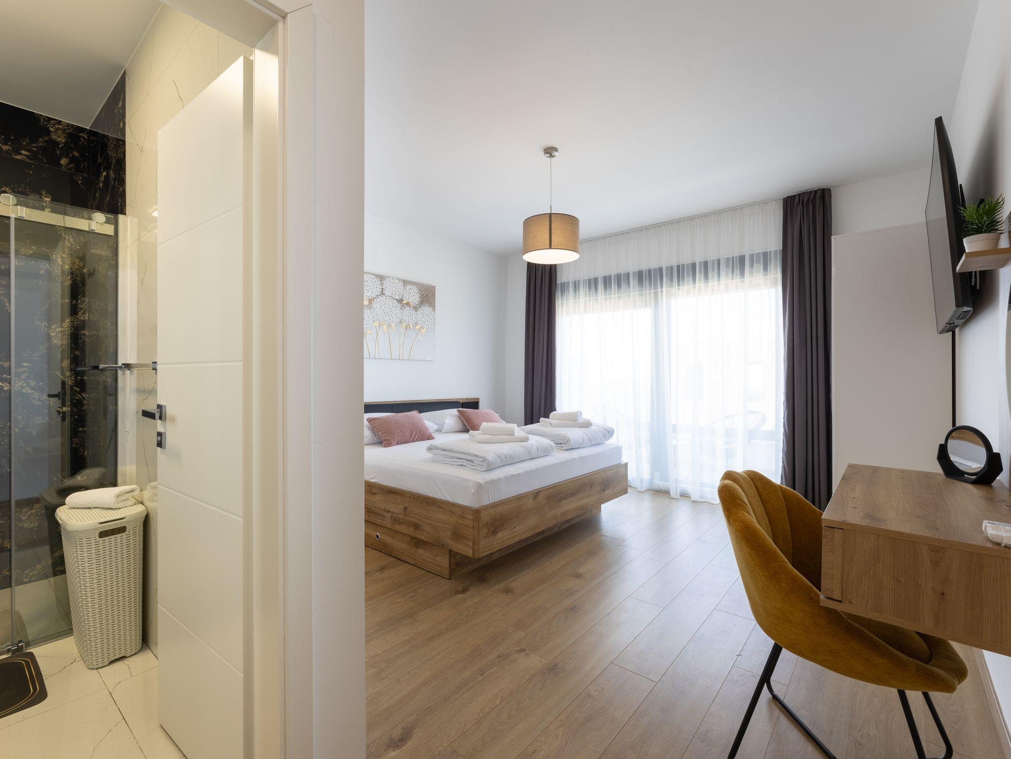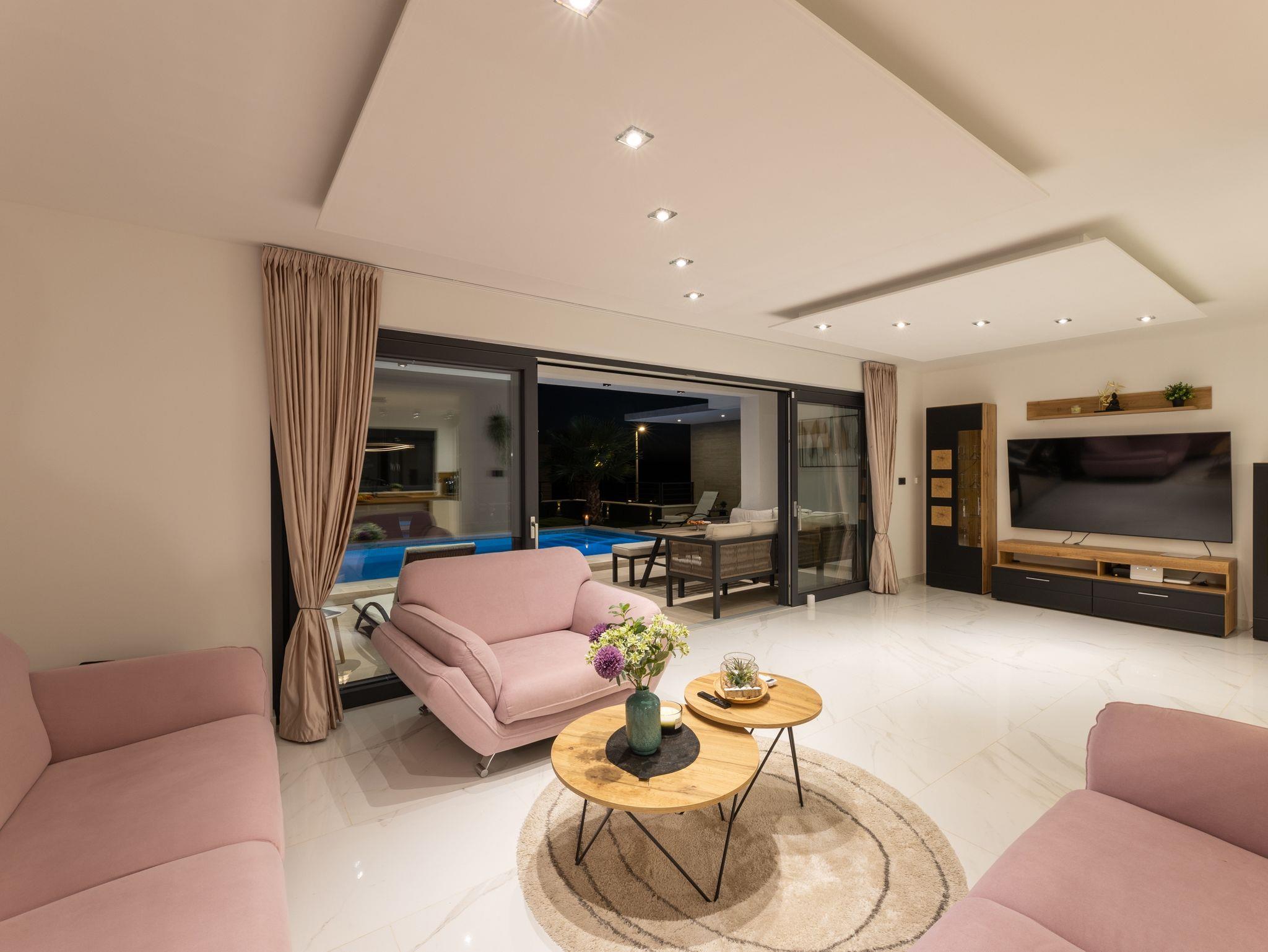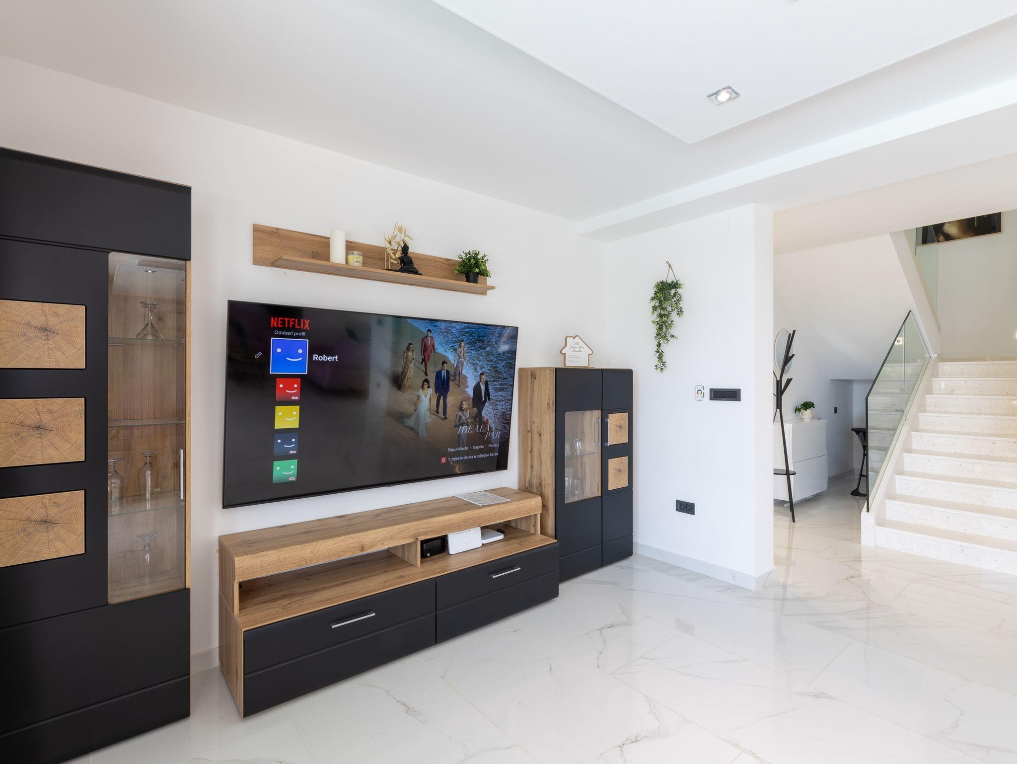 Haus bietet Platz für 10 Gäste. Die Betten sind in Schlafzimmern, die es 5 gibt, innerhalb einer Gesamtfläche von 181m2, angeordnet. Die Gäste haben eine eigene Terrasse zur Verfügung, auf der sie in warmen Sommernächten genießen können. Das Haus bietet Meerblick. Für vollen Genuss und Entspannung gibt es einen privaten Grill für Gäste dieser Unterkunft. Während ihres Aufenthalts können sich Gäste im privaten Schwimmbad entspannen. In der Unterkunftseinheit besteht die Möglichkeit des Mitbringens von Haustieren gegen Aufpreis. IM PREIS INBEGRIFFEN: Kurtaxe, Endreinigung, Klimatisierung, Pool, Parkplatz, Internet, Kinderbett, Zusatzbett, Bügeleisen, Bügelbrett, Föhn, Liegestühle. UNVERBINDLICHE ZUSÄTZLICHE KOSTEN: Haustiere (15,00 € pro Nacht). Die Verfügbarkeit zusätzlicher Dienstleistungen in Ihrem reservierten Termin und die Preise derselben (falls nicht aufgeführt) müssen im Voraus überprüft werden. Zusätzliche Dienstleistungen die in der Zahlungsaufforderung nicht aufgeführt sind werden direkt beim Vermieter bezahlt, angenommen der Gast nutzt auch diese. Ermäßigung auf den Grundpreis: Gratistag 28=25 (bei einem Aufenthalt von 28 oder mehr Tagen erhalten Sie 3 kostenlose Tage für den Aufenthalt bis 31.12.26).