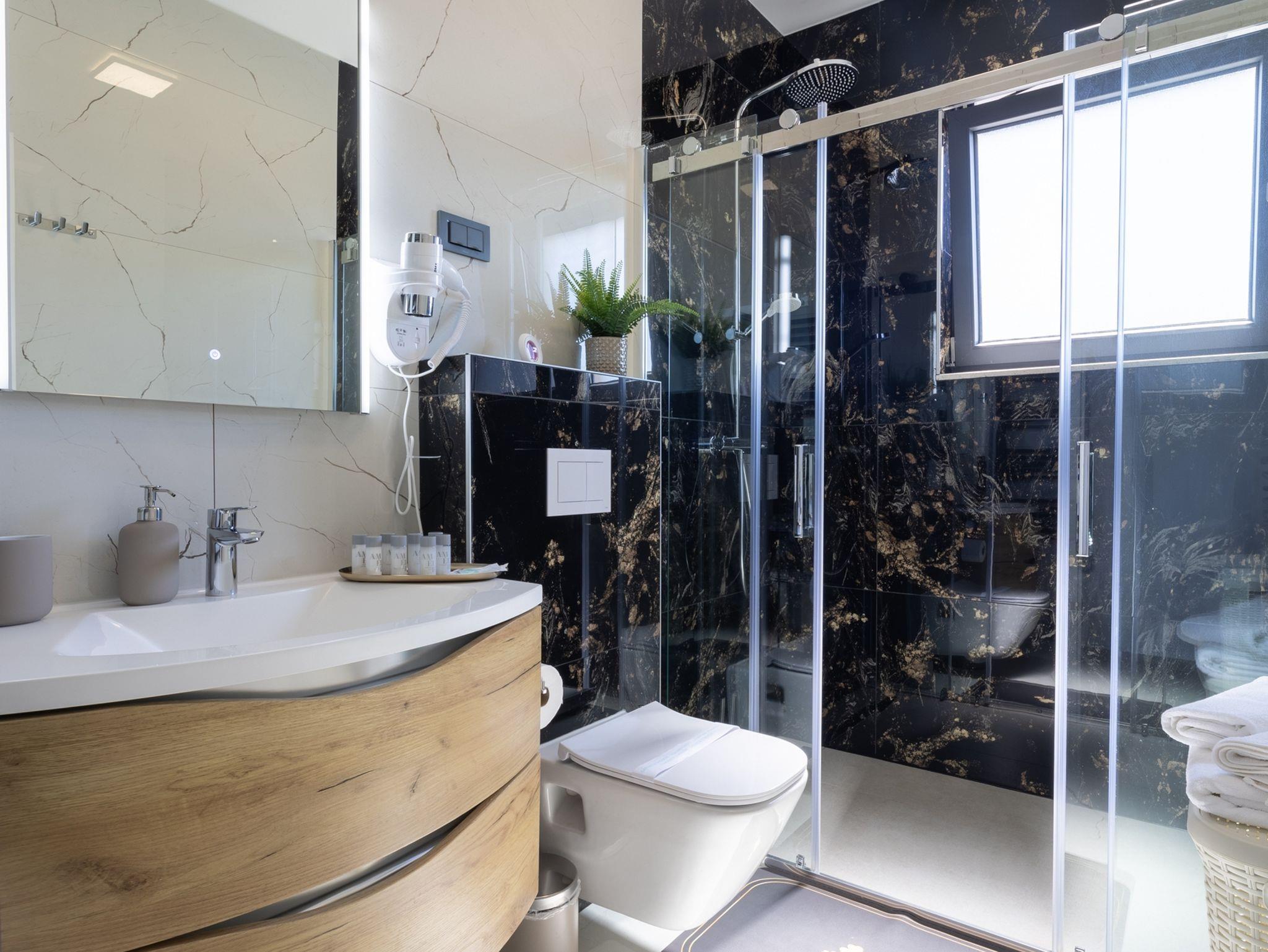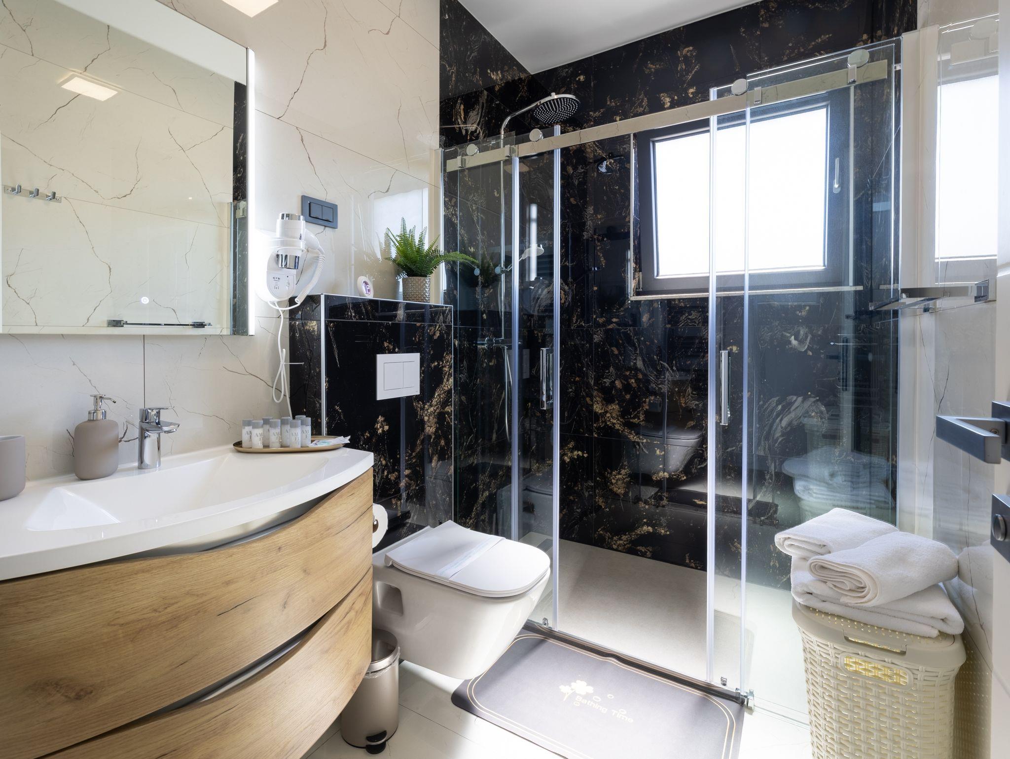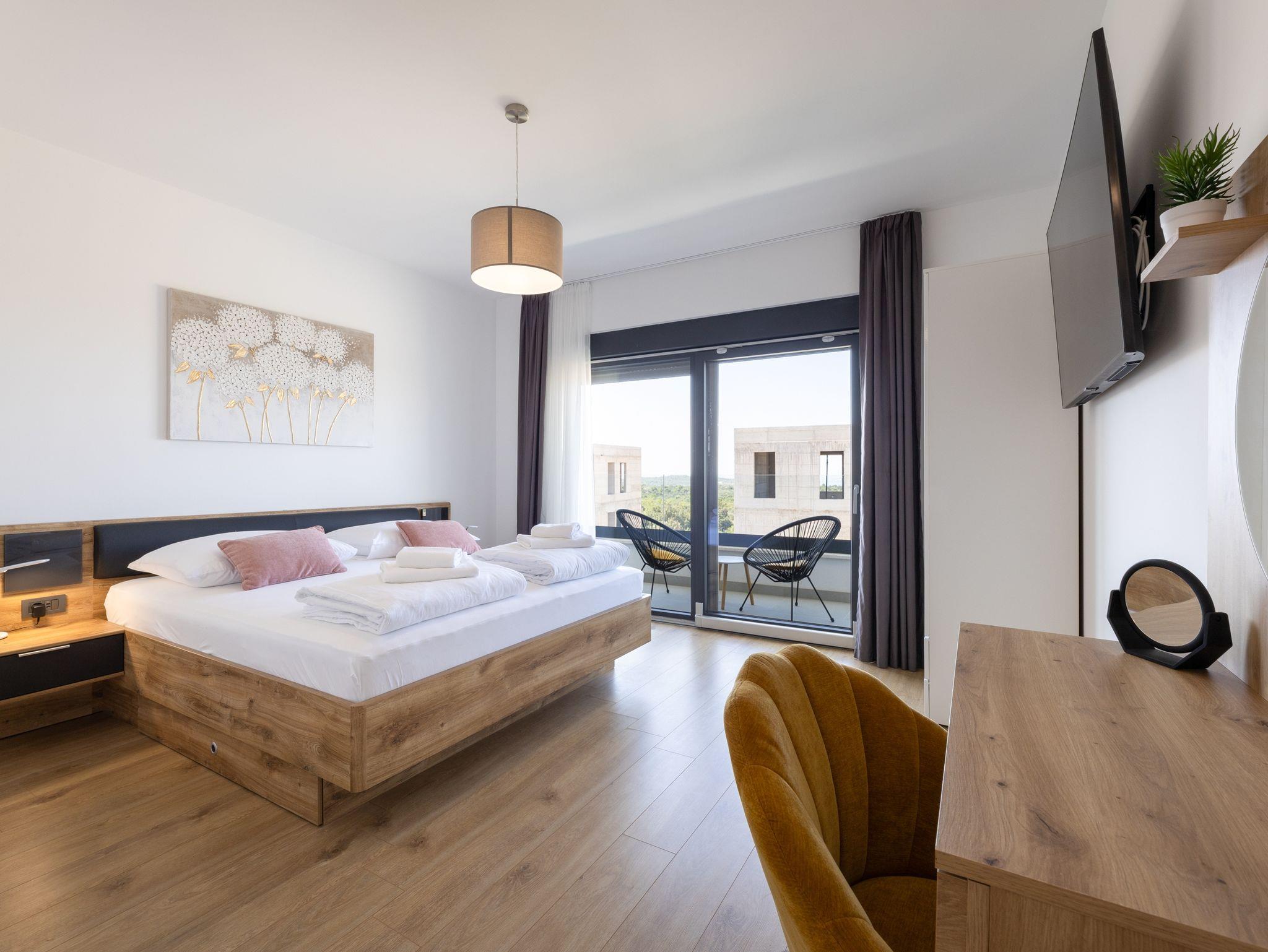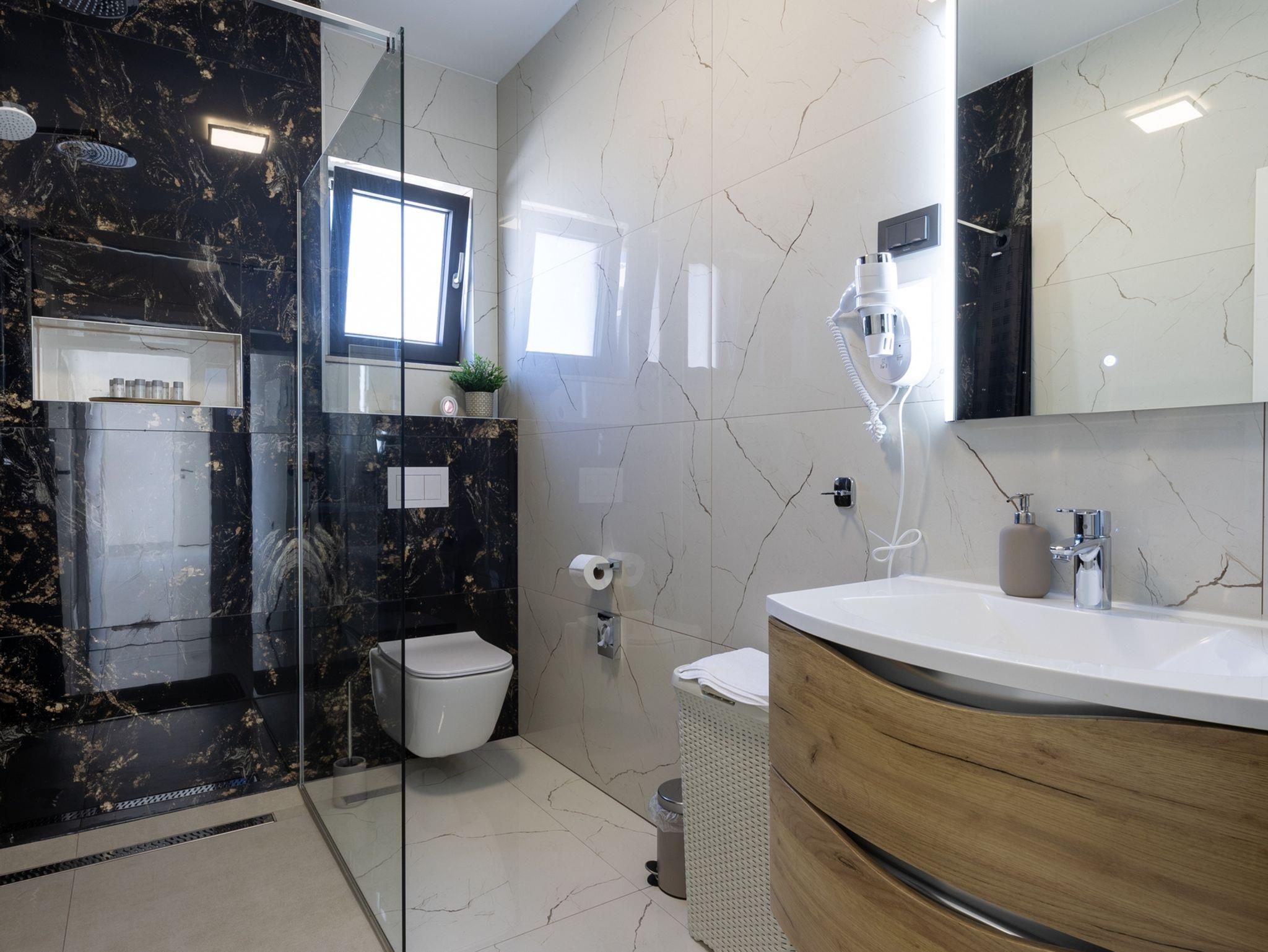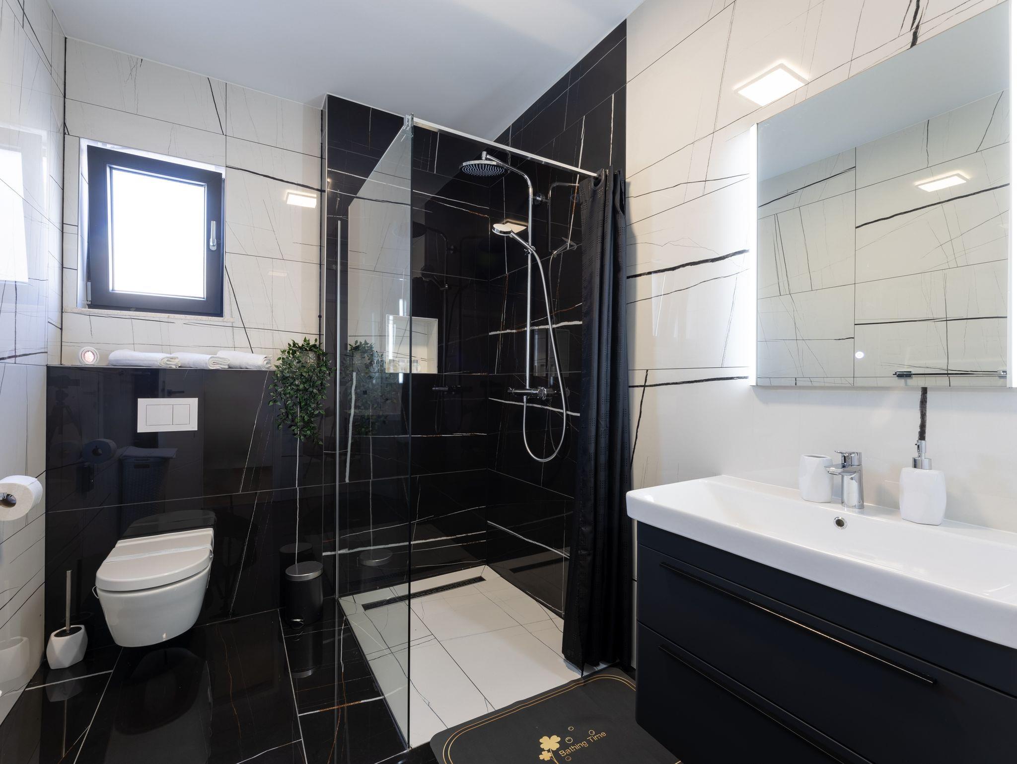 Haus bietet Platz für 10 Gäste. Die Betten sind in Schlafzimmern, die es 5 gibt, innerhalb einer Gesamtfläche von 181m2, angeordnet. Die Gäste haben eine eigene Terrasse zur Verfügung, auf der sie in warmen Sommernächten genießen können. Das Haus bietet Meerblick. Für vollen Genuss und Entspannung gibt es einen privaten Grill für Gäste dieser Unterkunft. Während ihres Aufenthalts können sich Gäste im privaten Schwimmbad entspannen. In der Unterkunftseinheit besteht die Möglichkeit des Mitbringens von Haustieren gegen Aufpreis. IM PREIS INBEGRIFFEN: Kurtaxe, Endreinigung, Klimatisierung, Pool, Parkplatz, Internet, Kinderbett, Zusatzbett, Bügeleisen, Bügelbrett, Föhn, Liegestühle. UNVERBINDLICHE ZUSÄTZLICHE KOSTEN: Haustiere (15,00 € pro Nacht). Die Verfügbarkeit zusätzlicher Dienstleistungen in Ihrem reservierten Termin und die Preise derselben (falls nicht aufgeführt) müssen im Voraus überprüft werden. Zusätzliche Dienstleistungen die in der Zahlungsaufforderung nicht aufgeführt sind werden direkt beim Vermieter bezahlt, angenommen der Gast nutzt auch diese. Ermäßigung auf den Grundpreis: Gratistag 28=25 (bei einem Aufenthalt von 28 oder mehr Tagen erhalten Sie 3 kostenlose Tage für den Aufenthalt bis 31.12.26).