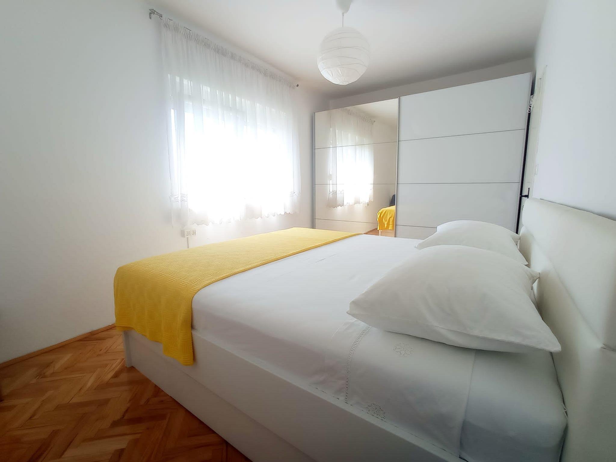 Ferienwohnung bietet Platz für 4 Gäste. Die Betten sind in Schlafzimmern, die es 1 gibt, und in Wohnzimmer, innerhalb einer Gesamtfläche von 35m2, angeordnet. Die Gäste haben eine eigene Terrasse zur Verfügung, auf der sie in warmen Sommernächten genießen können. Das Apartment bietet Meerblick. Es ist erlaubt, Speisen auf dem Gemeinschafts-Grill vorzubereiten. IM PREIS INBEGRIFFEN: Kurtaxe, Endreinigung, Klimatisierung, Parkplatz, Internet, Kinderbett. Die Verfügbarkeit zusätzlicher Dienstleistungen in Ihrem reservierten Termin und die Preise derselben (falls nicht aufgeführt) müssen im Voraus überprüft werden. Zusätzliche Dienstleistungen die in der Zahlungsaufforderung nicht aufgeführt sind werden direkt beim Vermieter bezahlt, angenommen der Gast nutzt auch diese.