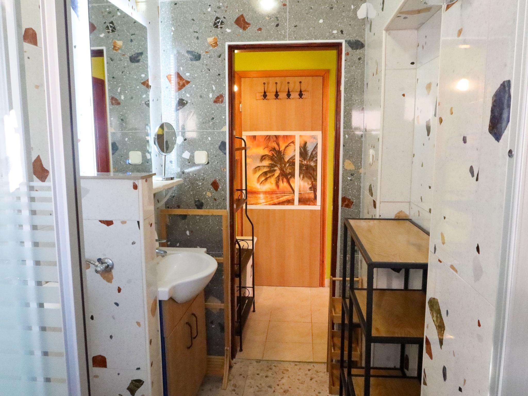 2-room apartment 48 m2 on 1st floor, south-west facing position. Living/dining room 32 m2 with 1 double sofabed (160 cm, length 200 cm), satellite TV (flat screen), air conditioning. Exit to the terrace. 1 room with 1 french bed (180 cm, length 200 cm), fan. Open kitchen (oven, dishwasher, 4 induction hot plates, microwave, freezer, electric coffee machine). Shower/WC. No heating option. Terrace 26 m2, roofed. Terrace furniture. Facilities: hair dryer. Internet (WiFi, free).