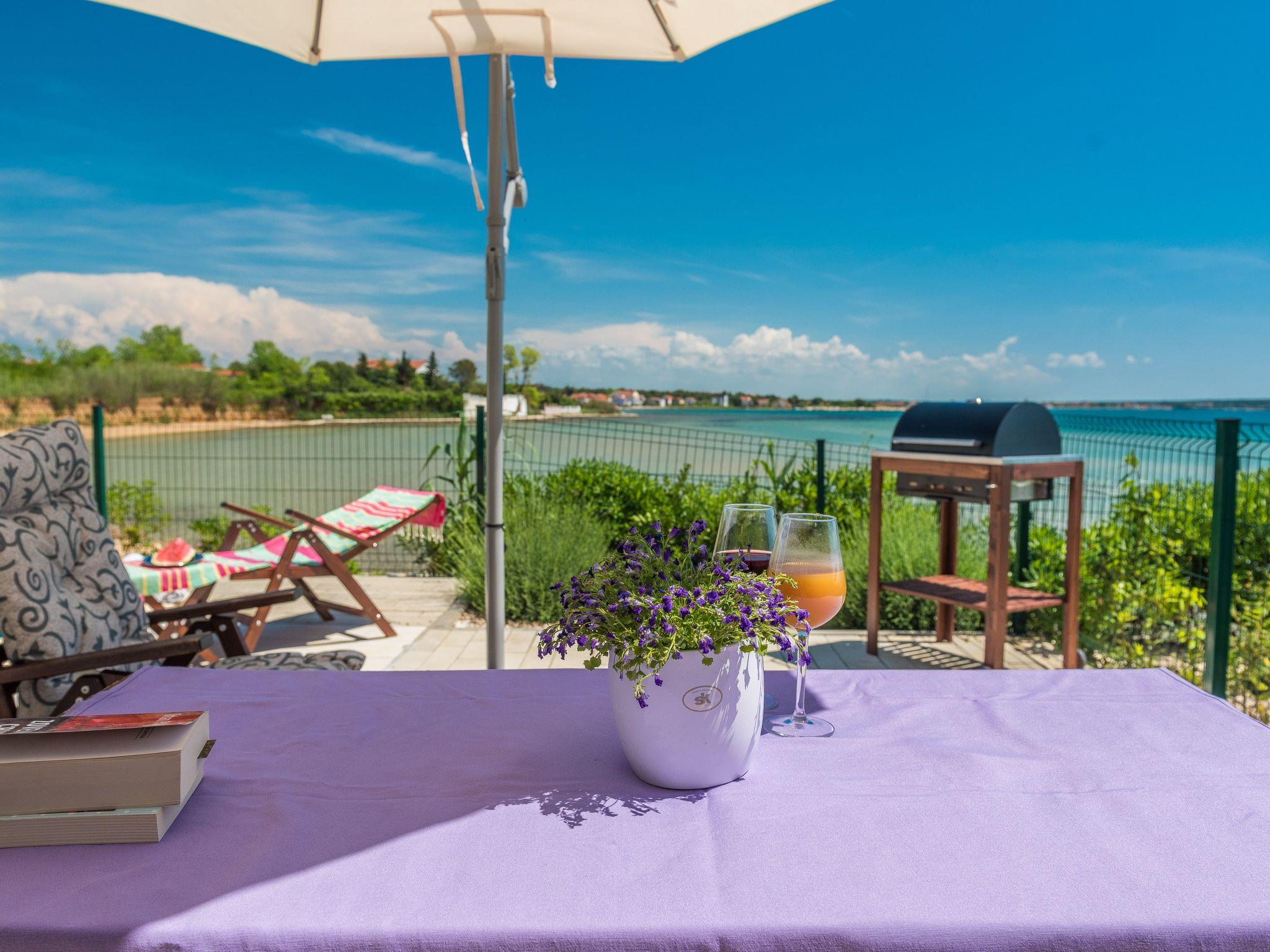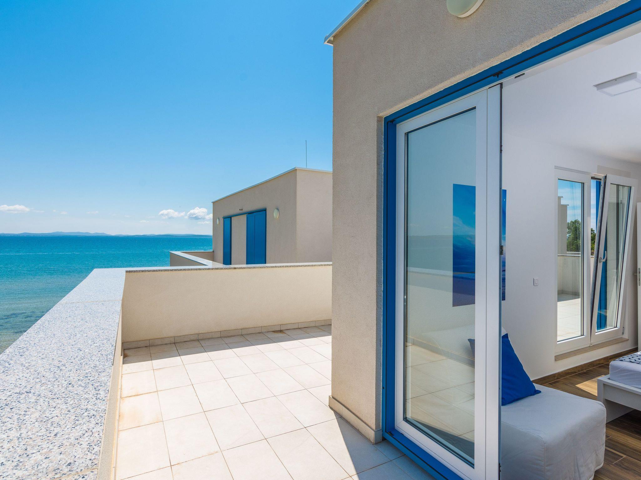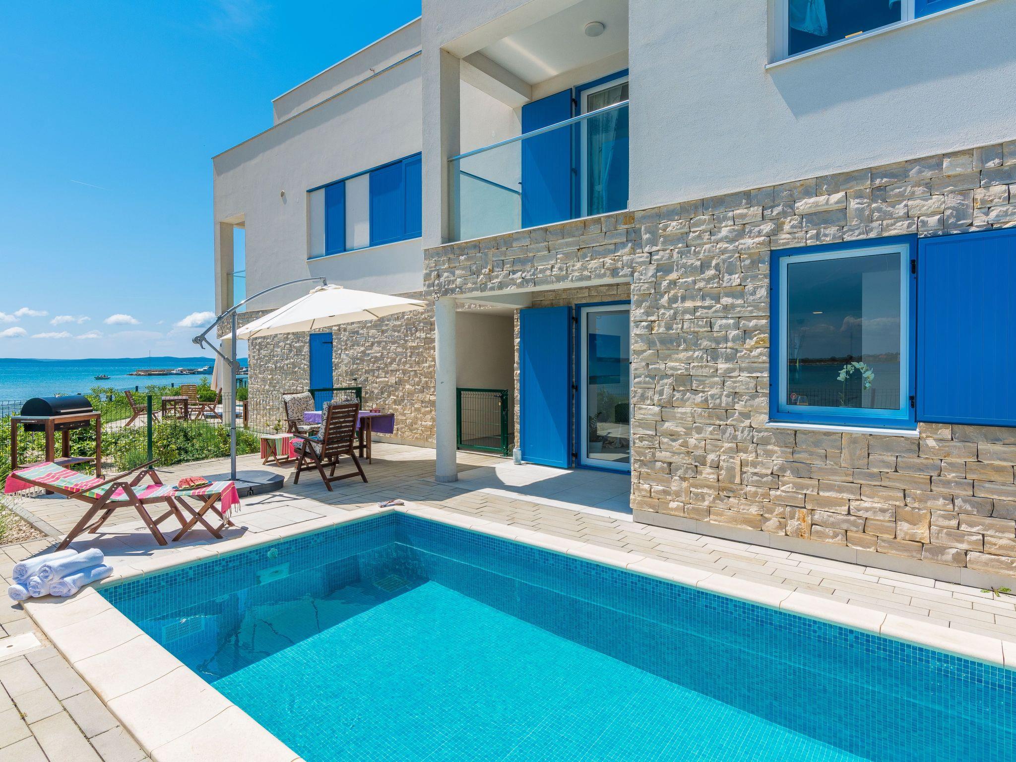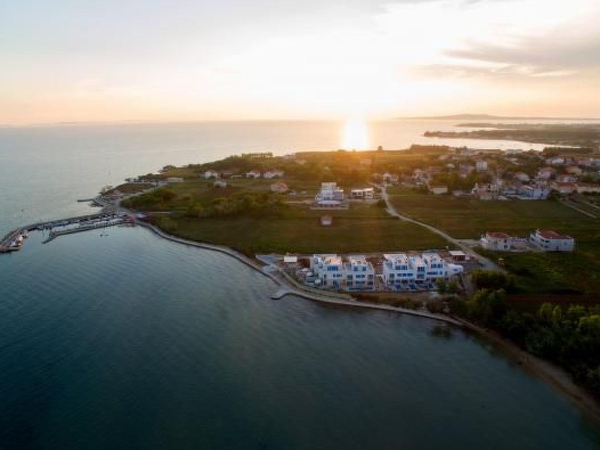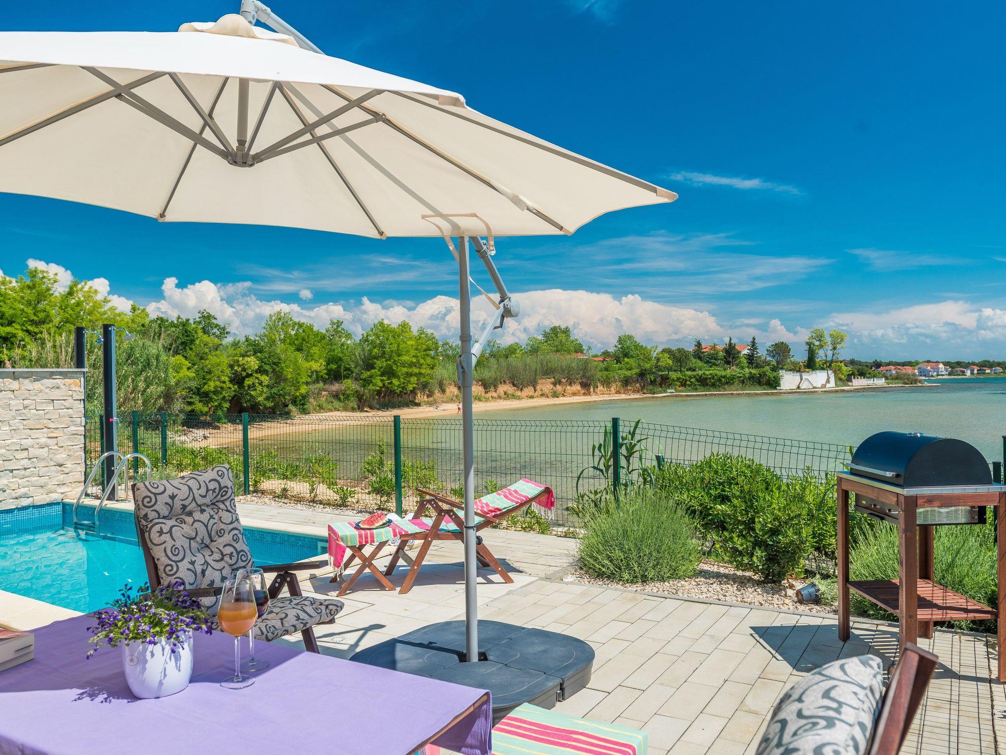 This top modern holiday villa enjoys a lovely location in the seaside town of Privlaka: it sits just a few metres from one of the best sandy beaches on the coast and overlooks the sea and features panoramic views of the islands.