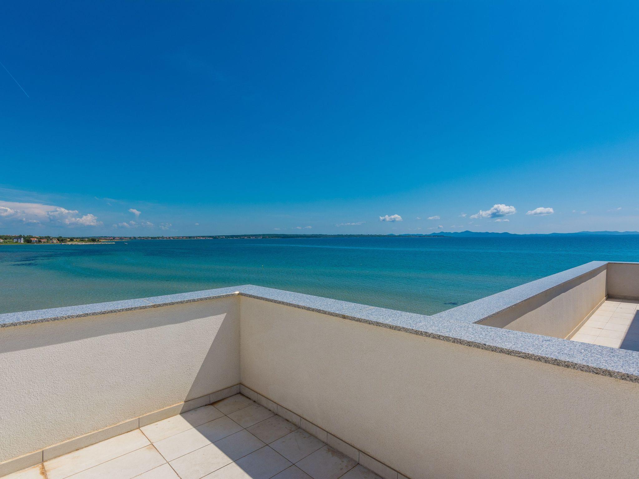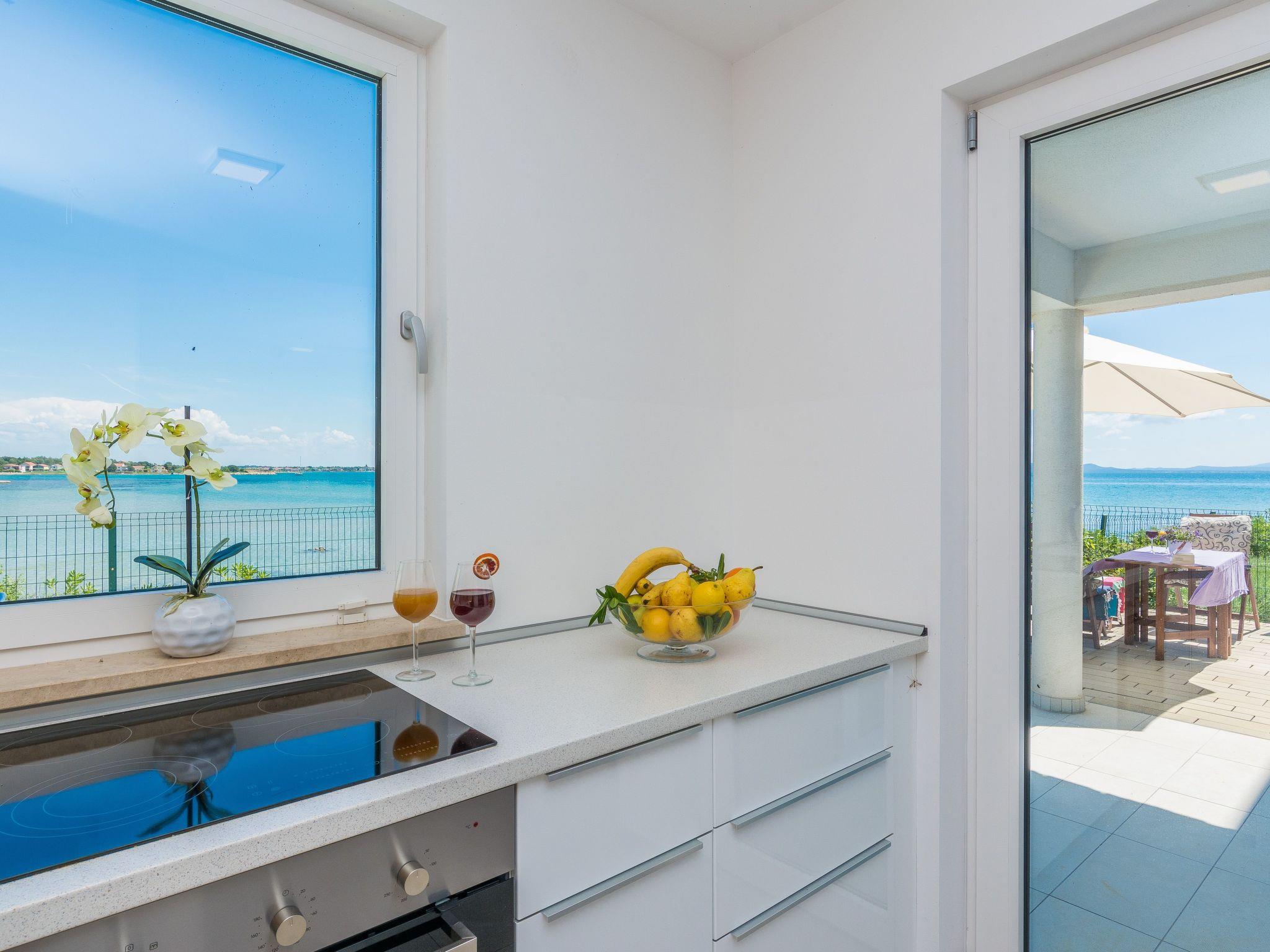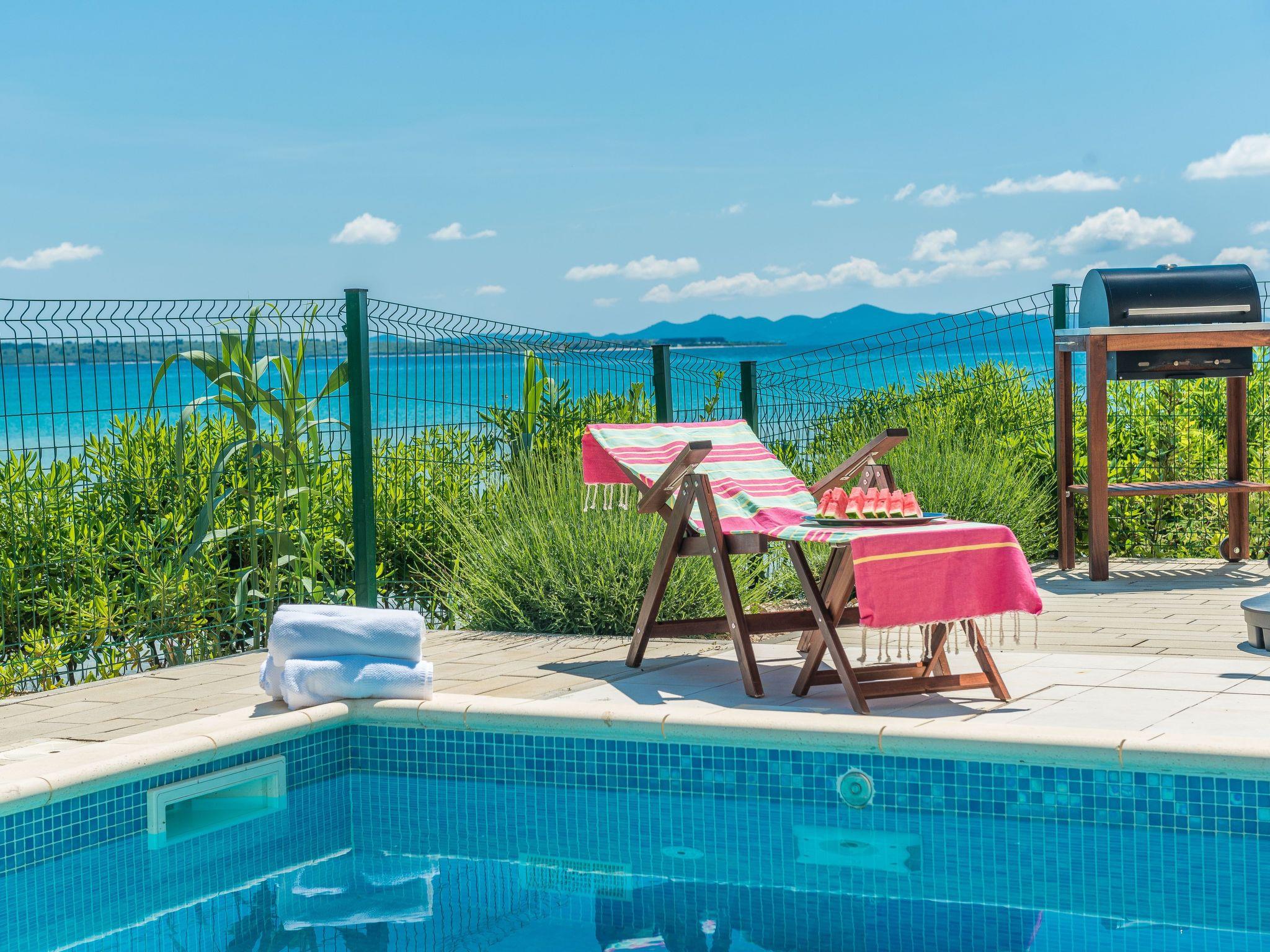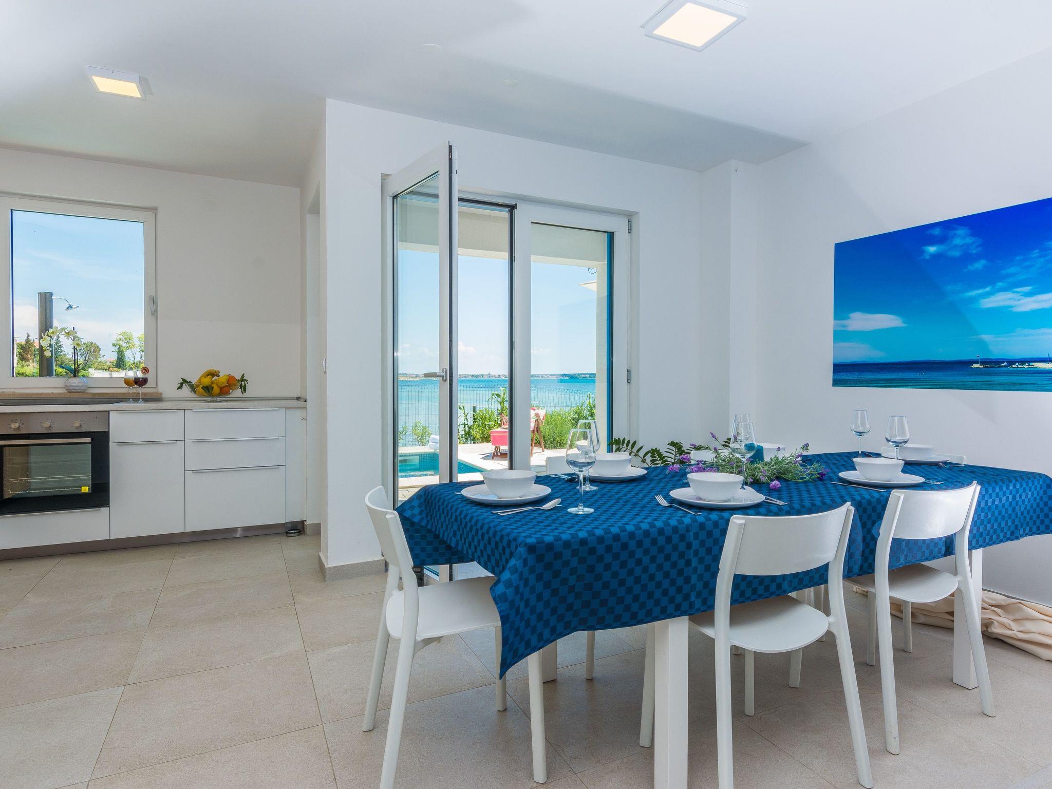 This top modern holiday villa enjoys a lovely location in the seaside town of Privlaka: it sits just a few metres from one of the best sandy beaches on the coast and overlooks the sea and features panoramic views of the islands.