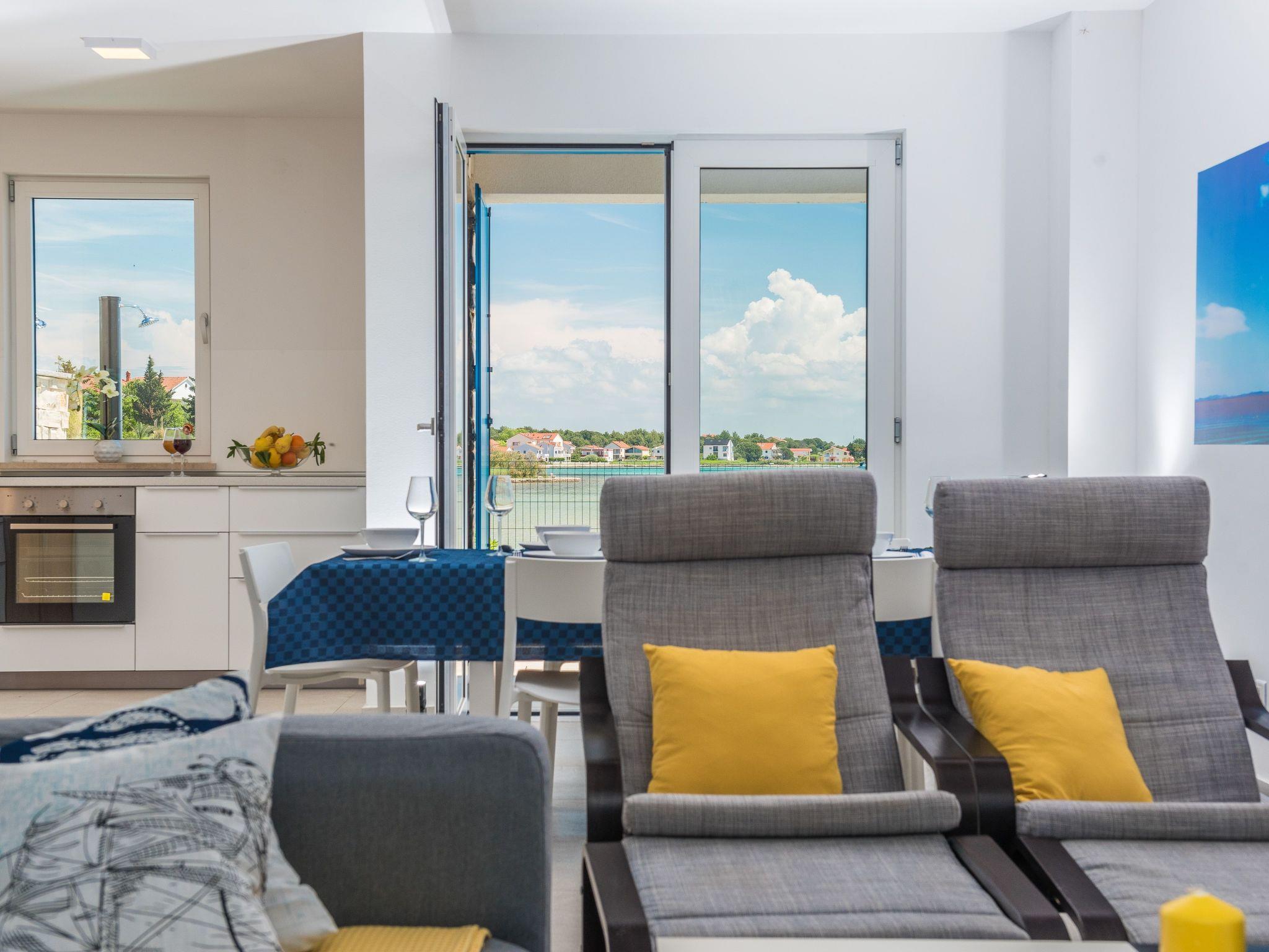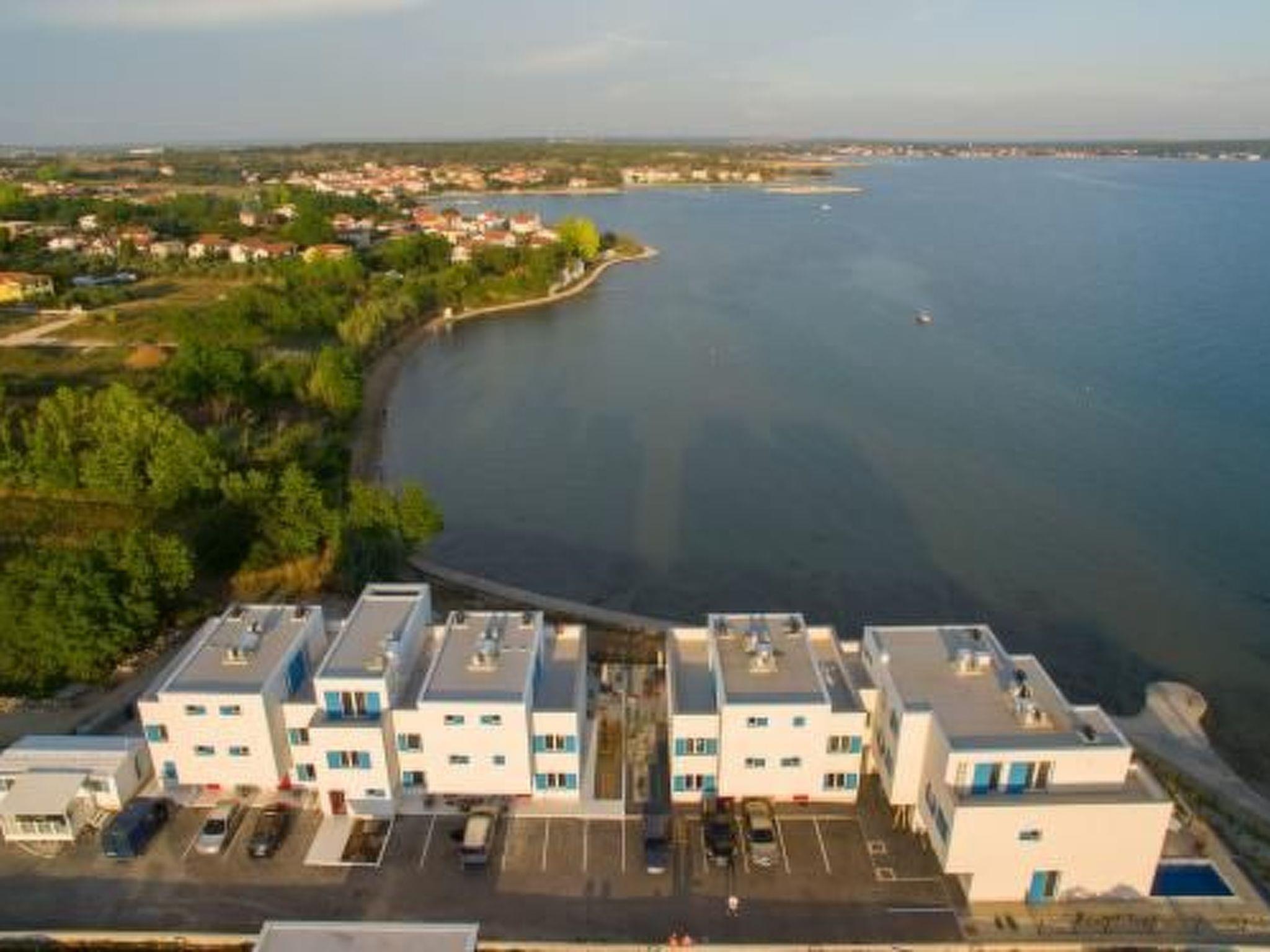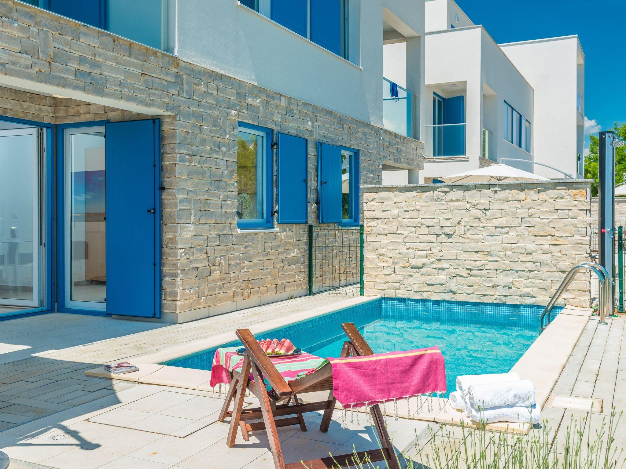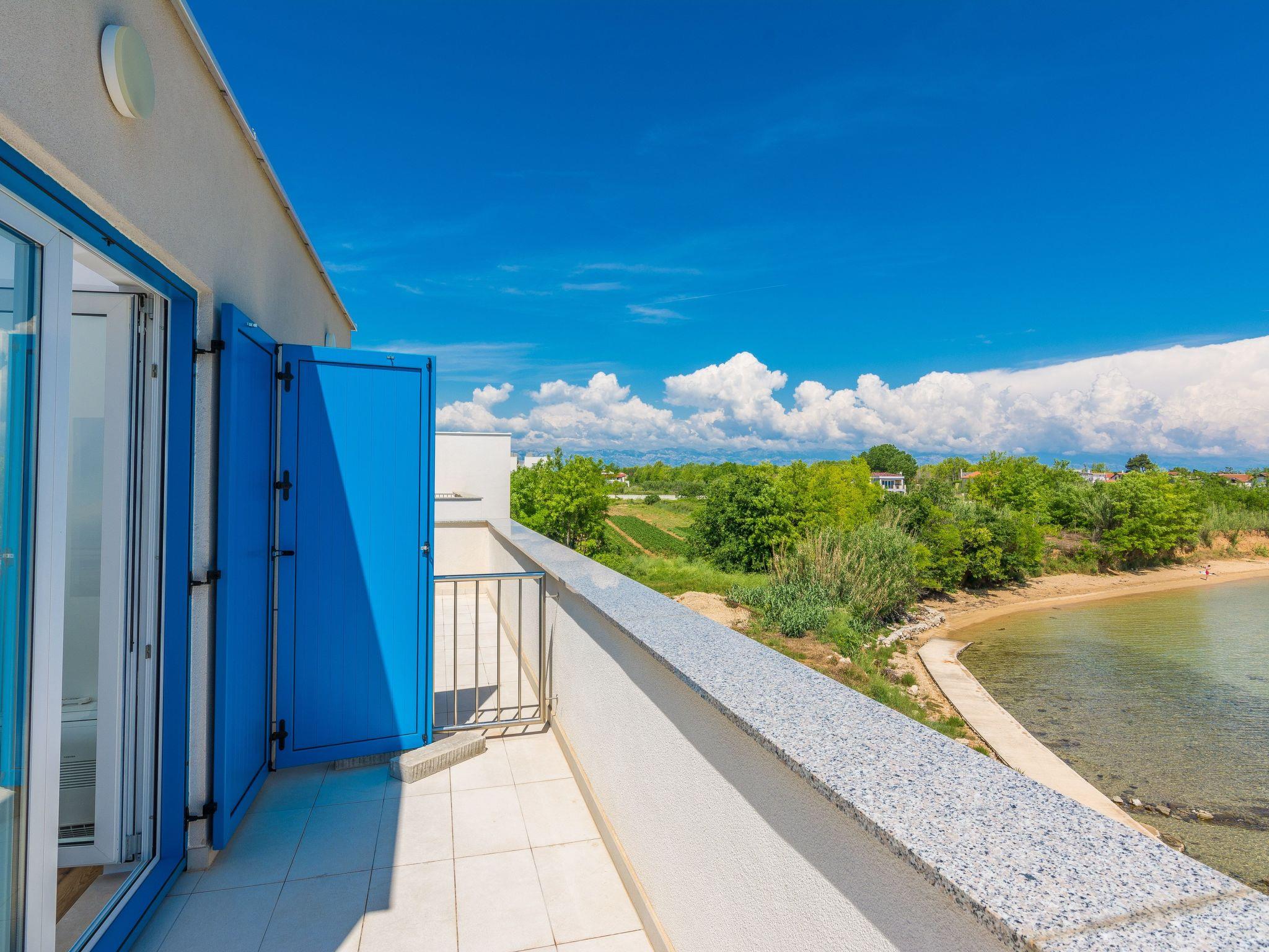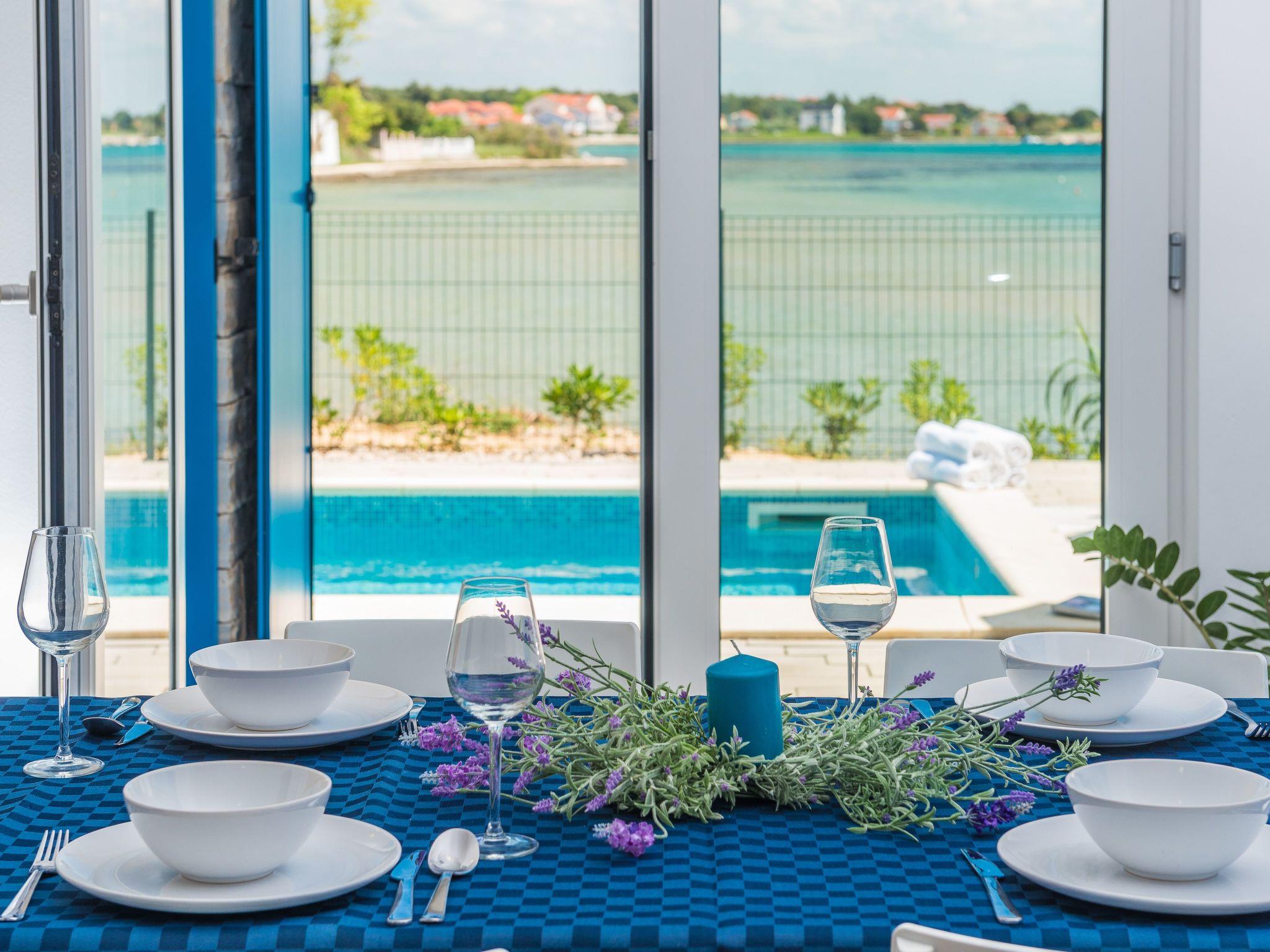 This top modern holiday villa enjoys a lovely location in the seaside town of Privlaka: it sits just a few metres from one of the best sandy beaches on the coast and overlooks the sea and features panoramic views of the islands.
