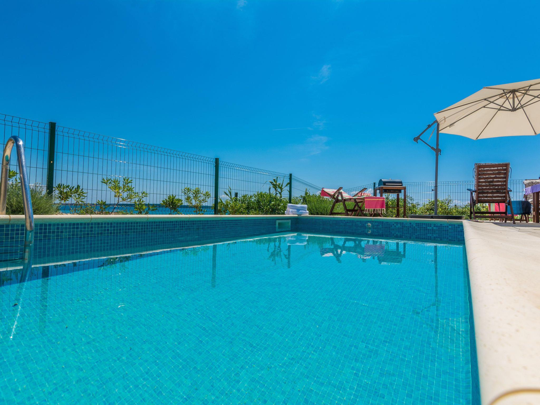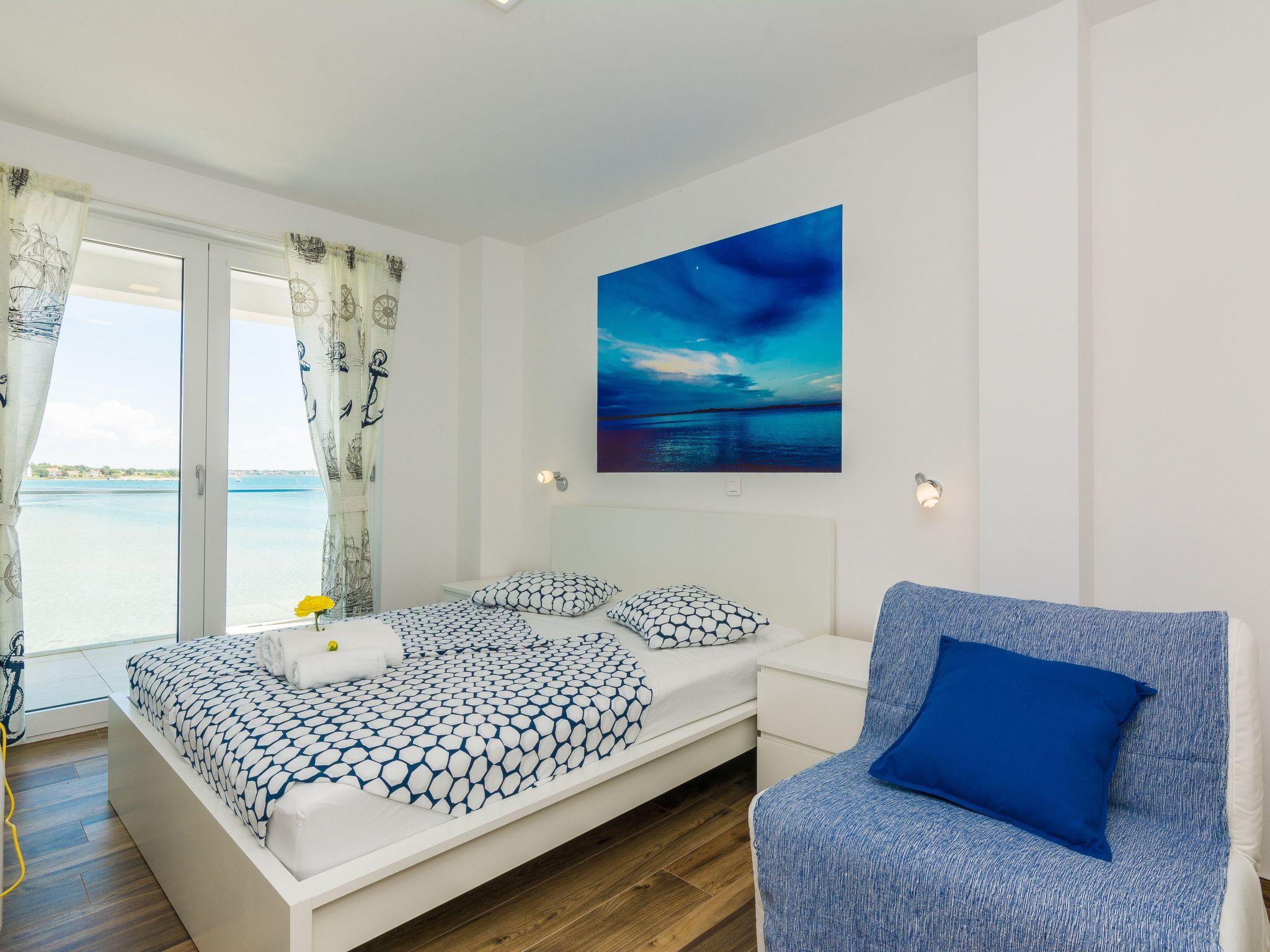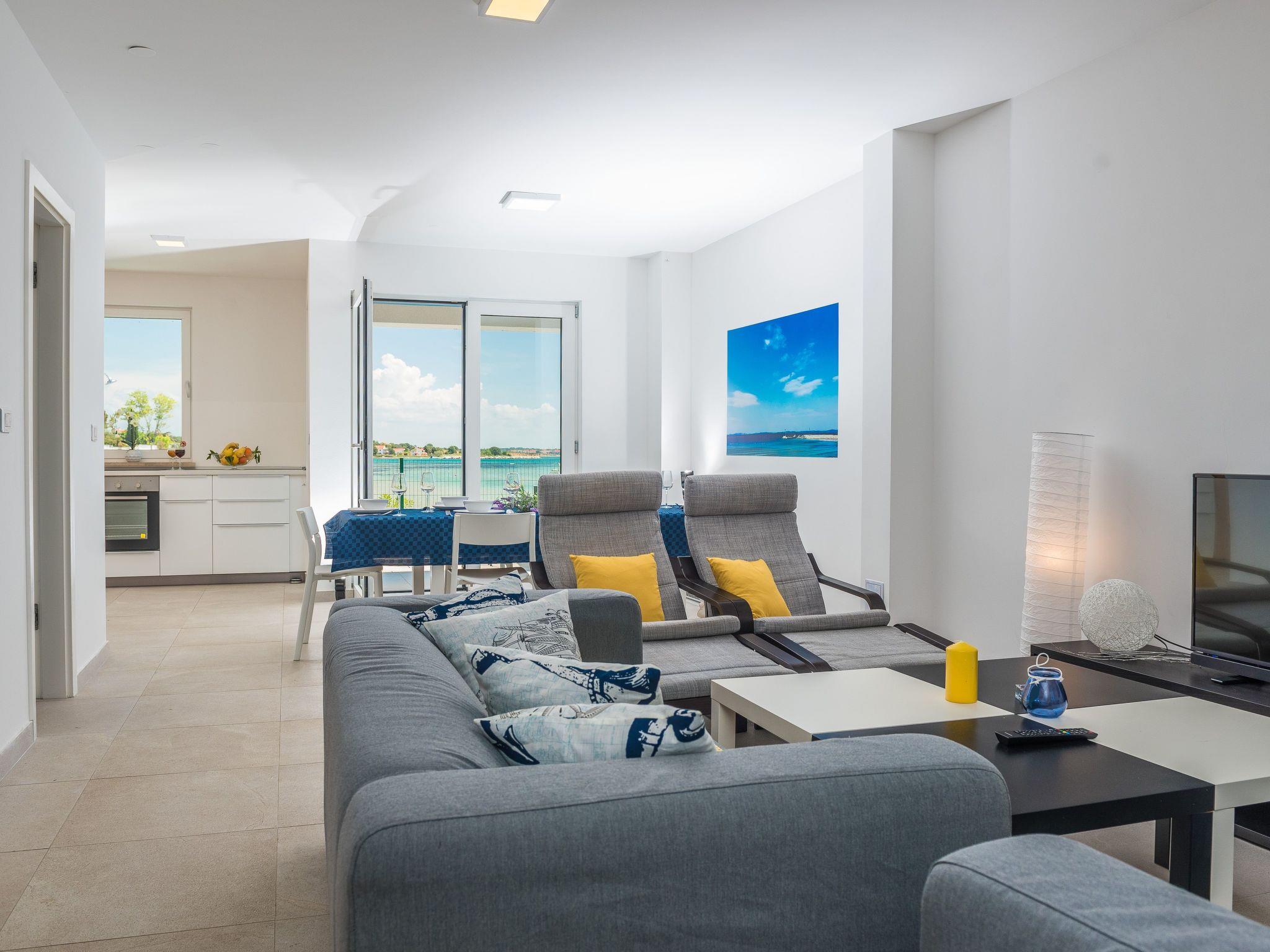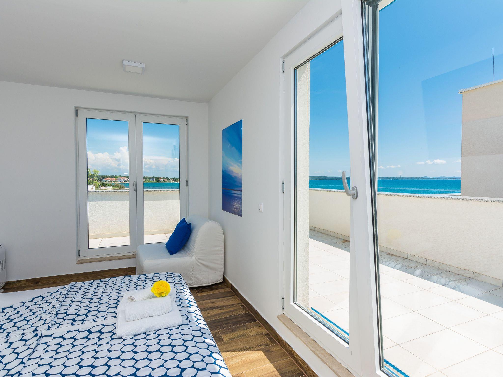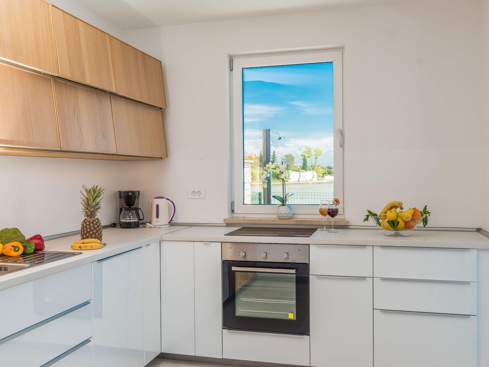 This top modern holiday villa enjoys a lovely location in the seaside town of Privlaka: it sits just a few metres from one of the best sandy beaches on the coast and overlooks the sea and features panoramic views of the islands.
