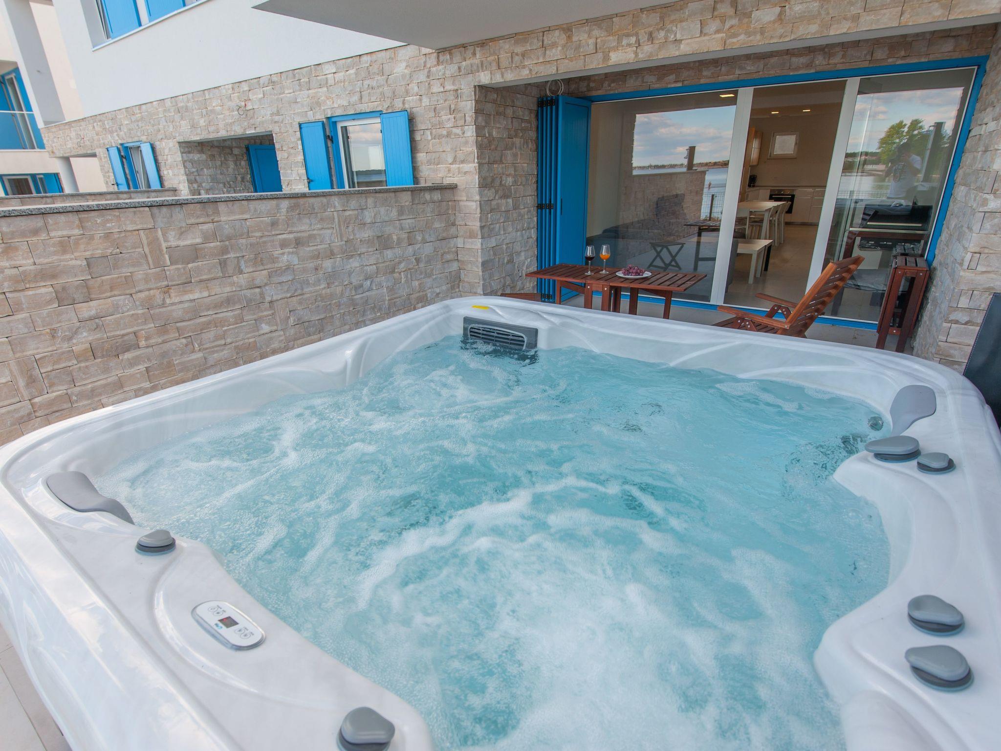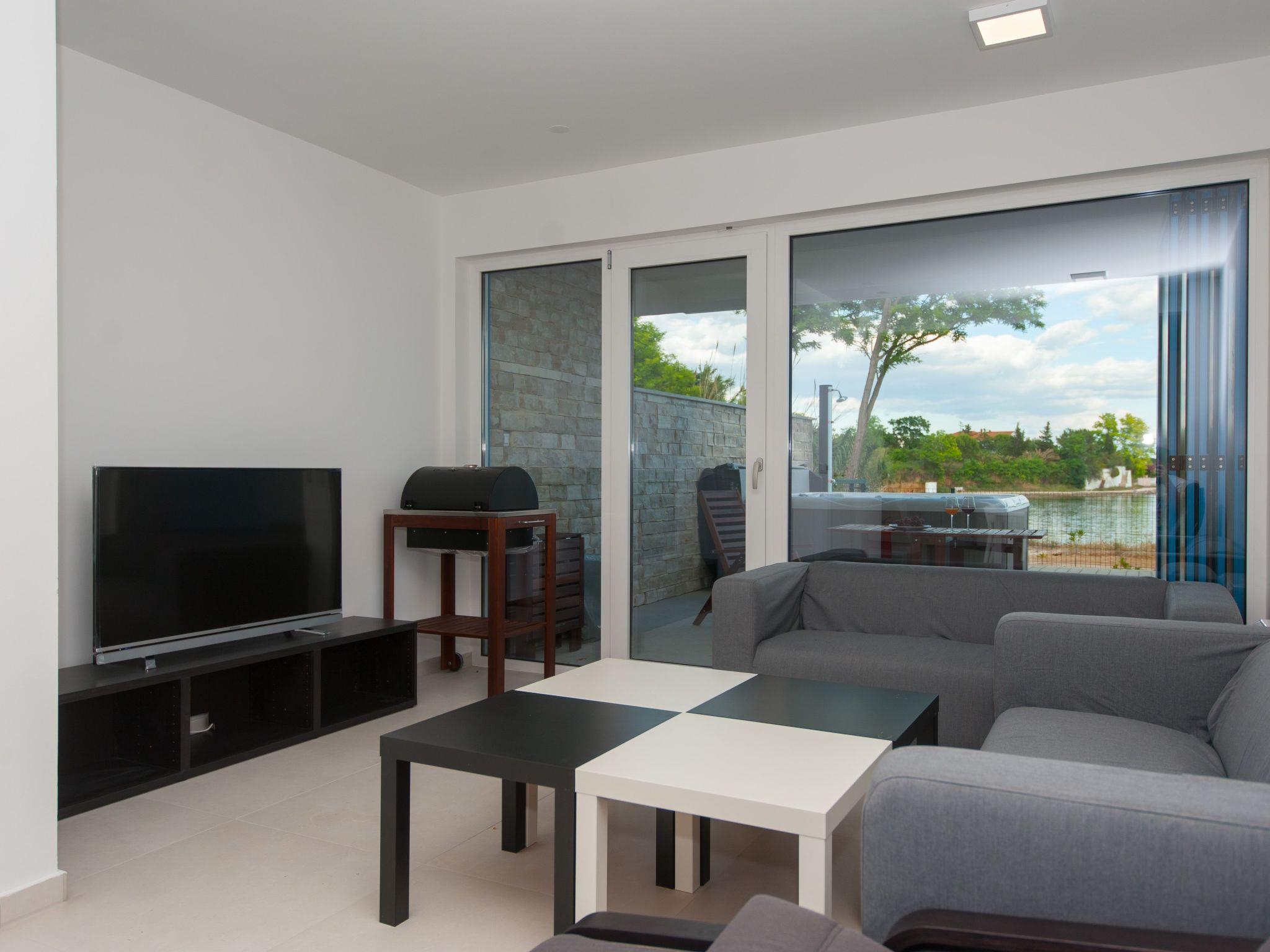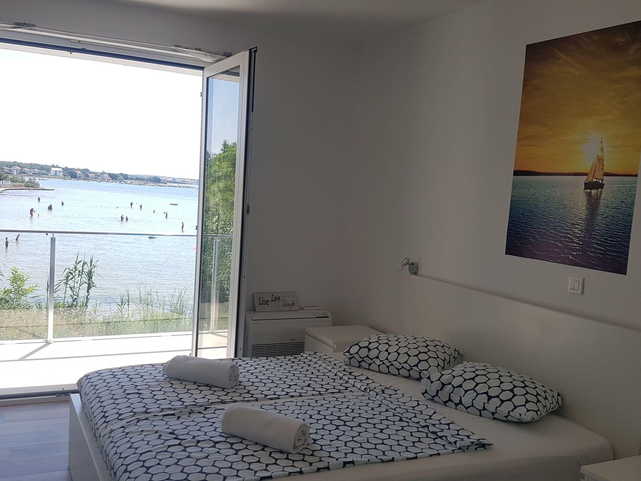 This top modern holiday villa enjoys a lovely location in the seaside town of Privlaka: it sits just a few metres from one of the best sandy beaches on the coast and overlooks the sea and features panoramic views of the islands.