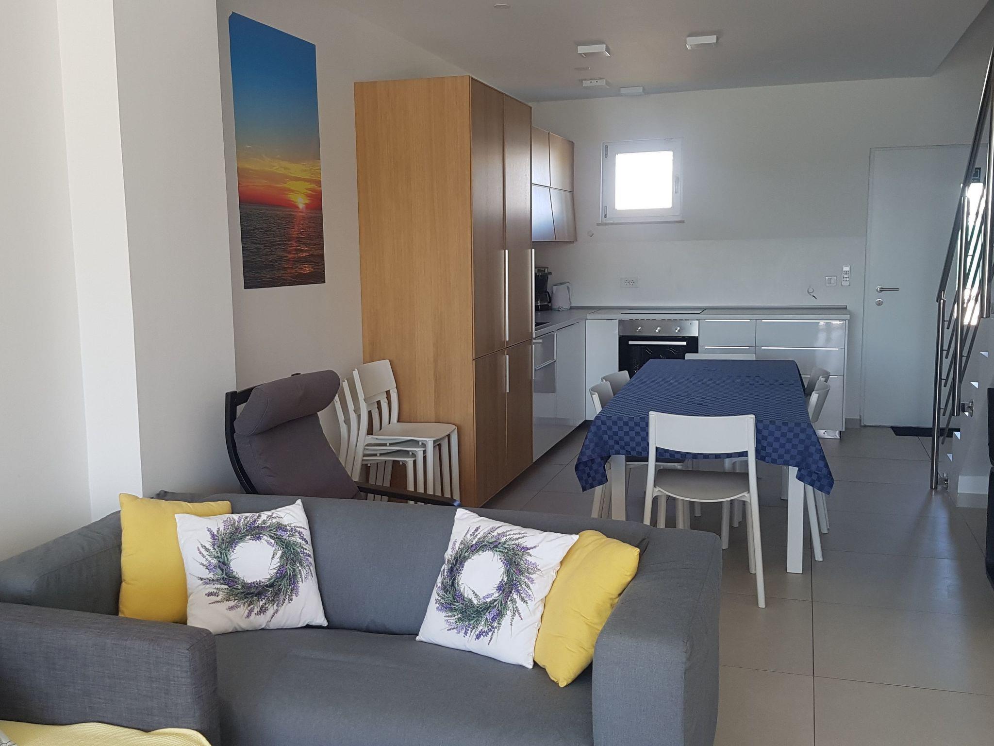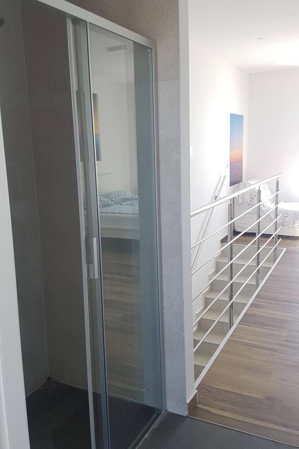 On the ground floor is the living room with a TV, dining area with large glass windows, the fully equipped kitchen with sea views and a bathroom. The fist floor features a cosy bedroom with en suite bathroom and two more bedrooms with a shared bathroom. On the second floor there is the main bedroom with a bathroom and terrace. The house is completely covered with WIFI signal.