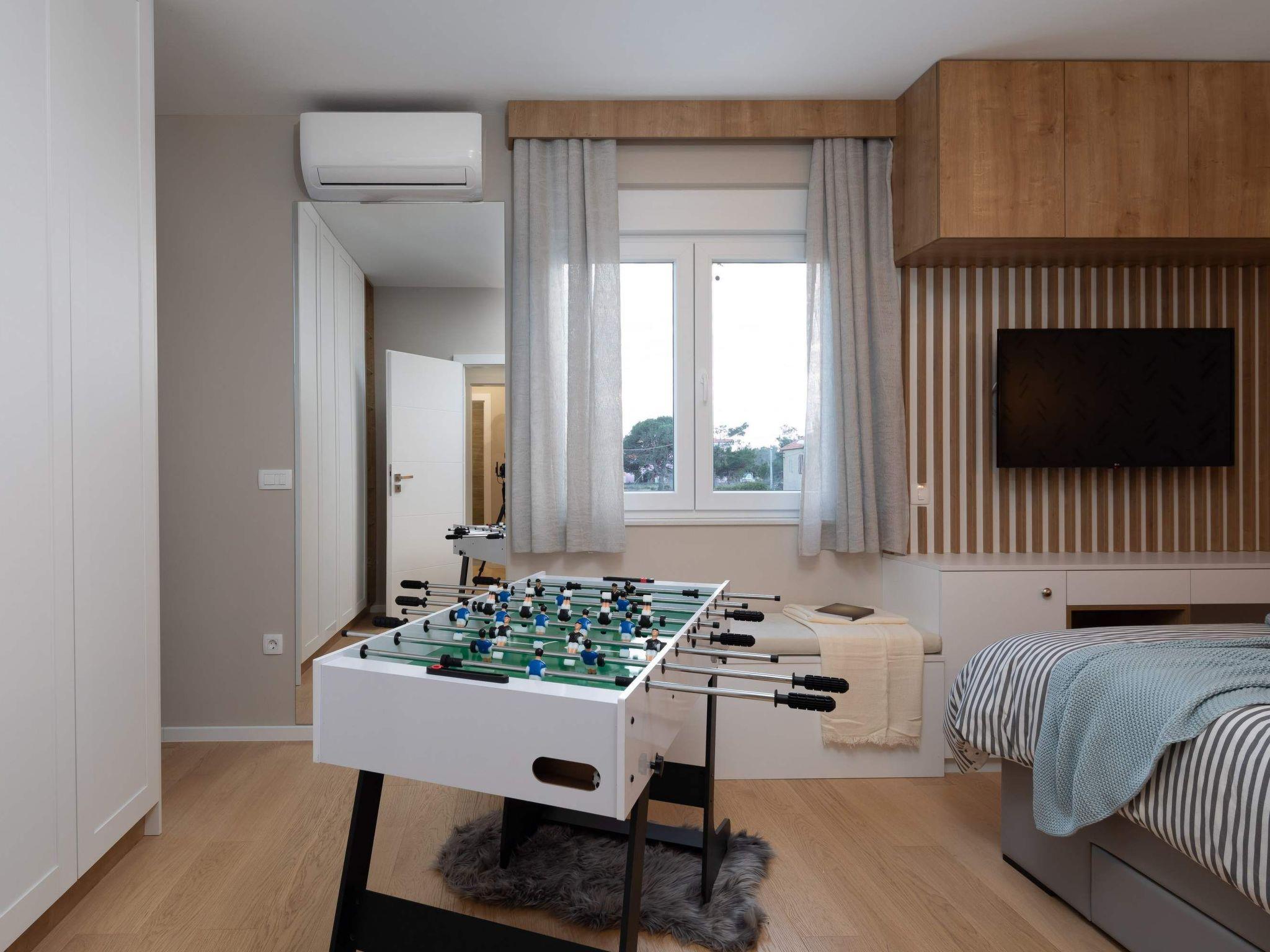 The fun features of this villa include a slide, swings and a playroom for children, including a table football.