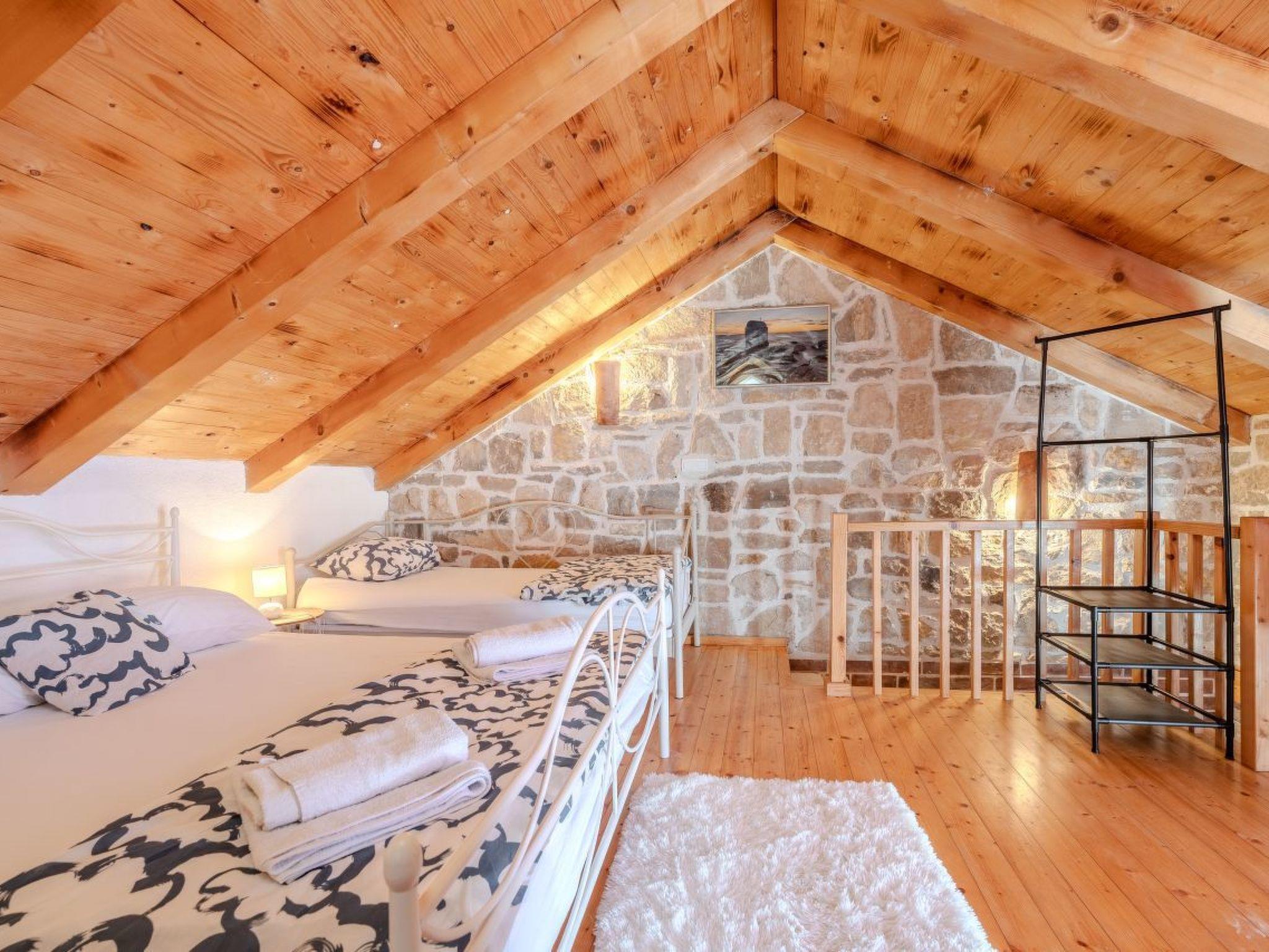 The stone house is a charming rural retreat that boasts a delightful interior design. The ground floor comprises a cozy living room with a dining table that welcomes plenty of natural light, a well-equipped kitchen with all necessary utensils and appliances, and a bathroom. Upstairs, two bedrooms lead to a spacious balcony, offering a perfect place to start your day with a cup of coffee and a beautiful view. The house can comfortably accommodate up to five people, making it an ideal choice for families or friends.