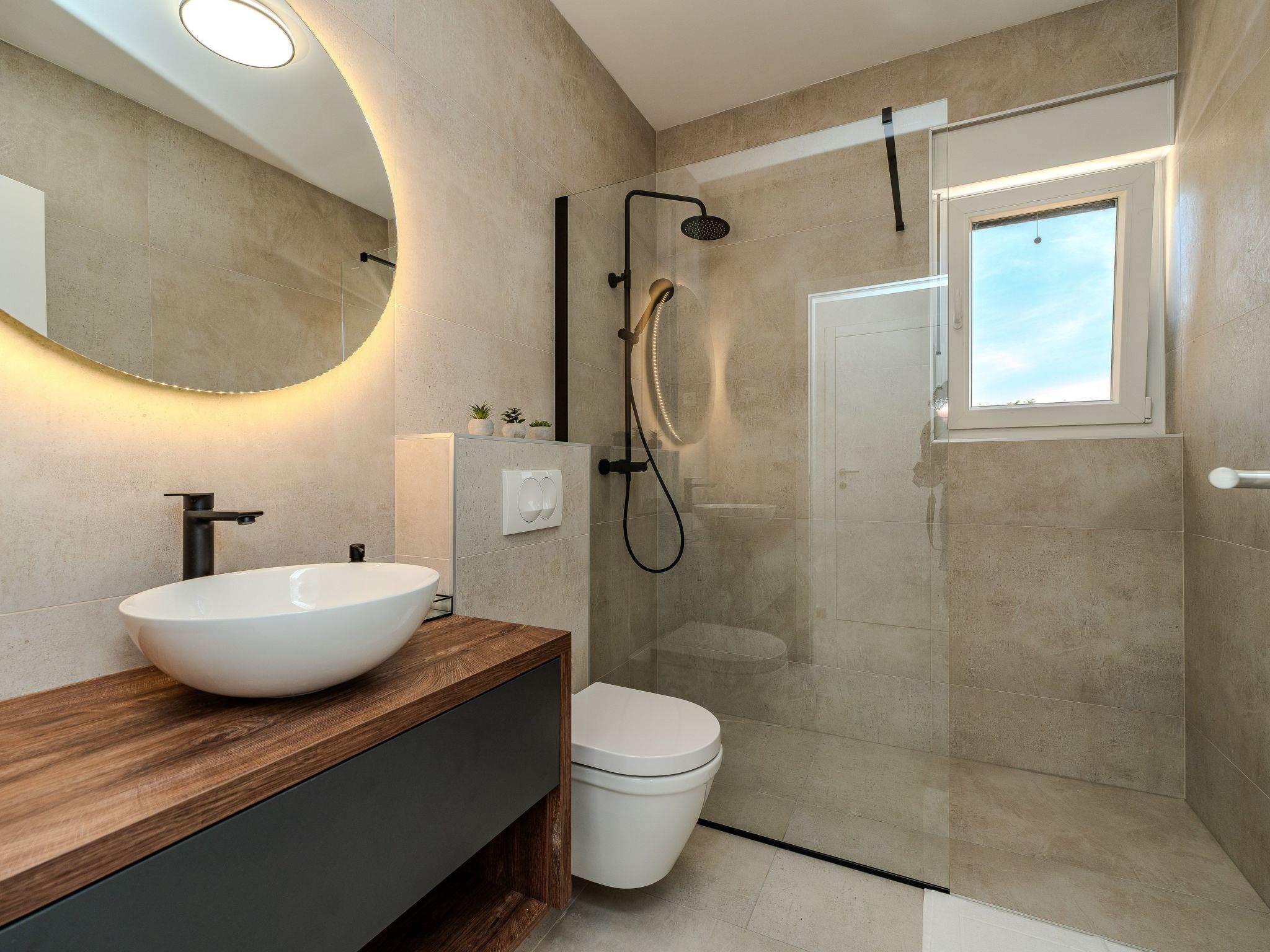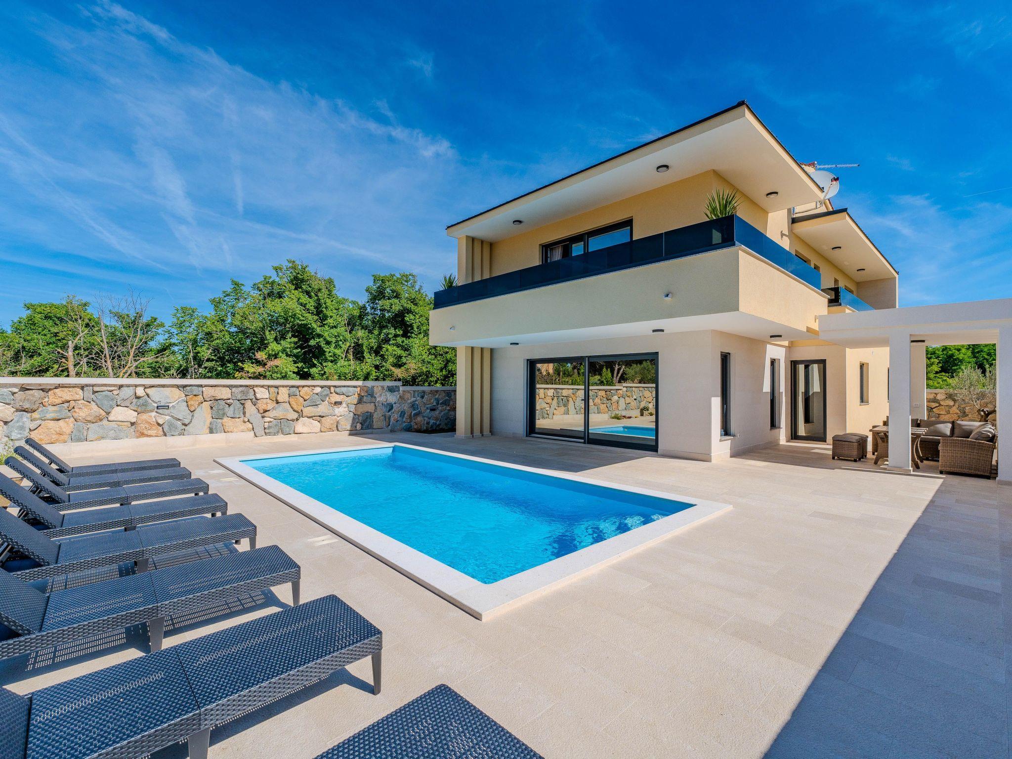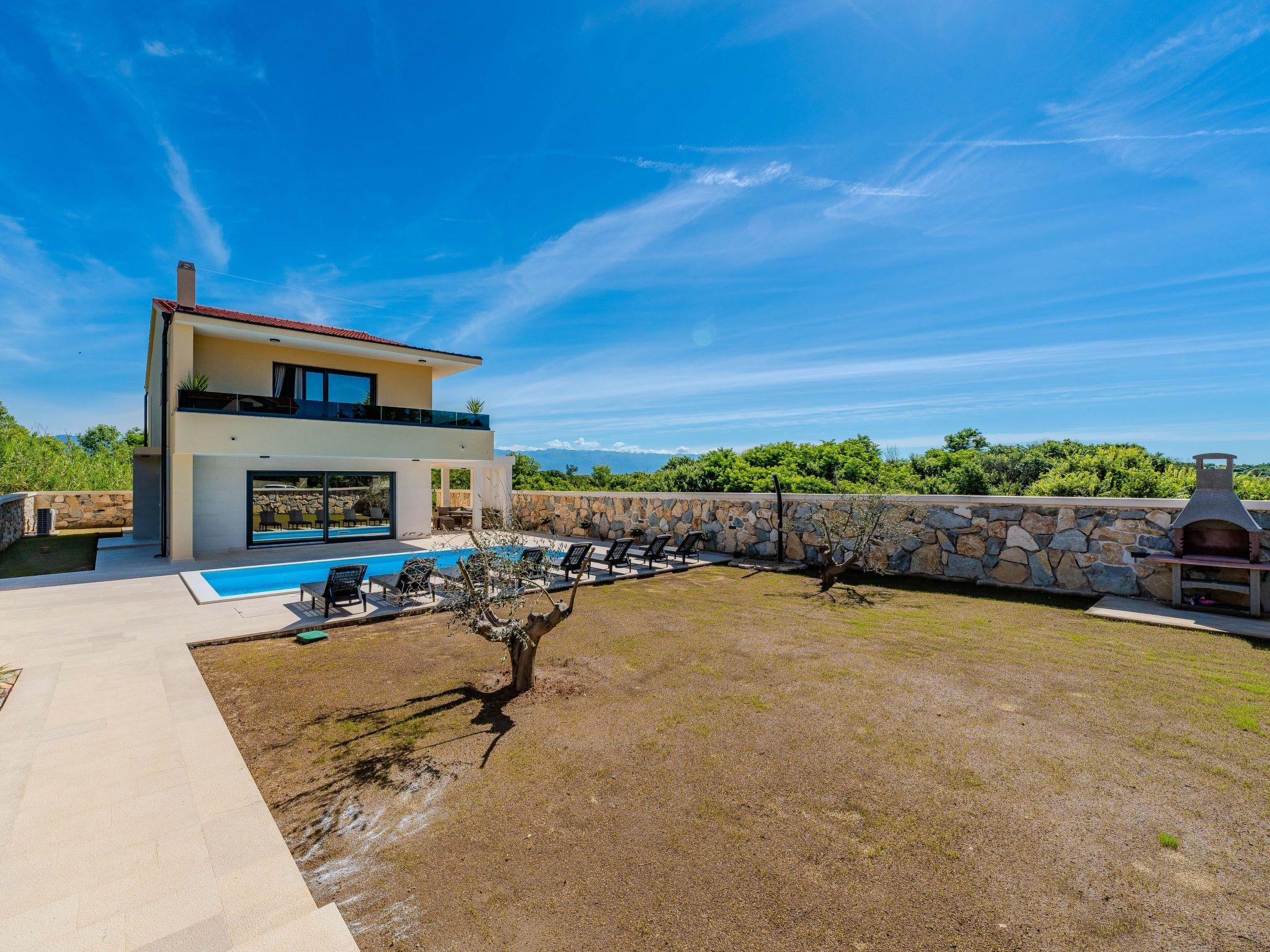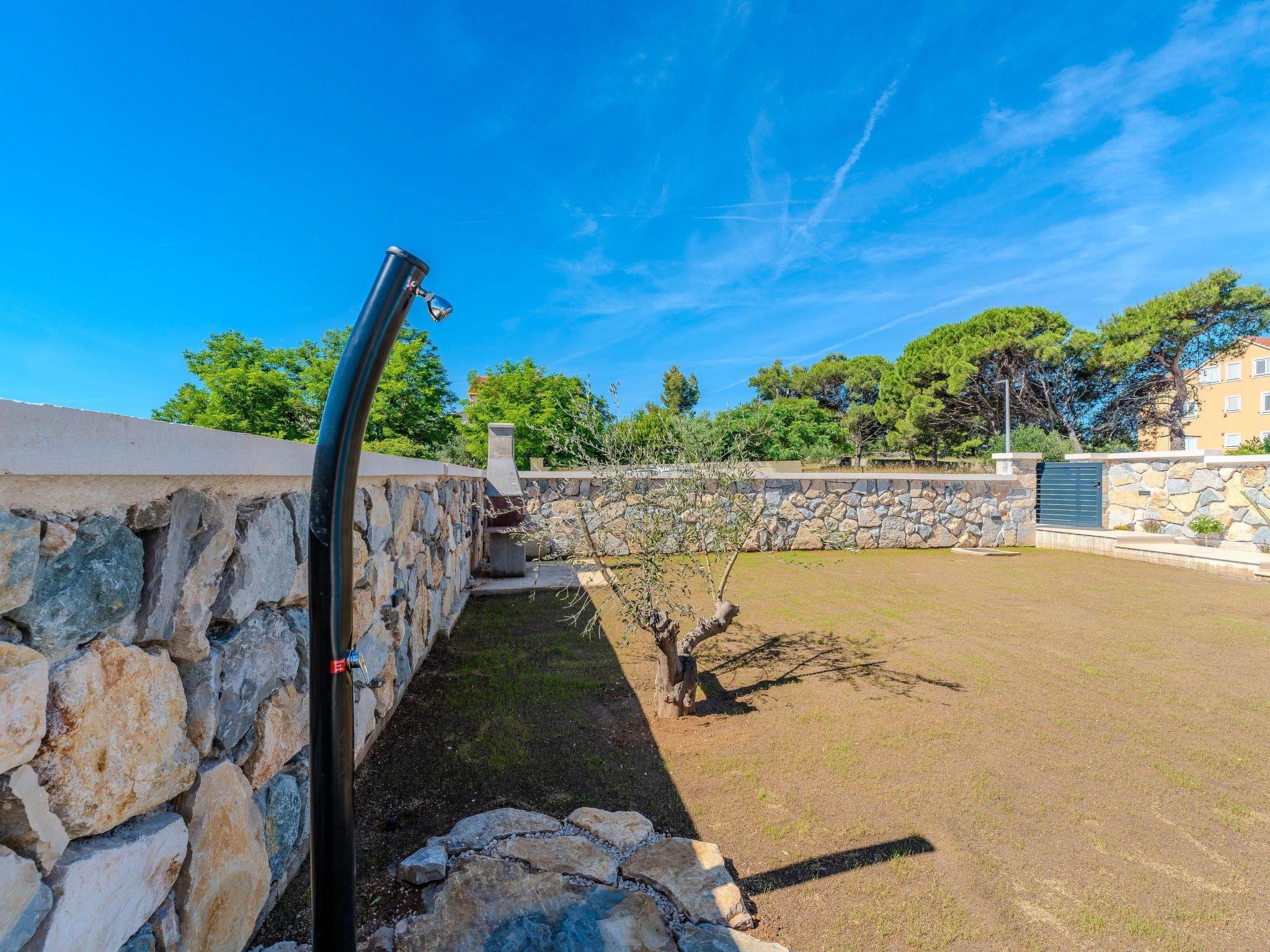 The exterior of the house is just as inviting, with a beautifully maintained garden and a pool area that promise leisure and enjoyment under the sun. The completely fenced yard ensures privacy and security, allowing guests to relax by the pool on the provided deckchairs or fire up the grill for an aromatic Dalmatian meal. The covered terrace offers a delightful space for outdoor dining or simply soaking in the peaceful ambiance of this quiet location, surrounded by lush greenery.