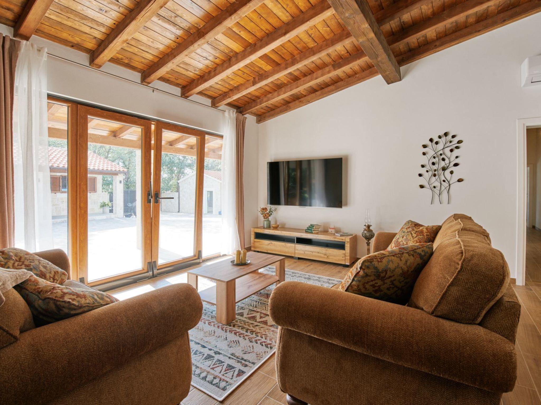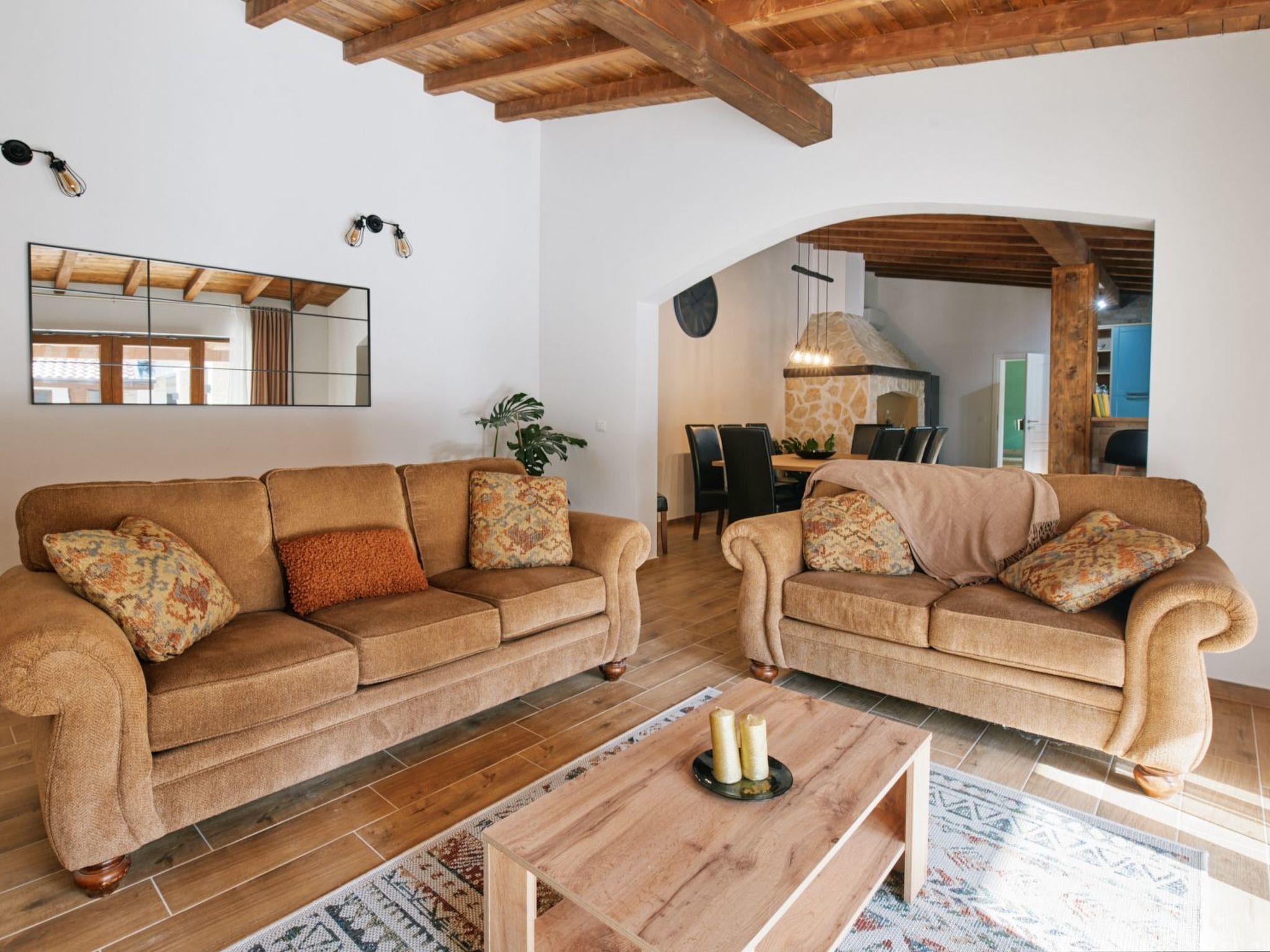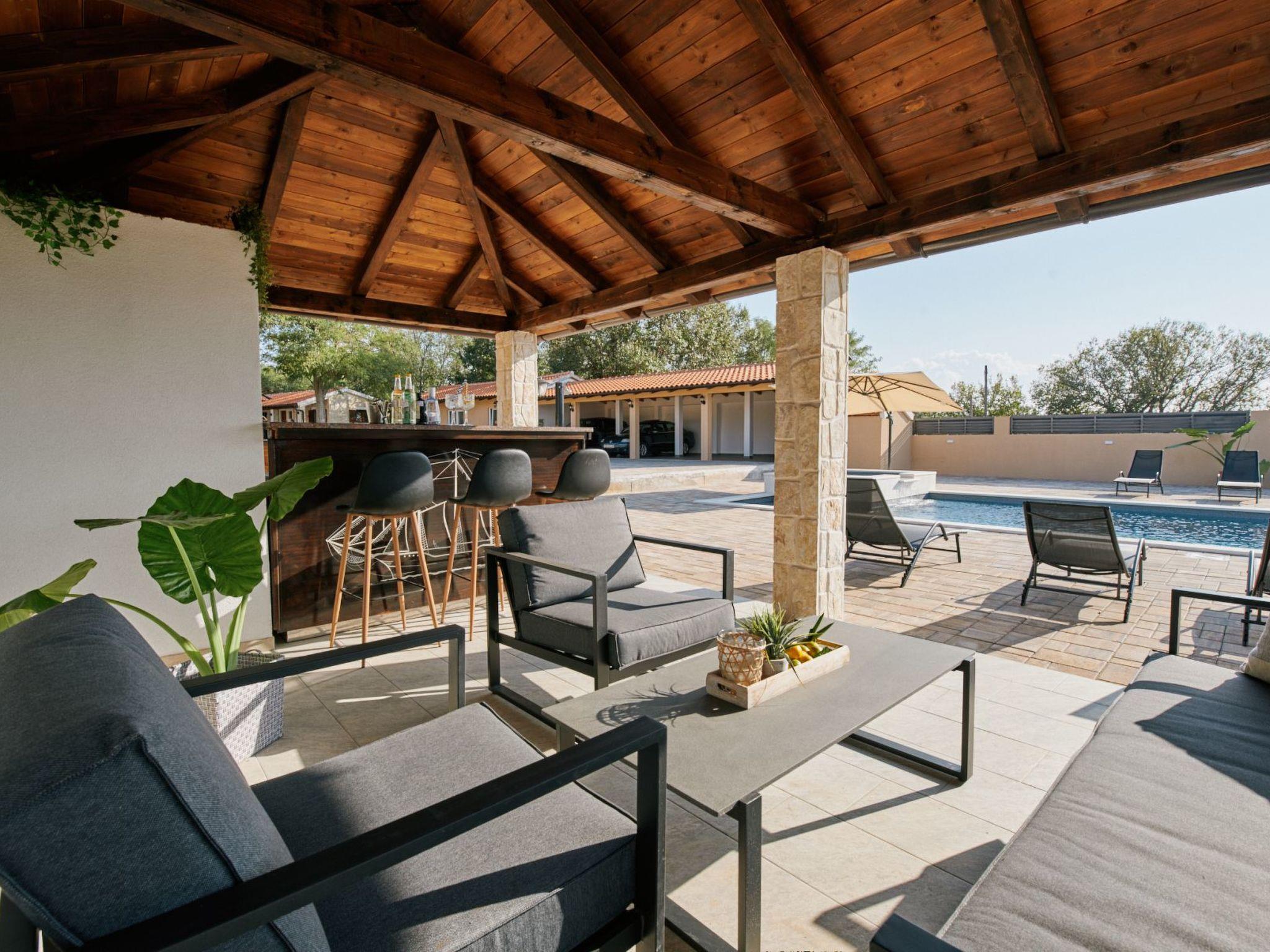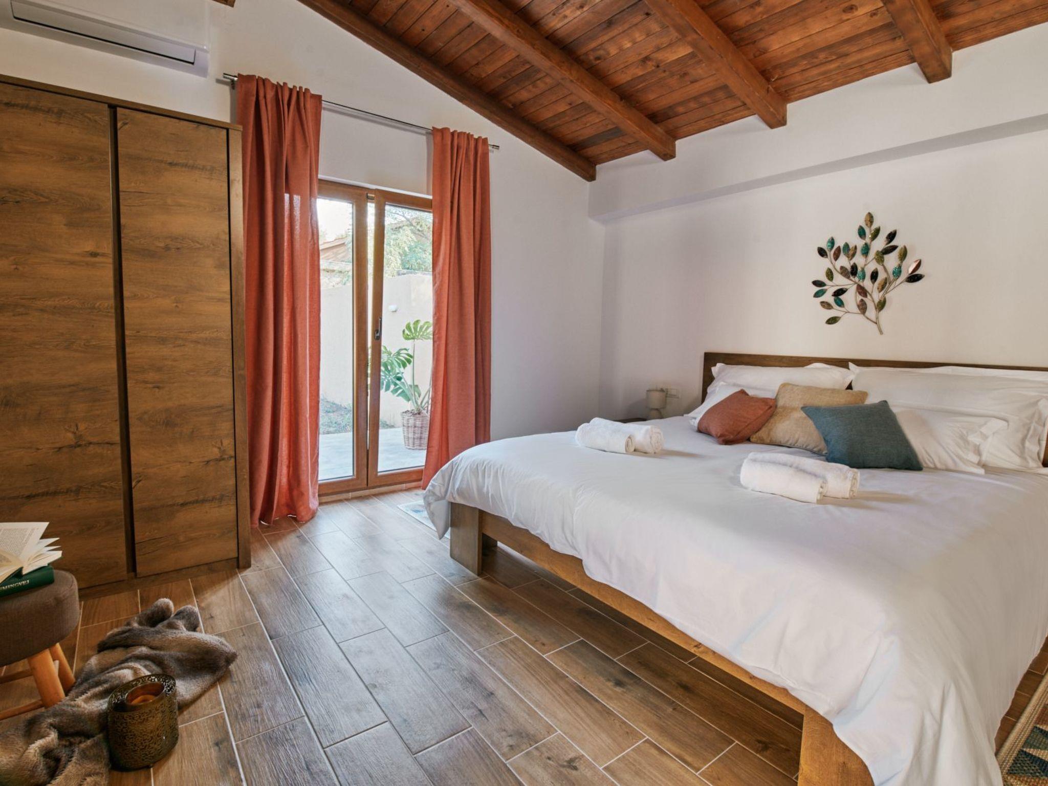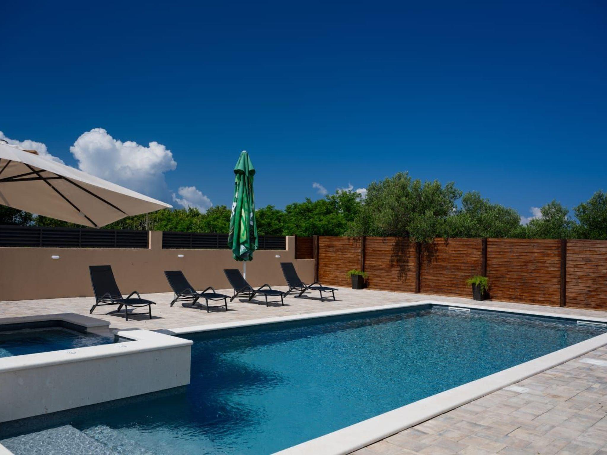 New Villa is located in the middle of a spacious stone courtyard. This rustically decorated villa with 300m2 of living space offers complete privacy and comfort in an extremely peaceful and natural environment. The house has four bedrooms and can accommodate 8+2 people. Each bedroom has satellite TV, air conditioning, Wi-Fi. The living room and the kitchen are very light due to the large windows that open onto the terrace with outdoor furniture. The terrace offers a view of the fully fenced garden of 1700 m2, which contains a heated outdoor pool with salt water, a jacuzzi, an outdoor bar, a gazebo with a seating area and a grill. The entire unit is located on the ground floor.