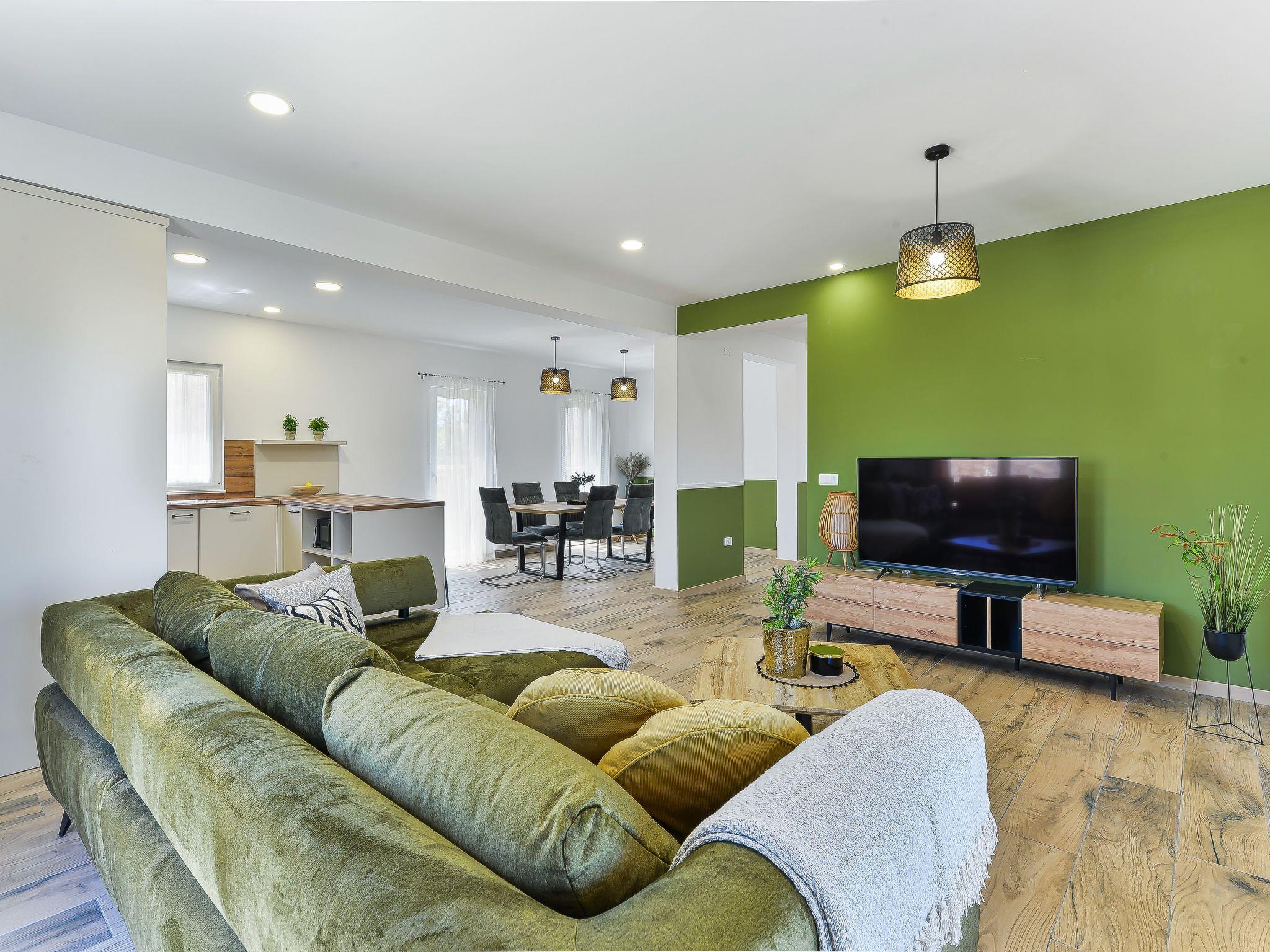 Villa Vid is a modernly equipped house that provides an extraordinary experience for families and friends. With three bedrooms and three modern bathrooms, it can accommodate up to six people. On the ground floor, there is a fully equipped kitchen and a spacious living room with a sofa bed. Guests will be delighted by the private covered terrace from which they can jump into the outdoor pool with a waterfall. They have at their disposal comfortable deckchairs together with a large umbrella, and there is a large table on the terrace. For the perfect end of the day, guests can socialize with a barbecue on the garden fireplace. During the colder months, guests can enjoy the jacuzzi and underfloor heating. On the first floor, there are bedrooms, two bathrooms, and a large balcony where guests can enjoy their morning coffee with a view of the blue sky. Parents with small children can enjoy their stay in the villa undisturbed - there is a children's playground inside the safe, fenced yard, and a cot and high chair are available for them, as well as a small table for children on the terrace. The yard is covered with grass and pets are welcome. Guests are provided with free parking in front of the house, as well as a good Wi-Fi network. Villa Vid is a modernly equipped house that provides an extraordinary experience for families and friends. With three bedrooms and three modern bathrooms, it can accommodate up to six people. On the ground floor there is a fully equipped kitchen and a spacious living room with a sofa bed. Guests will be delighted by the private covered terrace from which they can jump into the outdoor pool with a waterfall. They have at their disposal comfortable deckchairs together with a large umbrella, and there is a large table on the terrace. For the perfect end of the day, guests can socialize with a barbecue on the garden fireplace. During the colder months, guests can enjoy the jacuzzi and underfloor heating. On the first floor, there are all bedrooms, two bathrooms and a large balcony where guests can enjoy their morning coffee with a view of the blue sky. Parents with small children can enjoy their stay in the villa undisturbed - there is a children's playground inside the safe, fenced yard, and a cot and high chair are available for them, as well as a small table for children on the terrace. Guests are provided with free parking in front of the house, as well as a good Wi-Fi network.