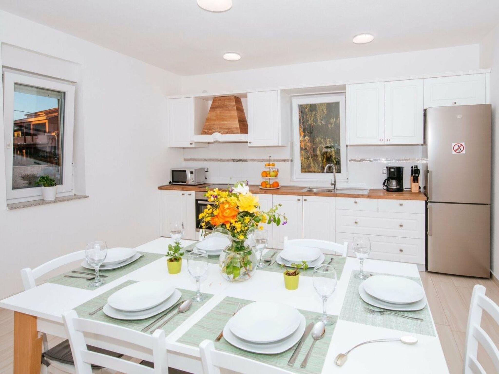 Inside, Ana Dreams is impeccably arranged to meet your every need. The house features three inviting bedrooms and two well-appointed bathrooms, ensuring privacy and comfort for all guests. Essential amenities, such as a dishwasher, electric kettle, and a washing machine for exclusive use, add a layer of convenience to your stay. Partial air conditioning keeps the atmosphere cool and inviting, making it easy to unwind after a day under the Dalmatian sun.