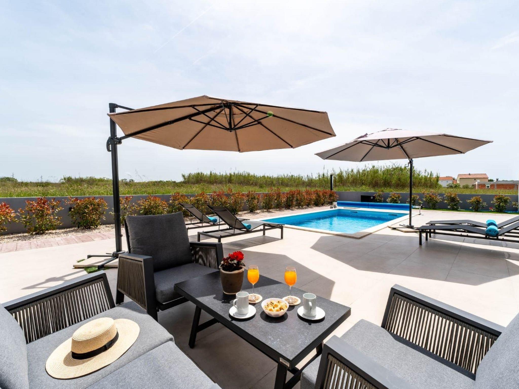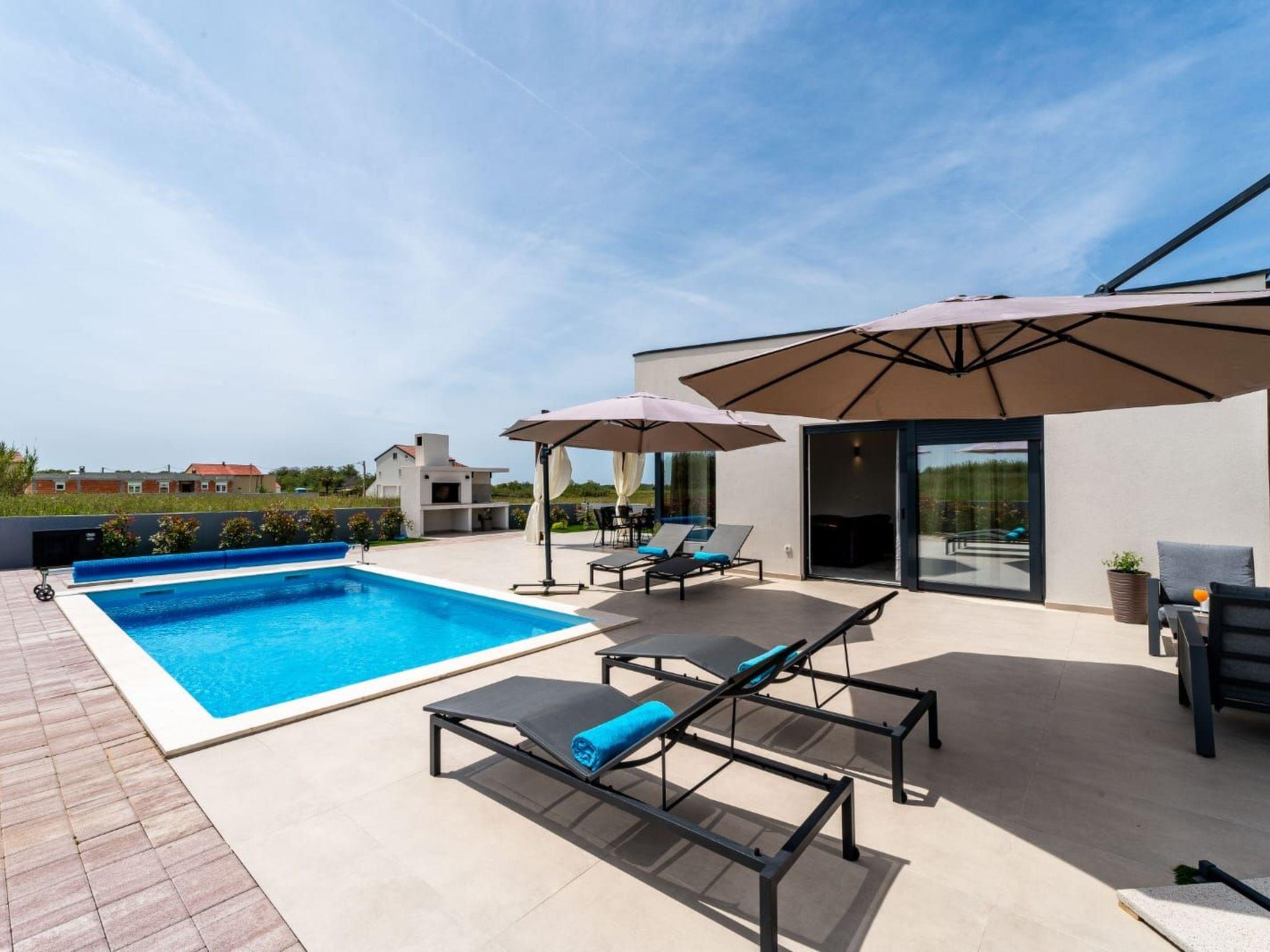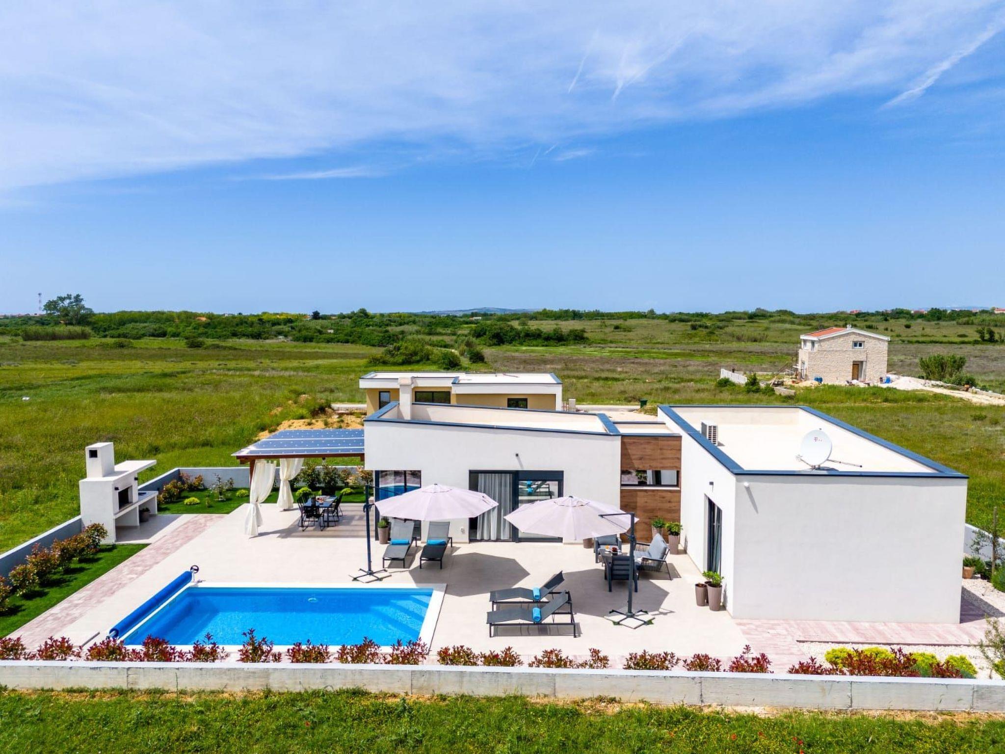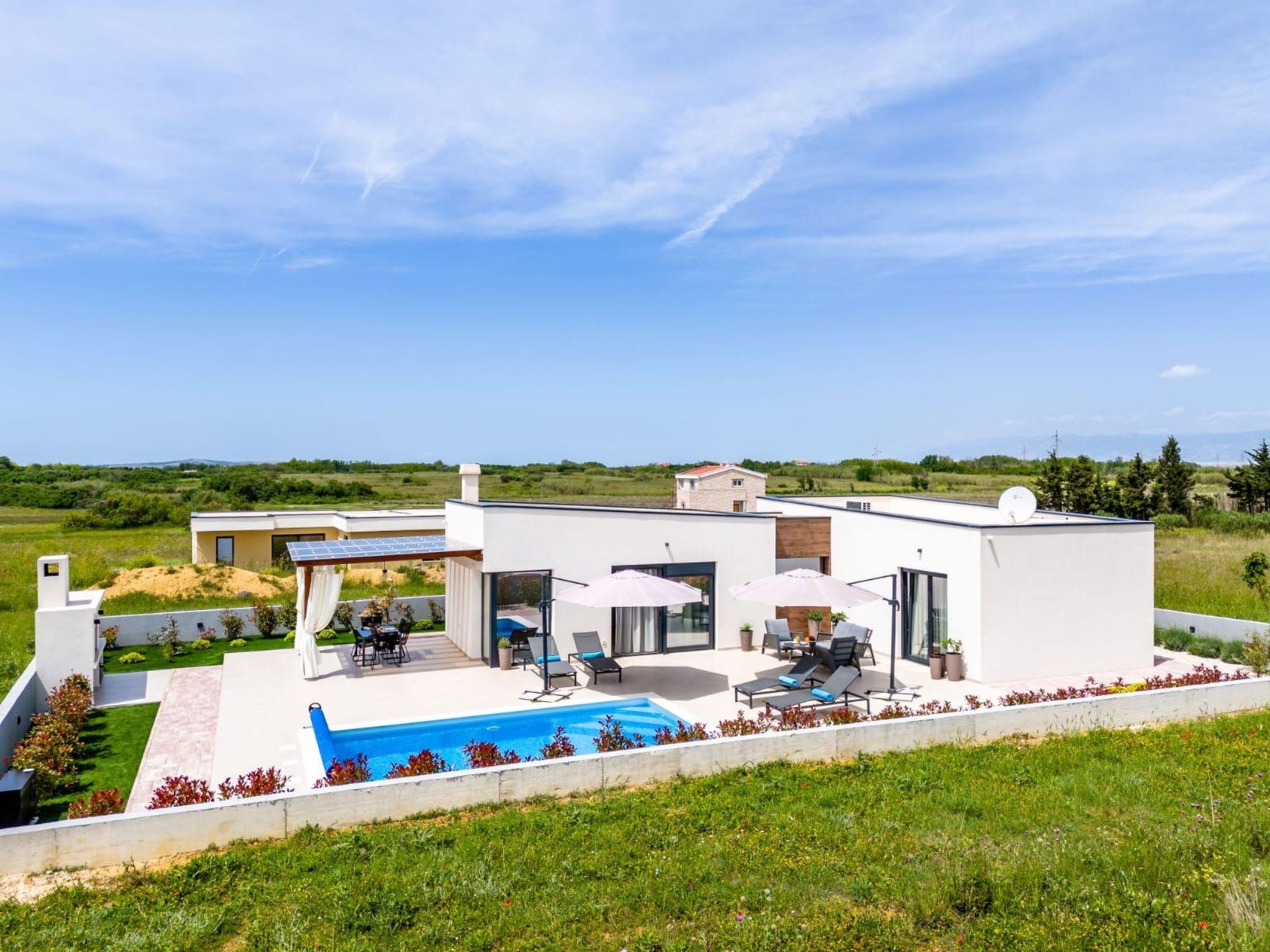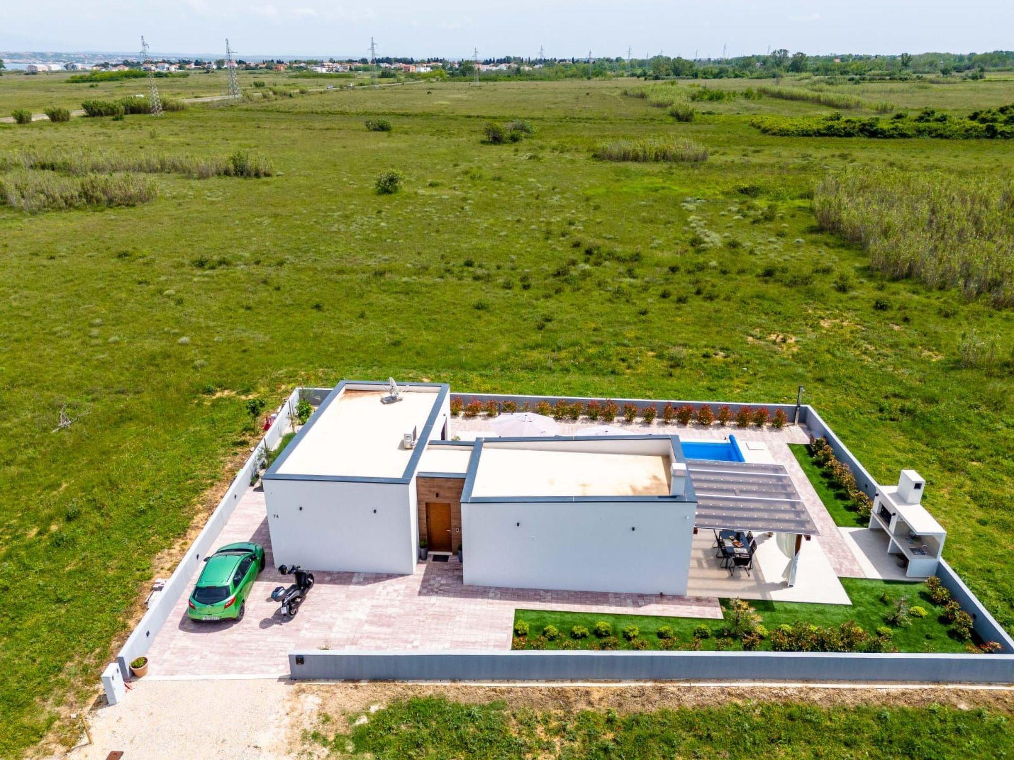 Villa is a modernly equipped house with a large concrete yard and swimming pool. With two bedrooms with a TV and two modern bathrooms, it can accommodate up to six people. In addition to the rooms, there is also a spacious living room and a modern, fully equipped kitchen that leads directly to the courtyard with the pool, which gives guests an extraordinary experience. In the morning, I can make a cup of coffee from the coffee machine and head straight for the fresh air enjoying the peace lying on comfortable deckchairs. When the sun starts to burn, there is a large pool where you can refresh yourself, and later watch a spectacular sunset from it, which is said to be the most beautiful in Zadar. The terrace also has comfortable outdoor furniture where guests can relax with a book, and a glass of cocktail or socialize with a plate of Dalmatian delicacies. Summer nights can be spent with BBQ gatherings - they have a grill and accessories for it at their disposal. The villa is covered by an excellent wi-fi network, has air conditioning and heating, and guests are provided with private parking. This oasis offers a unique opportunity to enjoy the charms of all seasons.