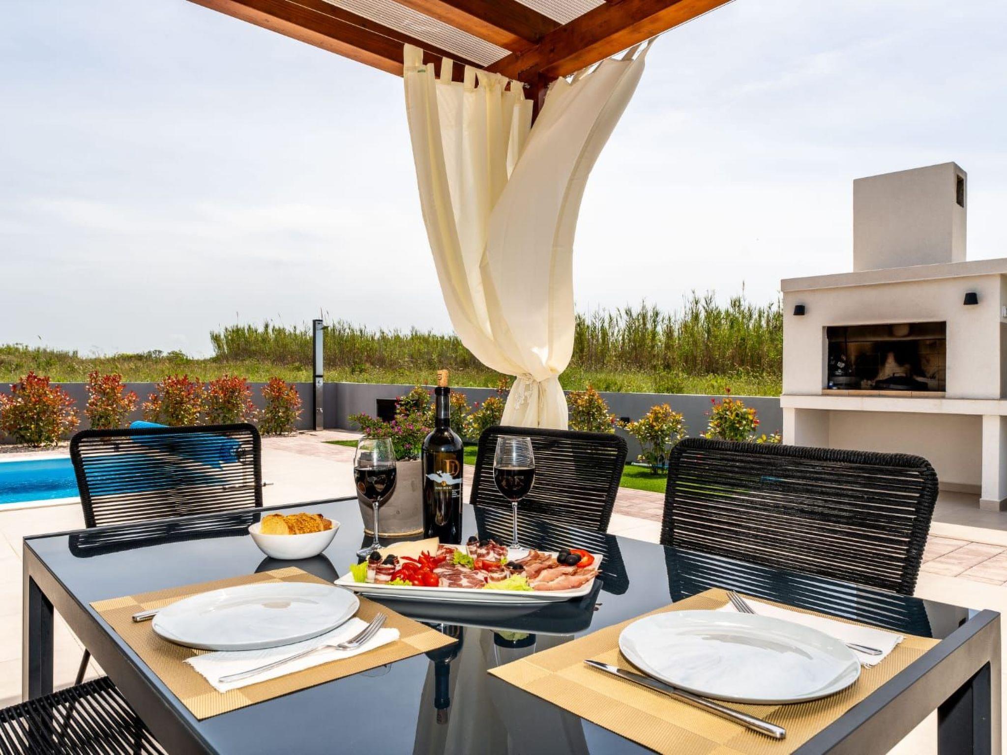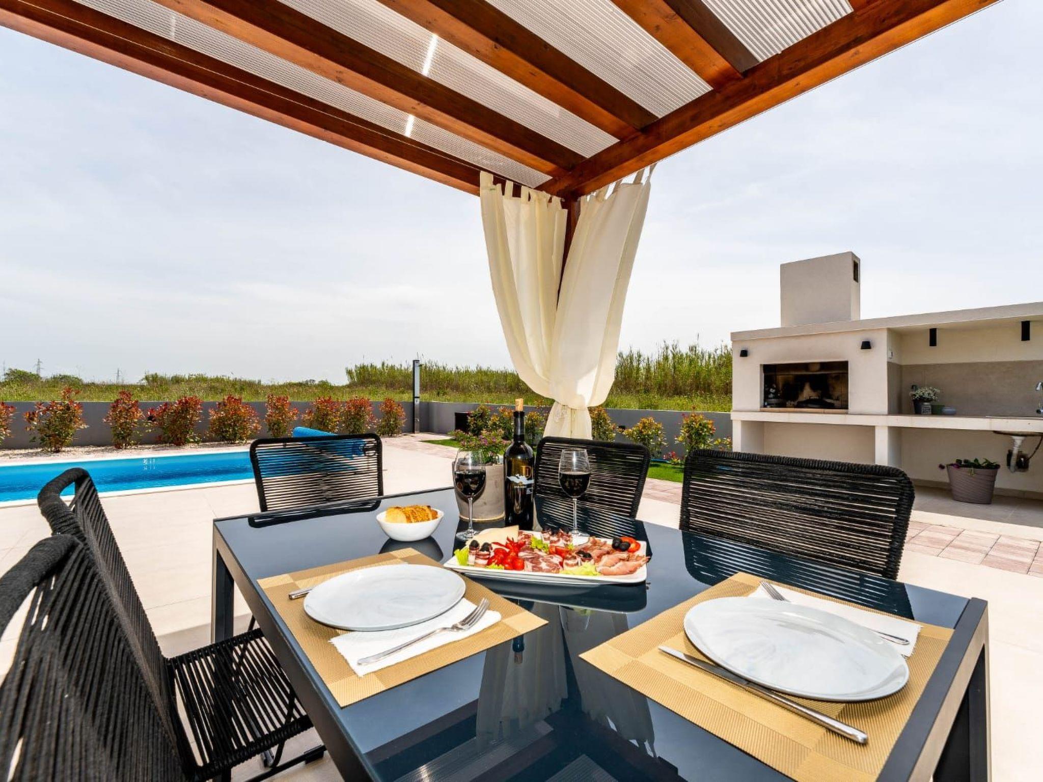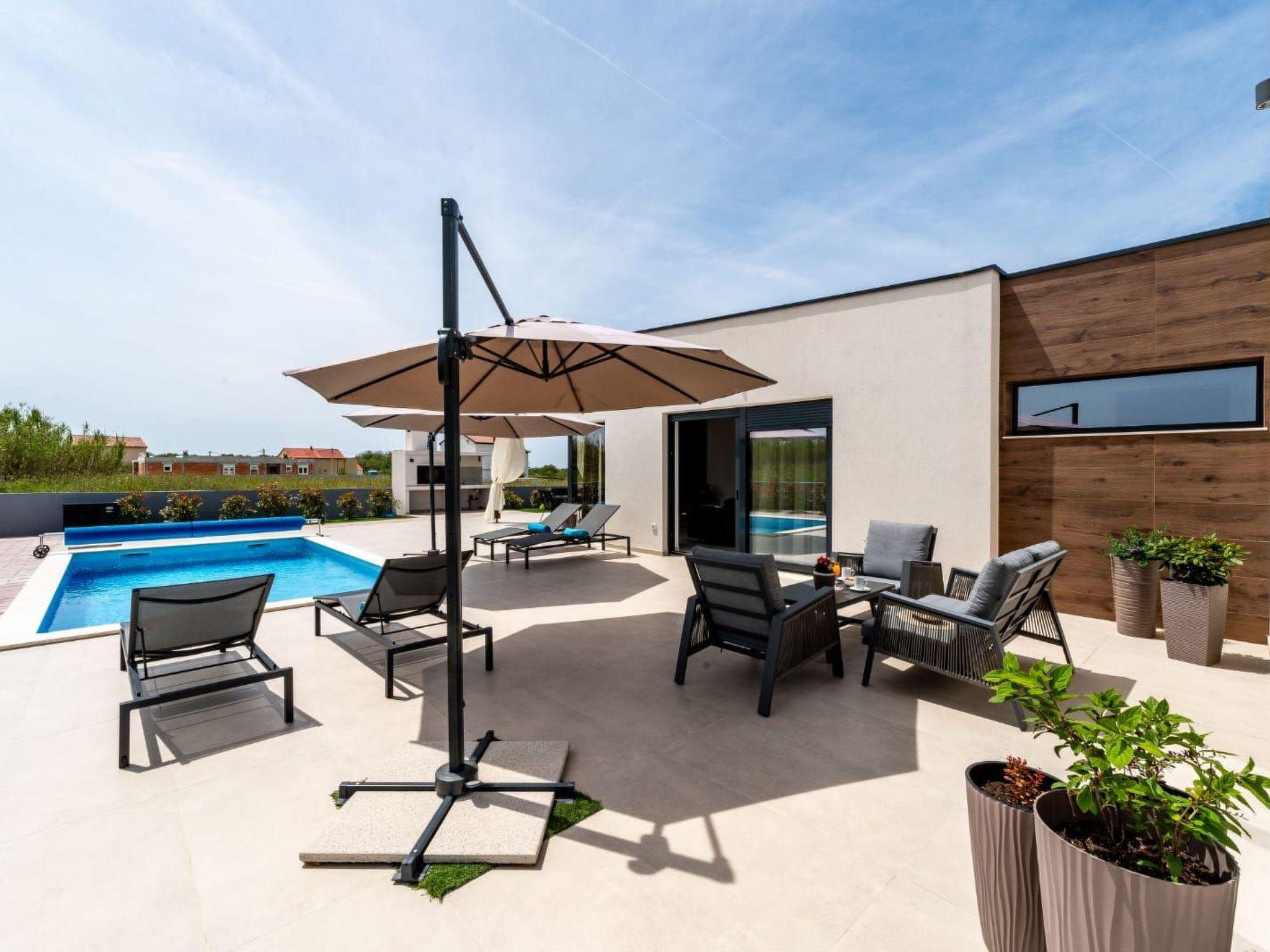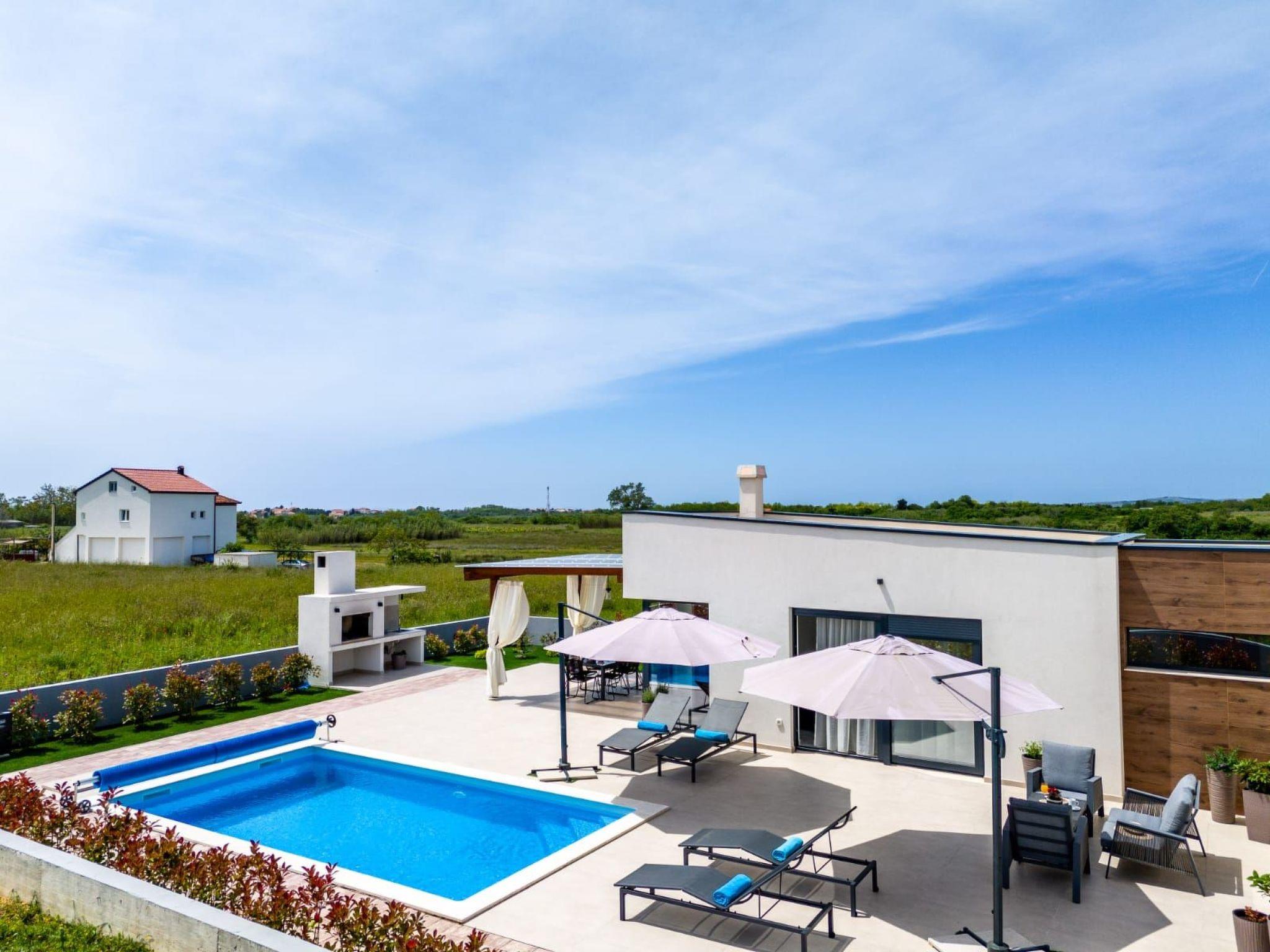 Villa is a modernly equipped house with a large concrete yard and swimming pool. With two bedrooms with a TV and two modern bathrooms, it can accommodate up to six people. In addition to the rooms, there is also a spacious living room and a modern, fully equipped kitchen that leads directly to the courtyard with the pool, which gives guests an extraordinary experience. In the morning, I can make a cup of coffee from the coffee machine and head straight for the fresh air enjoying the peace lying on comfortable deckchairs. When the sun starts to burn, there is a large pool where you can refresh yourself, and later watch a spectacular sunset from it, which is said to be the most beautiful in Zadar. The terrace also has comfortable outdoor furniture where guests can relax with a book, and a glass of cocktail or socialize with a plate of Dalmatian delicacies. Summer nights can be spent with BBQ gatherings - they have a grill and accessories for it at their disposal. The villa is covered by an excellent wi-fi network, has air conditioning and heating, and guests are provided with private parking. This oasis offers a unique opportunity to enjoy the charms of all seasons.