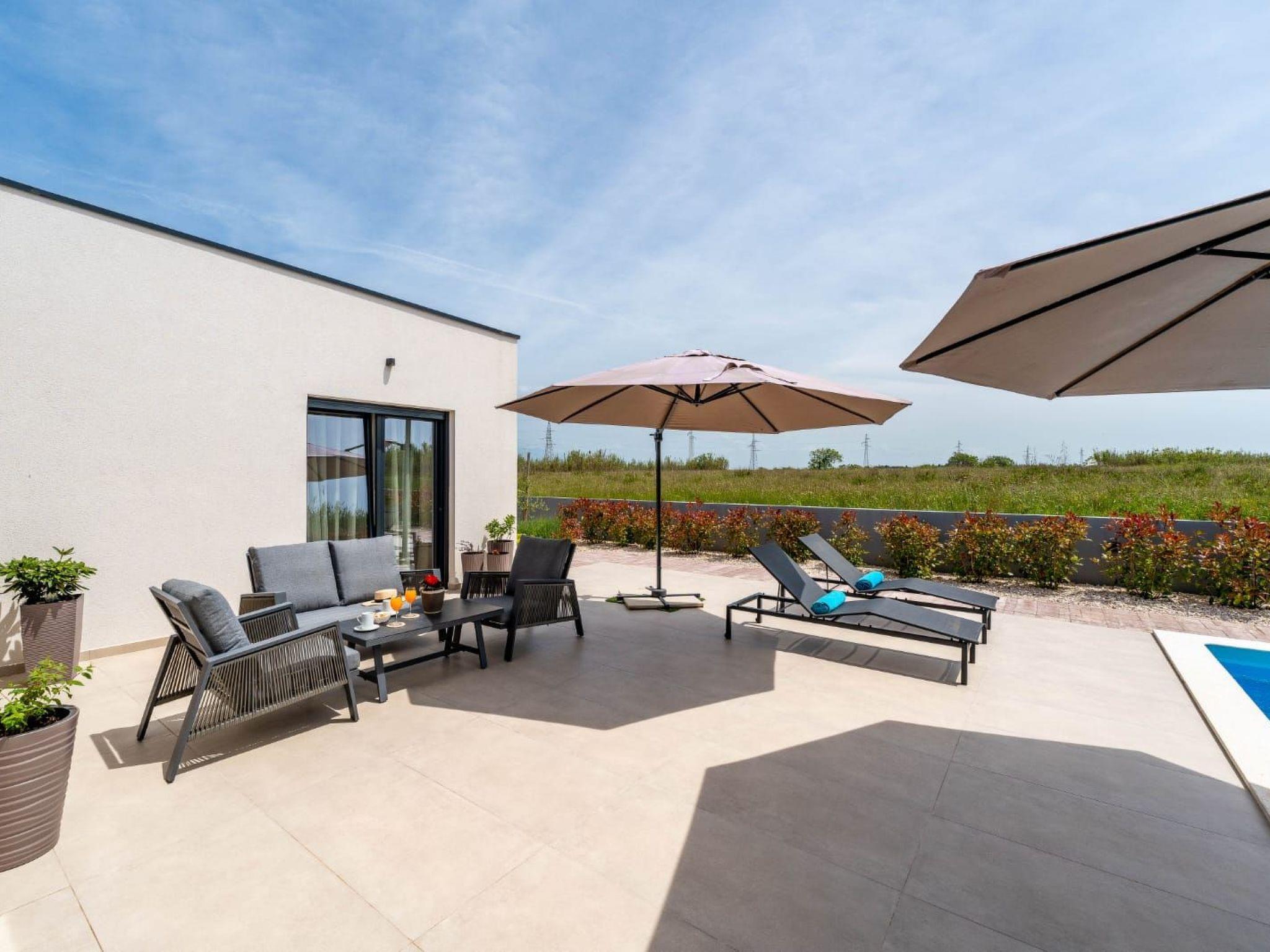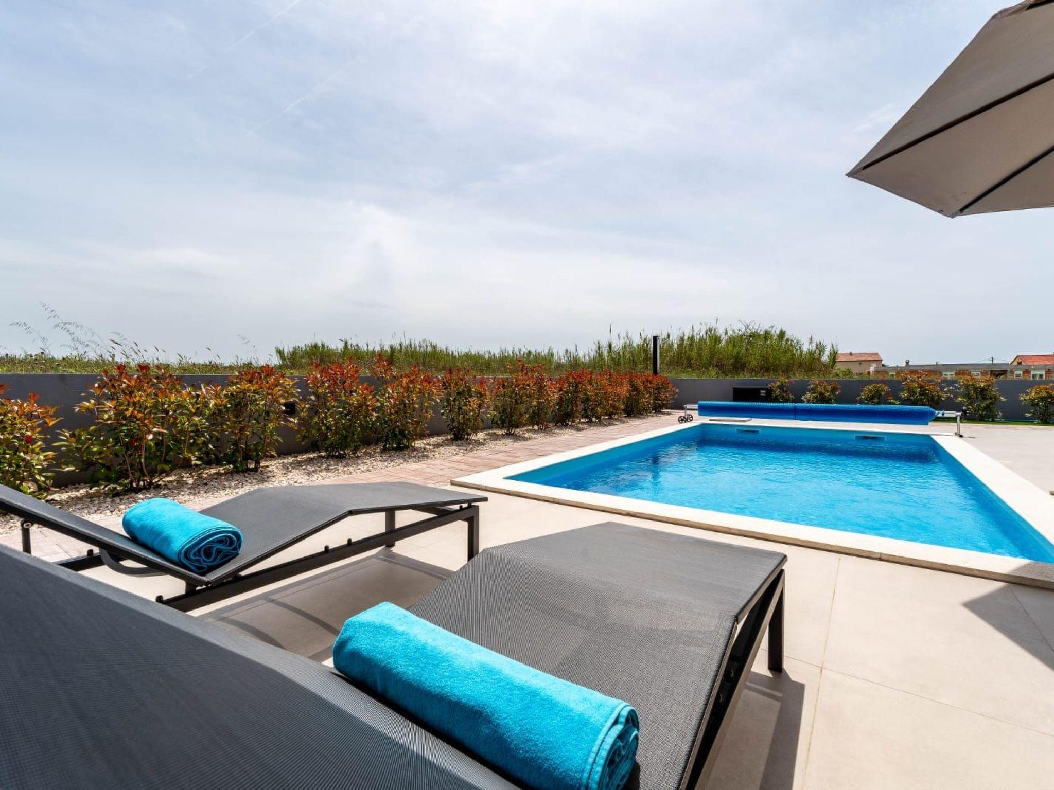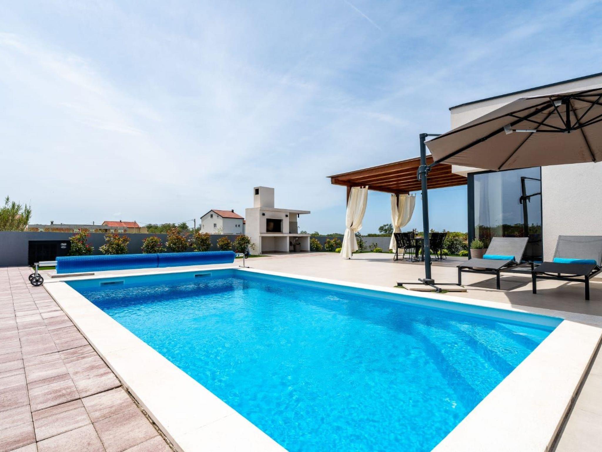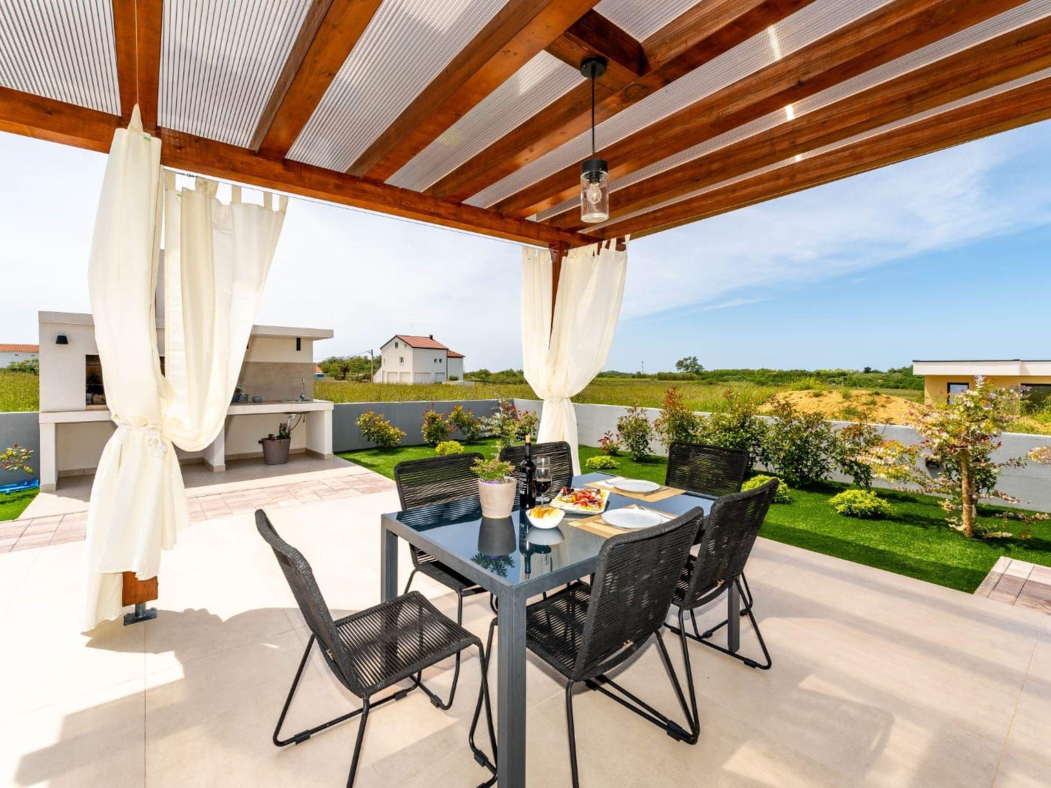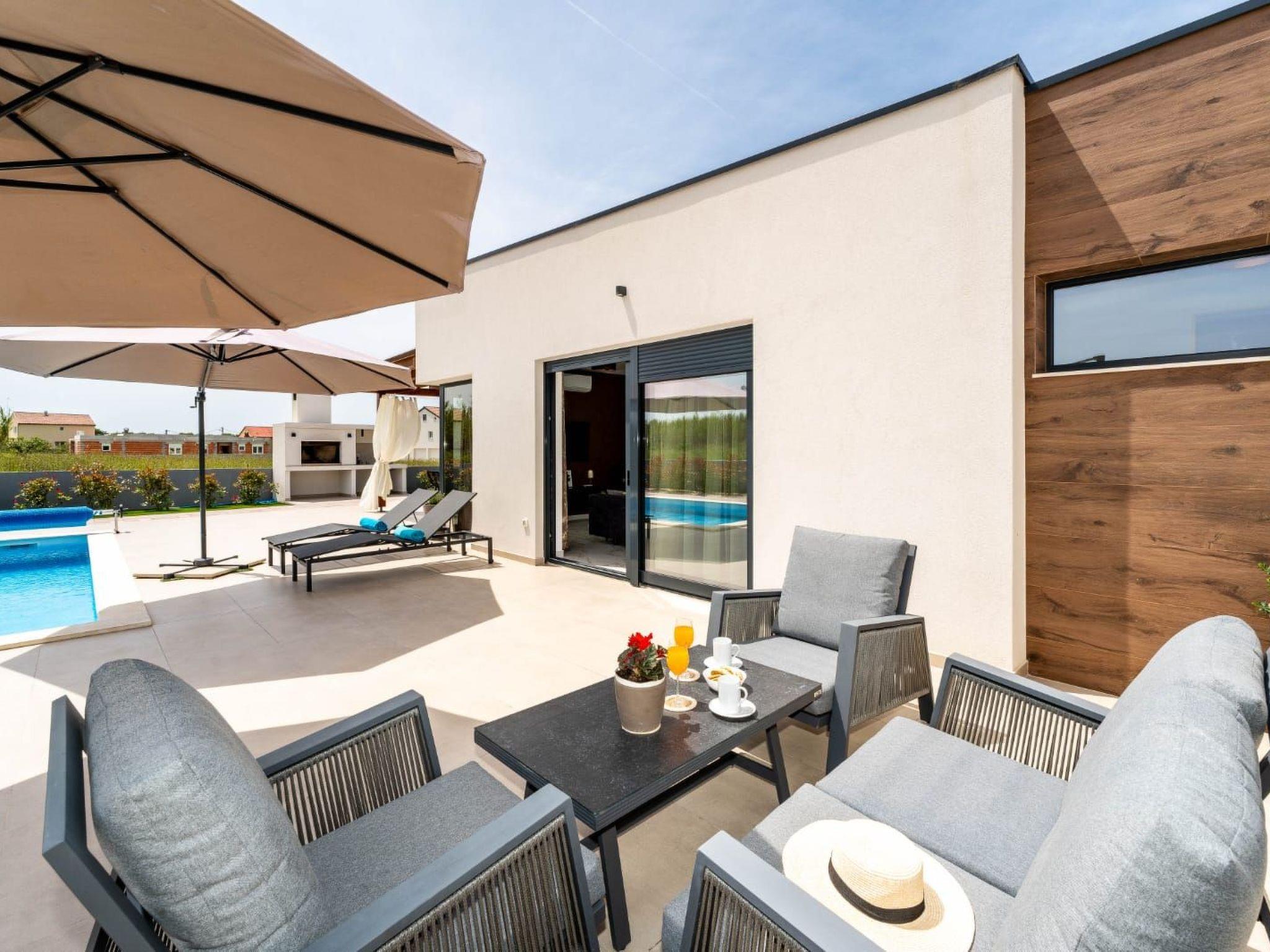 Villa is a modernly equipped house with a large concrete yard and swimming pool. With two bedrooms with a TV and two modern bathrooms, it can accommodate up to six people. In addition to the rooms, there is also a spacious living room and a modern, fully equipped kitchen that leads directly to the courtyard with the pool, which gives guests an extraordinary experience. In the morning, I can make a cup of coffee from the coffee machine and head straight for the fresh air enjoying the peace lying on comfortable deckchairs. When the sun starts to burn, there is a large pool where you can refresh yourself, and later watch a spectacular sunset from it, which is said to be the most beautiful in Zadar. The terrace also has comfortable outdoor furniture where guests can relax with a book, and a glass of cocktail or socialize with a plate of Dalmatian delicacies. Summer nights can be spent with BBQ gatherings - they have a grill and accessories for it at their disposal. The villa is covered by an excellent wi-fi network, has air conditioning and heating, and guests are provided with private parking. This oasis offers a unique opportunity to enjoy the charms of all seasons.