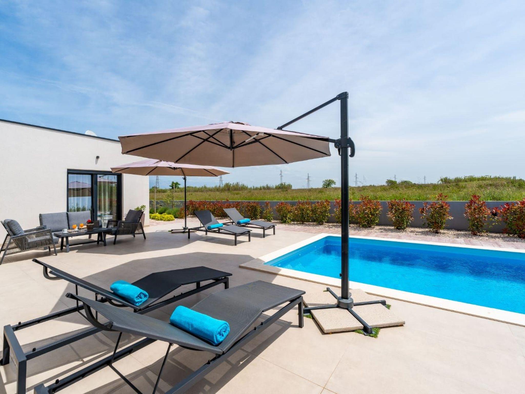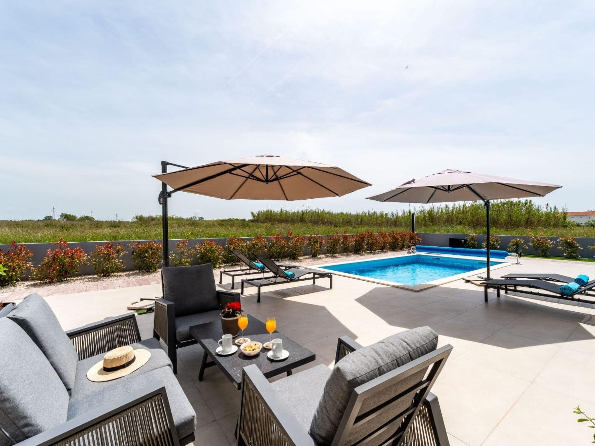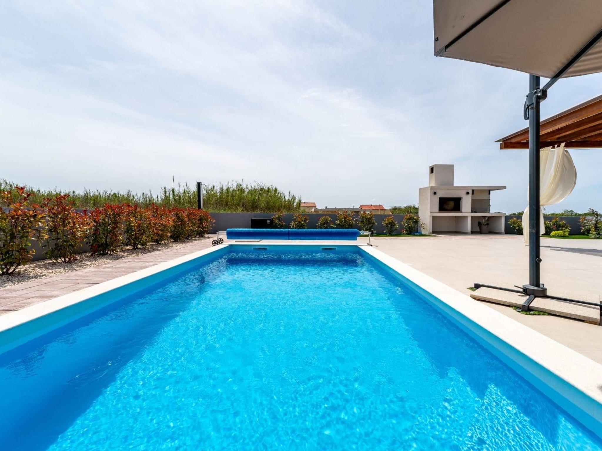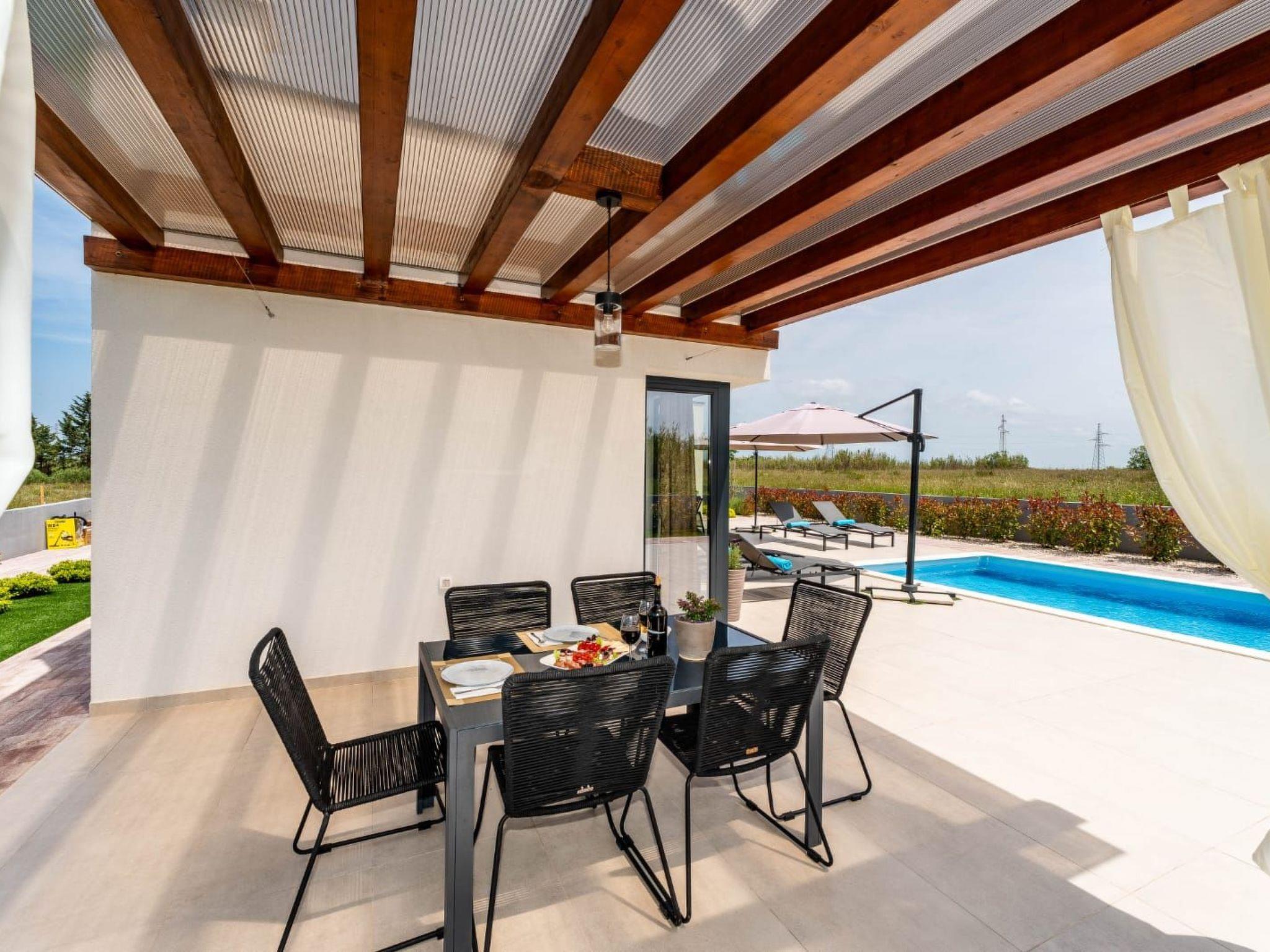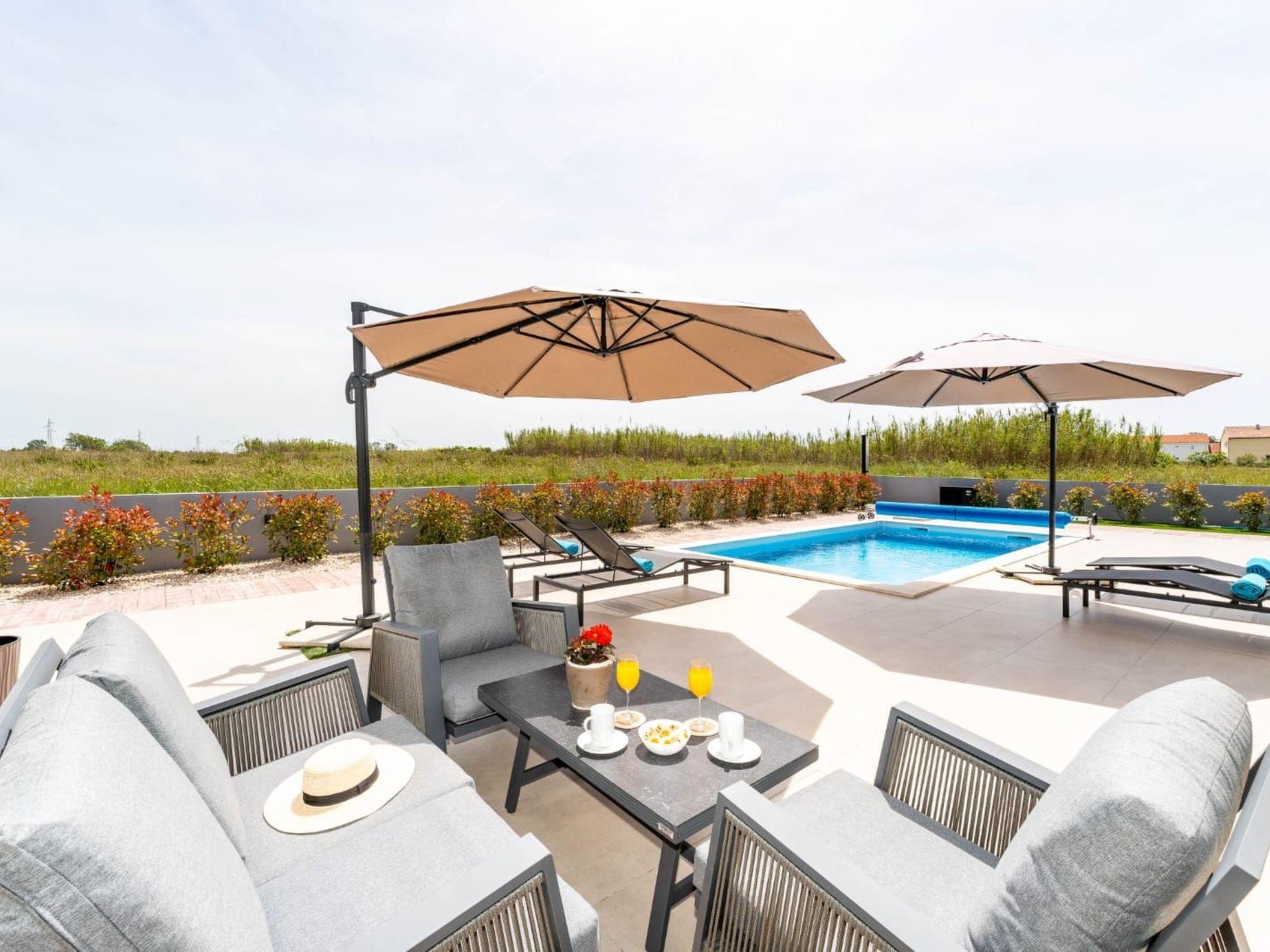 Villa is a modernly equipped house with a large concrete yard and swimming pool. With two bedrooms with a TV and two modern bathrooms, it can accommodate up to six people. In addition to the rooms, there is also a spacious living room and a modern, fully equipped kitchen that leads directly to the courtyard with the pool, which gives guests an extraordinary experience. In the morning, I can make a cup of coffee from the coffee machine and head straight for the fresh air enjoying the peace lying on comfortable deckchairs. When the sun starts to burn, there is a large pool where you can refresh yourself, and later watch a spectacular sunset from it, which is said to be the most beautiful in Zadar. The terrace also has comfortable outdoor furniture where guests can relax with a book, and a glass of cocktail or socialize with a plate of Dalmatian delicacies. Summer nights can be spent with BBQ gatherings - they have a grill and accessories for it at their disposal. The villa is covered by an excellent wi-fi network, has air conditioning and heating, and guests are provided with private parking. This oasis offers a unique opportunity to enjoy the charms of all seasons.