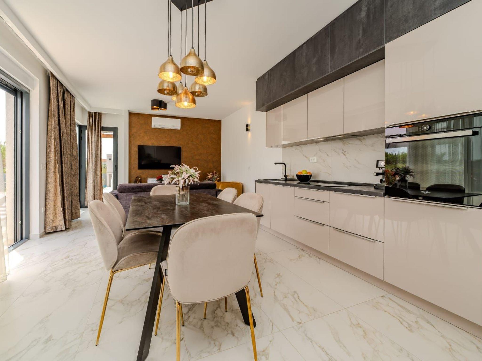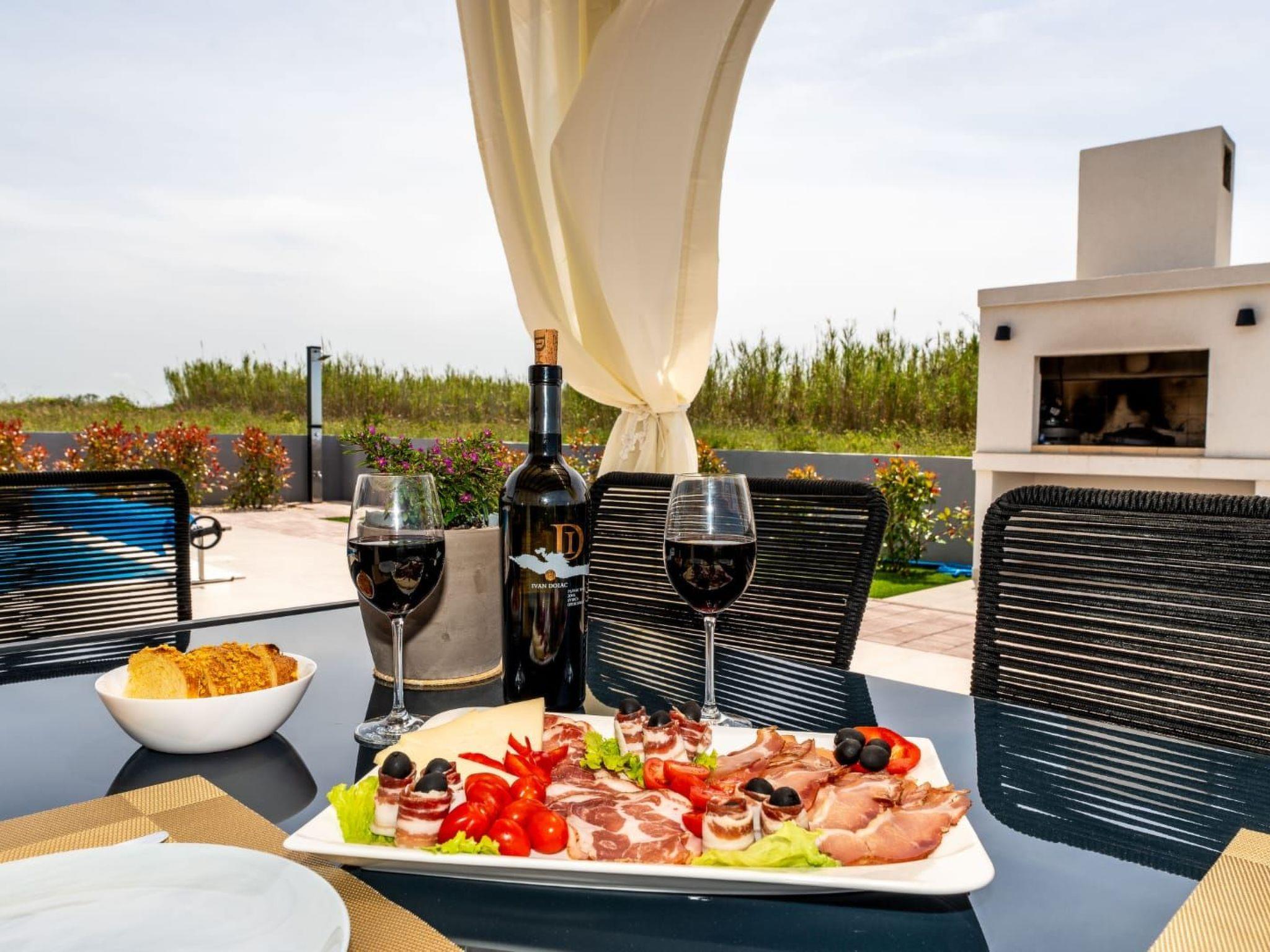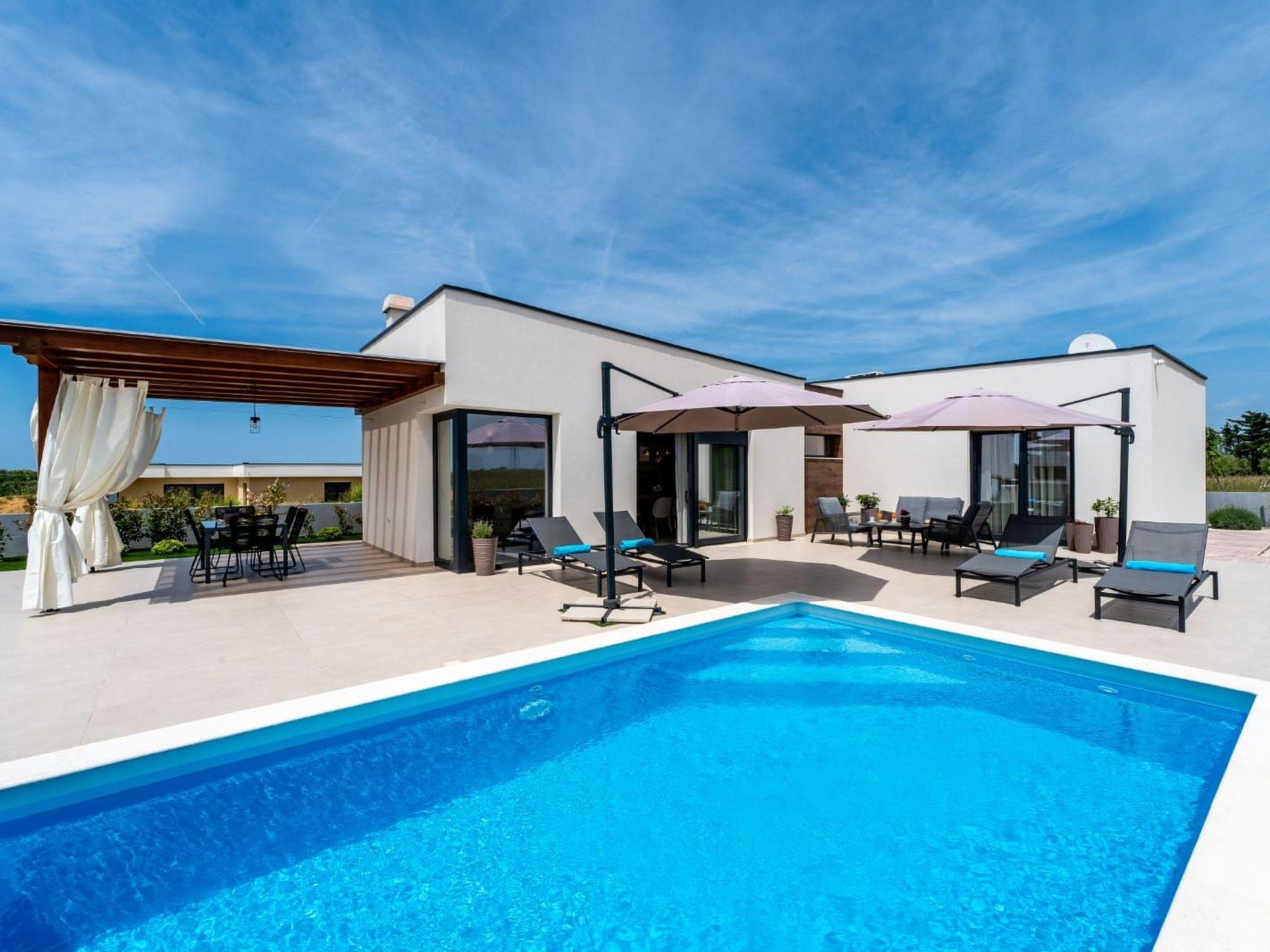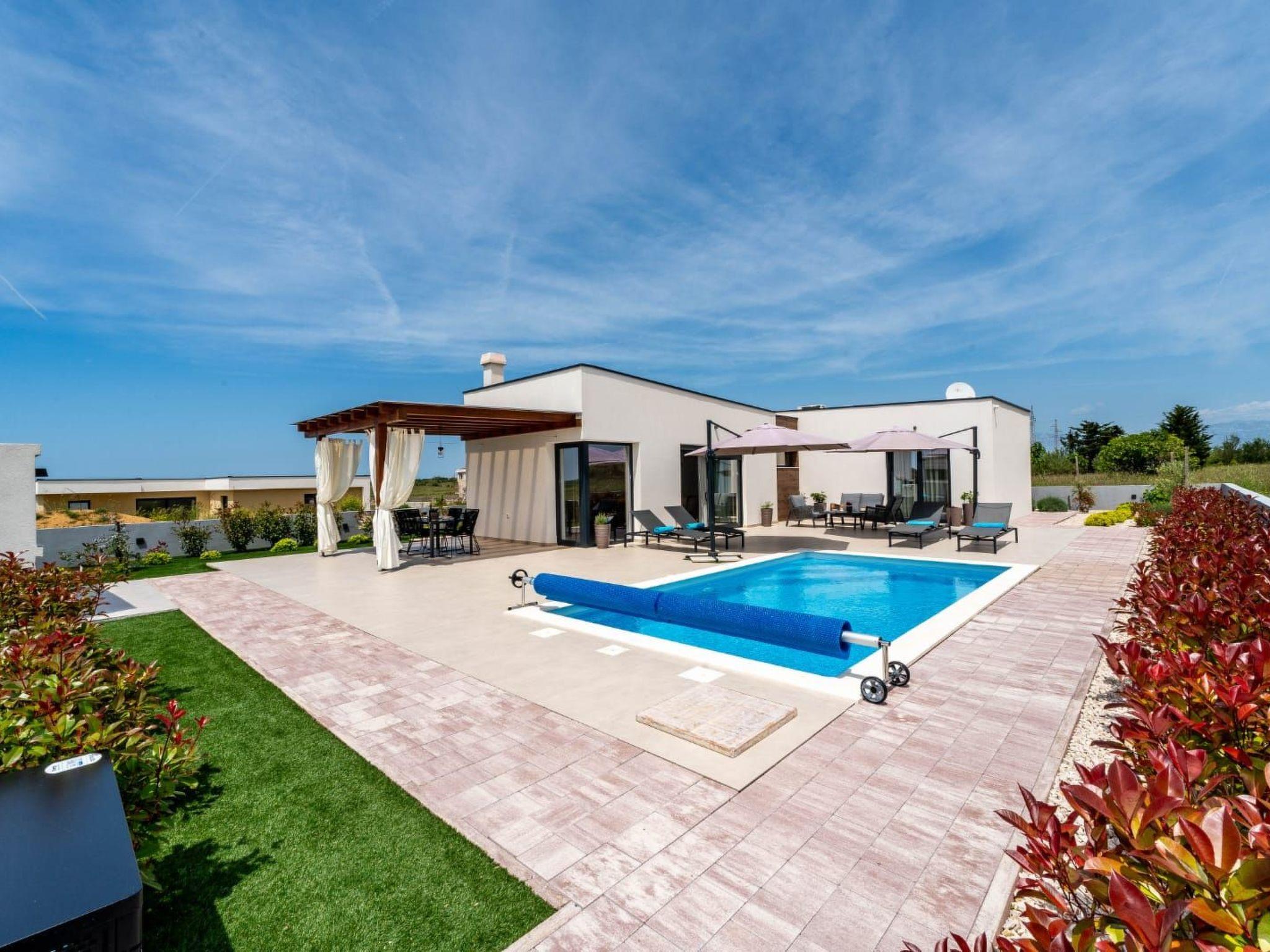Villa is a modernly equipped house with a large concrete yard and swimming pool. With two bedrooms with a TV and two modern bathrooms, it can accommodate up to six people. In addition to the rooms, there is also a spacious living room and a modern, fully equipped kitchen that leads directly to the courtyard with the pool, which gives guests an extraordinary experience. In the morning, I can make a cup of coffee from the coffee machine and head straight for the fresh air enjoying the peace lying on comfortable deckchairs. When the sun starts to burn, there is a large pool where you can refresh yourself, and later watch a spectacular sunset from it, which is said to be the most beautiful in Zadar. The terrace also has comfortable outdoor furniture where guests can relax with a book, and a glass of cocktail or socialize with a plate of Dalmatian delicacies. Summer nights can be spent with BBQ gatherings - they have a grill and accessories for it at their disposal. The villa is covered by an excellent wi-fi network, has air conditioning and heating, and guests are provided with private parking. This oasis offers a unique opportunity to enjoy the charms of all seasons.