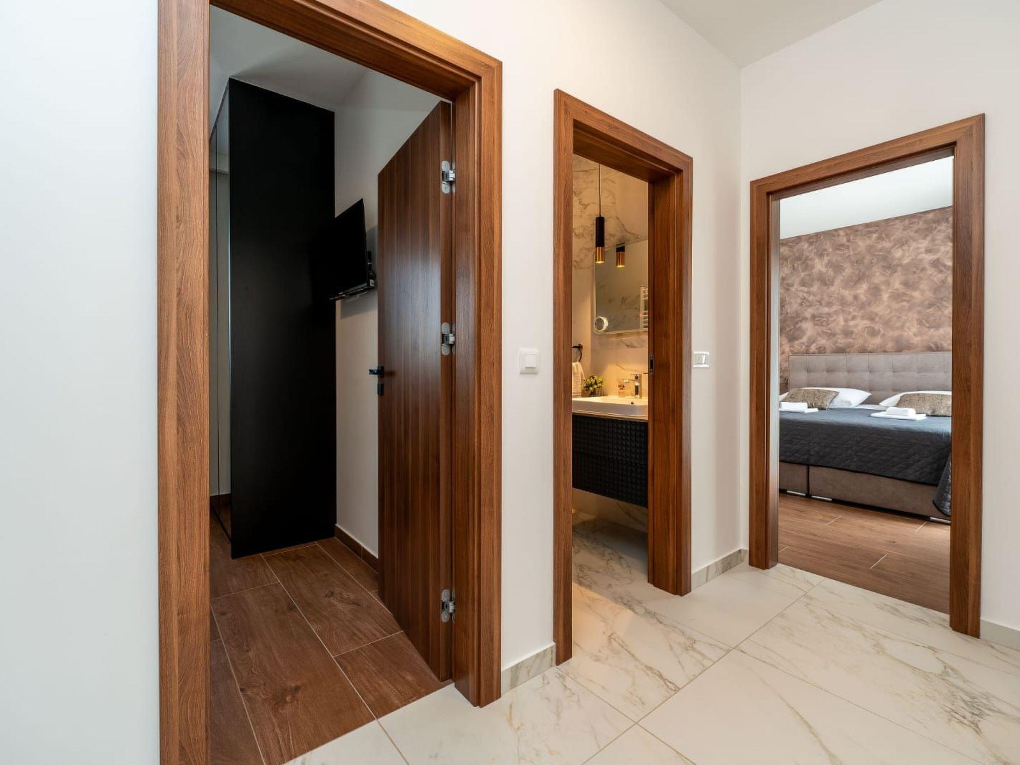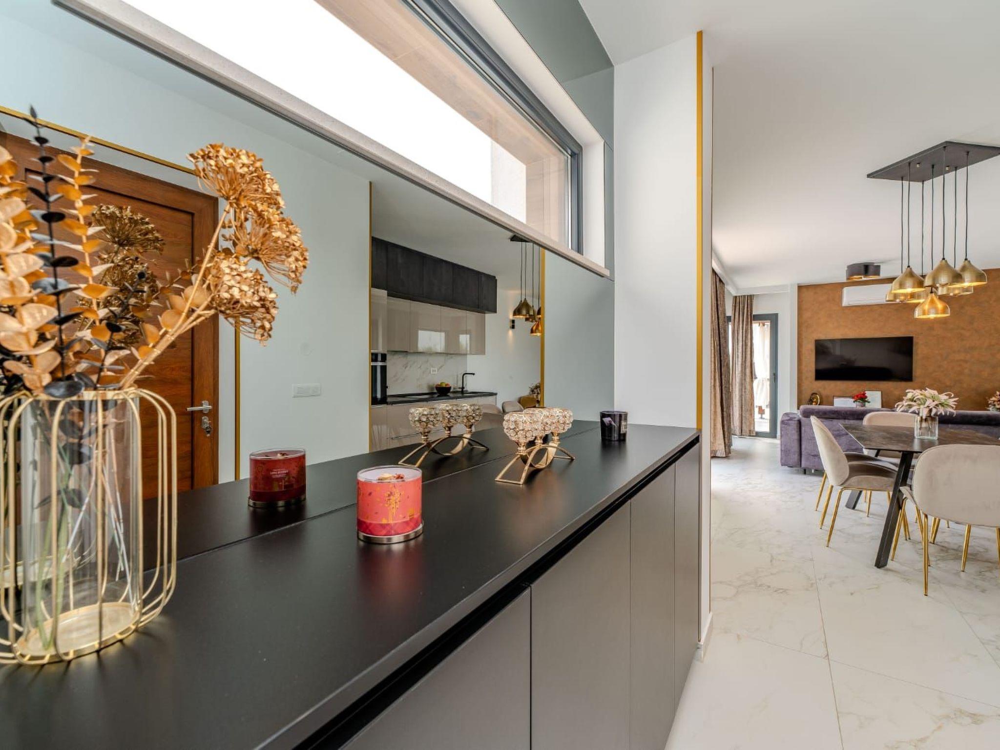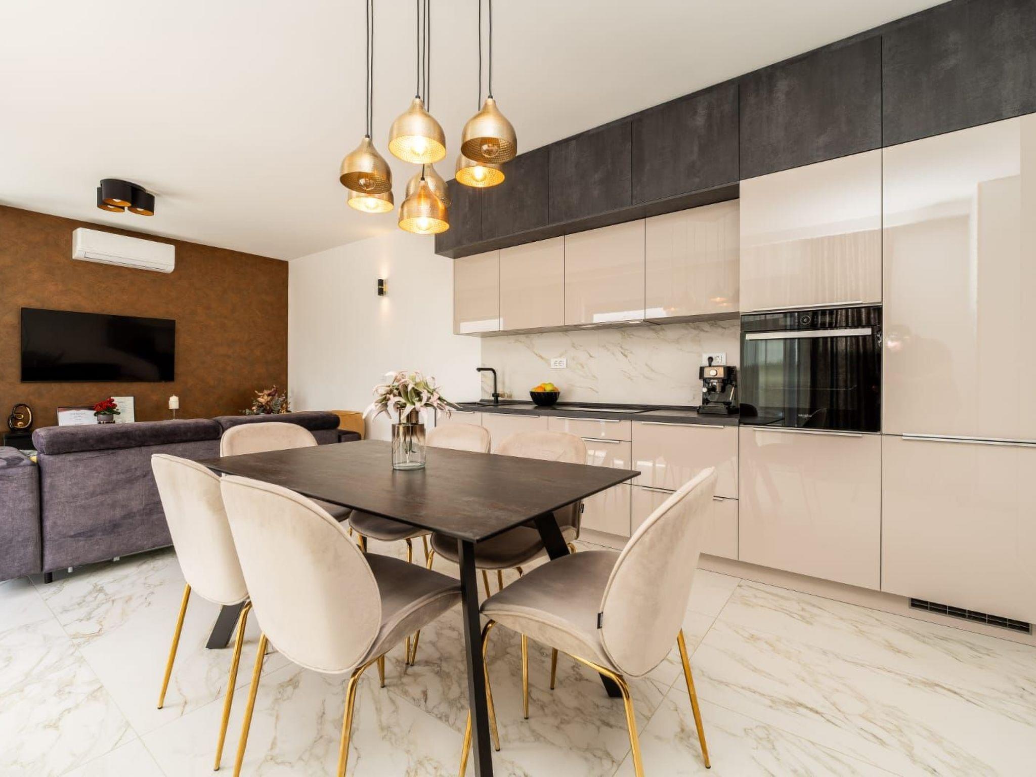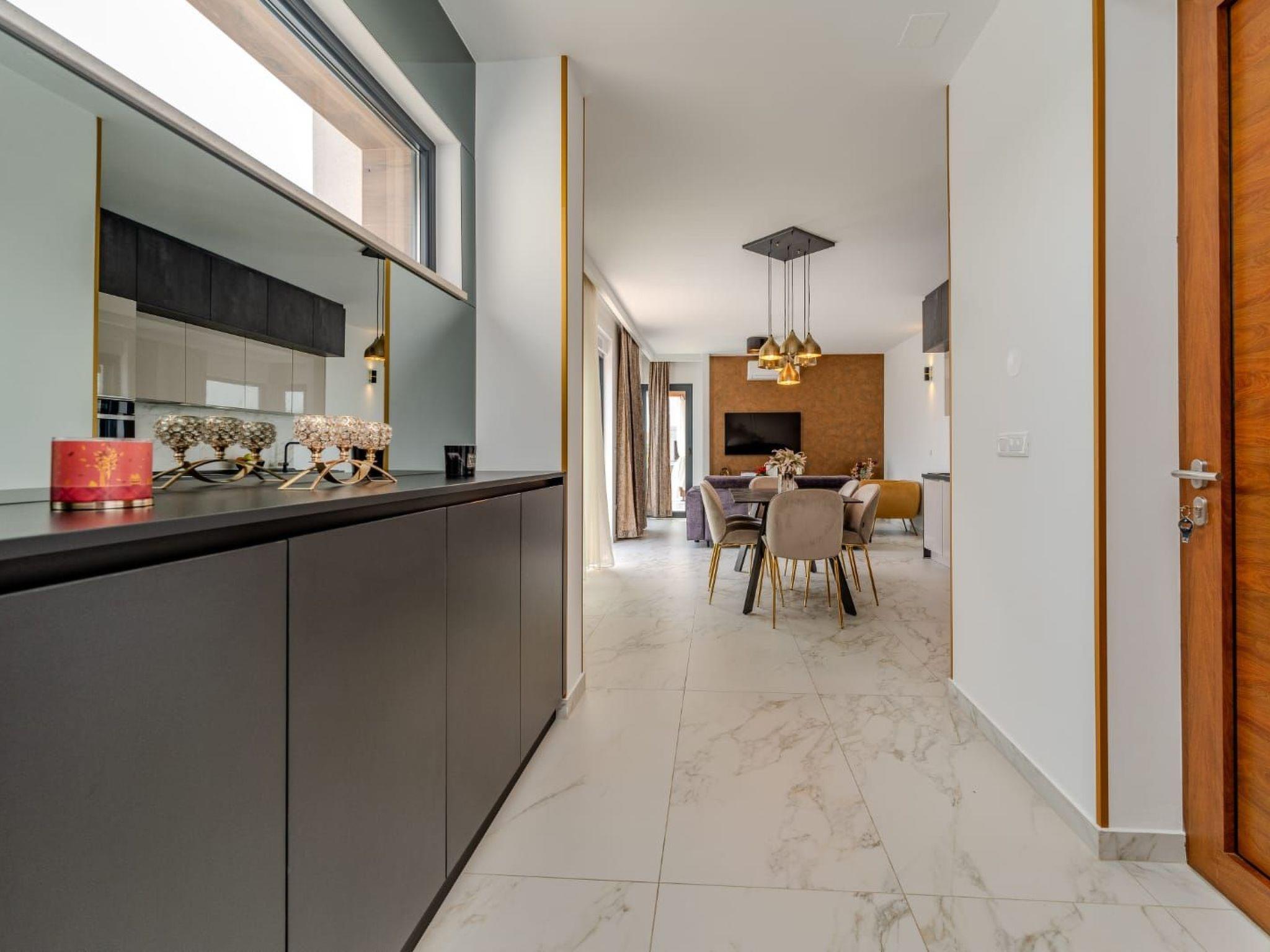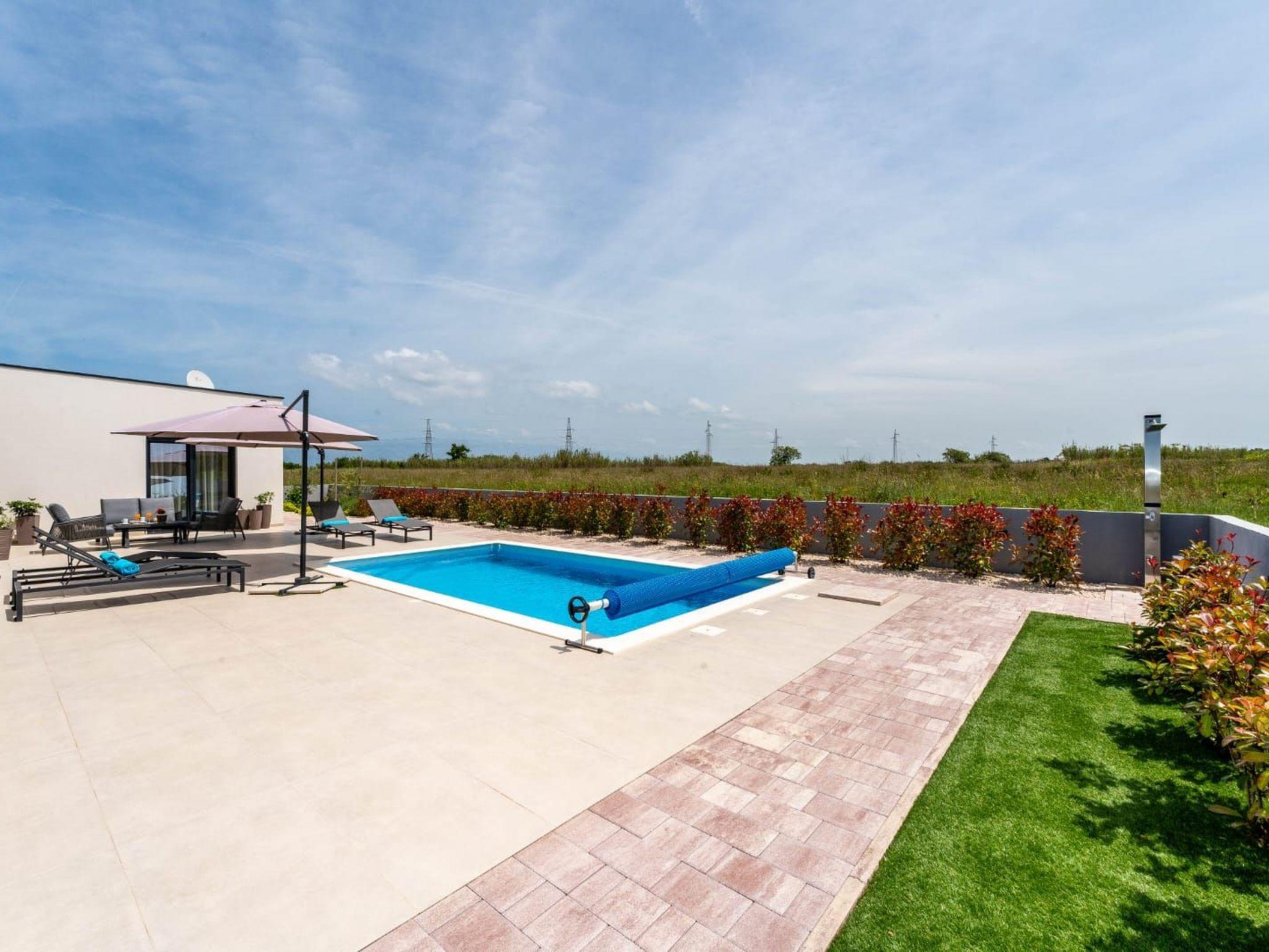 Villa is a modernly equipped house with a large concrete yard and swimming pool. With two bedrooms with a TV and two modern bathrooms, it can accommodate up to six people. In addition to the rooms, there is also a spacious living room and a modern, fully equipped kitchen that leads directly to the courtyard with the pool, which gives guests an extraordinary experience. In the morning, I can make a cup of coffee from the coffee machine and head straight for the fresh air enjoying the peace lying on comfortable deckchairs. When the sun starts to burn, there is a large pool where you can refresh yourself, and later watch a spectacular sunset from it, which is said to be the most beautiful in Zadar. The terrace also has comfortable outdoor furniture where guests can relax with a book, and a glass of cocktail or socialize with a plate of Dalmatian delicacies. Summer nights can be spent with BBQ gatherings - they have a grill and accessories for it at their disposal. The villa is covered by an excellent wi-fi network, has air conditioning and heating, and guests are provided with private parking. This oasis offers a unique opportunity to enjoy the charms of all seasons.