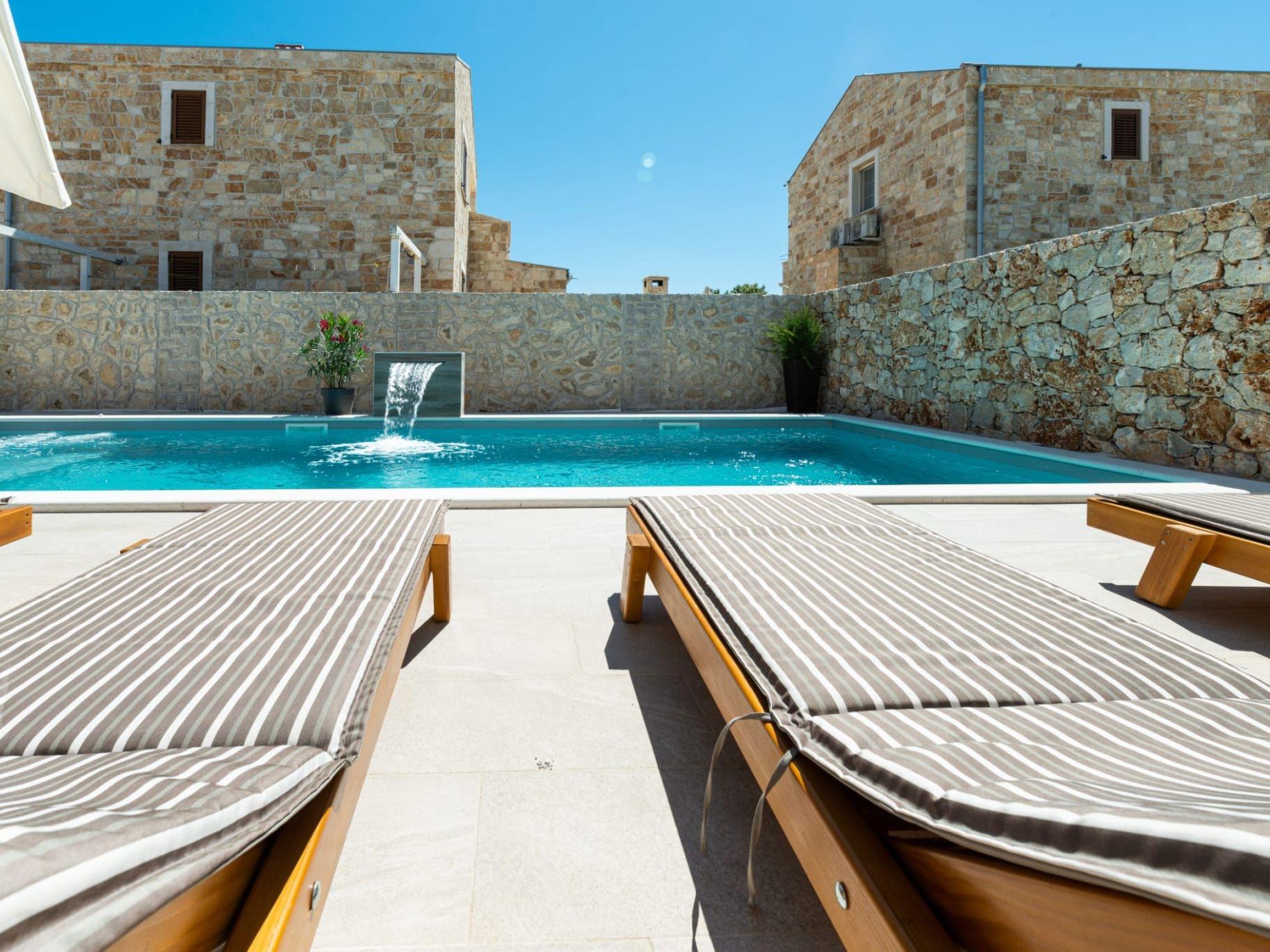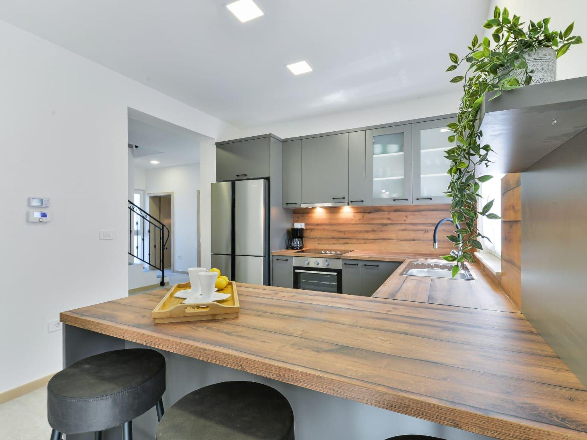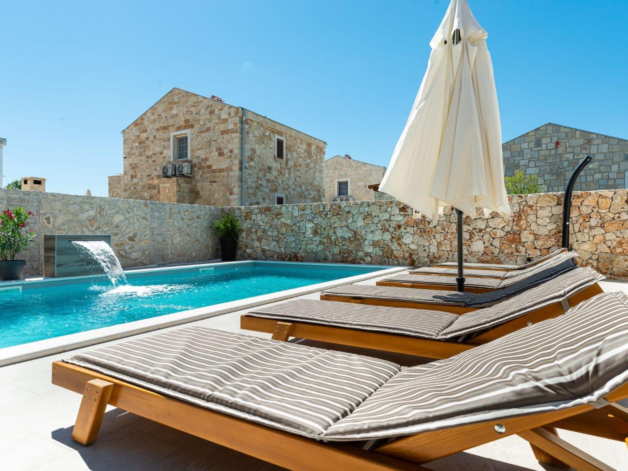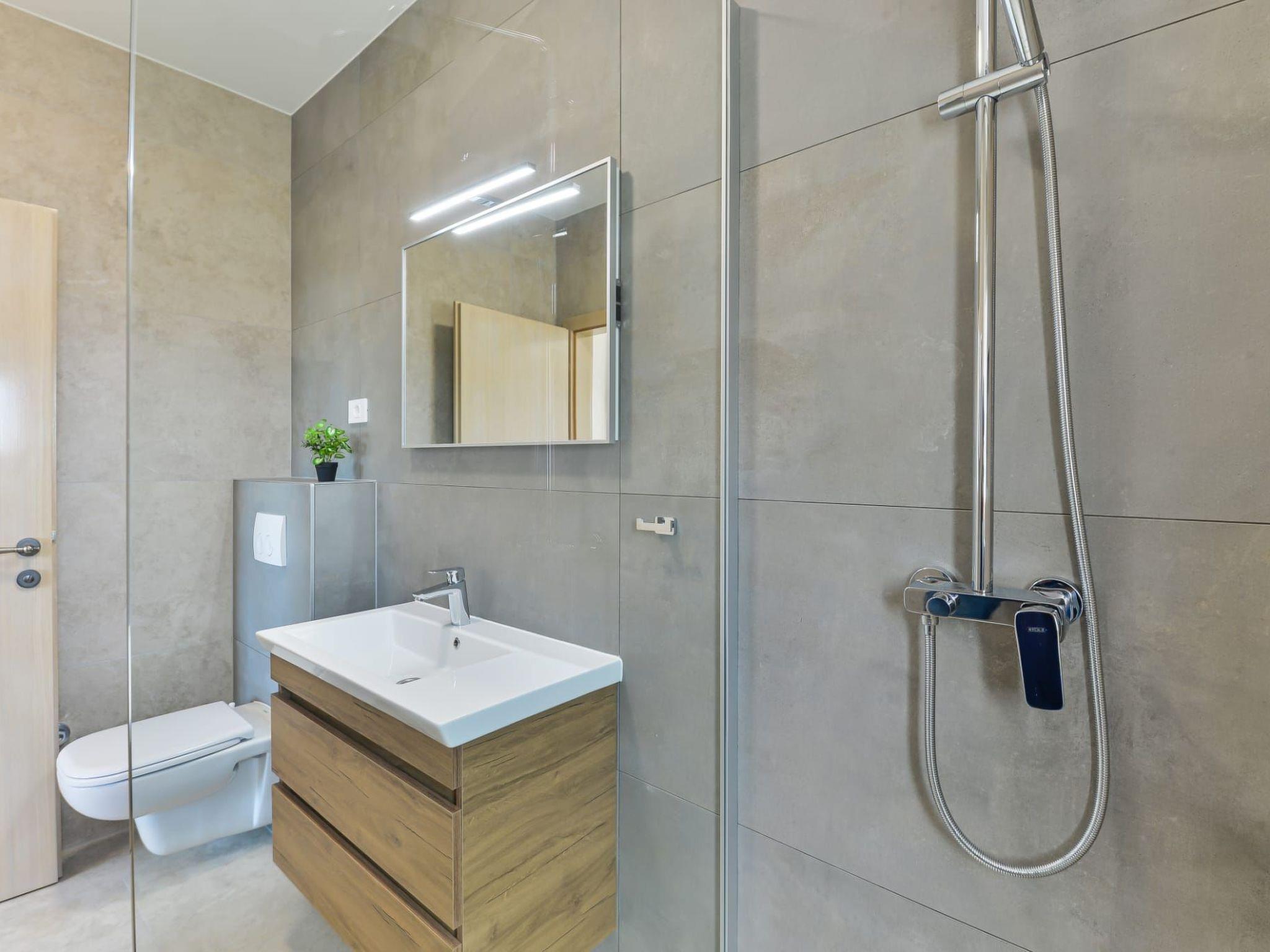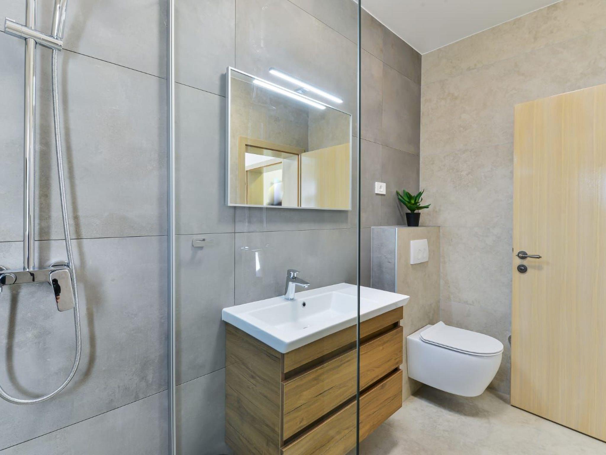 Villa is a modernly equipped house that provides an extraordinary experience for families and friends. With three bedrooms and three modern bathrooms, it can accommodate up to eight people. On the ground floor, there is a fully equipped kitchen and a spacious living room with a sofa for stretching. Guests will be delighted by the private sauna on the ground floor and the covered terrace from which they can jump into the outdoor pool with a waterfall. They have at their disposal comfortable deckchairs together with a large umbrella, and there is a large table on the terrace. For the perfect end of the day, guests can hang out with a barbecue on the garden fireplace. During the colder months, guests can enjoy jacuzzi and underfloor heating. On the first floor, there are bedrooms, two bathrooms, and a large balcony where guests can enjoy their morning coffee with a view of the blue sky. Parents with small children can enjoy their stay in the villa undisturbed - inside the safe in the fenced yard there is a children's playground and a cot and a high chair are available for them feeding, as well as a small table for children on the terrace. The yard is covered with grass and pets are welcome Welcome. Guests are provided with free parking in front of the house, as well as a good Wi-Fi network.