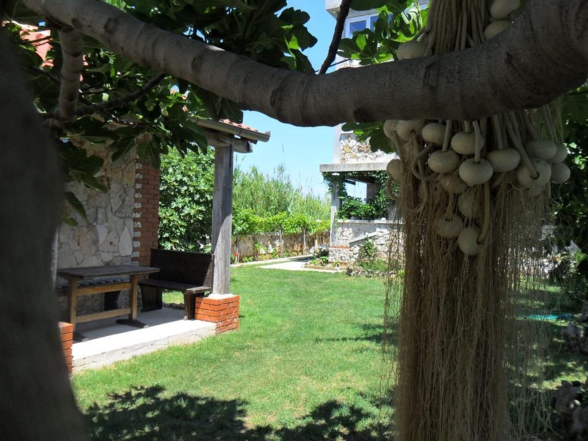 The apartment consists of two bedrooms, a bathroom, a living room, a kitchen, and a big terrace. It is located only 100 meters from the sea and has a beautiful sandy beach. The beach is suitable for children and adults due to its shallow entrance and soft sand, making it perfect for a family vacation. Guests also have a shared garden with a fireplace, perfect for preparing meals outdoors and enjoying the Dalmatian environment.