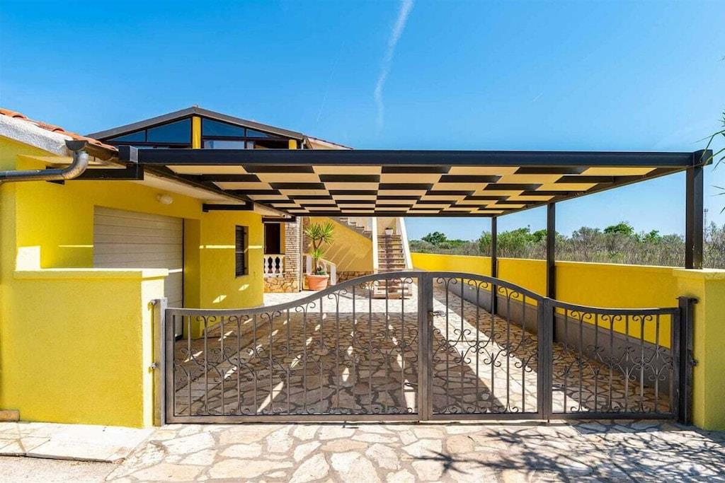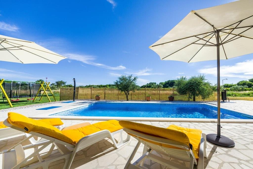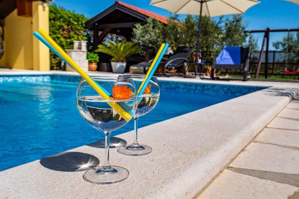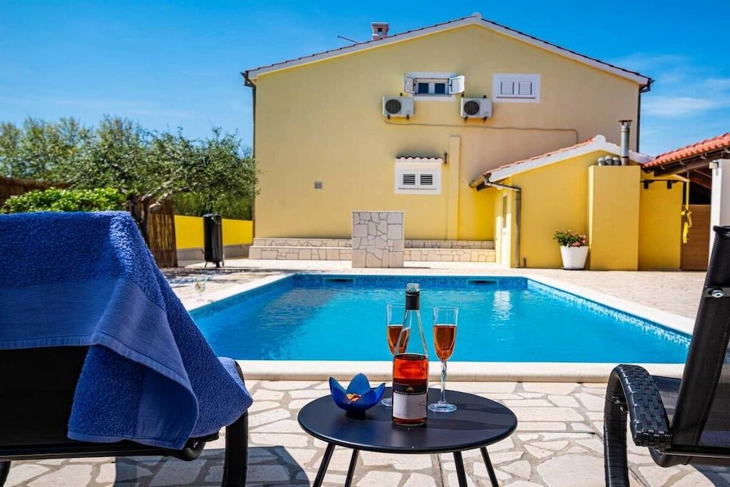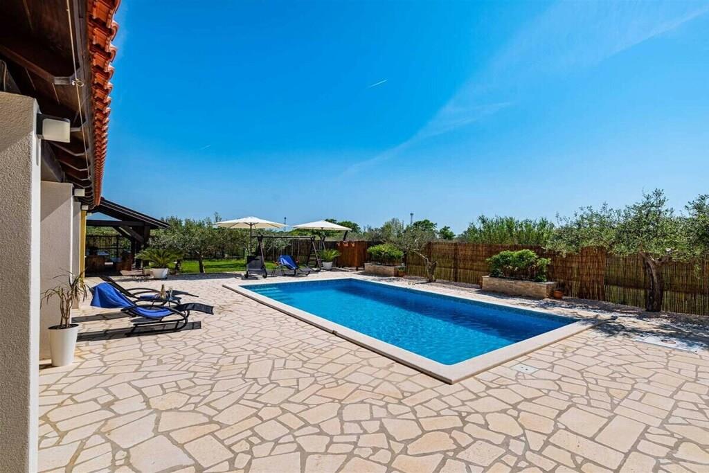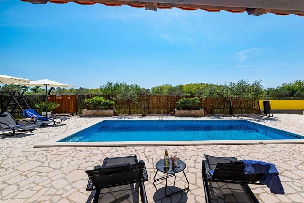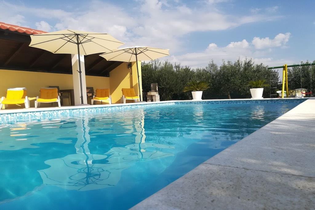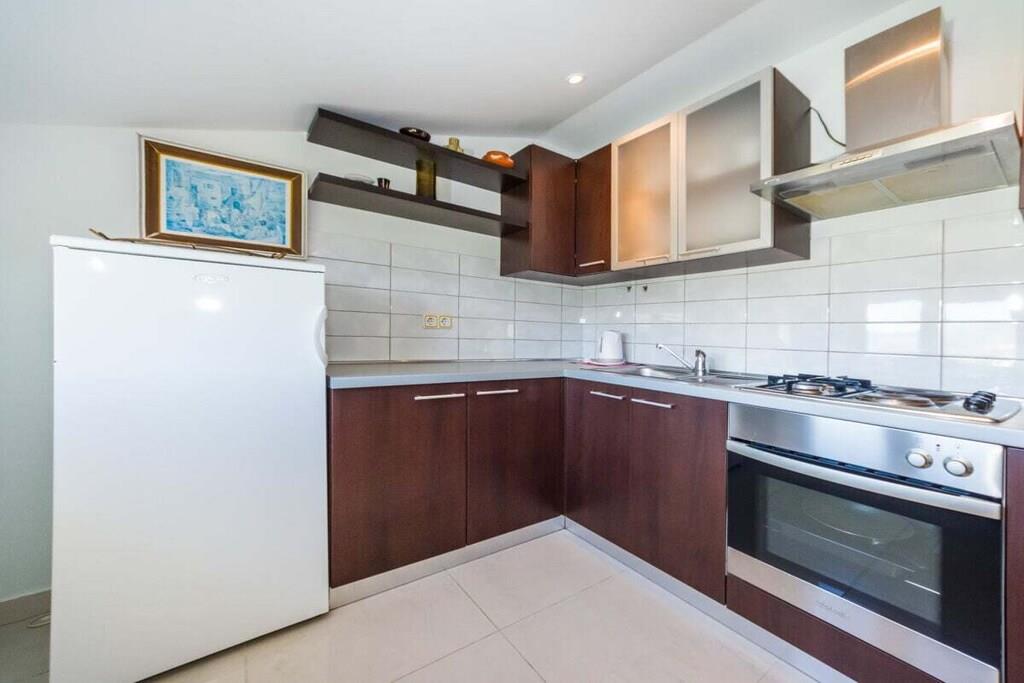 Das Haus besteht aus zwei Apartments mit einem Schlafzimmer, die zusammen vermietet werden. Sie befinden sich im ersten Stock des Hauses. Jedes Apartment verfügt über ein Schlafzimmer mit Doppelbett, ein Schlafsofa für zwei Personen im Wohnzimmer, eine gut ausgestattete Küche und ein Badezimmer mit Dusche. Im Garten gibt es einen Grillplatz mit Essbereich im Freien, einen großen Pool von 32 m2, geschlossen und privat.