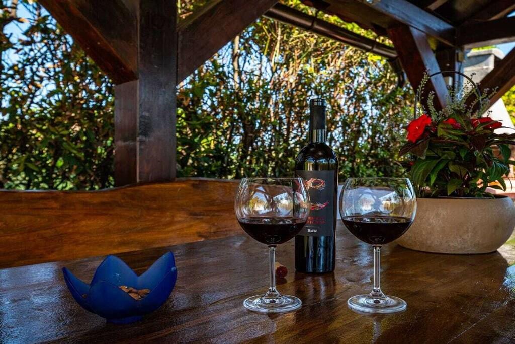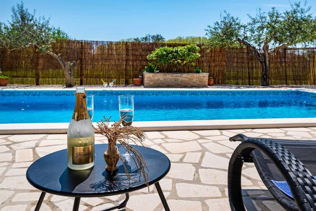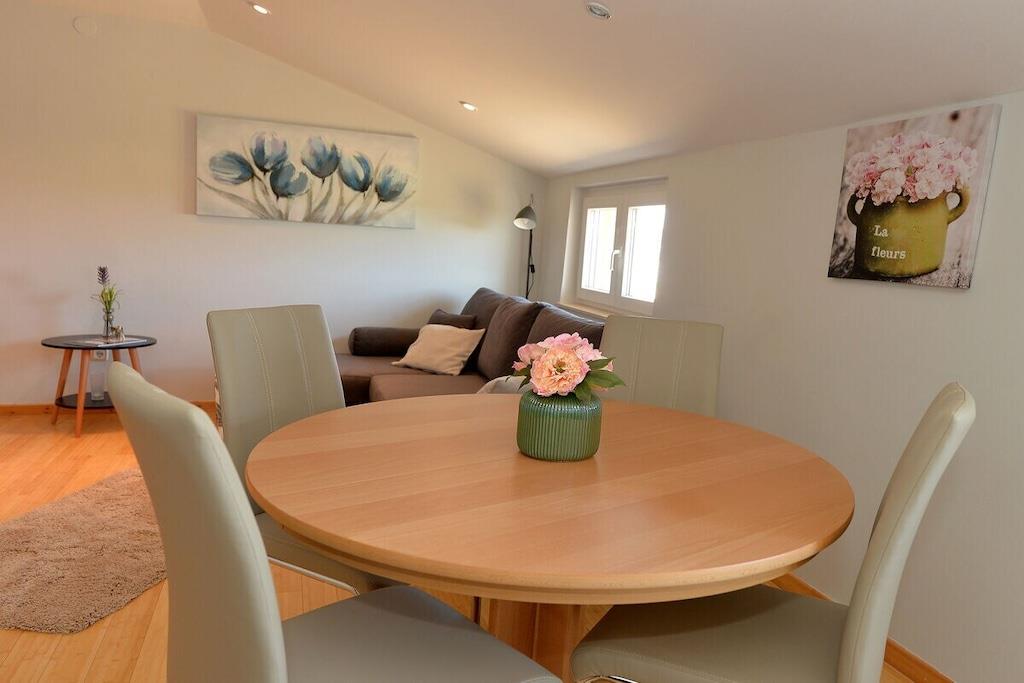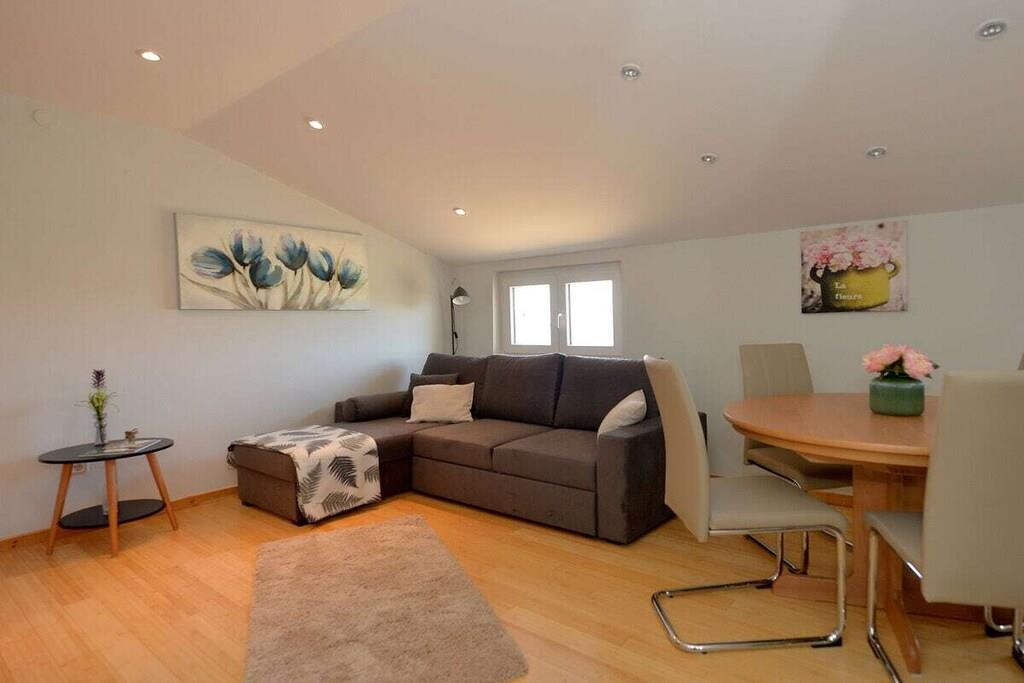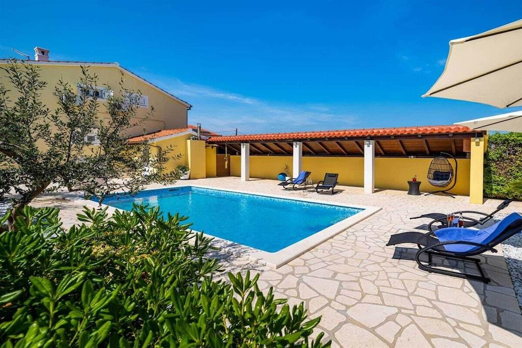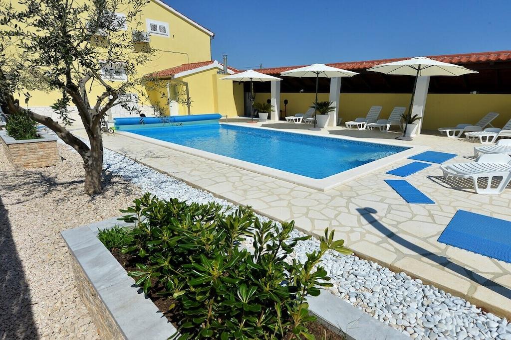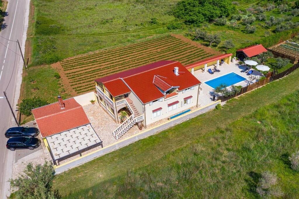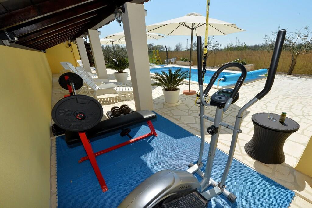 Das Haus besteht aus zwei Apartments mit einem Schlafzimmer, die zusammen vermietet werden. Sie befinden sich im ersten Stock des Hauses. Jedes Apartment verfügt über ein Schlafzimmer mit Doppelbett, ein Schlafsofa für zwei Personen im Wohnzimmer, eine gut ausgestattete Küche und ein Badezimmer mit Dusche. Im Garten gibt es einen Grillplatz mit Essbereich im Freien, einen großen Pool von 32 m2, geschlossen und privat.