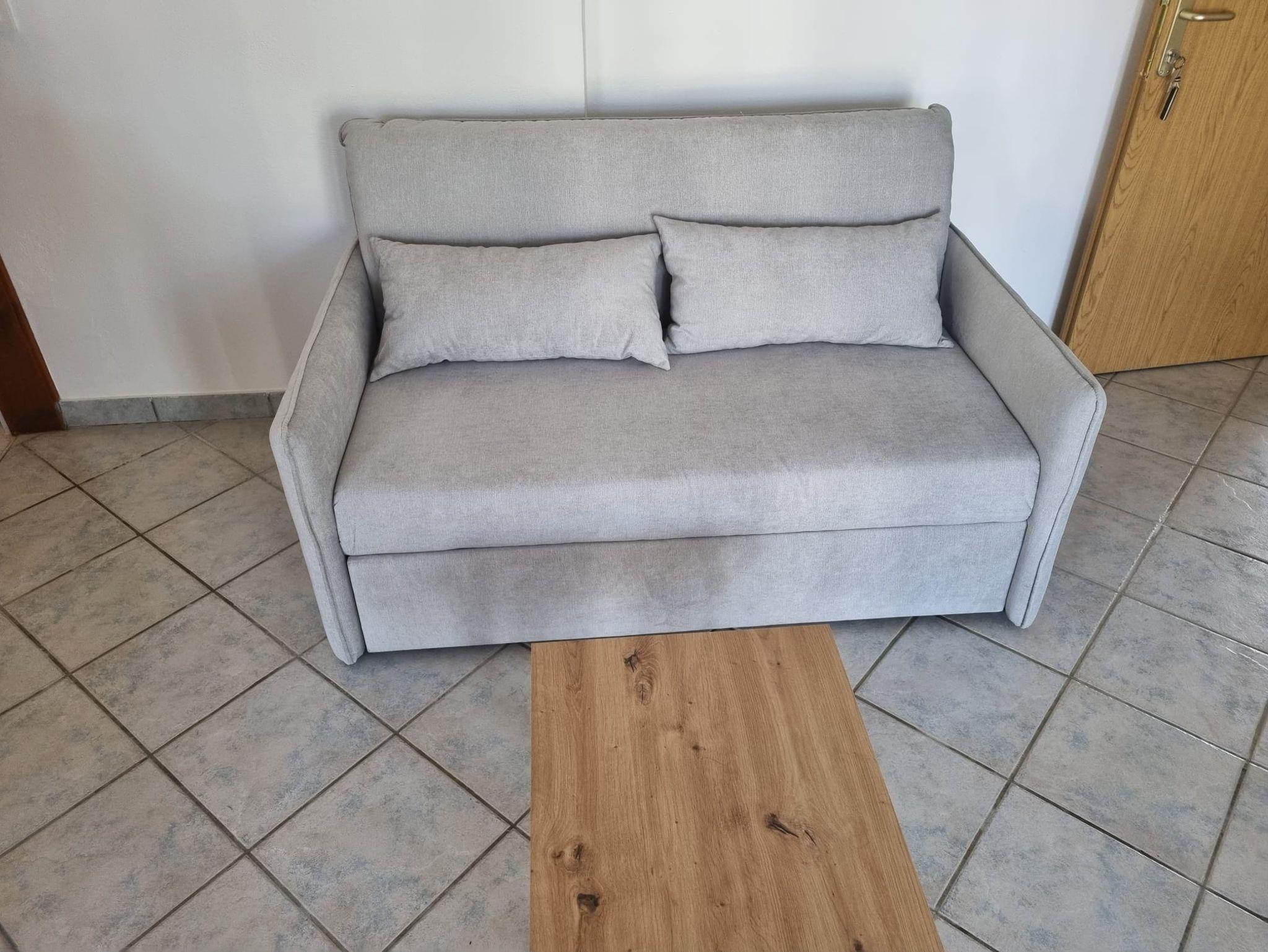 Ferienwohnung bietet Platz für 5 Gäste. Die Betten sind in Schlafzimmern, die es 1 gibt, und in Wohnzimmer, innerhalb einer Gesamtfläche von 30m2, angeordnet. Die Gäste haben eine eigene Terrasse zur Verfügung, auf der sie in warmen Sommernächten genießen können. Es ist erlaubt, Speisen auf dem Gemeinschafts-Grill vorzubereiten. IM PREIS INBEGRIFFEN: Kurtaxe, Endreinigung, Klimatisierung, Parkplatz, Internet, Föhn. VERBINDLICHE ZUSÄTZLICHE KOSTEN: Aufzahlung für Kurzaufenthalte (prozentualer Zuschlag pro Nächtigungsanzahl: 30% - 1, 20% - 2, 10% - 3). UNVERBINDLICHE ZUSÄTZLICHE KOSTEN: Wäschewaschen (10,00 € Waschen), Fahrrad (15,00 € täglich (pro Stück)). Die Verfügbarkeit zusätzlicher Dienstleistungen in Ihrem reservierten Termin und die Preise derselben (falls nicht aufgeführt) müssen im Voraus überprüft werden. Zusätzliche Dienstleistungen die in der Zahlungsaufforderung nicht aufgeführt sind werden direkt beim Vermieter bezahlt, angenommen der Gast nutzt auch diese. Ermäßigung auf den Grundpreis: Gratistag 14=13 (bei einem Aufenthalt von 14 Tagen oder mehr erhalten Sie einen Gratistag für den Aufenthalt bis 31.12.26).