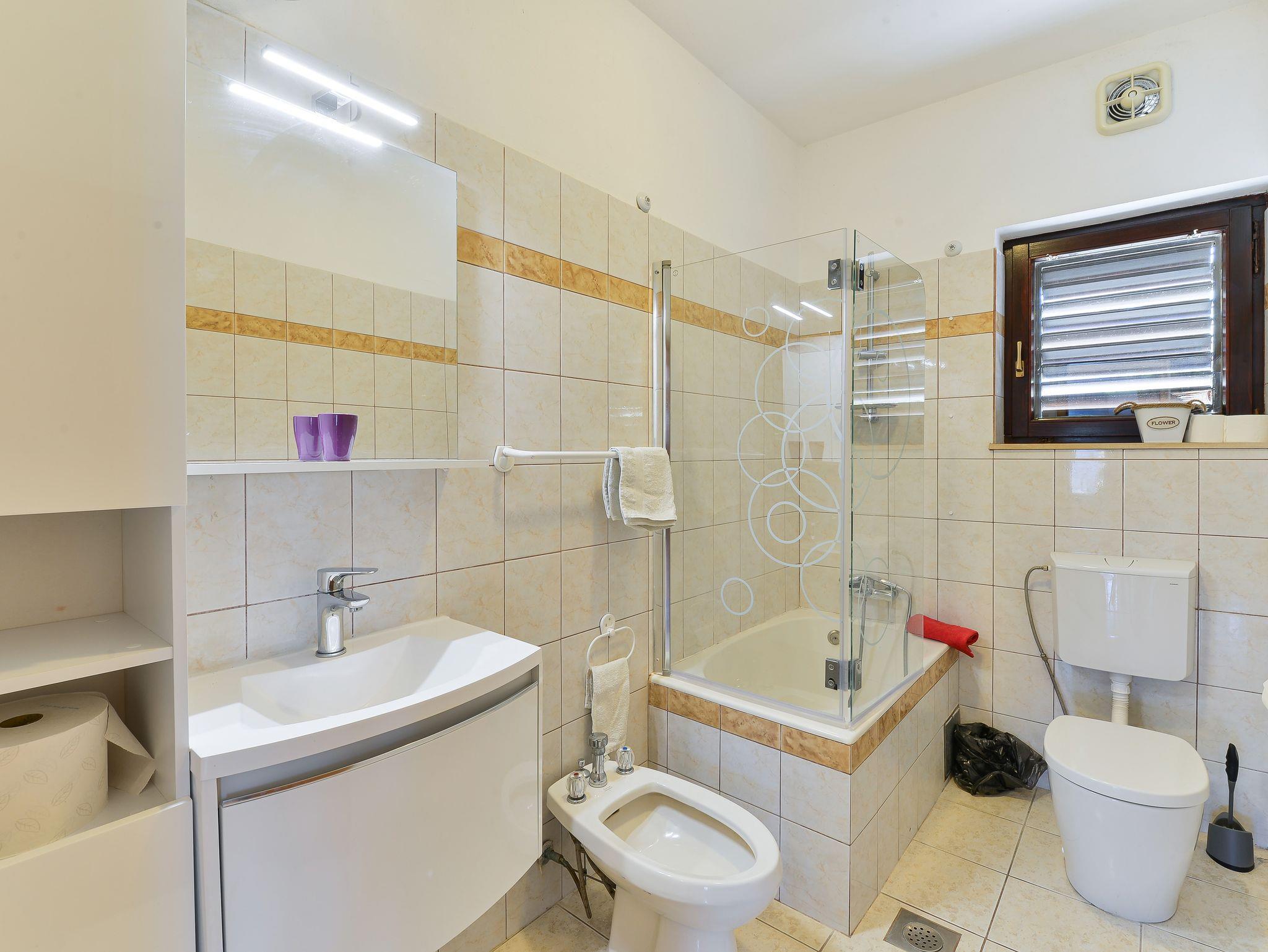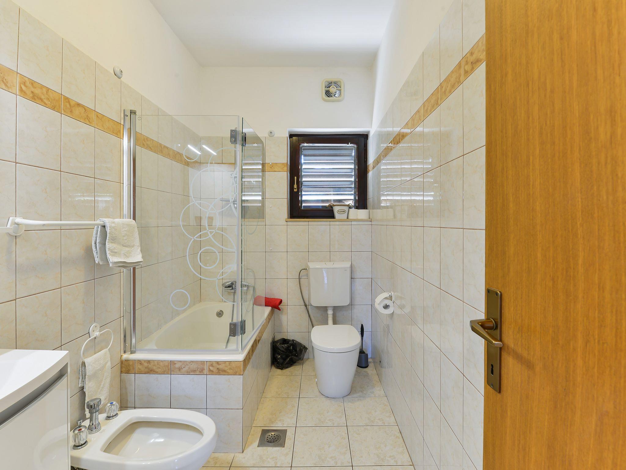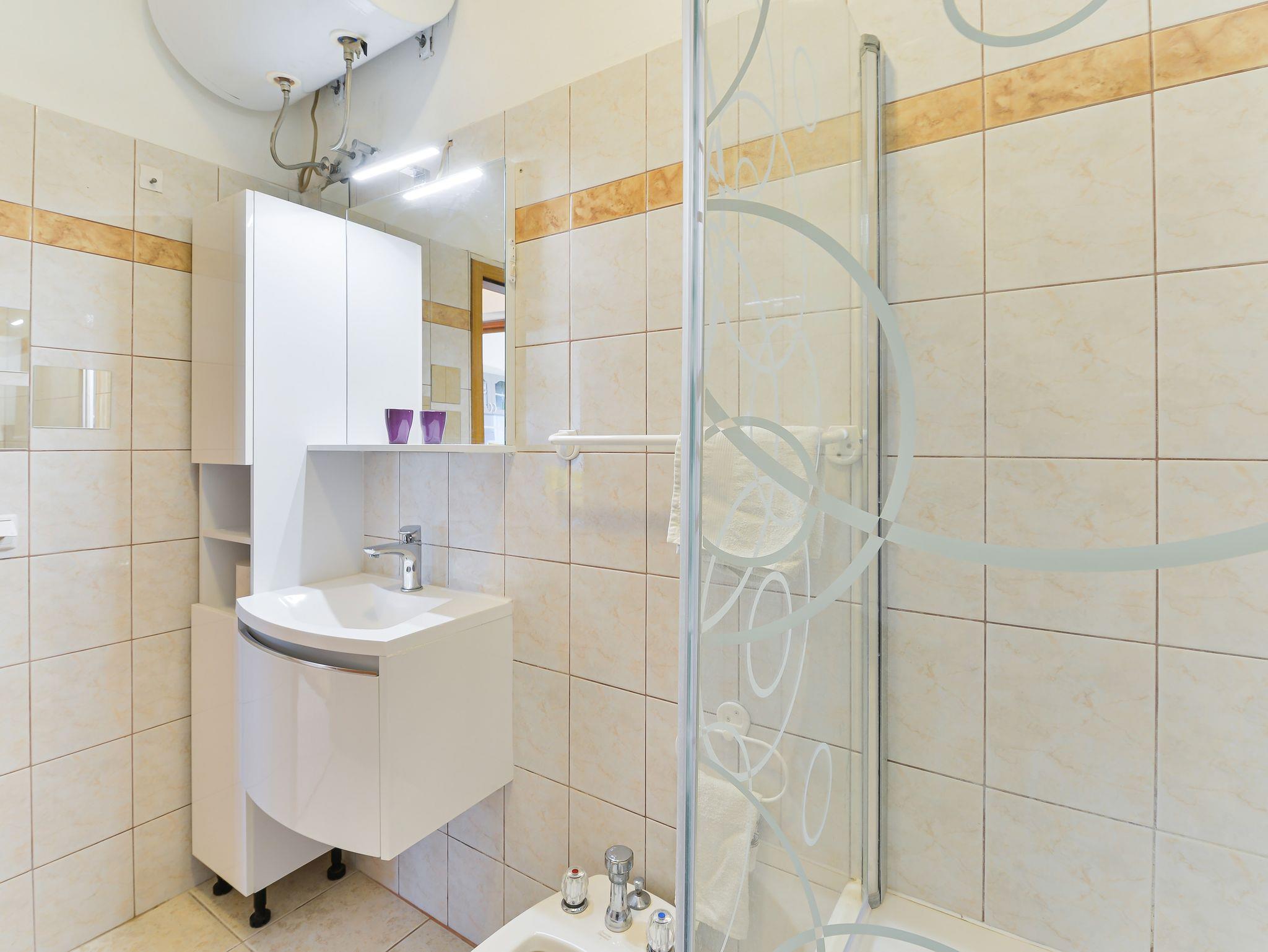 Ferienwohnung bietet Platz für 5 Gäste. Die Betten sind in Schlafzimmern, die es 2 gibt, und in Wohnzimmer, innerhalb einer Gesamtfläche von 62m2, angeordnet. Die Gäste haben eine eigene Terrasse zur Verfügung, auf der sie in warmen Sommernächten genießen können. Es ist erlaubt, Speisen auf dem Gemeinschafts-Grill vorzubereiten. Während ihres Aufenthalts können Gäste das gemeinsam zur Nutzung stehende Schwimmbad benutzen. IM PREIS INBEGRIFFEN: Kurtaxe, Endreinigung, Klimatisierung, Pool, Parkplatz, Internet, Kinderbett, Föhn. VERBINDLICHE ZUSÄTZLICHE KOSTEN: Aufzahlung für Kurzaufenthalte (prozentualer Zuschlag pro Nächtigungsanzahl: 30% - 1, 20% - 2, 10% - 3). Die Verfügbarkeit zusätzlicher Dienstleistungen in Ihrem reservierten Termin und die Preise derselben (falls nicht aufgeführt) müssen im Voraus überprüft werden. Zusätzliche Dienstleistungen die in der Zahlungsaufforderung nicht aufgeführt sind werden direkt beim Vermieter bezahlt, angenommen der Gast nutzt auch diese.