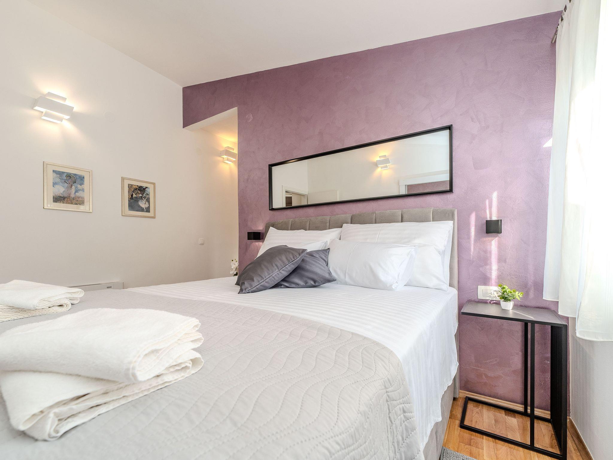 Ferienwohnung bietet Platz für 4 Gäste. Die Betten sind in Schlafzimmern, die es 2 gibt, innerhalb einer Gesamtfläche von 58m2, angeordnet. Die Gäste haben eine eigene Terrasse zur Verfügung, auf der sie in warmen Sommernächten genießen können. Das Apartment bietet Meerblick. Es ist erlaubt, Speisen auf dem Gemeinschafts-Grill vorzubereiten. IM PREIS INBEGRIFFEN: Kurtaxe, Endreinigung, Klimatisierung, Parkplatz, Internet, Kinderbett, Föhn. VERBINDLICHE ZUSÄTZLICHE KOSTEN: Aufzahlung für Kurzaufenthalte (prozentualer Zuschlag pro Nächtigungsanzahl: 30% - 1, 20% - 2, 10% - 3). Die Verfügbarkeit zusätzlicher Dienstleistungen in Ihrem reservierten Termin und die Preise derselben (falls nicht aufgeführt) müssen im Voraus überprüft werden. Zusätzliche Dienstleistungen die in der Zahlungsaufforderung nicht aufgeführt sind werden direkt beim Vermieter bezahlt, angenommen der Gast nutzt auch diese.