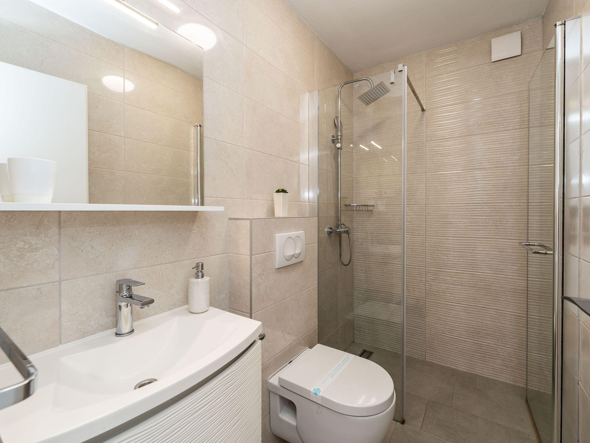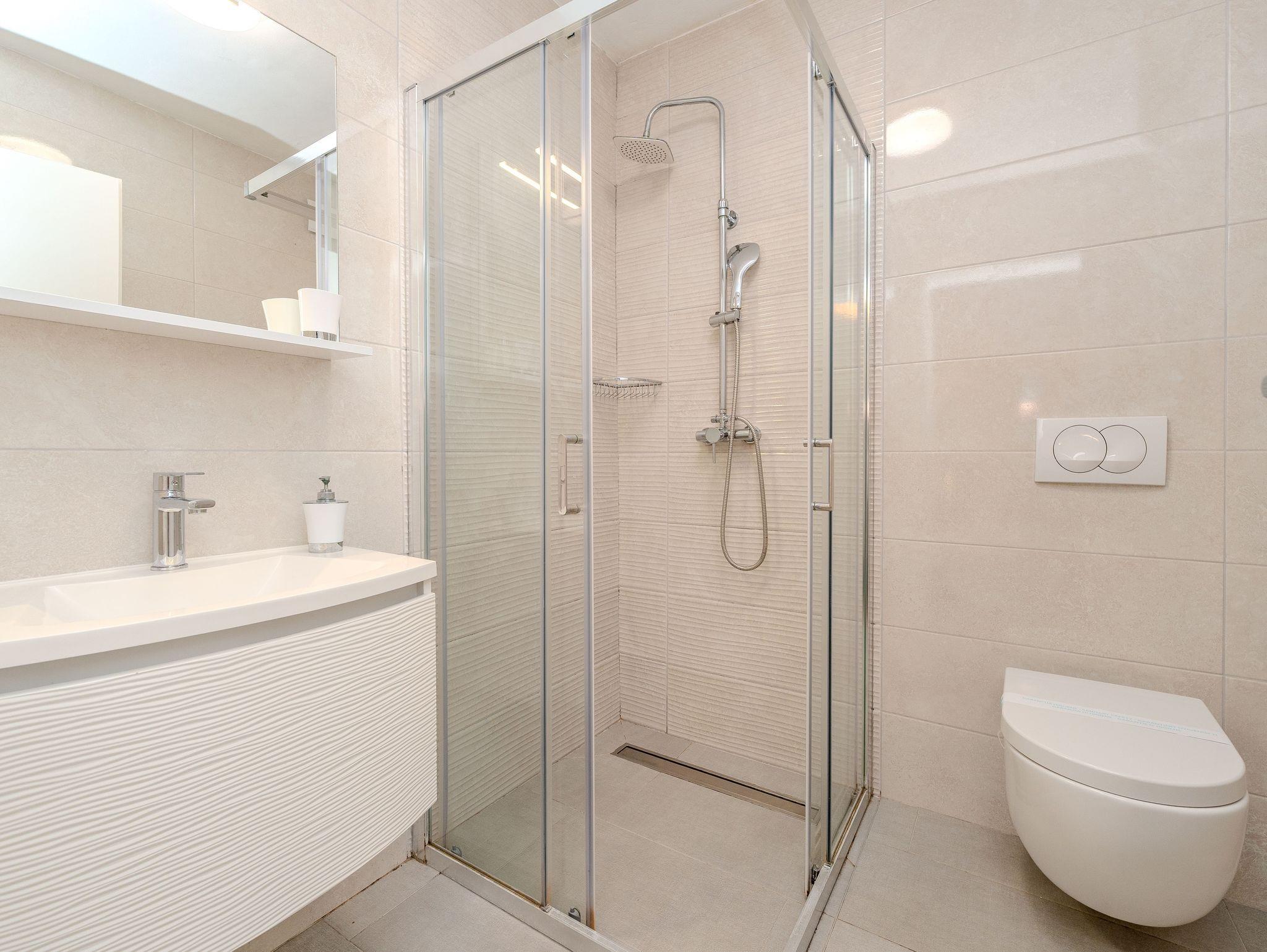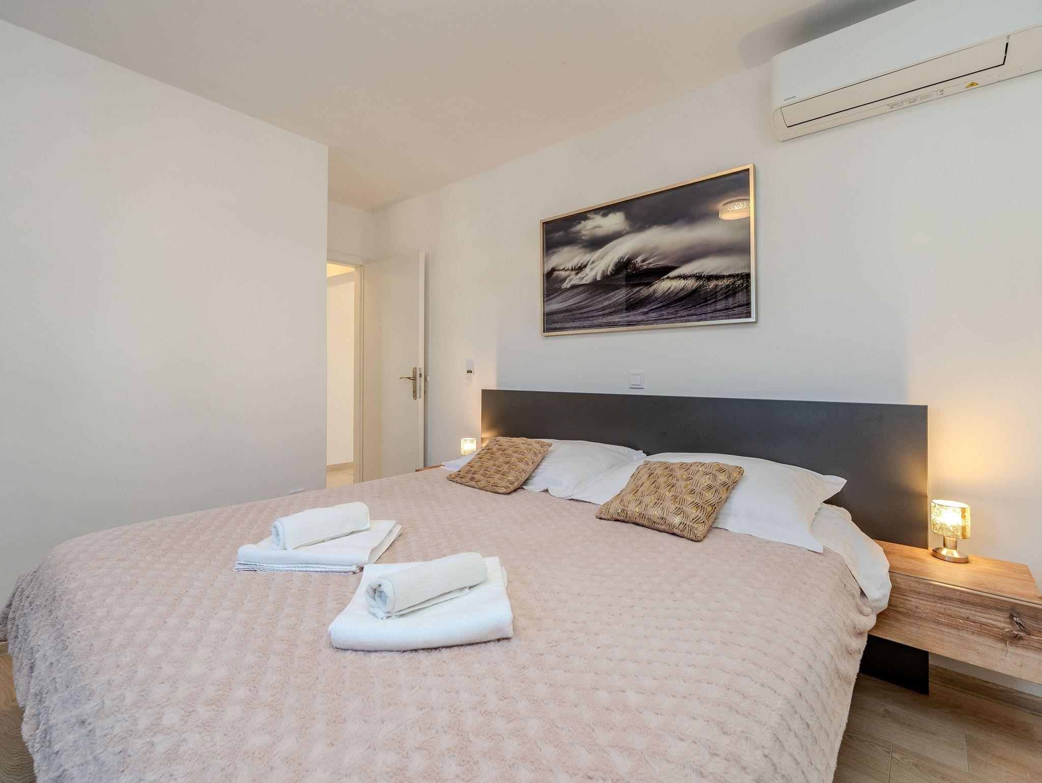 Ferienwohnung bietet Platz für 8 Gäste. Die Betten sind in Schlafzimmern, die es 3 gibt, und in Wohnzimmer, innerhalb einer Gesamtfläche von 130m2, angeordnet. Die Gäste haben eine eigene Terrasse zur Verfügung, auf der sie in warmen Sommernächten genießen können. Das Apartment bietet Meerblick. Es ist erlaubt, Speisen auf dem Gemeinschafts-Grill vorzubereiten. In der Unterkunftseinheit besteht die Möglichkeit des Mitbringens von Haustieren gegen Aufpreis. IM PREIS INBEGRIFFEN: Kurtaxe, Endreinigung, Klimatisierung, Parkplatz, Internet, Kinderbett, Bügeleisen, Bügelbrett, Föhn, tragbarer Grill, Liegestühle. VERBINDLICHE ZUSÄTZLICHE KOSTEN: Aufzahlung für Kurzaufenthalte (prozentualer Zuschlag pro Nächtigungsanzahl: 30% - 1, 20% - 2, 10% - 3). UNVERBINDLICHE ZUSÄTZLICHE KOSTEN: Haustiere (15,00 € pro Nacht). Die Verfügbarkeit zusätzlicher Dienstleistungen in Ihrem reservierten Termin und die Preise derselben (falls nicht aufgeführt) müssen im Voraus überprüft werden. Zusätzliche Dienstleistungen die in der Zahlungsaufforderung nicht aufgeführt sind werden direkt beim Vermieter bezahlt, angenommen der Gast nutzt auch diese.