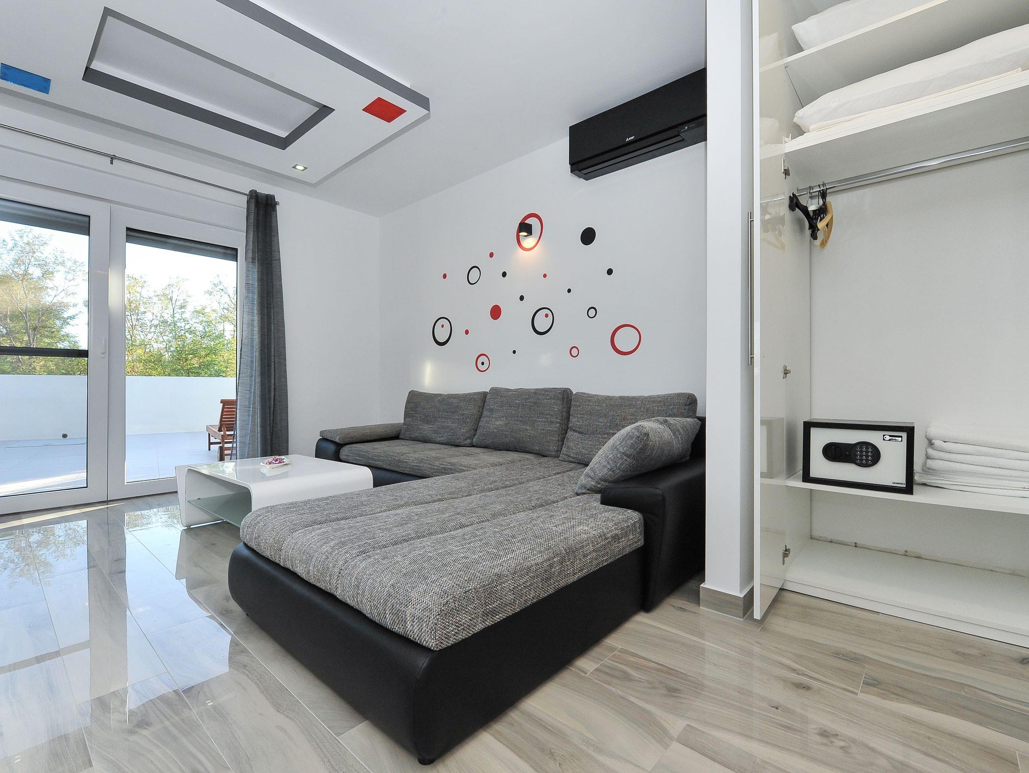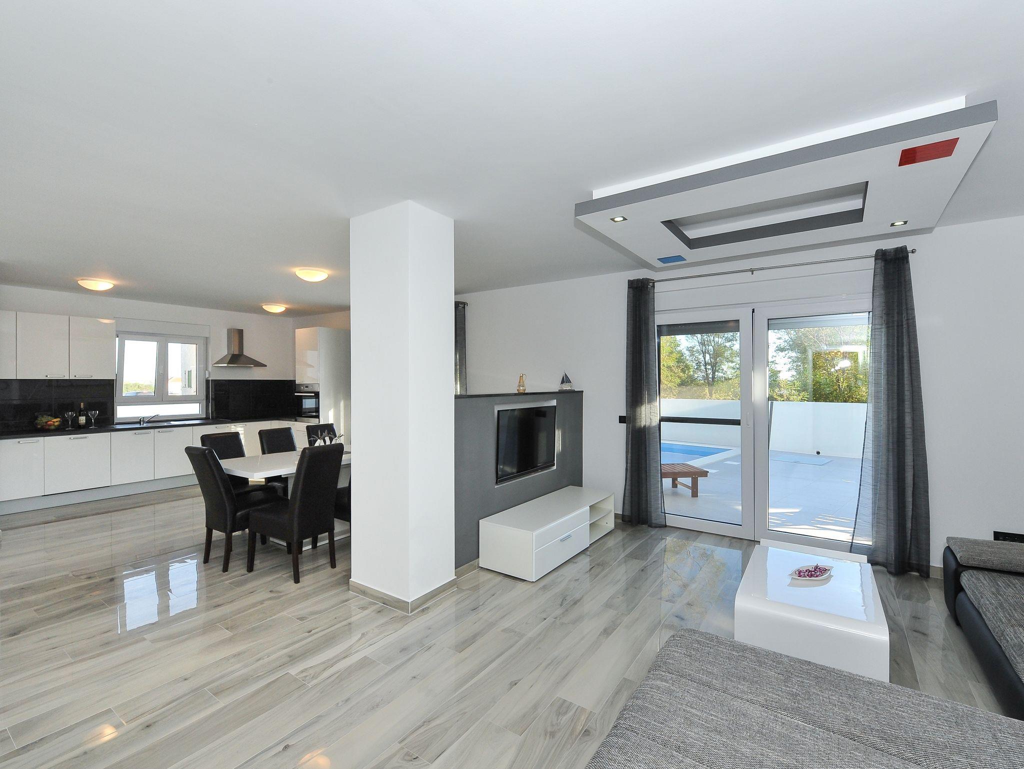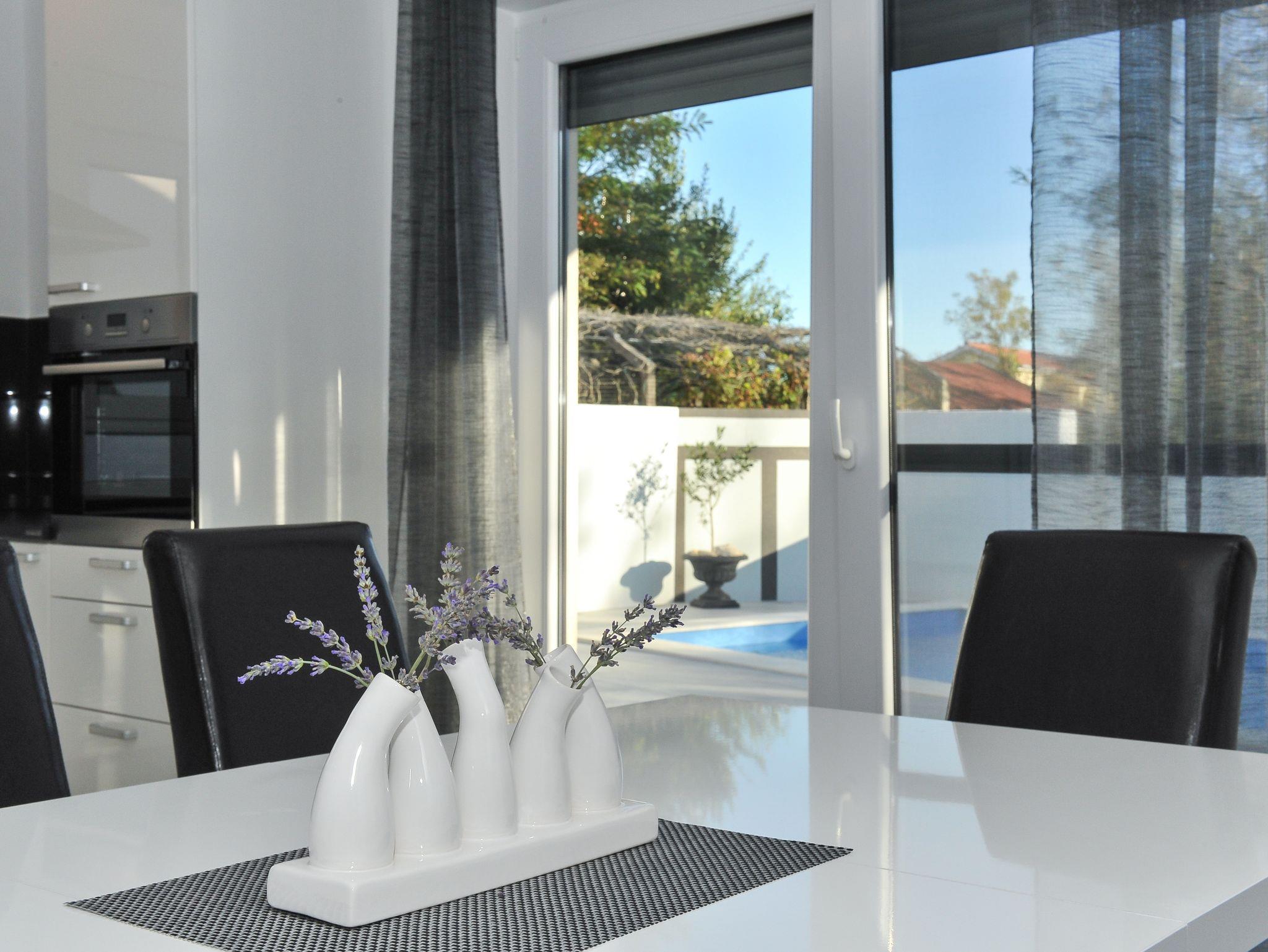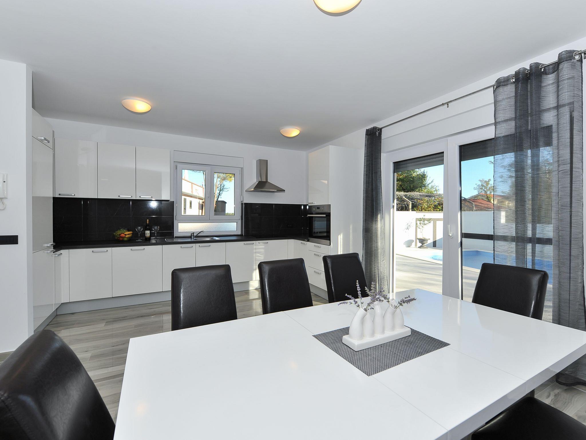 Haus bietet Platz für 8 Gäste. Die Betten sind in Schlafzimmern, die es 3 gibt, und in Wohnzimmer, innerhalb einer Gesamtfläche von 121m2, angeordnet. Die Gäste haben einen eigenen Balkon zur Verfügung, auf der sie in warmen Sommernächten genießen können. Für vollen Genuss und Entspannung gibt es einen privaten Grill für Gäste dieser Unterkunft. Während ihres Aufenthalts können sich Gäste im privaten Schwimmbad entspannen. In der gebuchten Unterkunftseinheit zahlt man am Ort ein Depositum ( der Preis ist an der Internetseite angeführt ). IM PREIS INBEGRIFFEN: Kurtaxe, Endreinigung, Klimatisierung, Pool, Parkplatz, Internet, Kinderbett, Bügeleisen, Bügelbrett, Föhn. VERBINDLICHE ZUSÄTZLICHE KOSTEN: Kaution (300,00 € Einmalzahlung), Aufzahlung für Kurzaufenthalte (prozentualer Zuschlag pro Nächtigungsanzahl: 30% - 1, 20% - 2, 10% - 3). Die Verfügbarkeit zusätzlicher Dienstleistungen in Ihrem reservierten Termin und die Preise derselben (falls nicht aufgeführt) müssen im Voraus überprüft werden. Zusätzliche Dienstleistungen die in der Zahlungsaufforderung nicht aufgeführt sind werden direkt beim Vermieter bezahlt, angenommen der Gast nutzt auch diese.