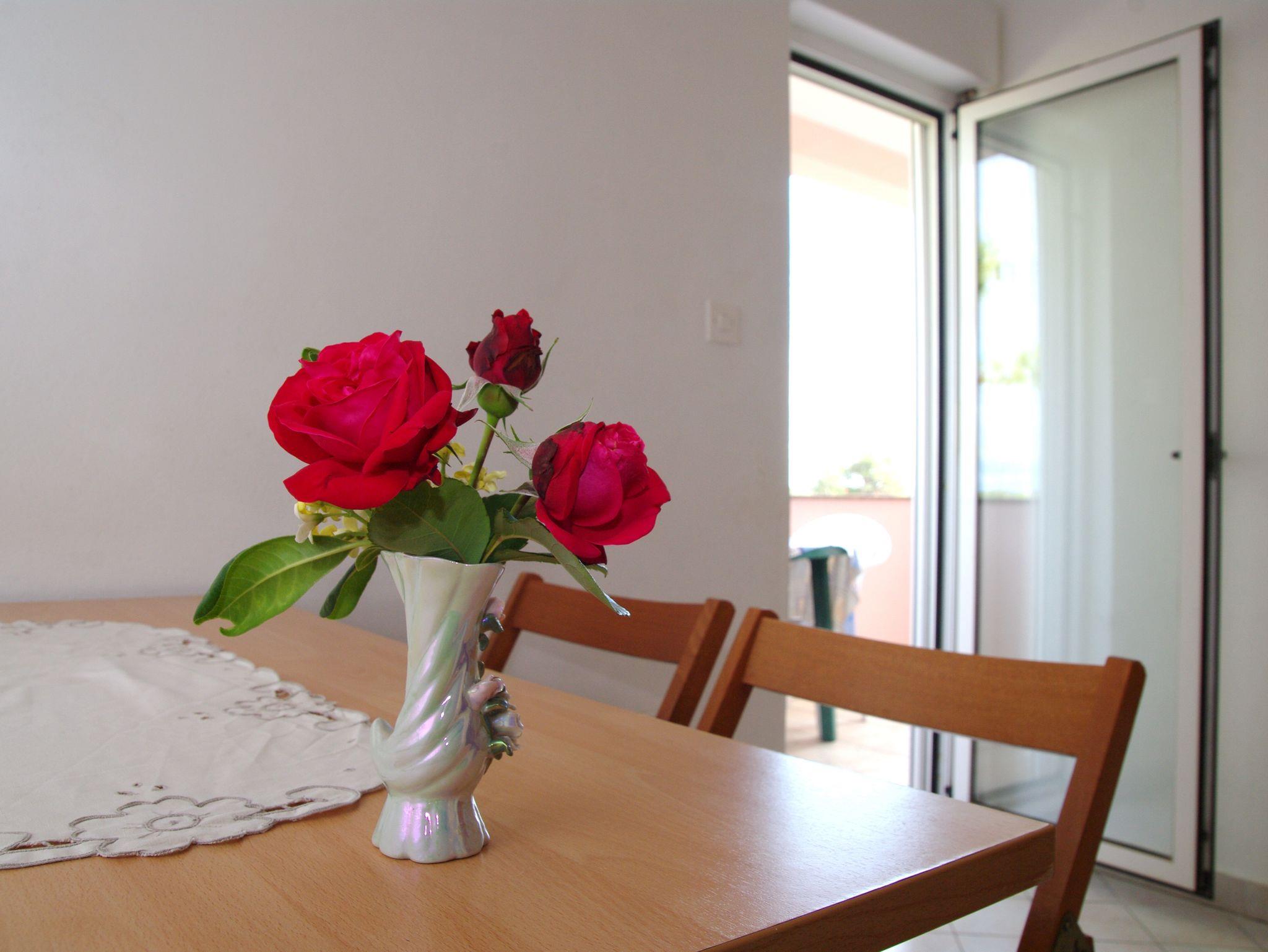 Ferienwohnung bietet Platz für 4 Gäste. Die Betten sind in Schlafzimmern, die es 2 gibt, innerhalb einer Gesamtfläche von 44m2, angeordnet. Die Gäste haben eine eigene Terrasse zur Verfügung, auf der sie in warmen Sommernächten genießen können. Das Apartment bietet Meerblick. Es ist erlaubt, Speisen auf dem Gemeinschafts-Grill vorzubereiten. IM PREIS INBEGRIFFEN: Kurtaxe, Endreinigung, Klimatisierung, Parkplatz, Internet, tragbarer Grill. VERBINDLICHE ZUSÄTZLICHE KOSTEN: Aufzahlung für Kurzaufenthalte (prozentualer Zuschlag pro Nächtigungsanzahl: 30% - 1, 20% - 2, 10% - 3). Die Verfügbarkeit zusätzlicher Dienstleistungen in Ihrem reservierten Termin und die Preise derselben (falls nicht aufgeführt) müssen im Voraus überprüft werden. Zusätzliche Dienstleistungen die in der Zahlungsaufforderung nicht aufgeführt sind werden direkt beim Vermieter bezahlt, angenommen der Gast nutzt auch diese.