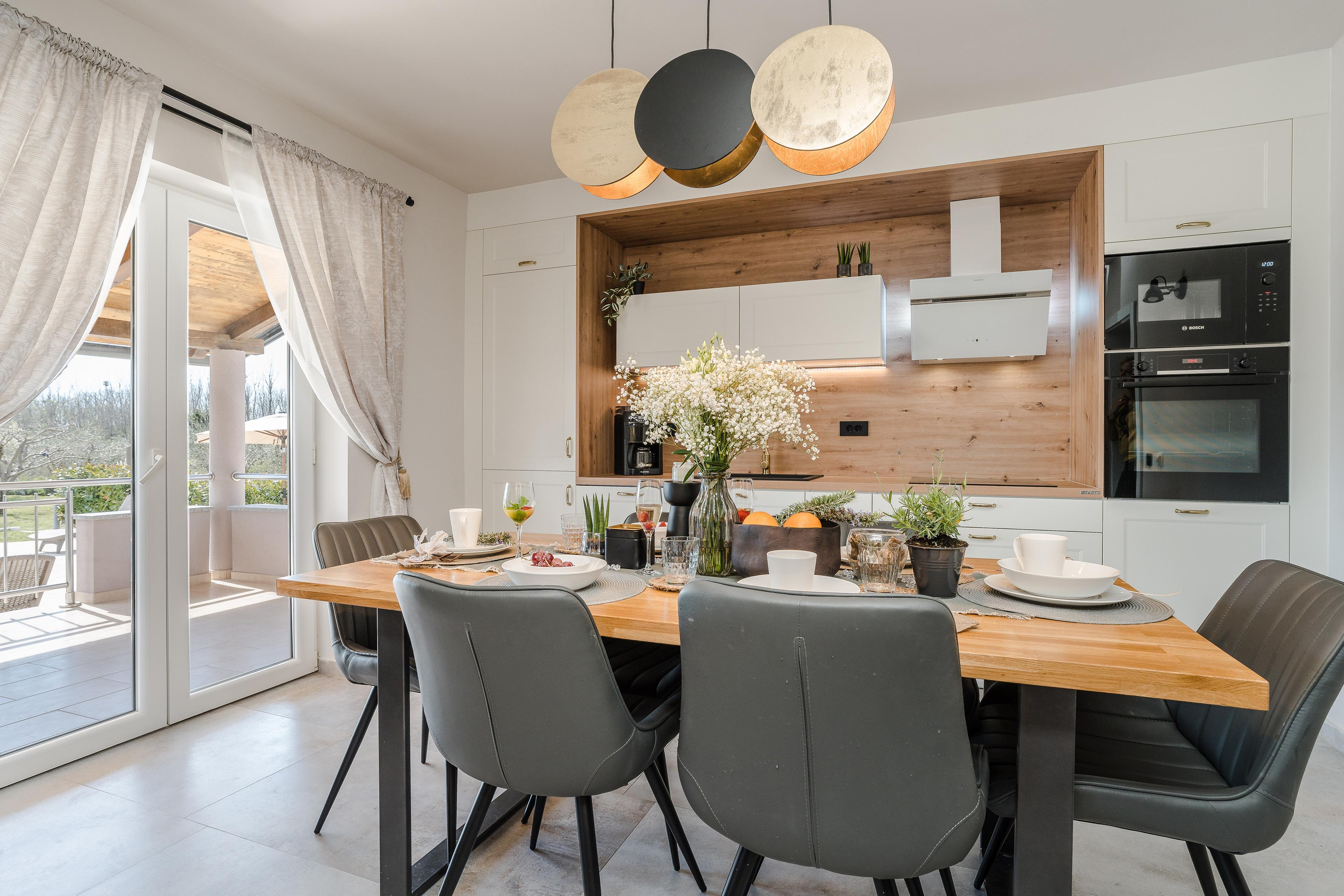 Die Villa verfügt über einen privaten Pool und ist mit einer Außendusche, Sonnenliegen und einem Sonnenschirm ausgestattet. Klimaanlage, WLAN-Internetzugang, Backofen, Geschirrspüler, Waschmaschine, Fußbodenheizung, Tischtennisplatte, Getränkekühlschrank, Eismaschine, Grill im Garten und Parkplätze auf dem Grundstück sind ebenfalls vorhanden. Kinderbett und Hochstuhl stehen den Gästen zur Verfügung.