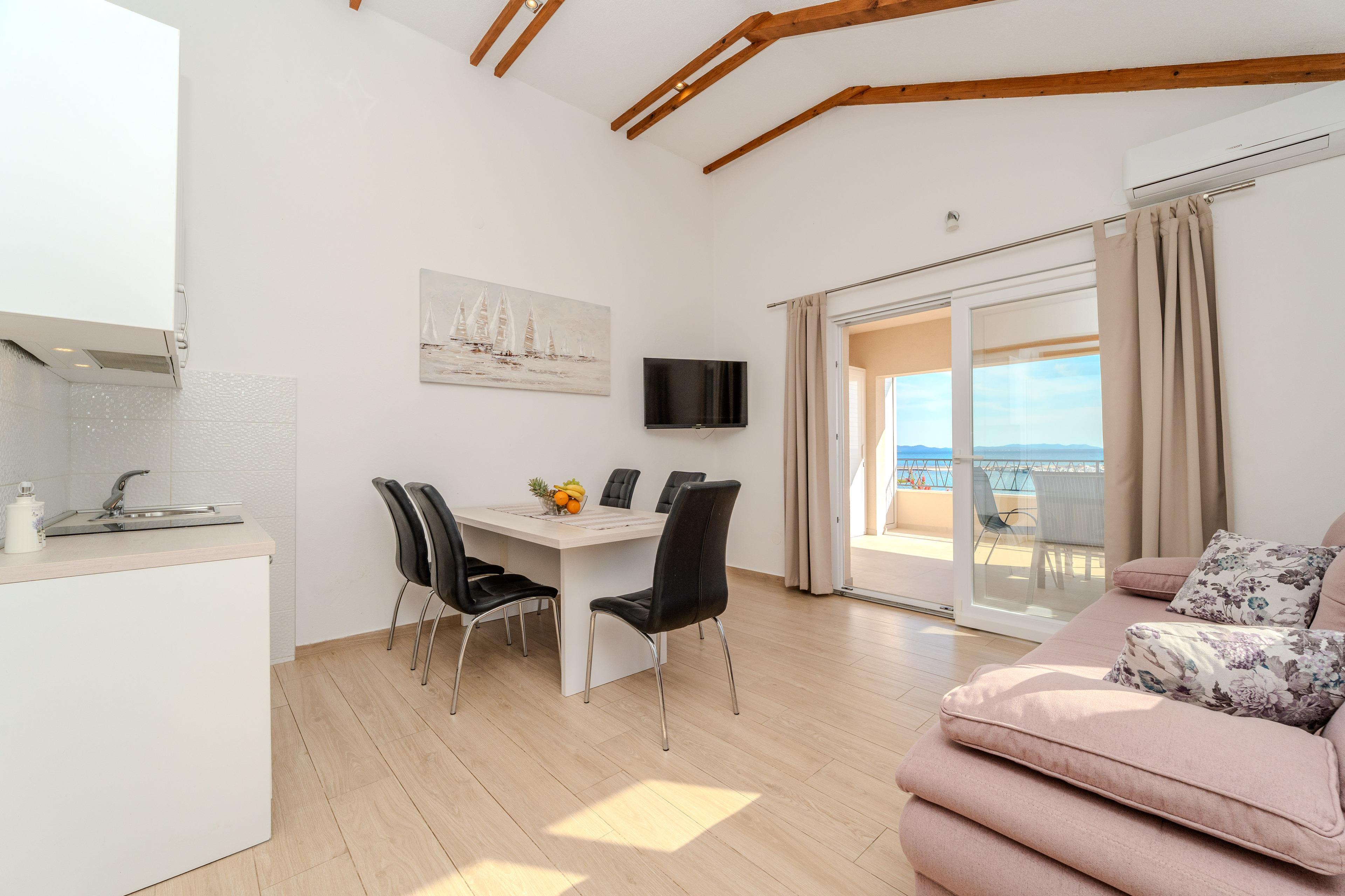 Dieses moderne Apartment im ersten Stock ist ideal für 4-6 Personen. Das Apartment direkt am Strand befindet sich in einem ruhigen Teil der Gemeinde Privlaka.