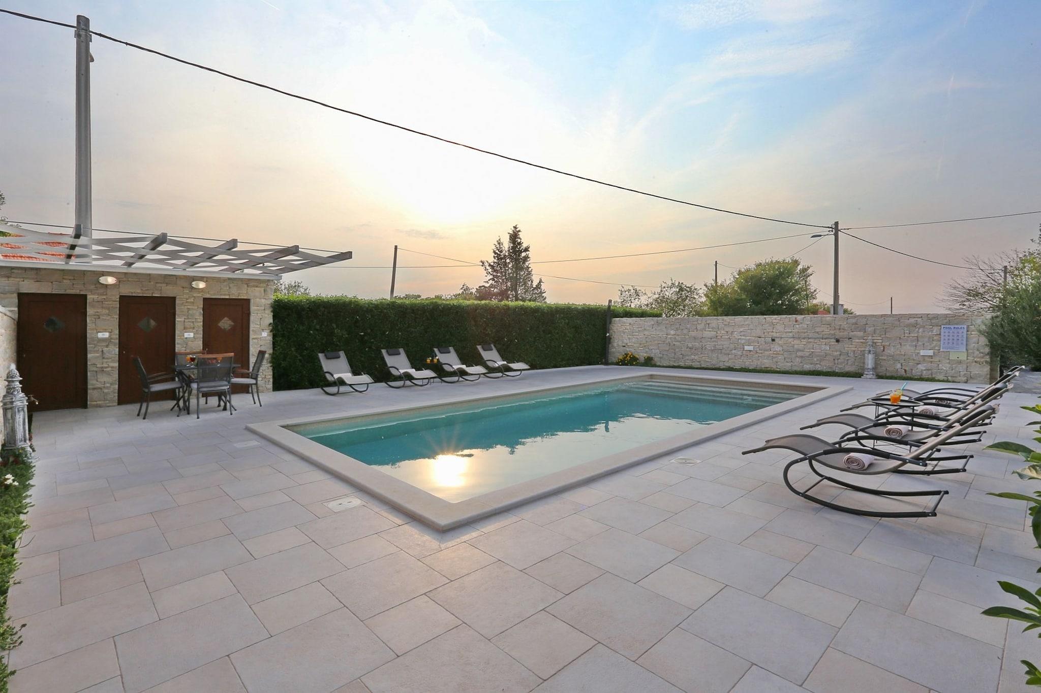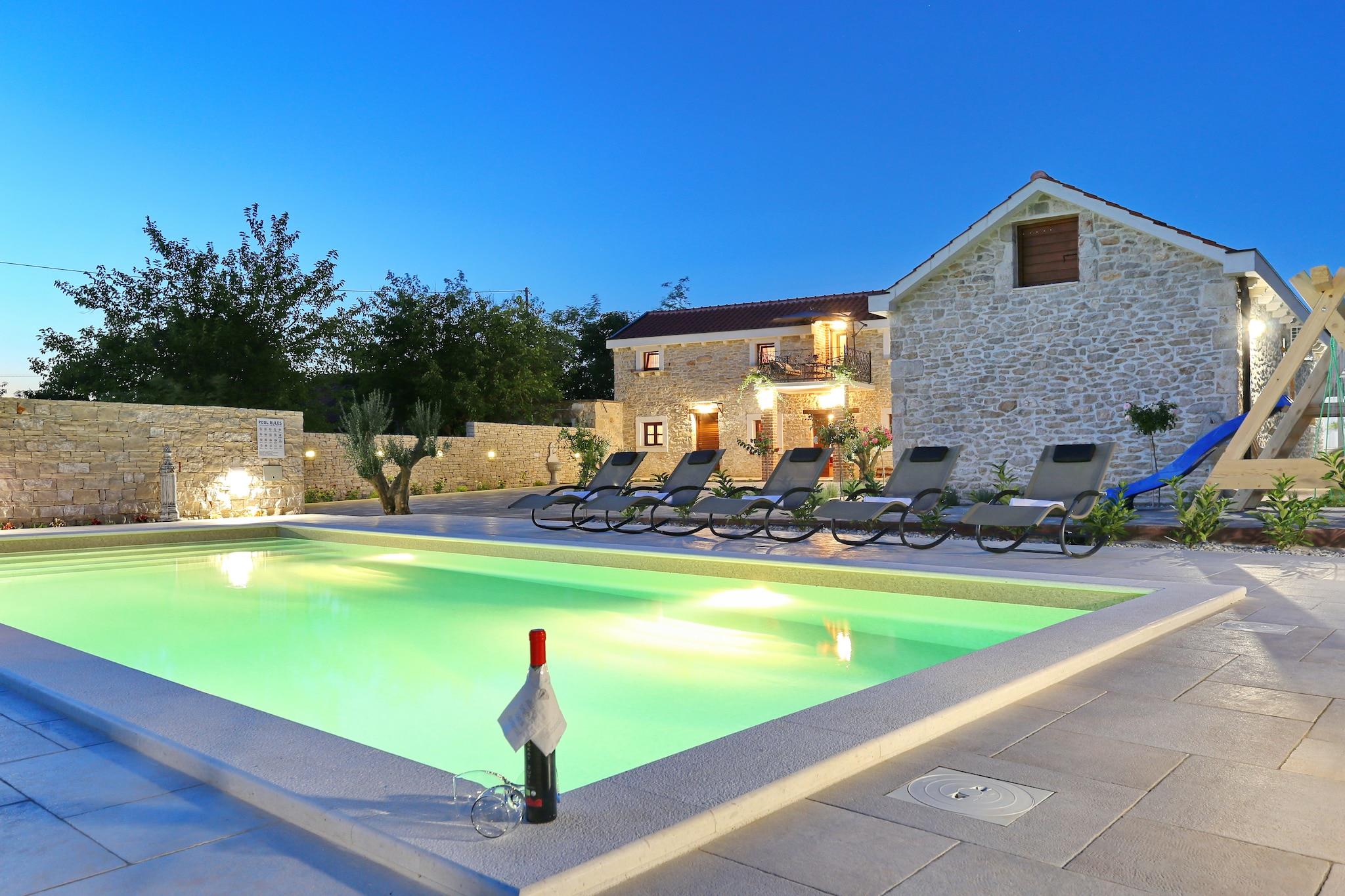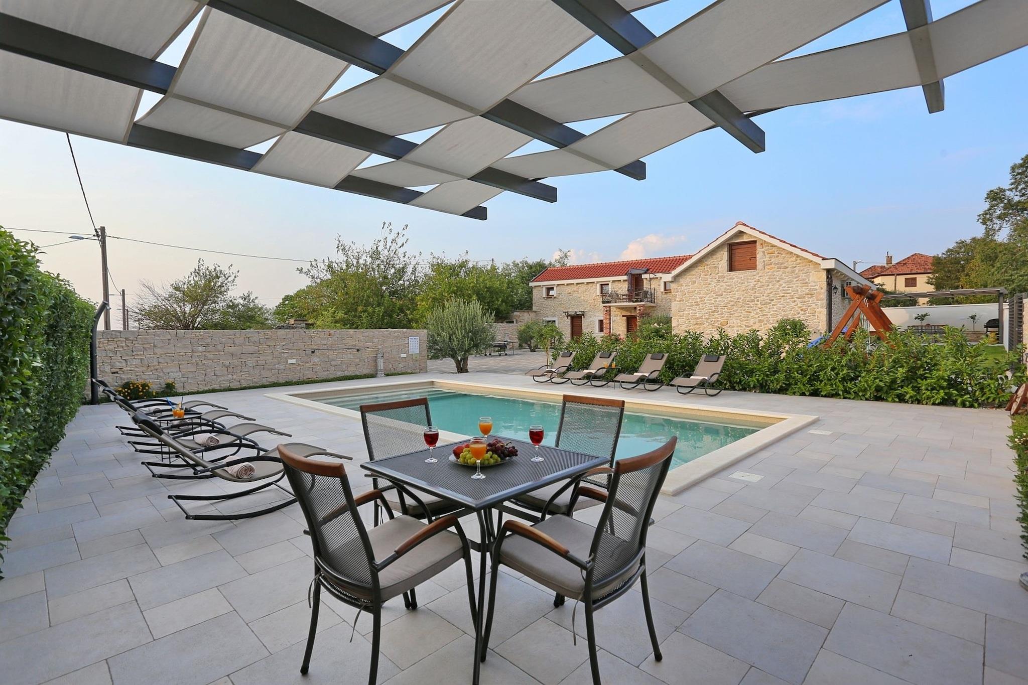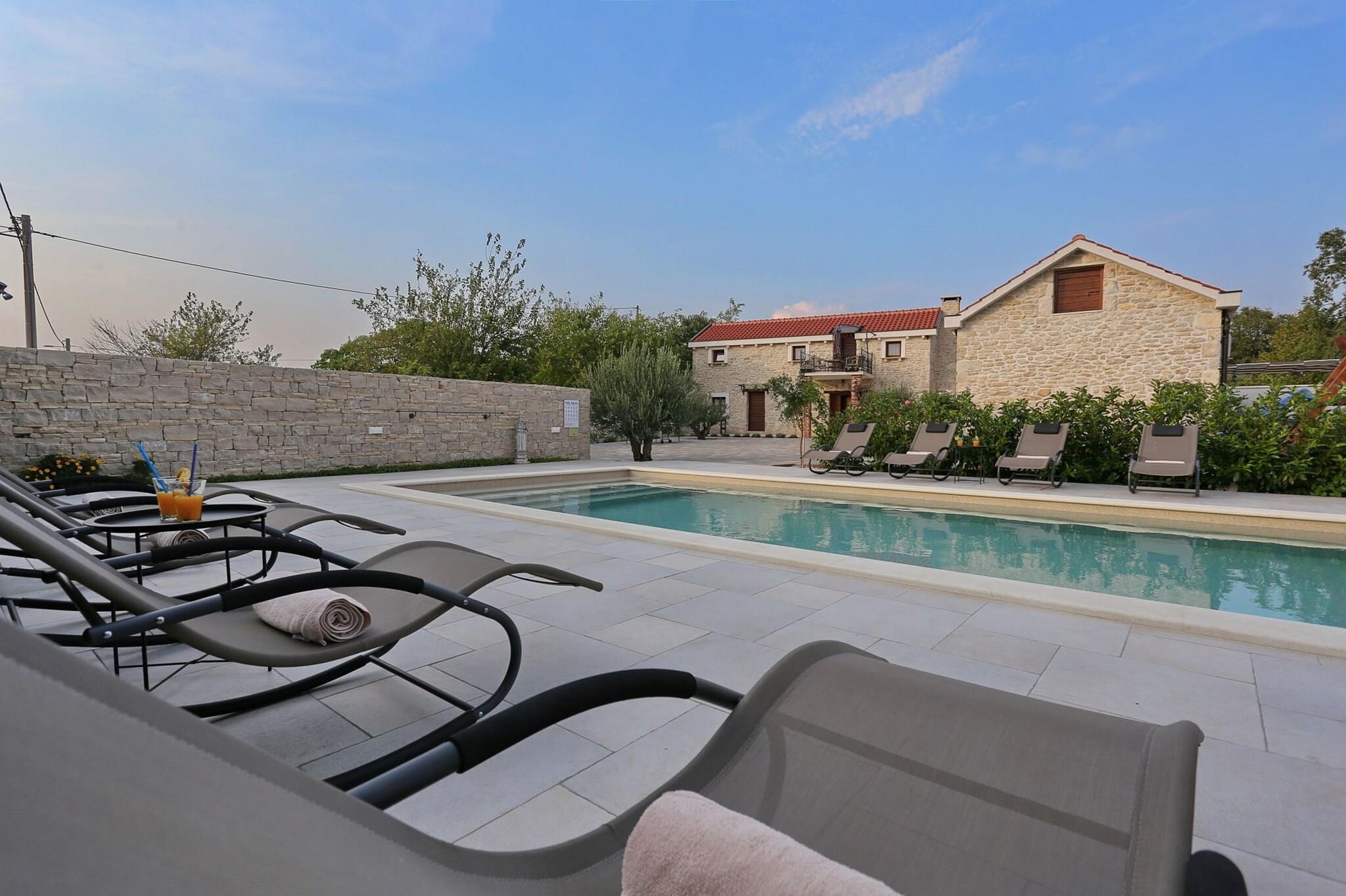 Denne villa til 10 gæster ligger i den fredelige landsby Prkos og tilbyder en luksuriøs ferie med gratis WiFi, en privat indhegnet have og en solrig terrasse. Kun 12 km fra havet og 20 km fra Zadar kan gæsterne nyde både ro og nem adgang til pulserende kystattraktioner. Med almindelige forsyninger kun 200 meter væk og offentlig transport inden for 150 meter er bekvemmeligheden garanteret. Indenfor har villaen en rummelig spisestue med pejs, to fuldt udstyrede køkkener og flere opholdsområder med fladskærms-tv og aircondition. Soveværelserne tilbyder en blanding af dobbeltsenge, køjesenge og sovesofaer, hvilket sikrer komfort for alle gæster. Udendørs faciliteter inkluderer en privat swimmingpool, grillplads, liggestole og et loungesæt, perfekt til afslapning. Til underholdning kan gæsterne nyde bordfodbold, dart og cykler. I nærheden kan du udforske Zadar Land City Gates, en historisk venetiansk indgang til den gamle bydel, eller besøge Museum of Ancient Glass, der fremviser udsøgte artefakter. Til spisning tilbyder Konoba Griblja autentiske kroatiske retter, mens Proto Food & More serverer frisk fisk og skaldyr i hyggelige omgivelser. Uanset om du søger eventyr eller afslapning, er denne villa det perfekte tilflugtssted.