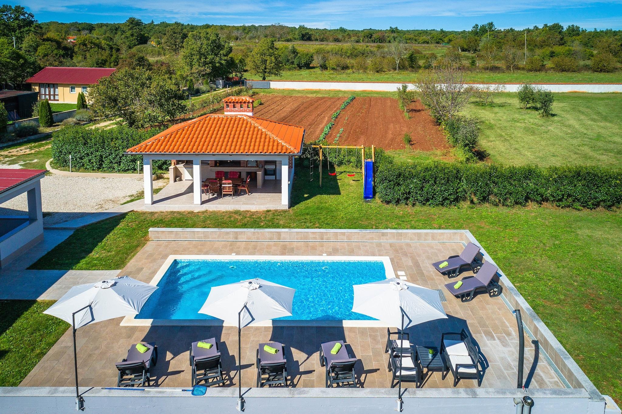 Casetta Filip med privat pool ligger midt i to tusinde kvadratmeter anlagt privat land! På den vedlagte ejendom har du en swimmingpool med liggestole, en overdækket terrasse og en grill til din rådighed. Den overdækkede terrasse er udstyret til spisning og har udsigt til poolen. Og de sæsonbestemte grøntsager fra haven er inkluderet! Dette smukt indrettede stueetage hus har en rummelig stue med en tilsluttet spisestue. Det fuldt møblerede køkken er adskilt. Der er tre soveværelser med eget badeværelse. Nær huset er der en smuk privat skov med cykel- og vandrestier; ideel til elskere af aktive ferier. Du finder den nærmeste strand på 4,5 km.